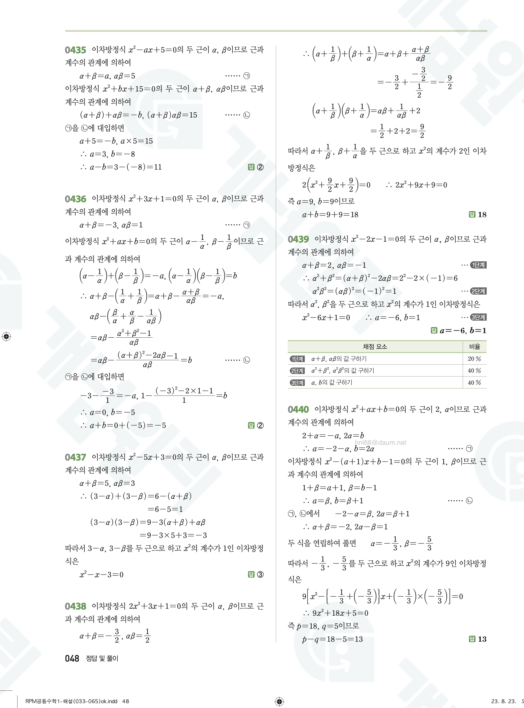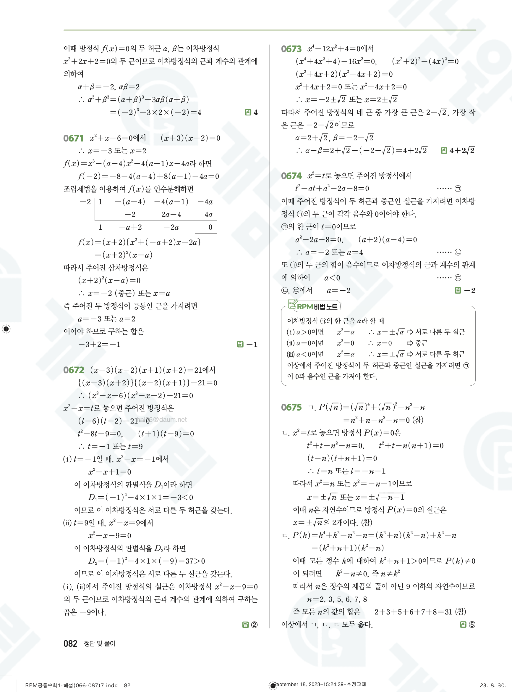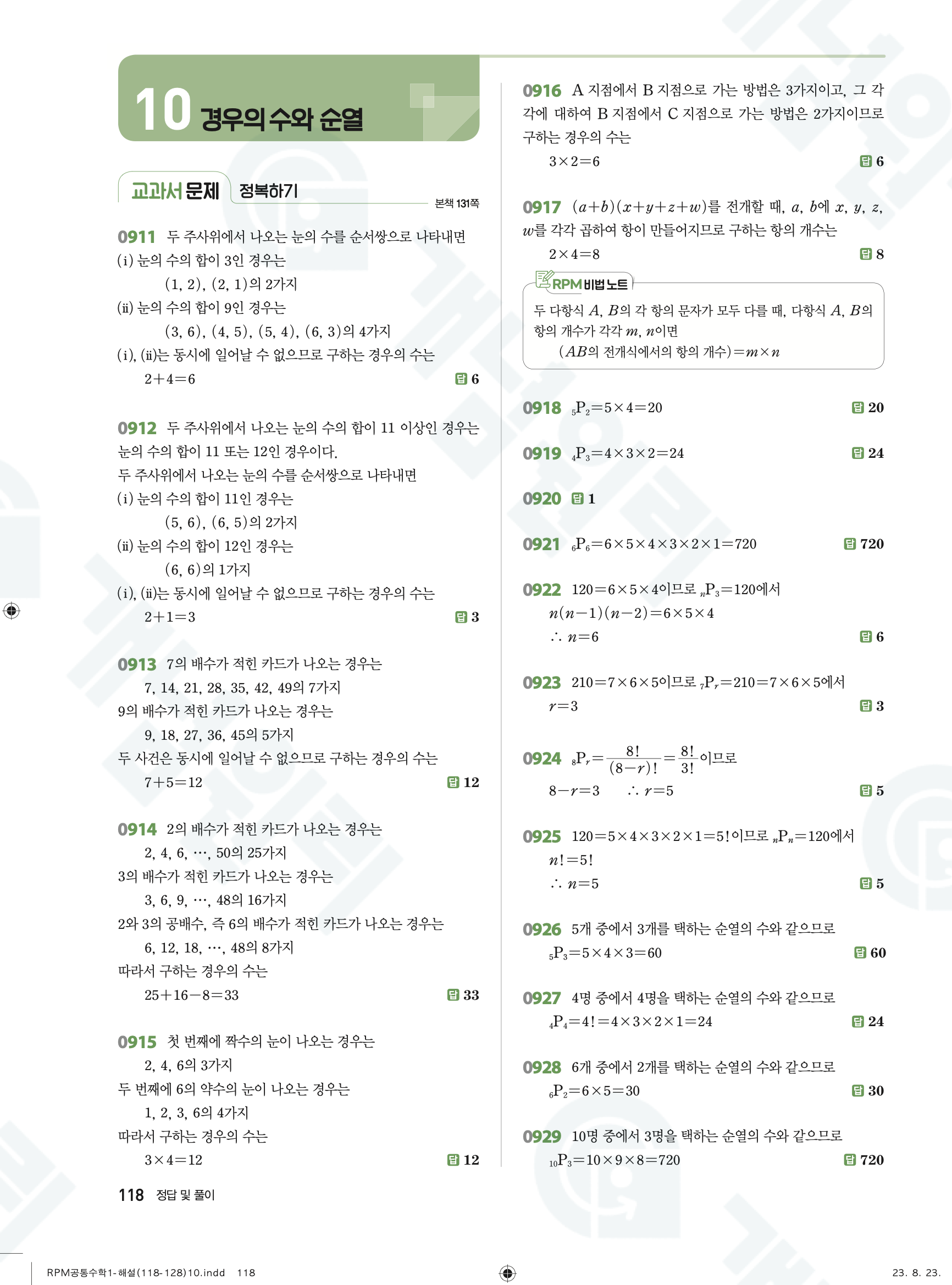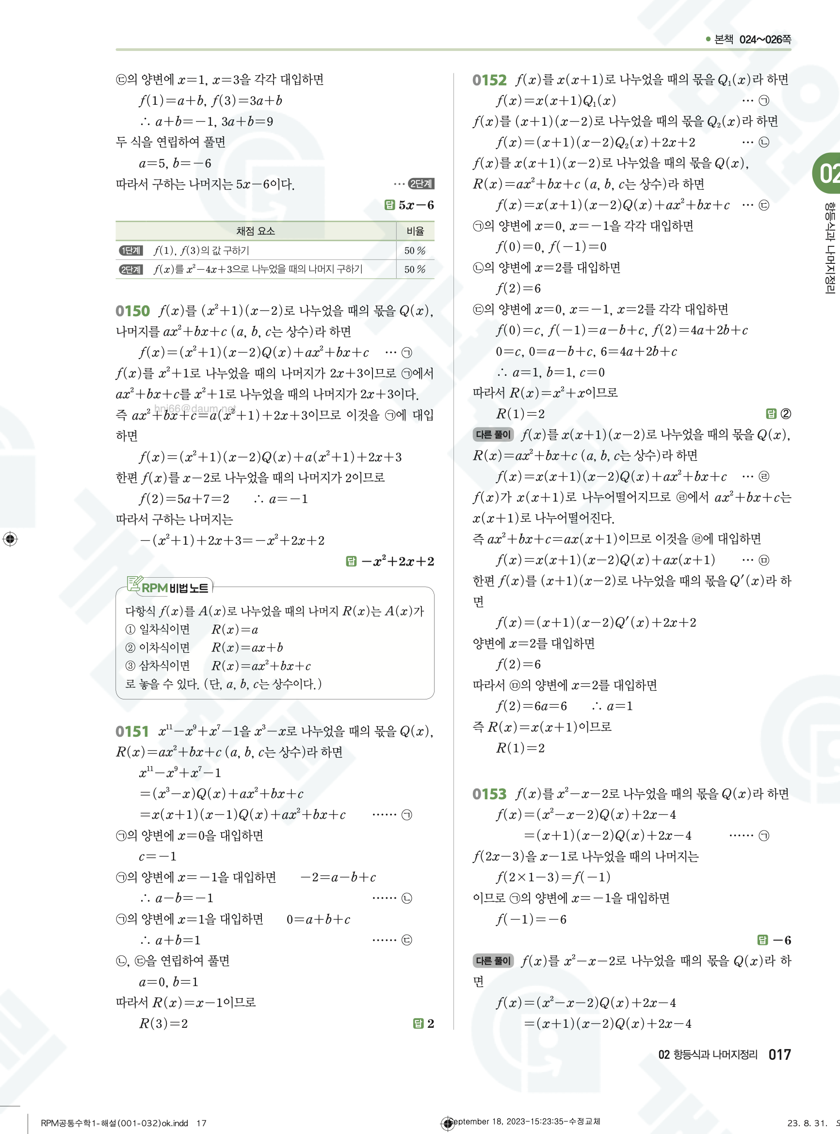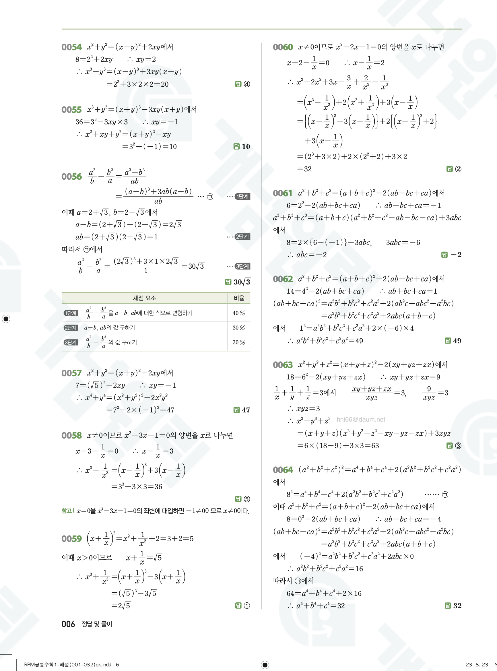📥 알피엠 RPM 공통수학1 답지 해설 풀이 빠른답지 PDF 다운로드
