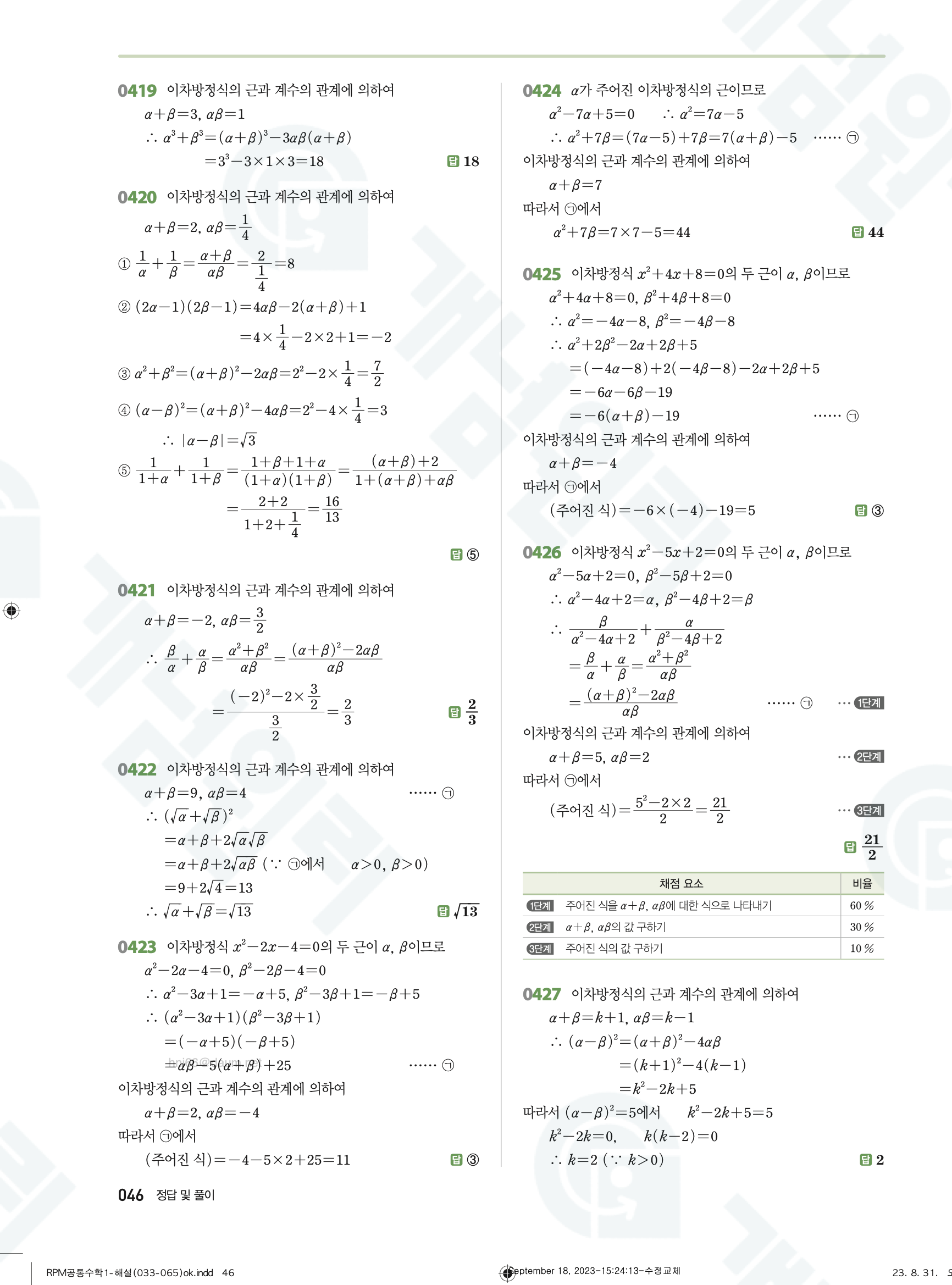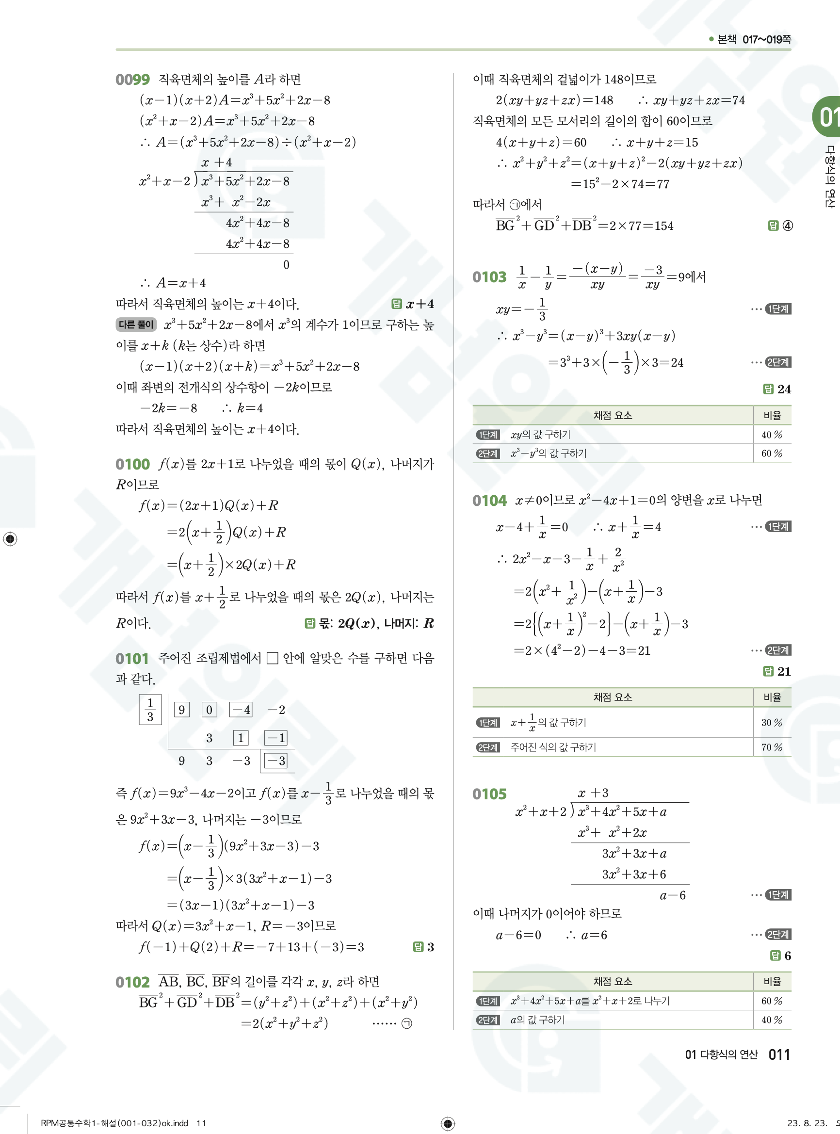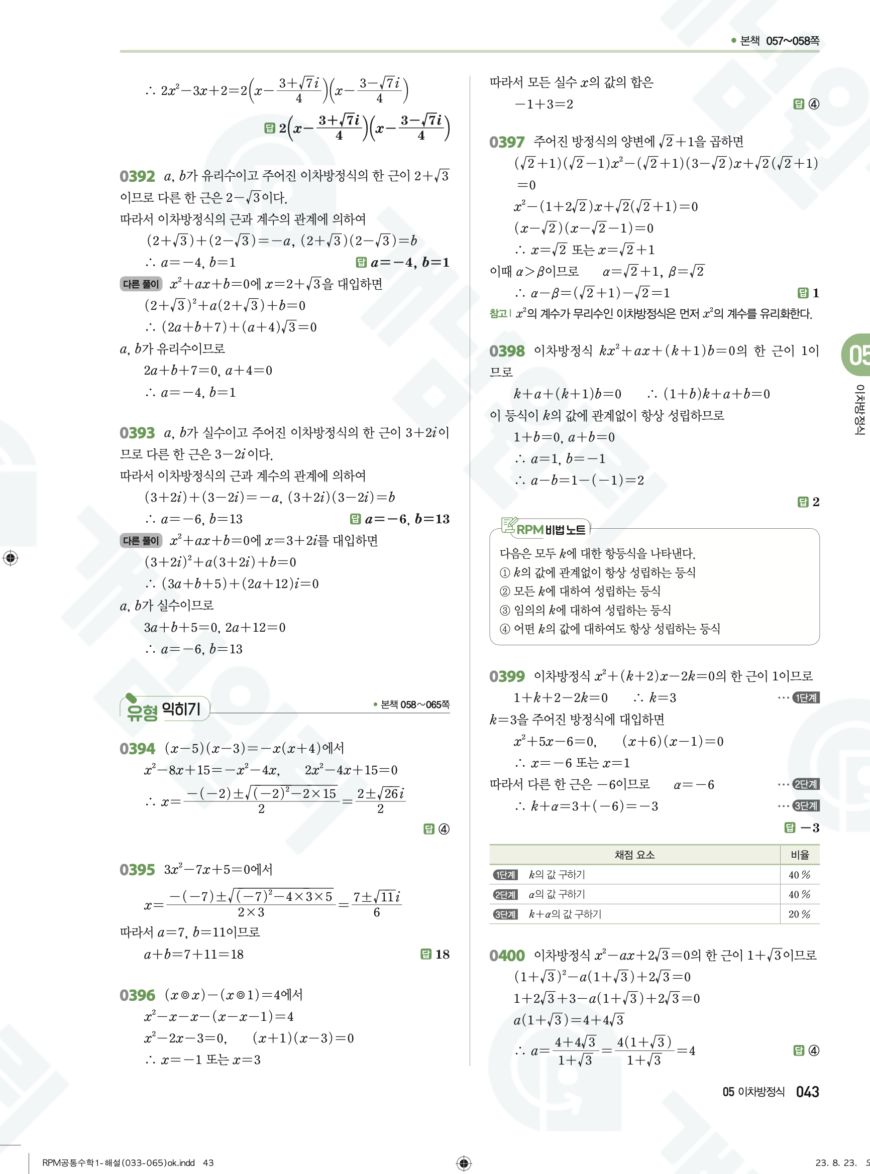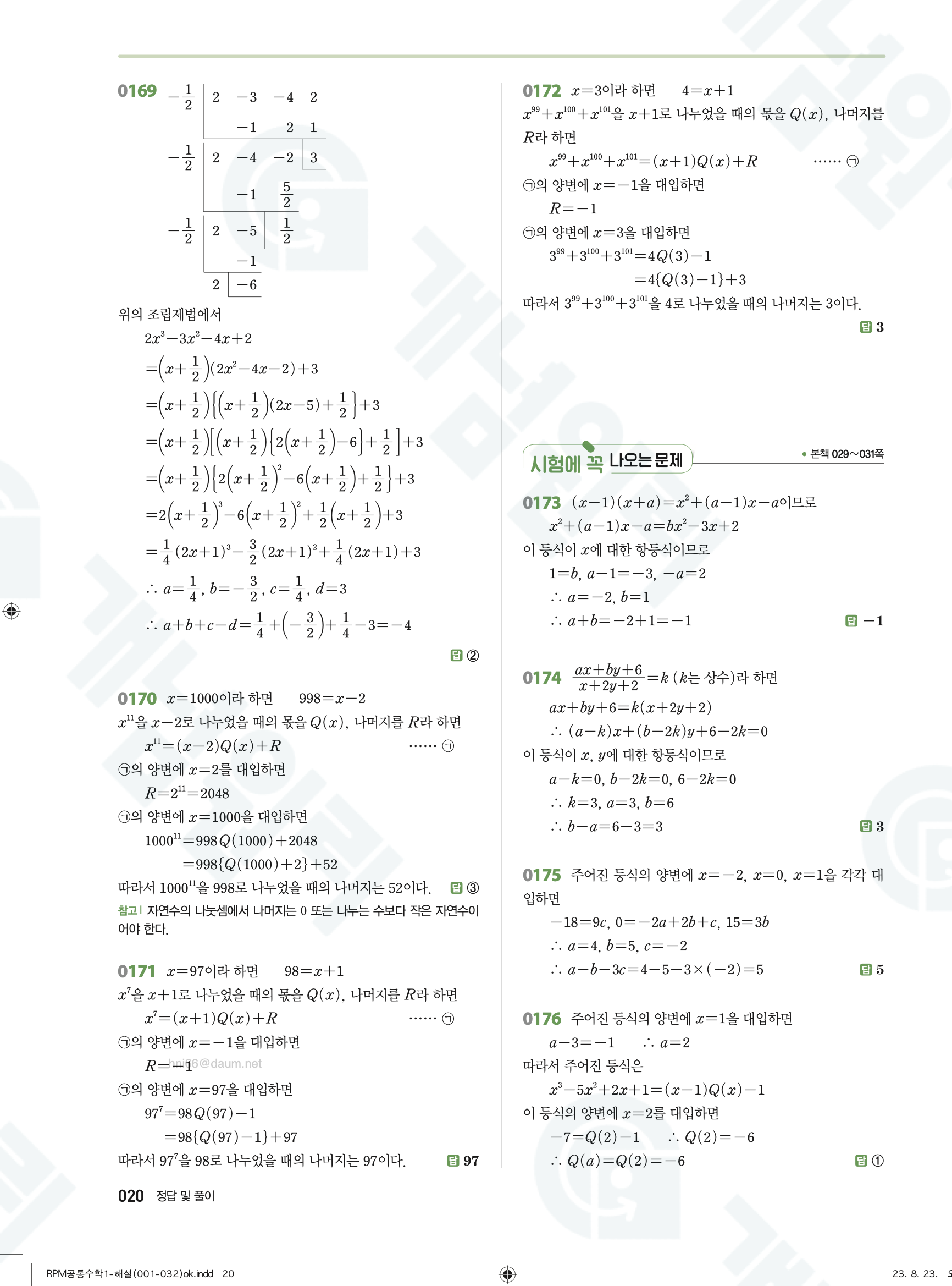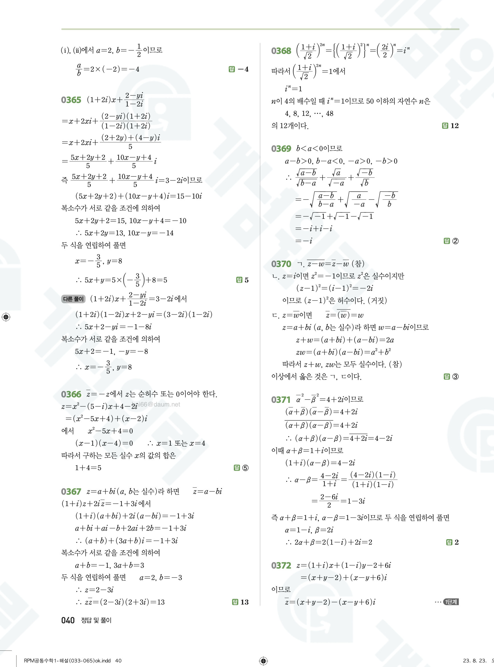 📥 알피엠 RPM 공통수학1 답지 해설 풀이 빠른답지 PDF 다운로드