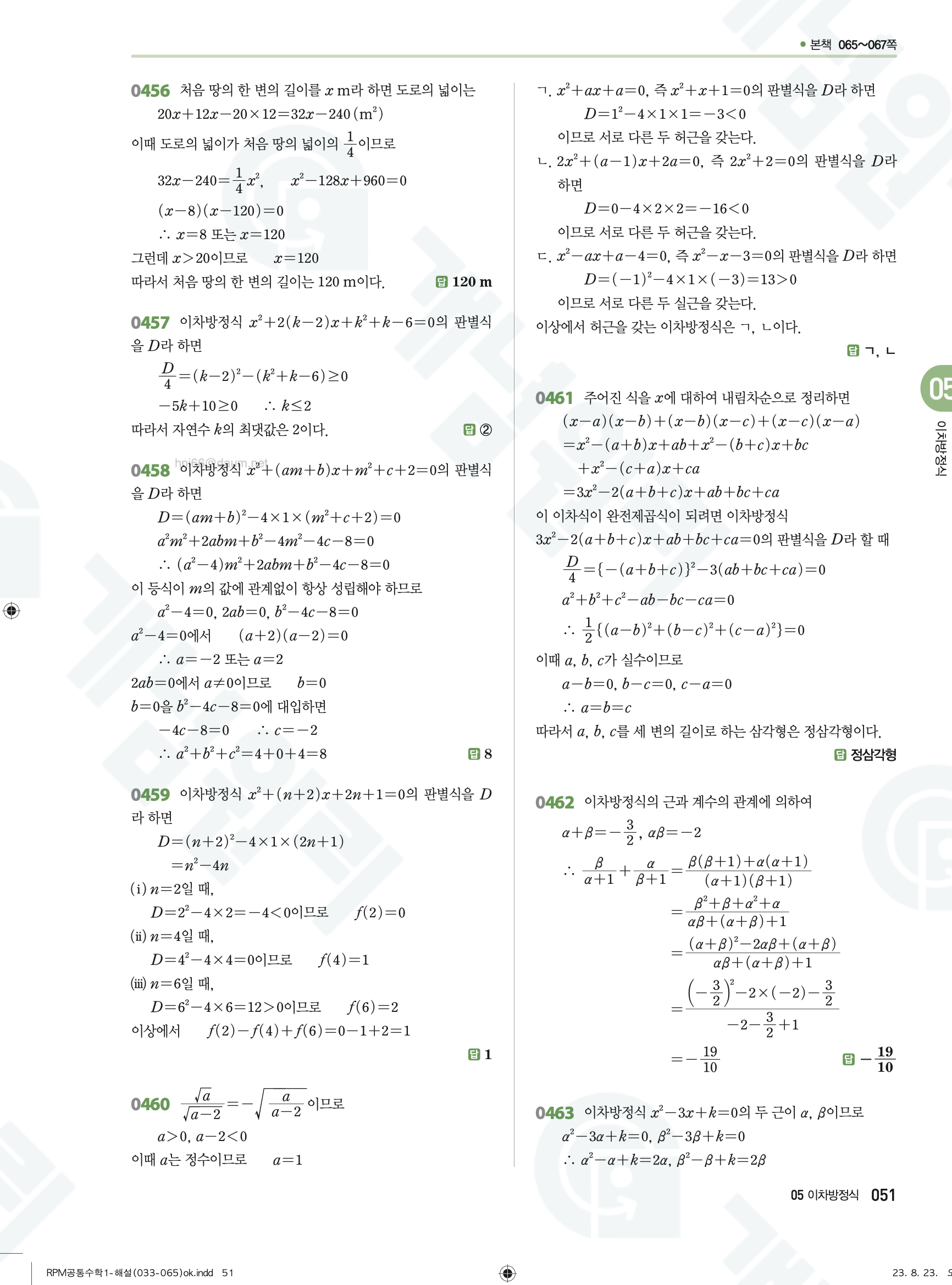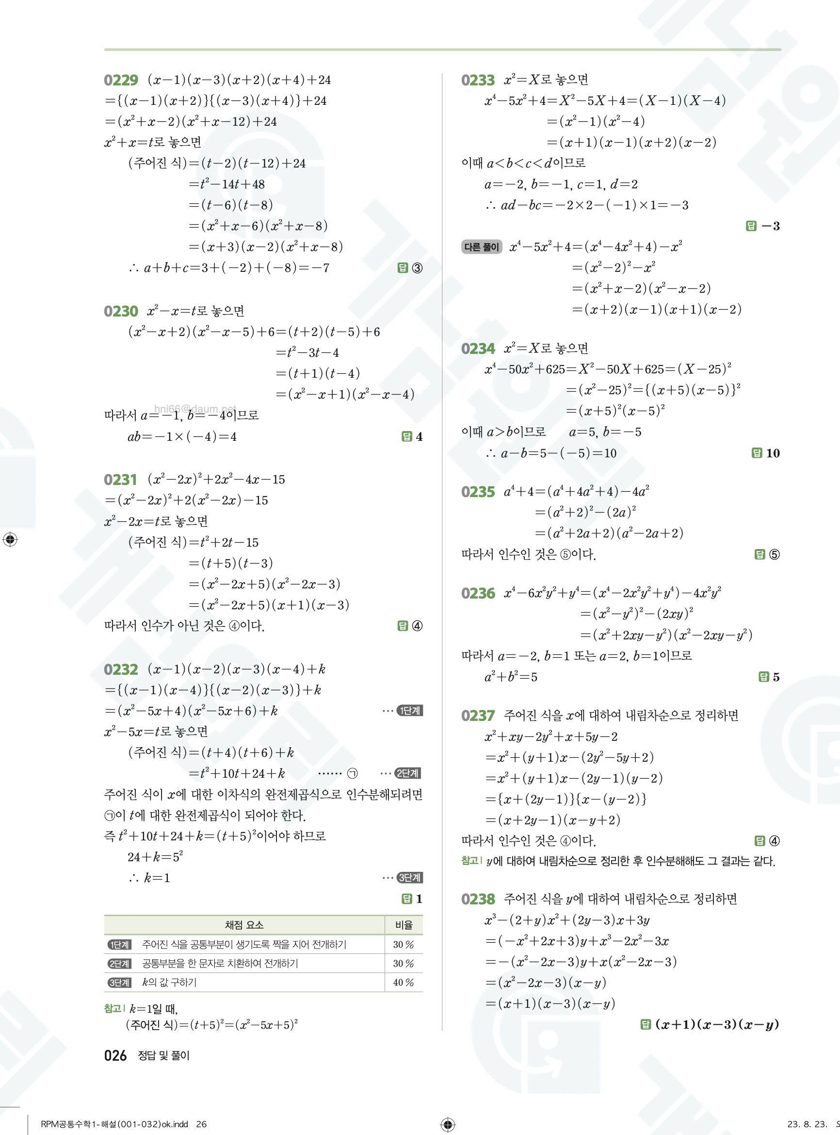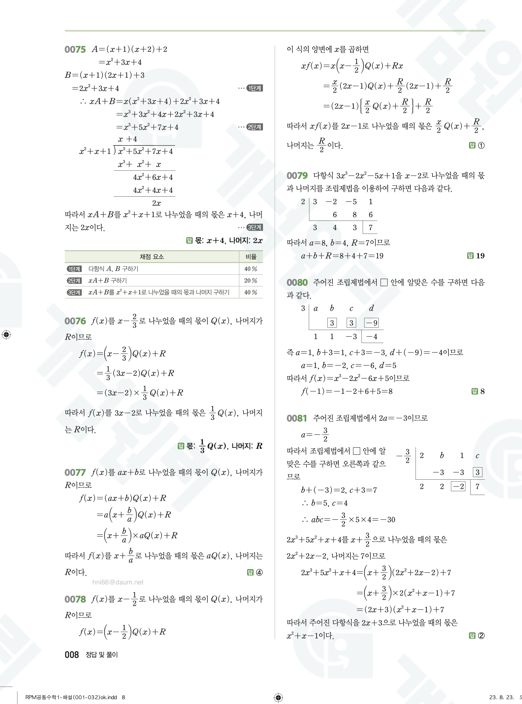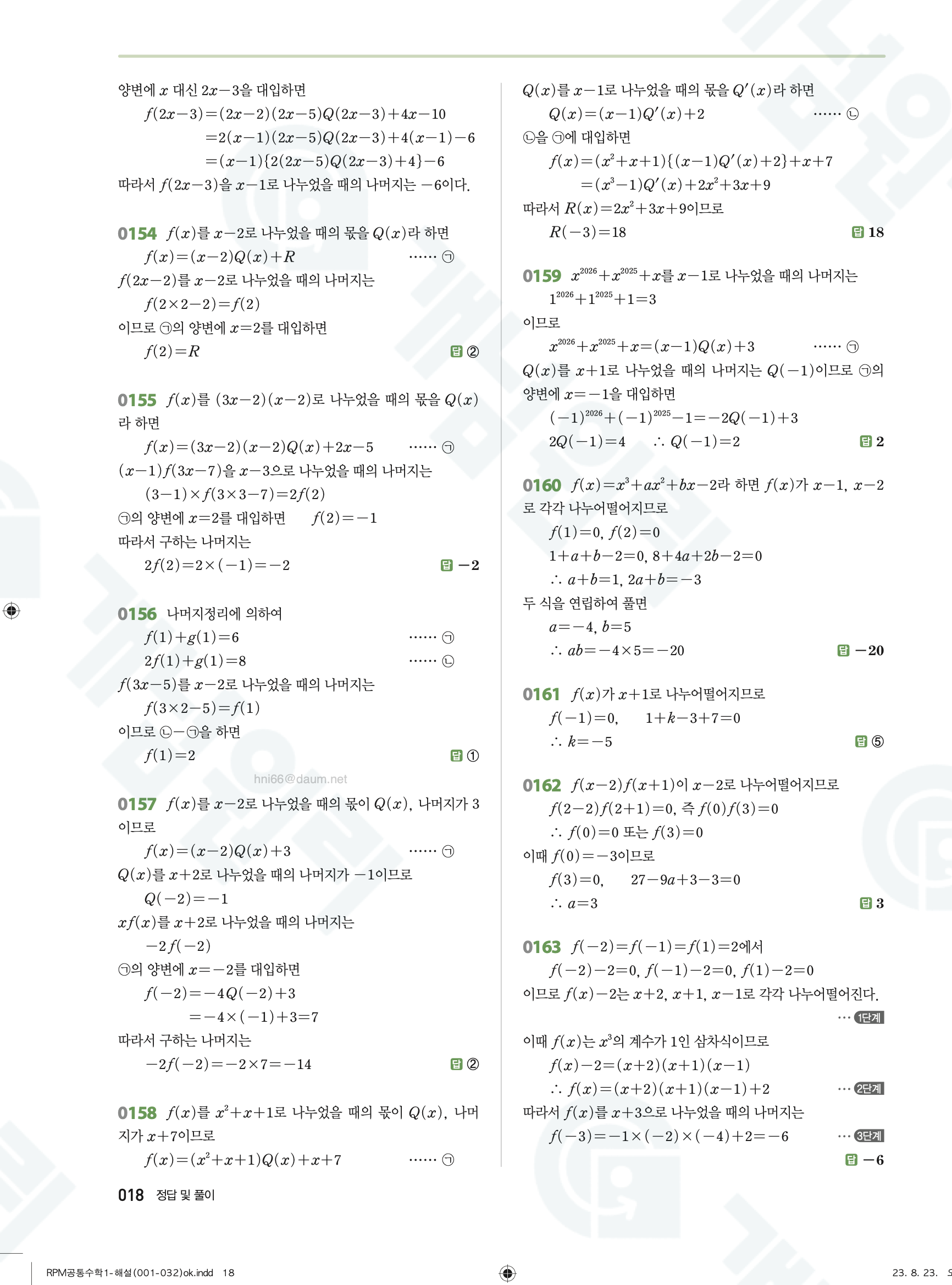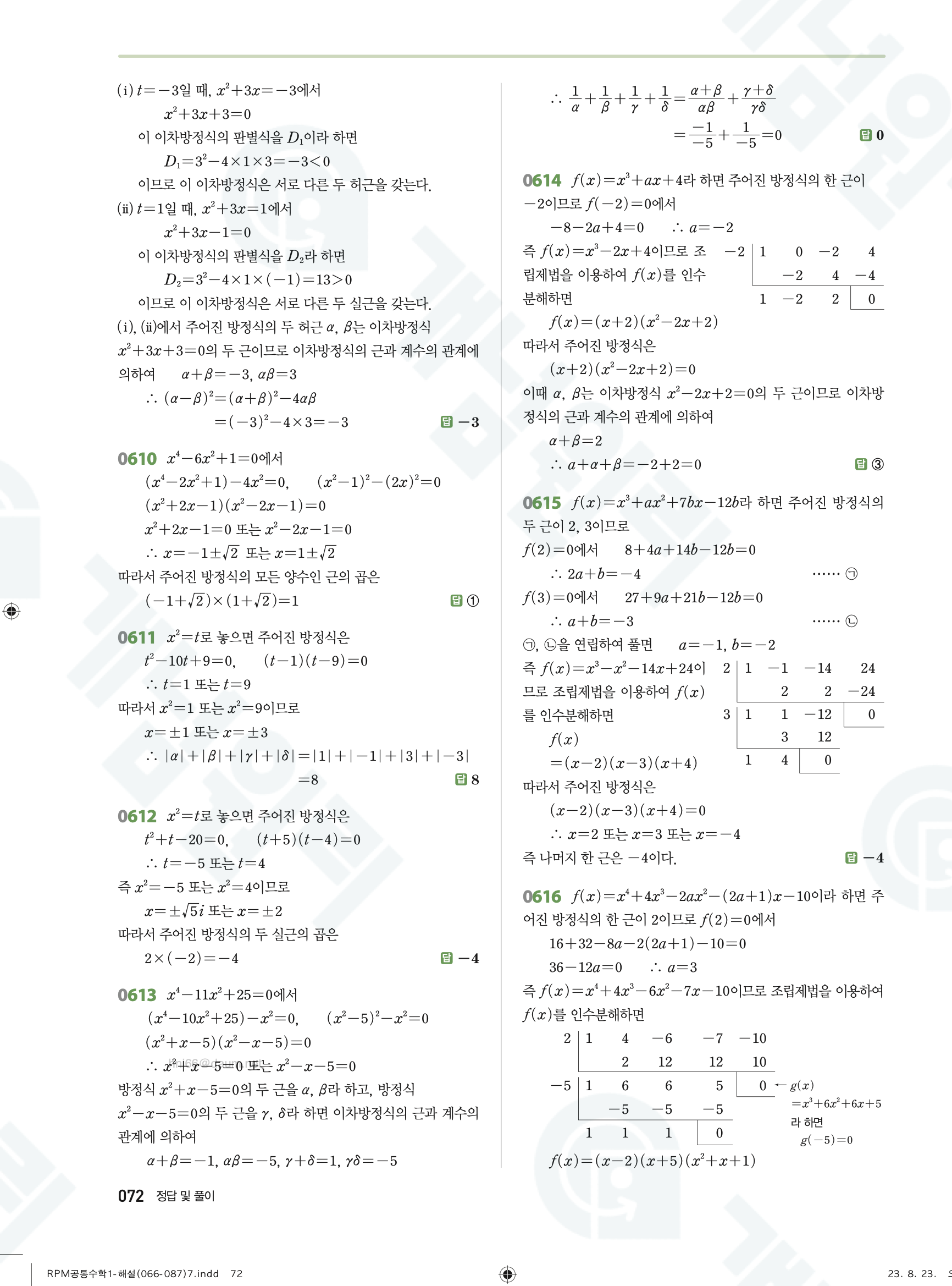 📥 알피엠 RPM 공통수학1 답지 해설 풀이 빠른답지 PDF 다운로드