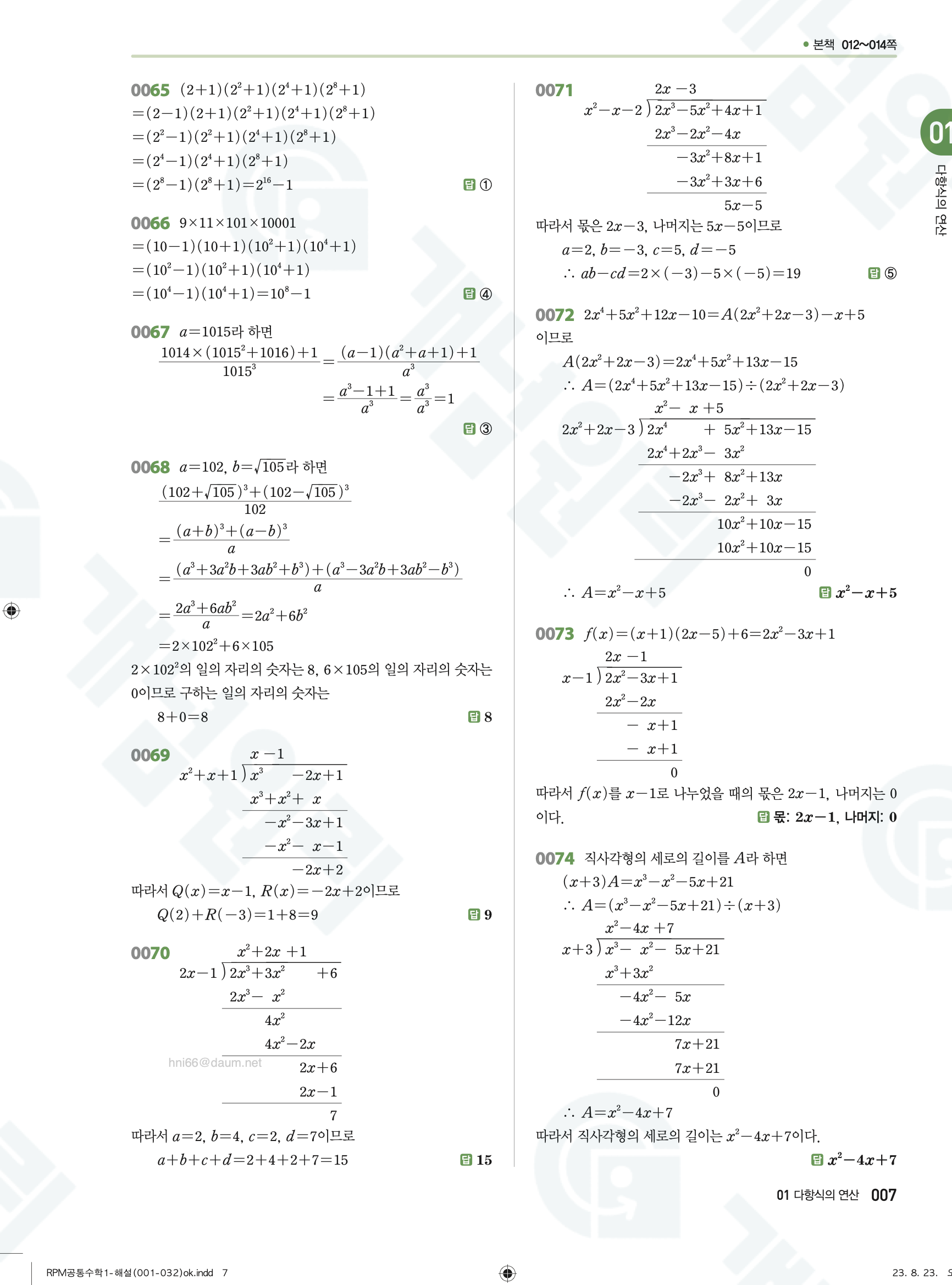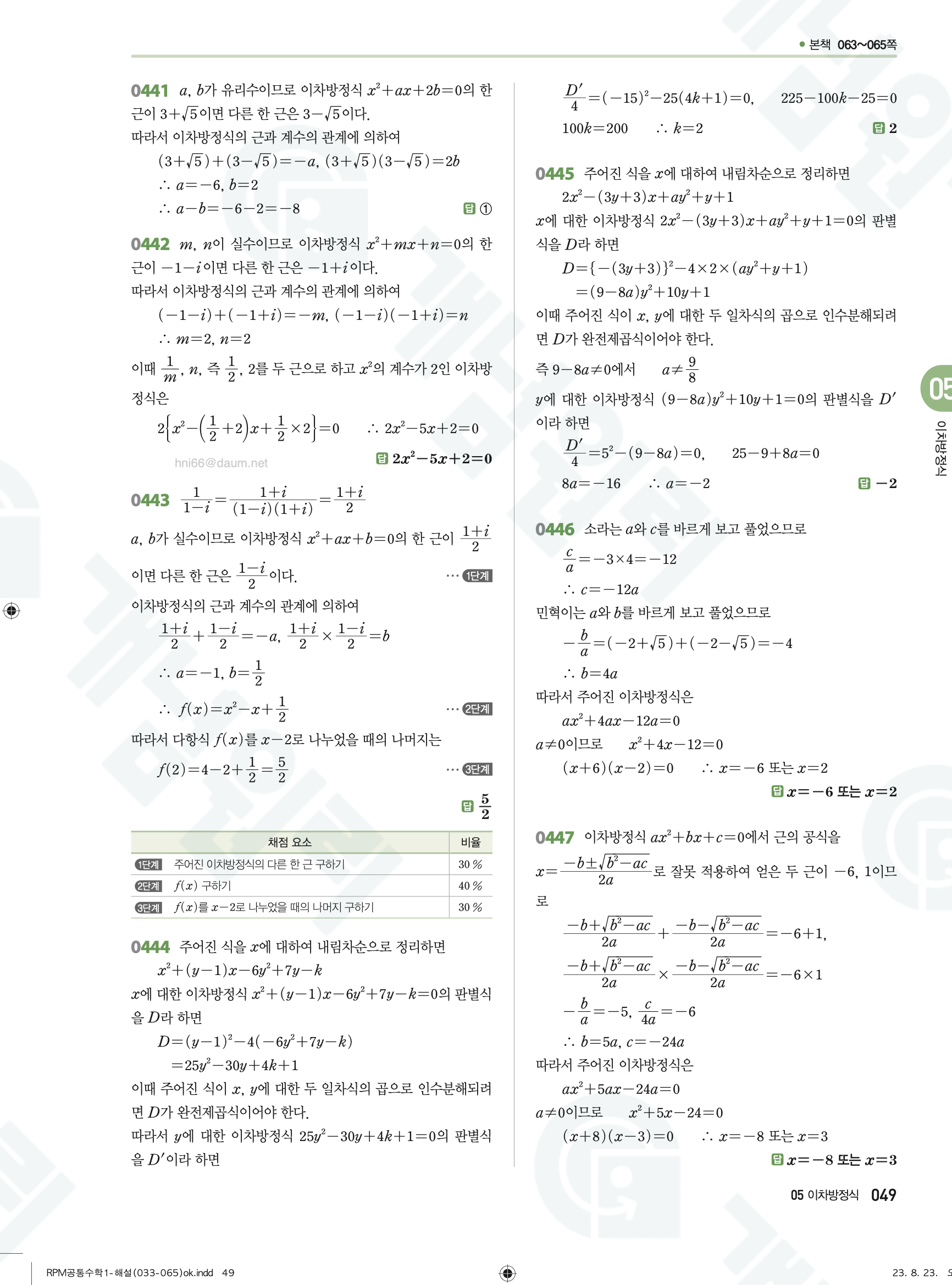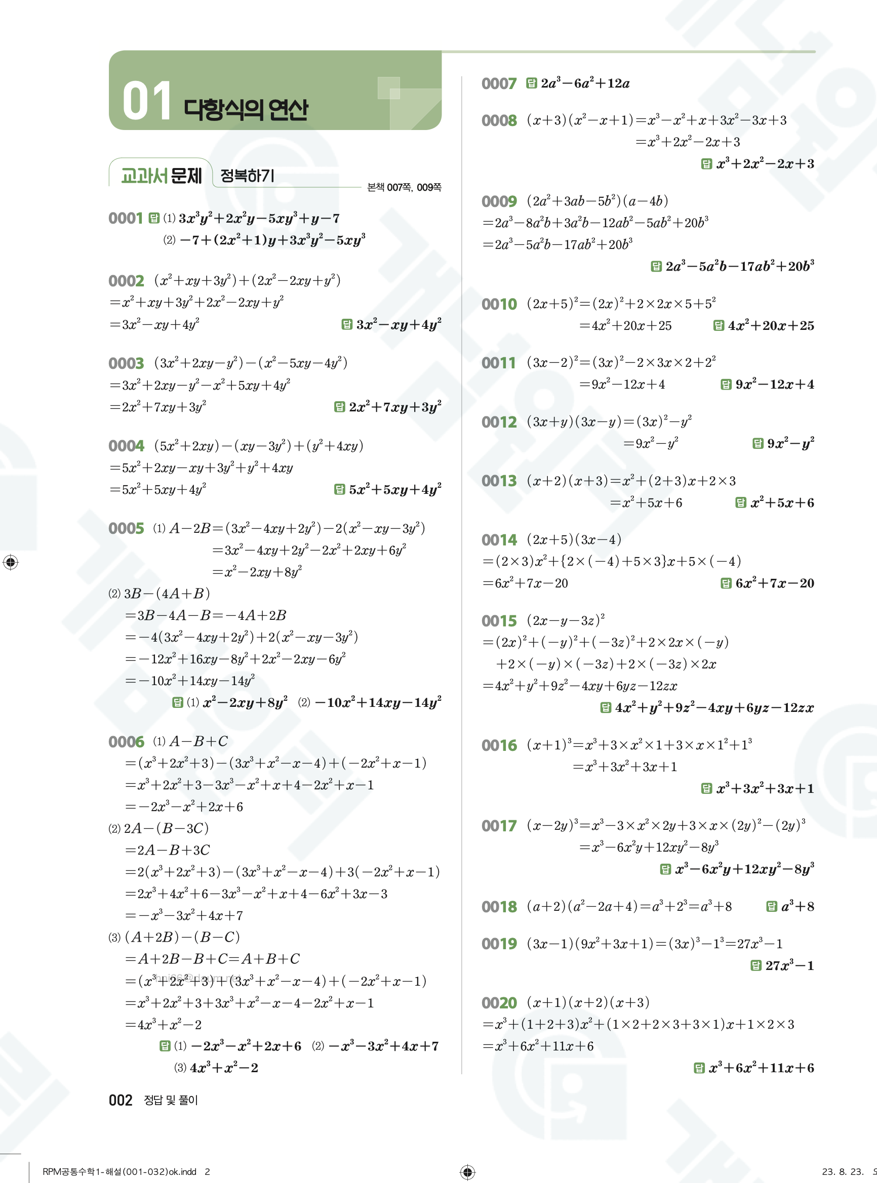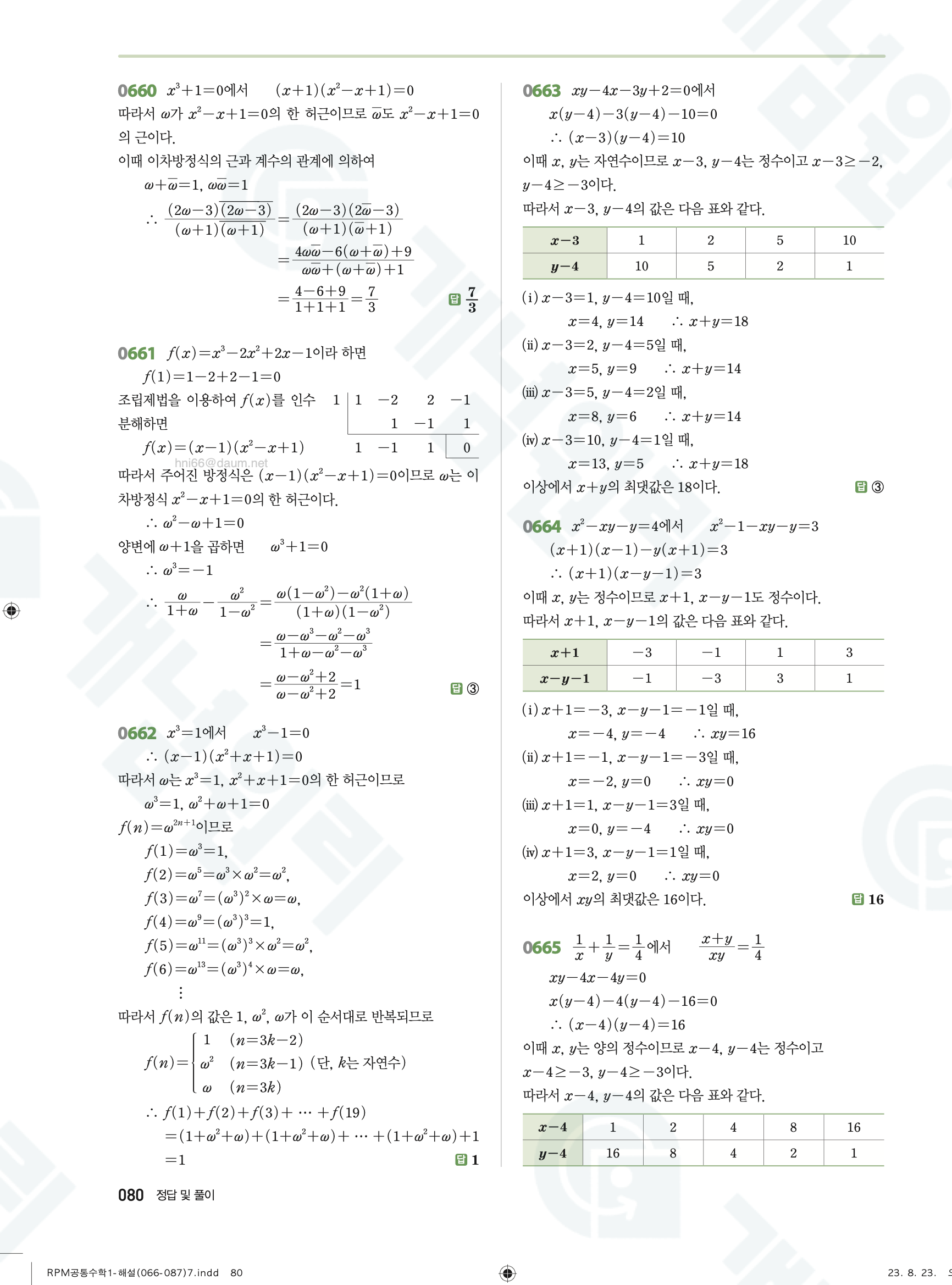 📥 알피엠 RPM 공통수학1 답지 해설 풀이 빠른답지 PDF 다운로드