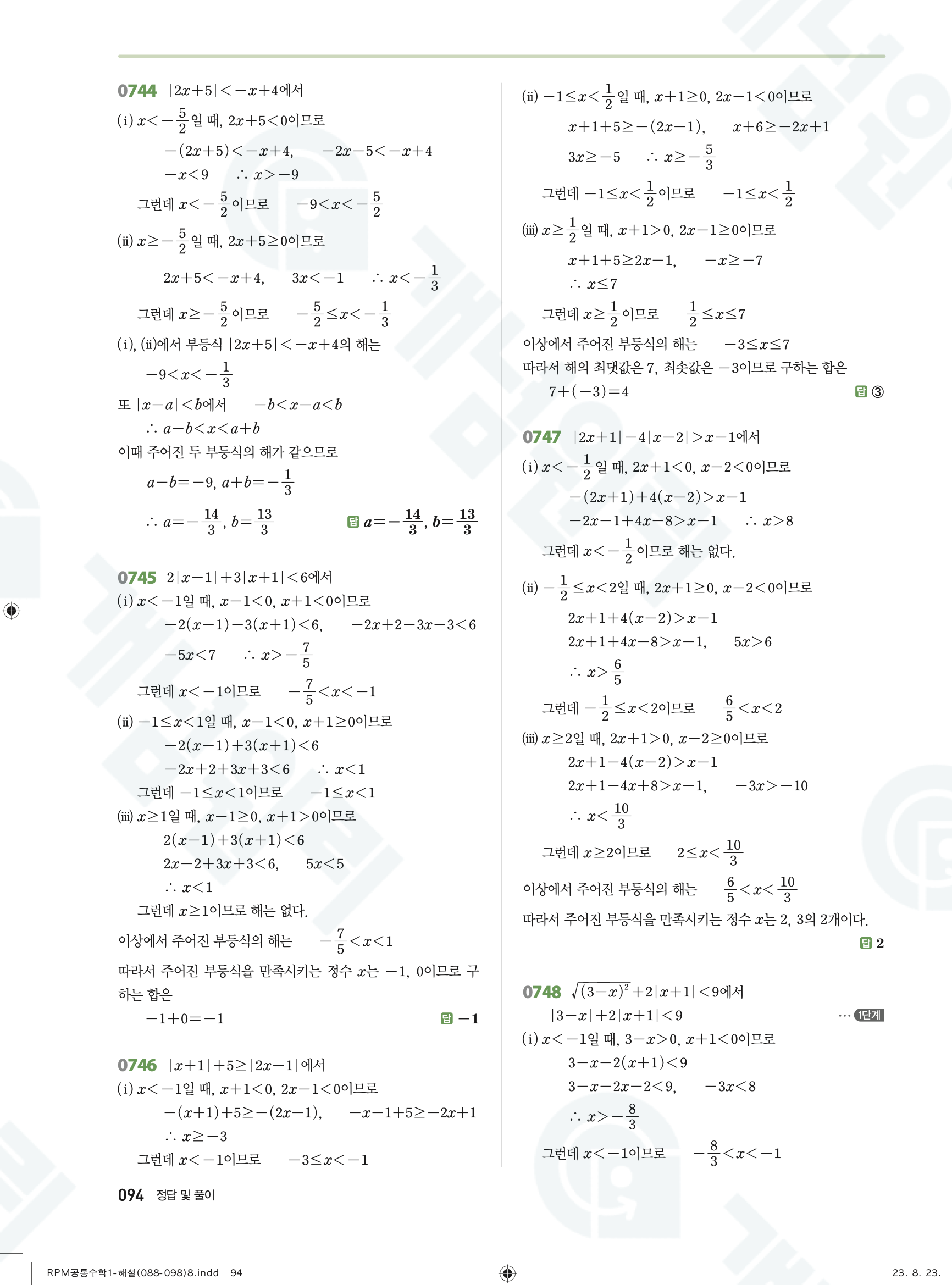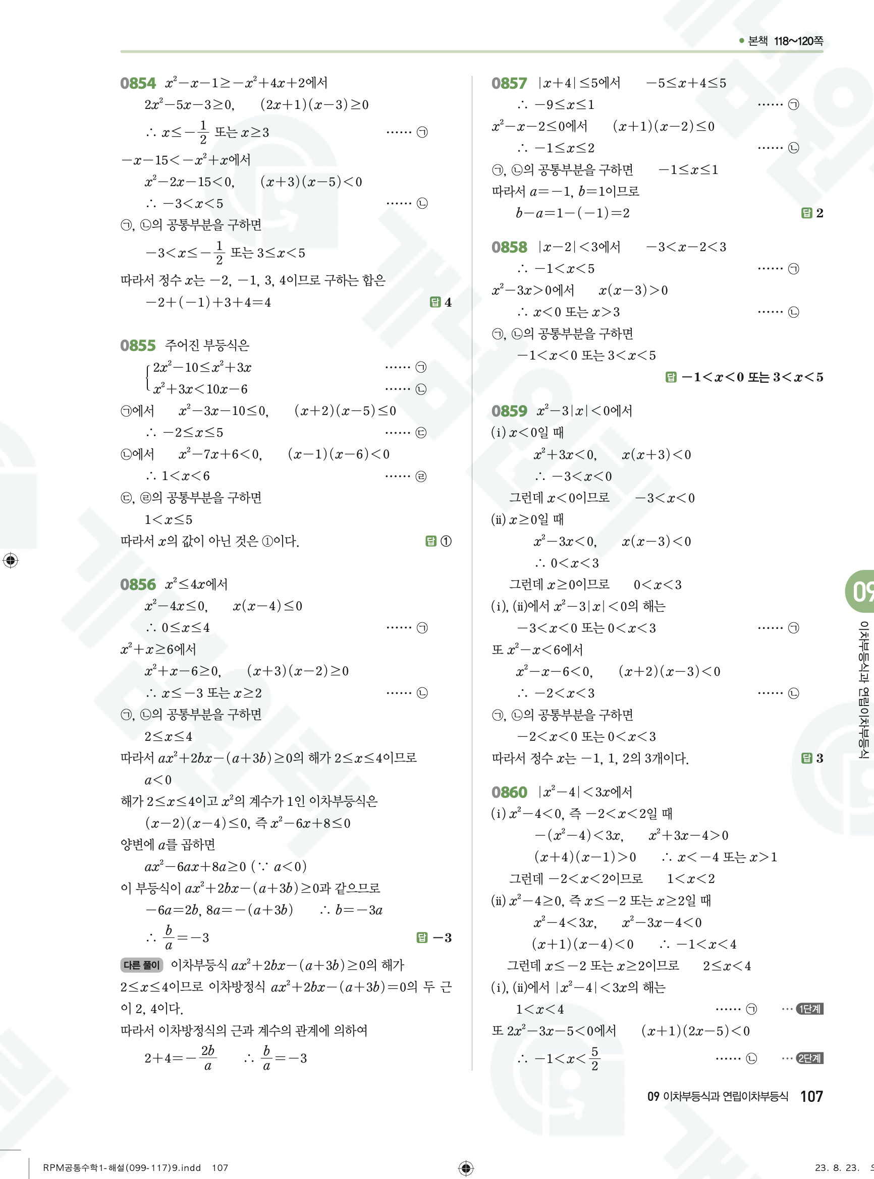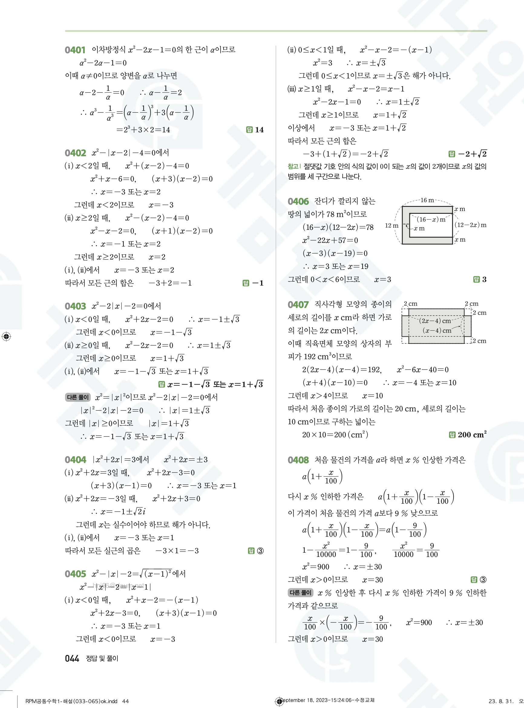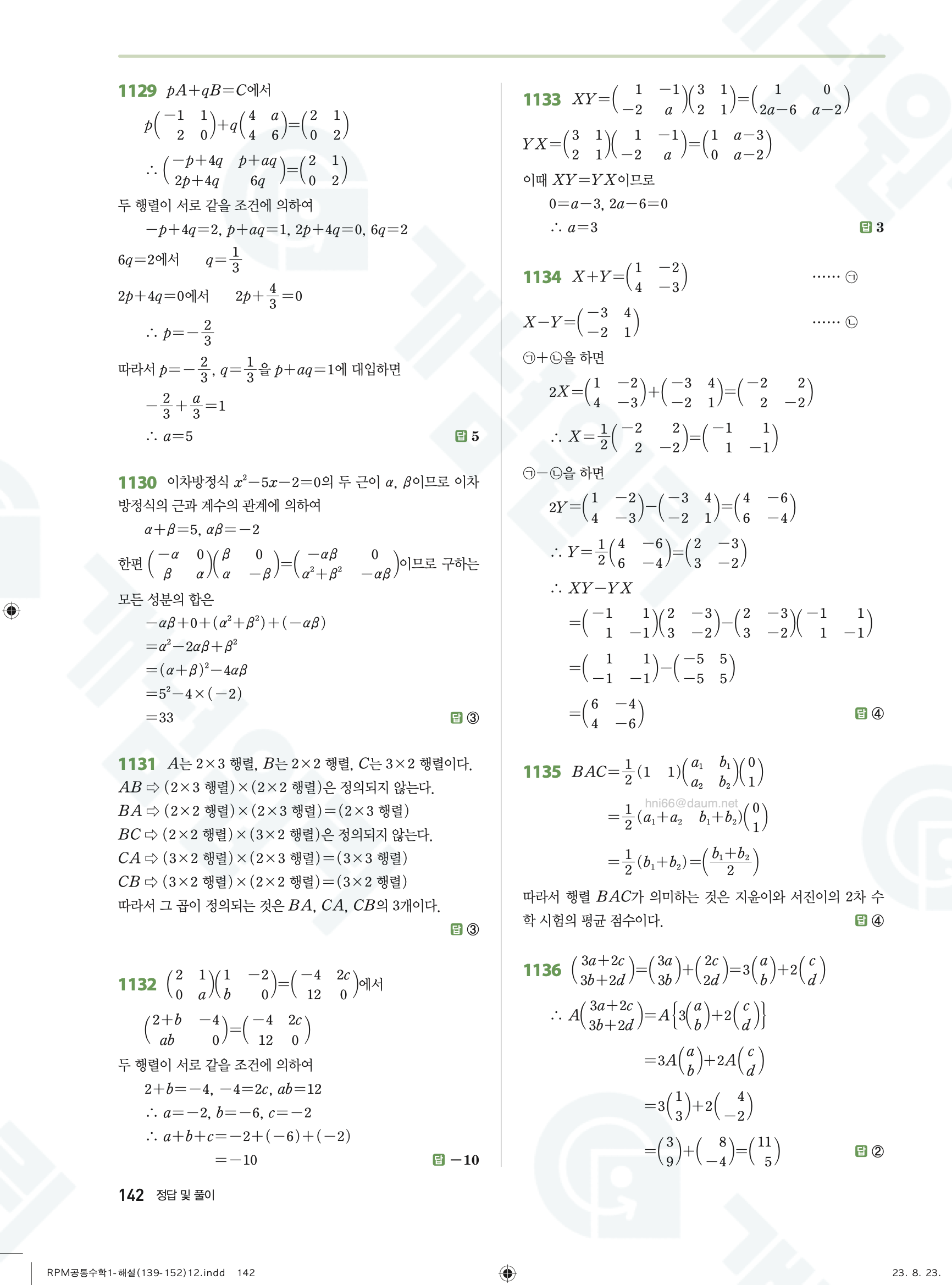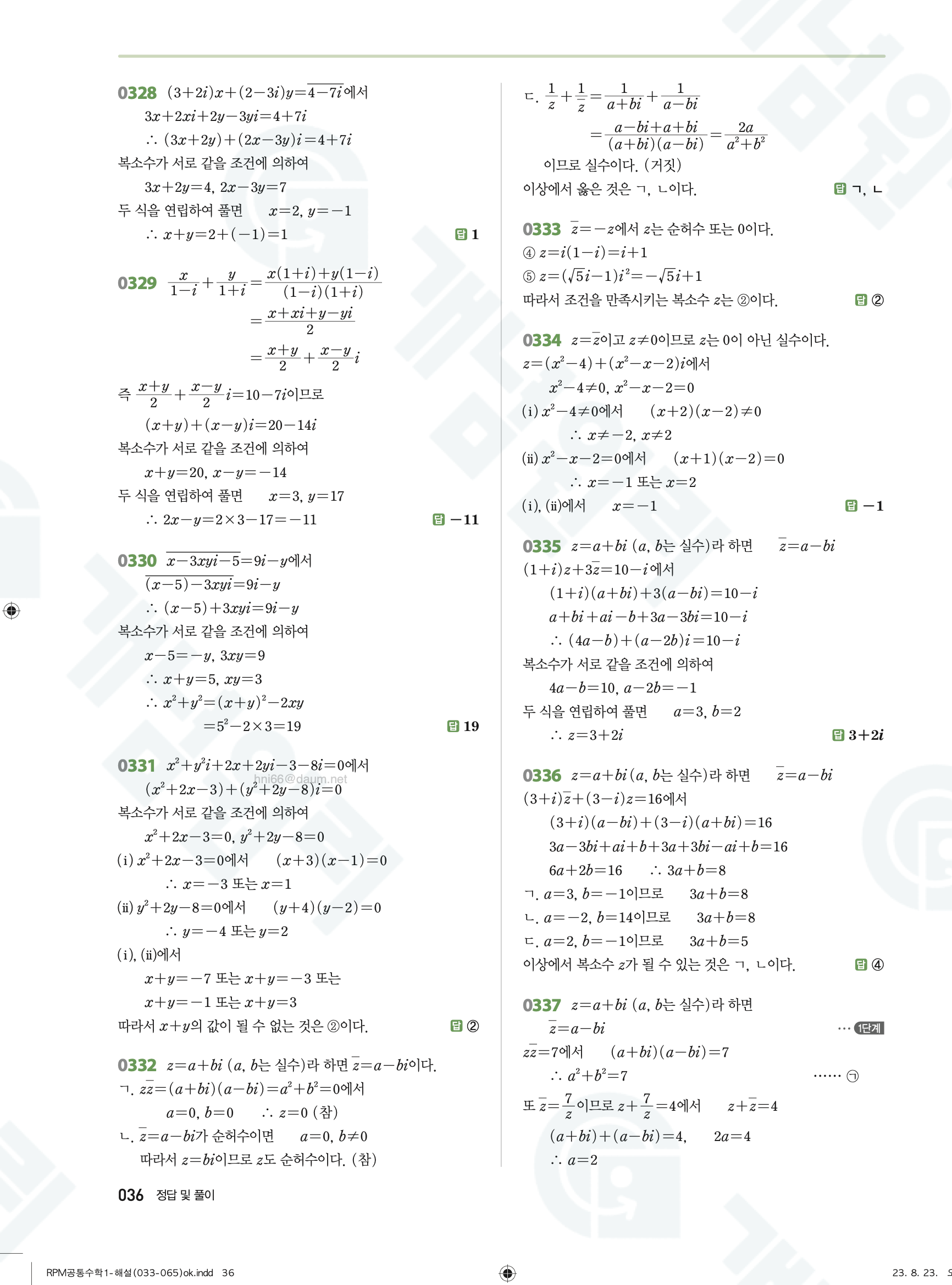 📥 알피엠 RPM 공통수학1 답지 해설 풀이 빠른답지 PDF 다운로드