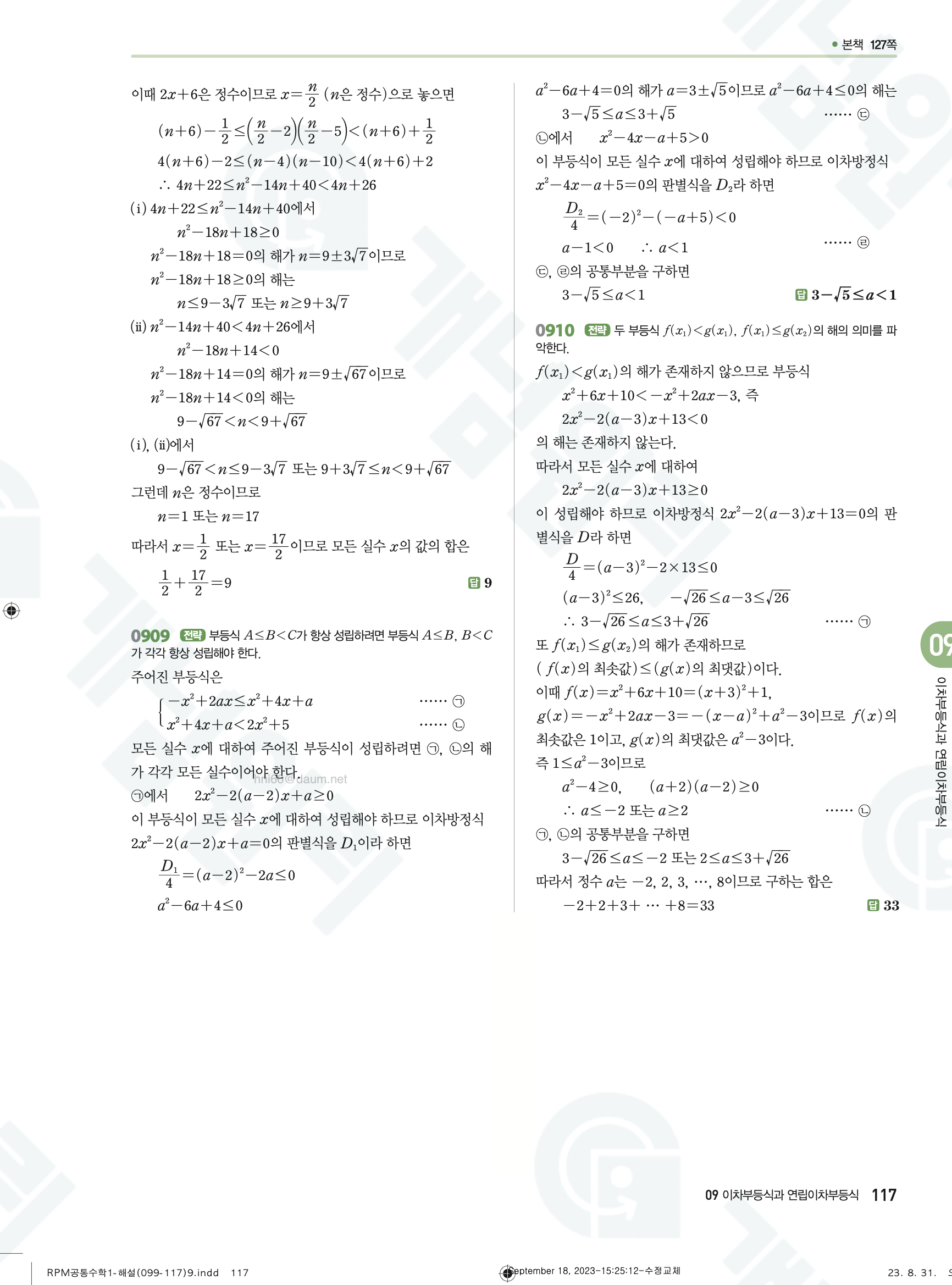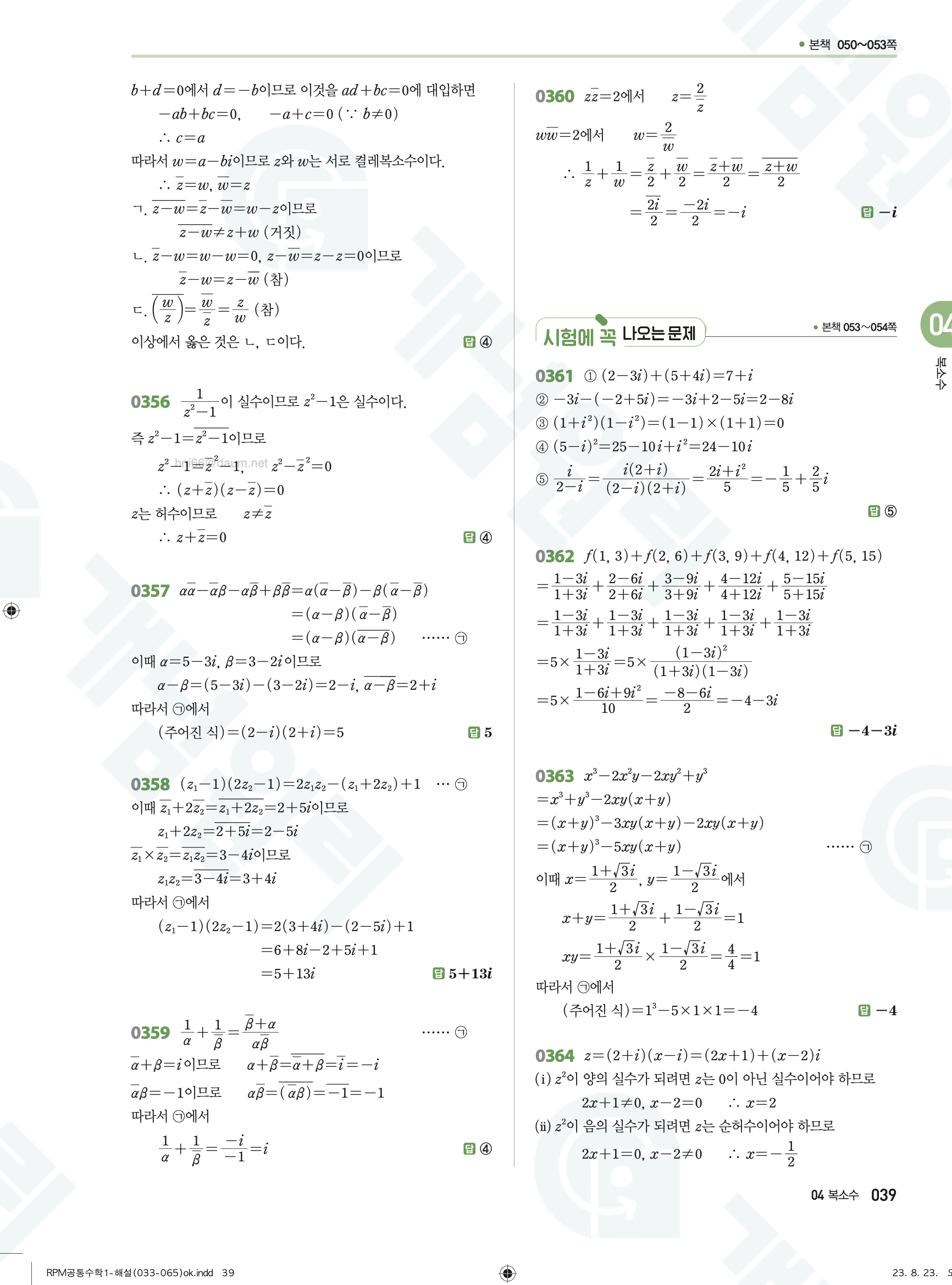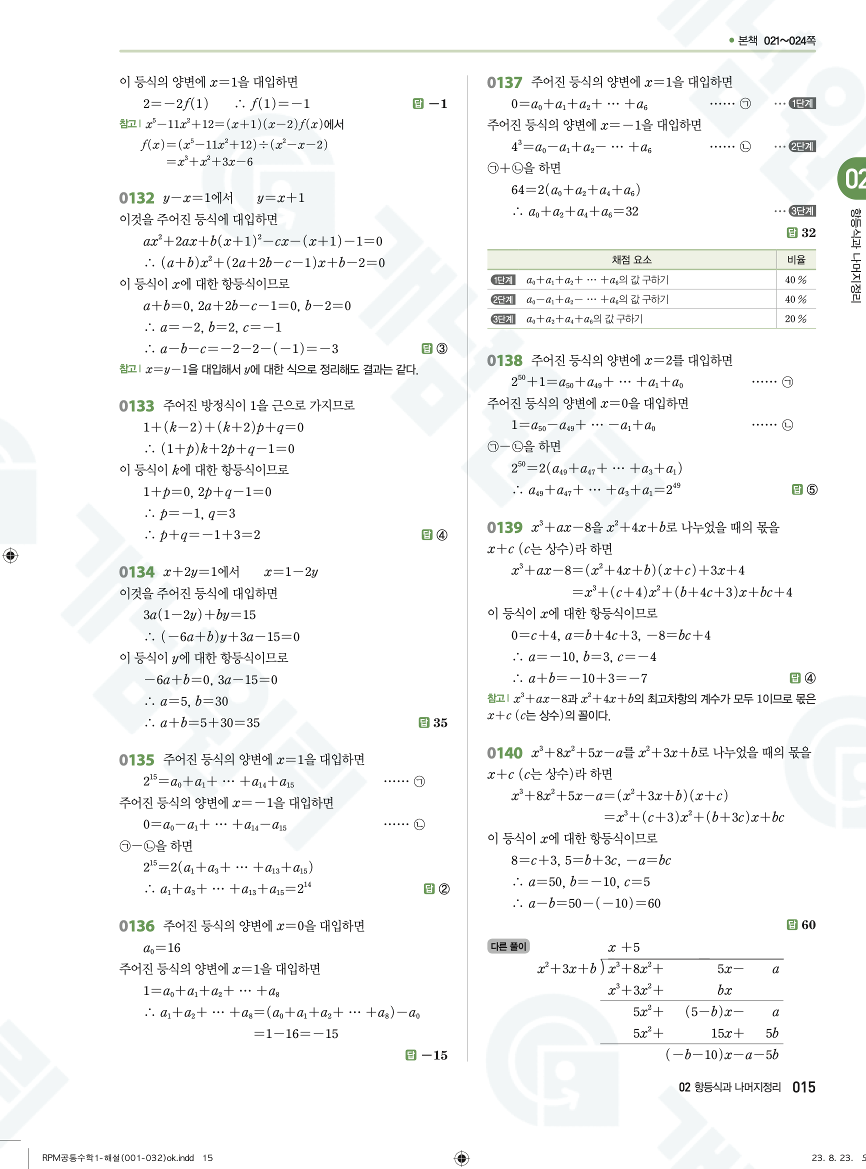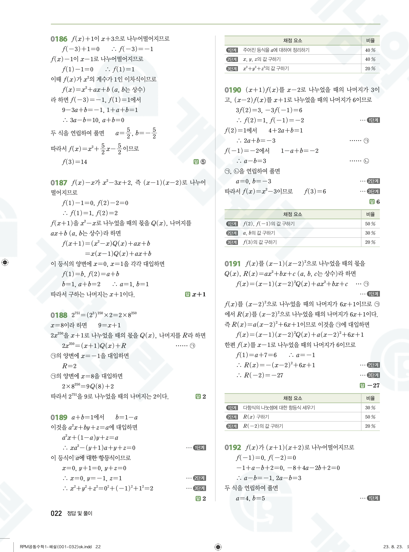 📌 알피엠 RPM 공통수학1 해설 PDF 다운로드