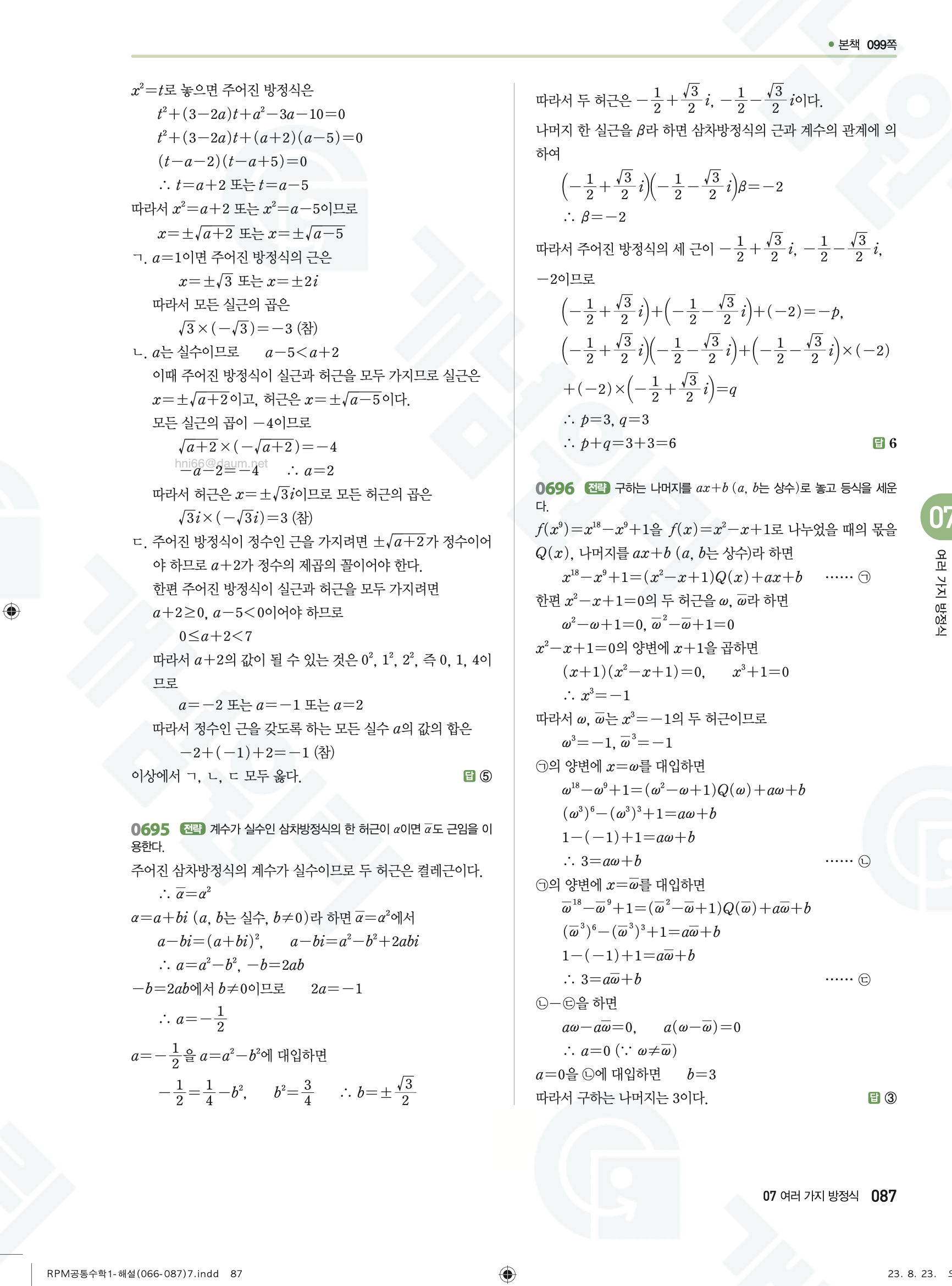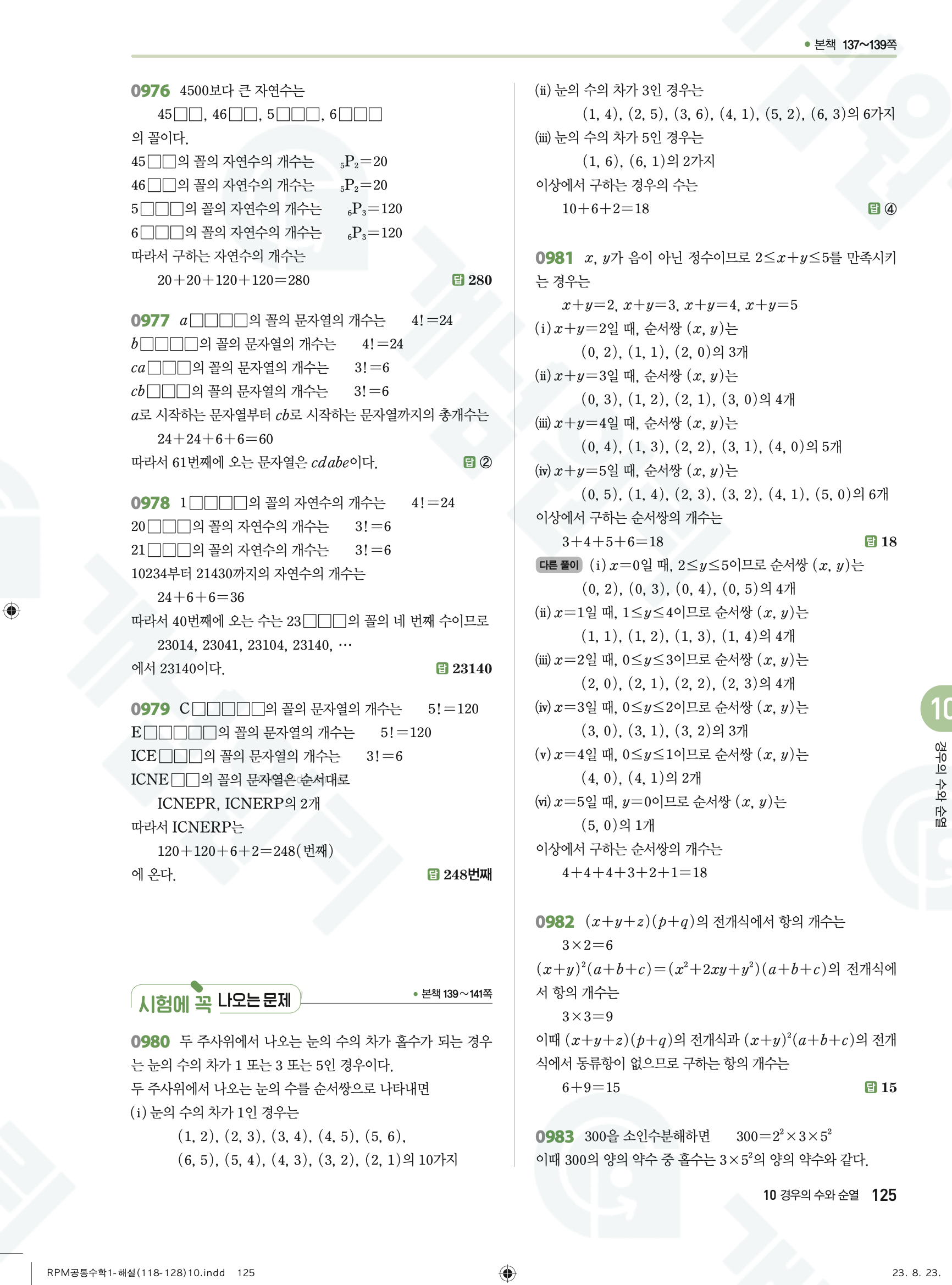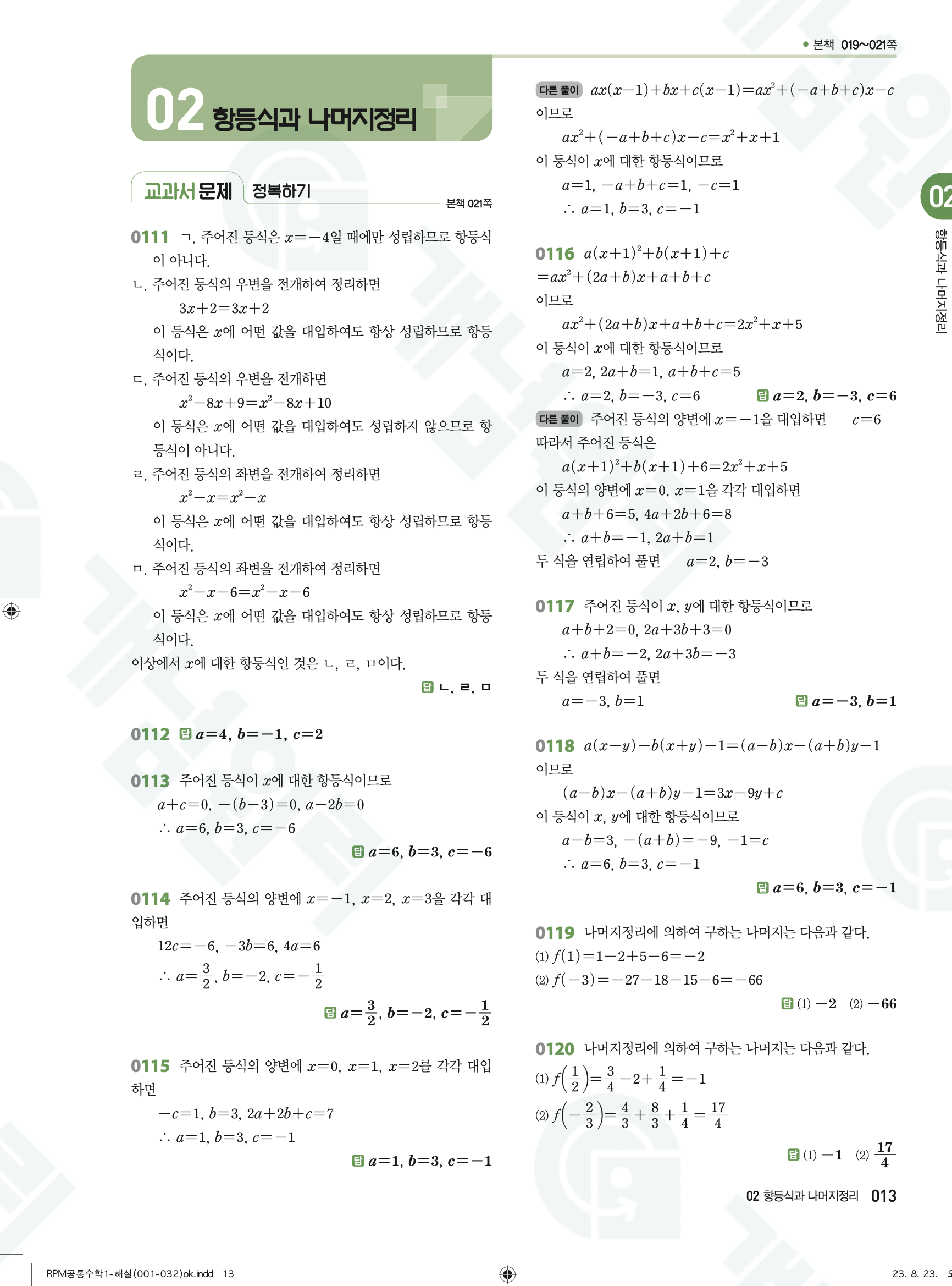 📌 알피엠 RPM 공통수학1 해설 PDF 다운로드