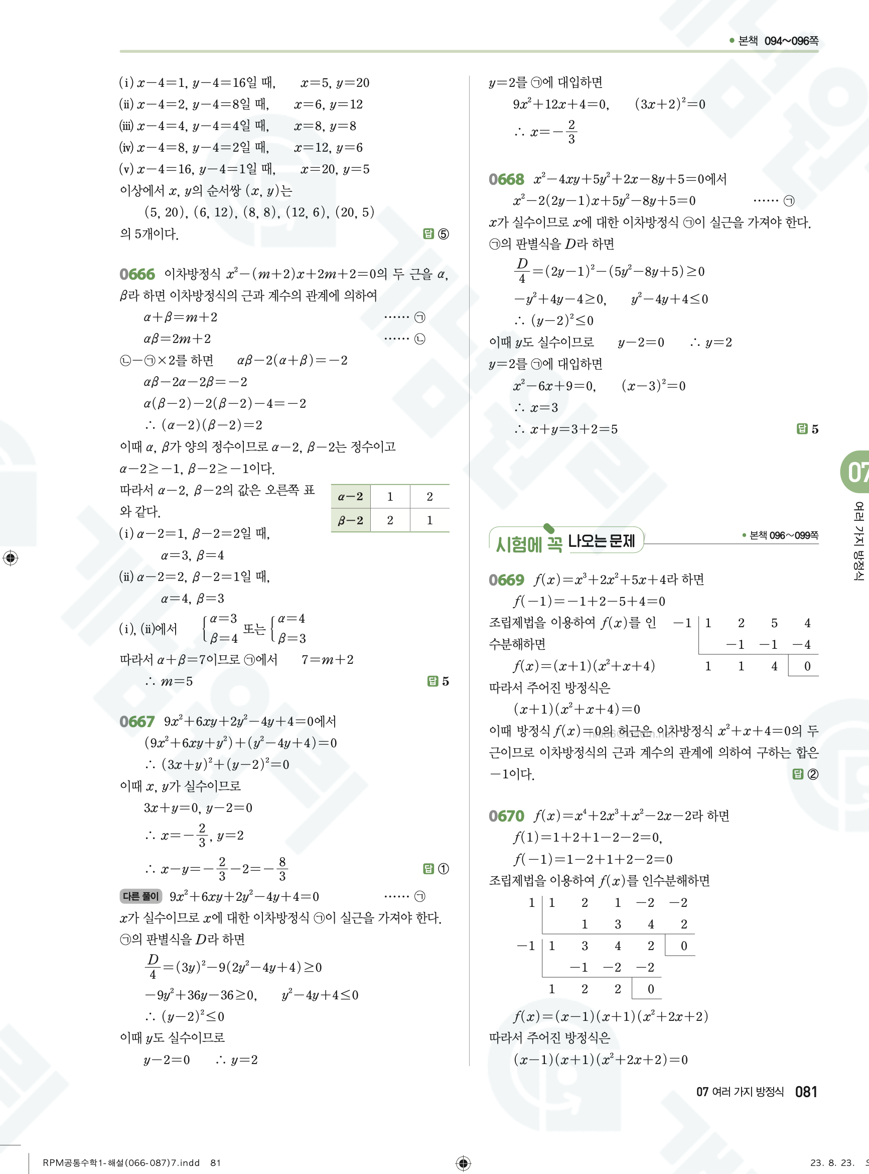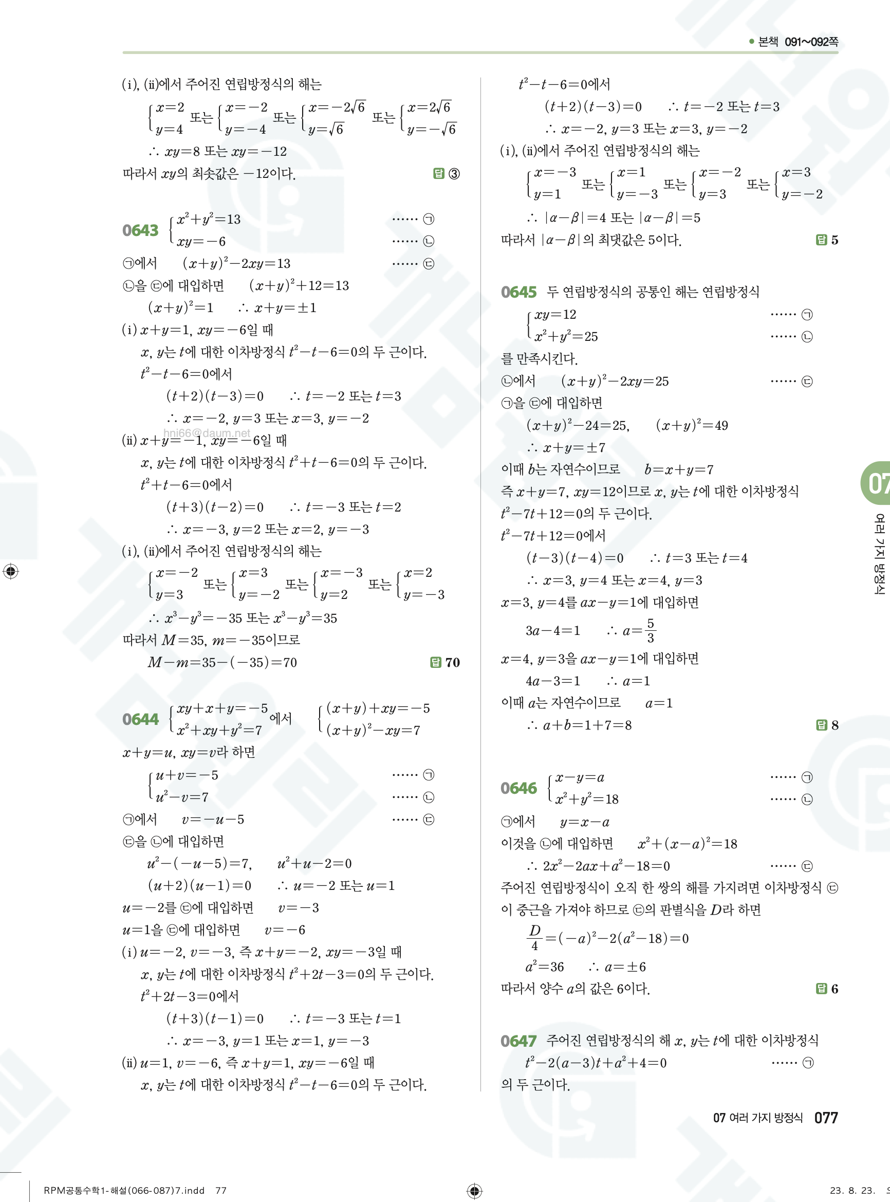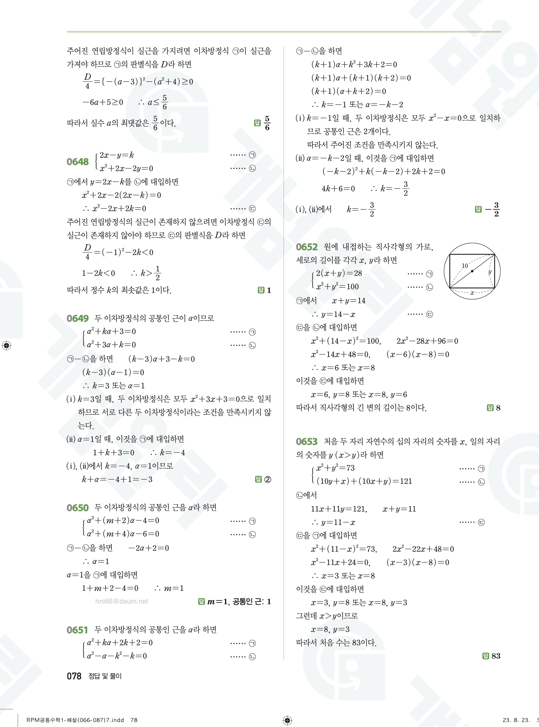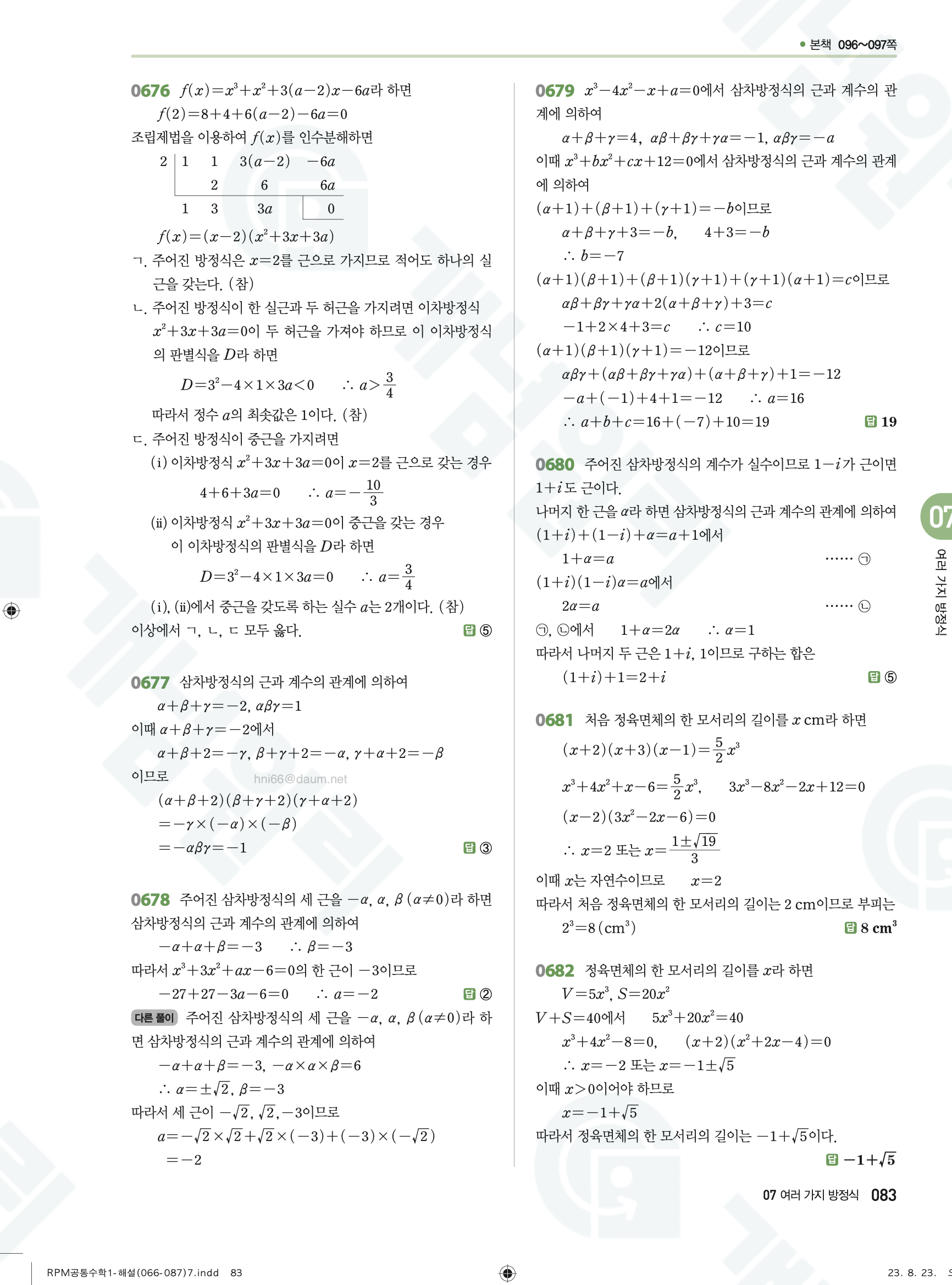 📌 알피엠 RPM 공통수학1 해설 PDF 다운로드