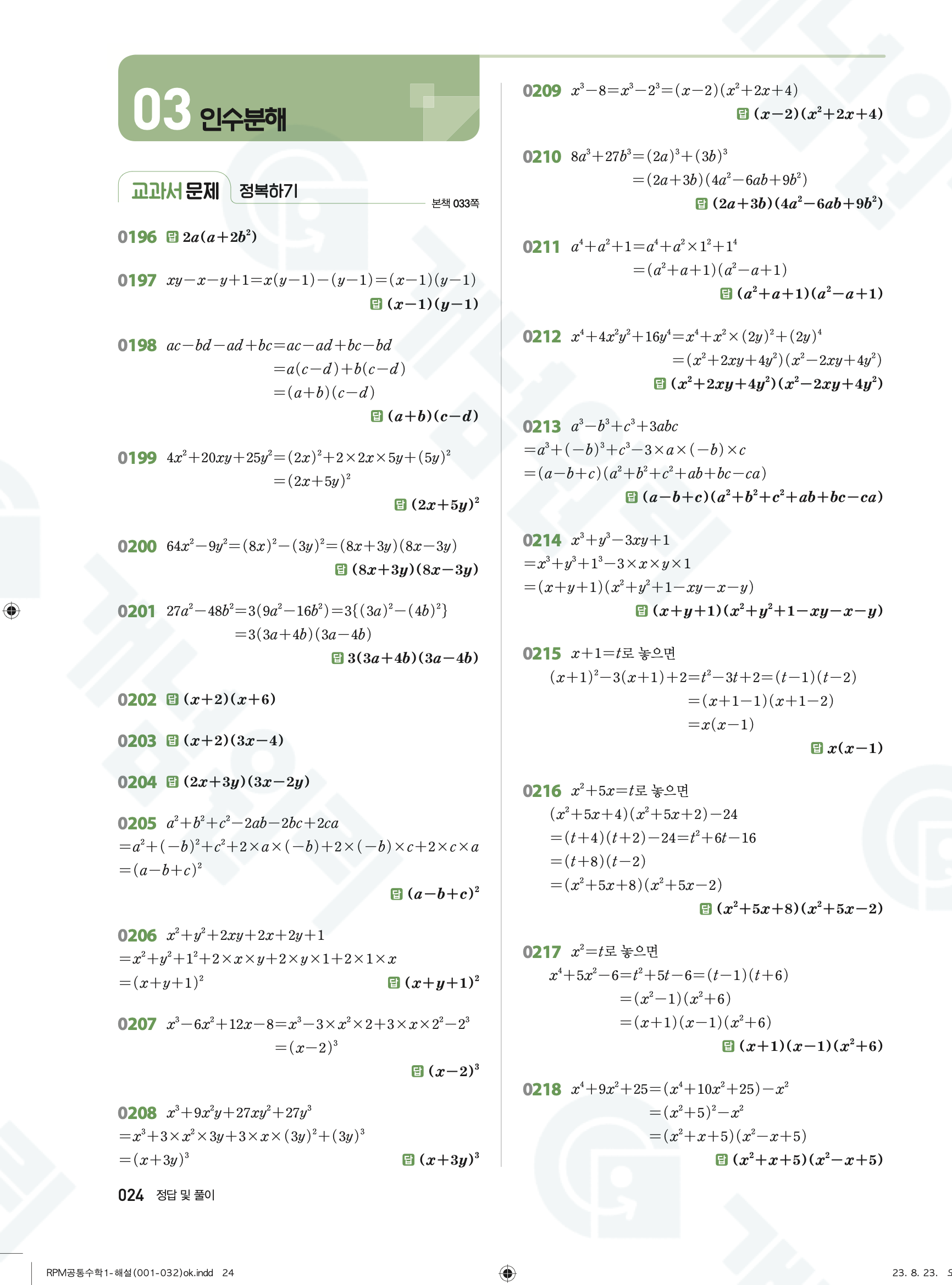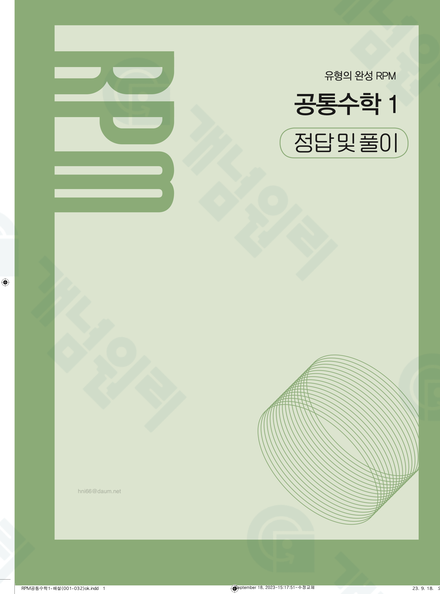 🔗 알피엠 RPM 공통수학1 빠른답지 PDF 다운로드