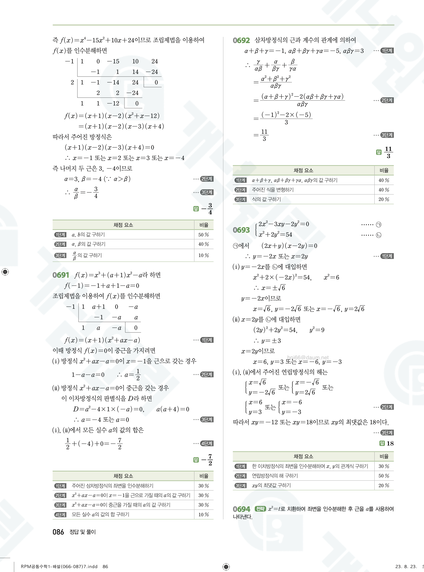 📌 알피엠 RPM 공통수학1 정답 및 풀이 PDF 다운로드