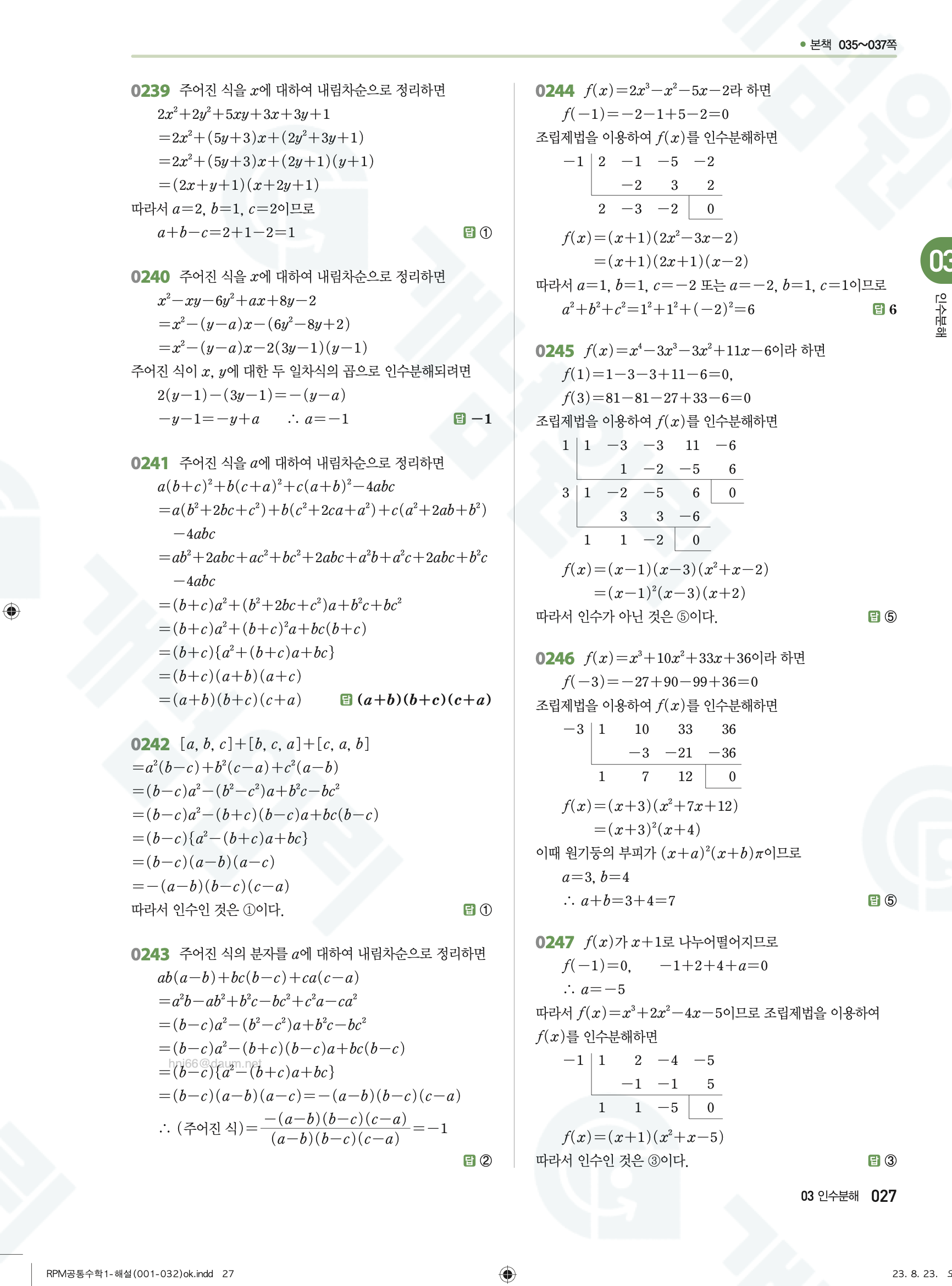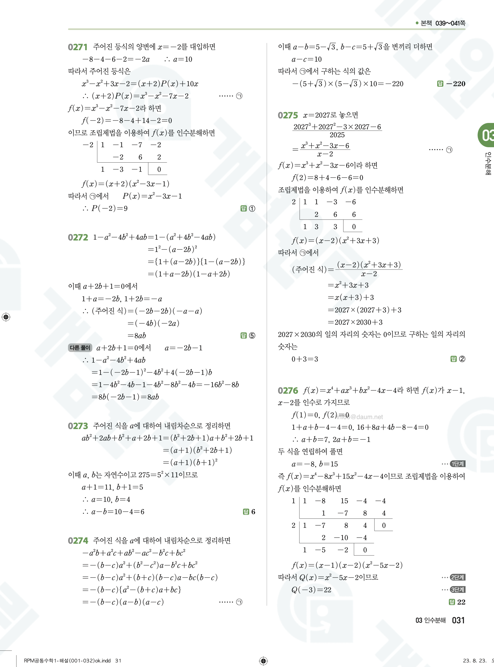 #2025최신개정 #알피엠 #RPM #공통수학1 #공수1 #답지 #해설 #풀이 #빠른답지 #PDF #다운로드 #수학문제집 #효율적학습 #내신대비 #수능준비