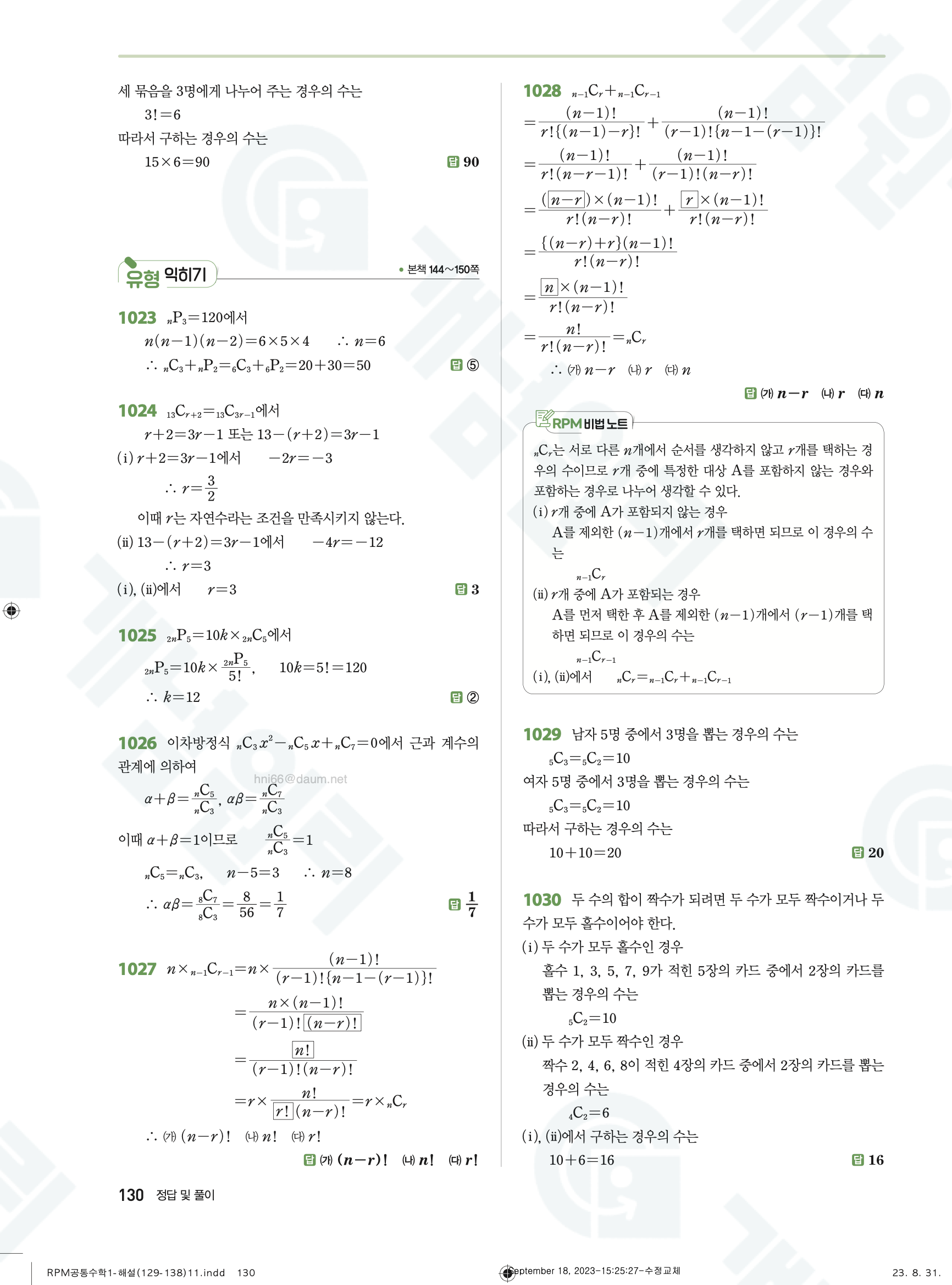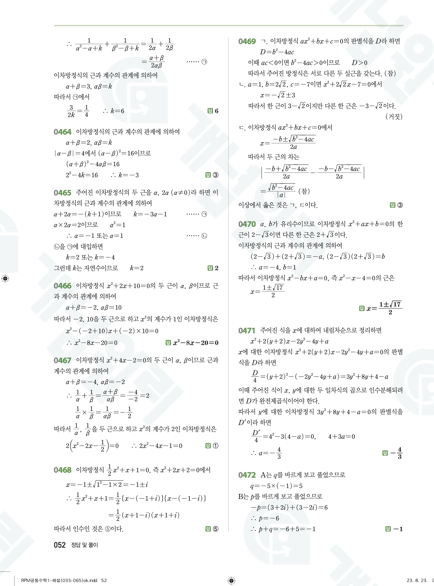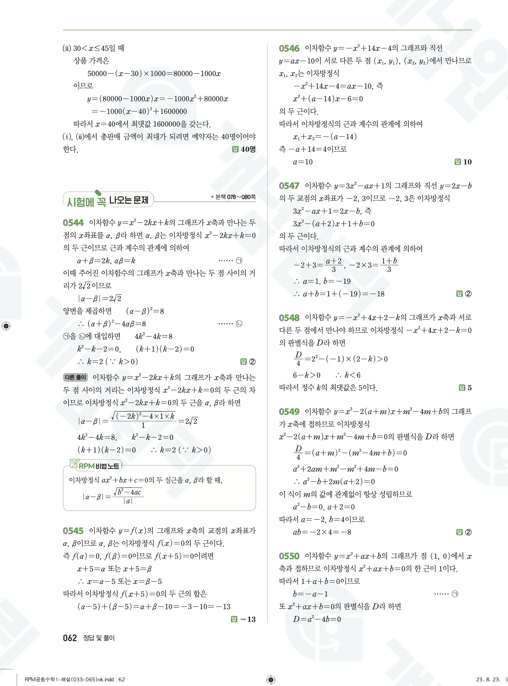 📌 알피엠 RPM 공통수학1 빠른답지 PDF 다운로드