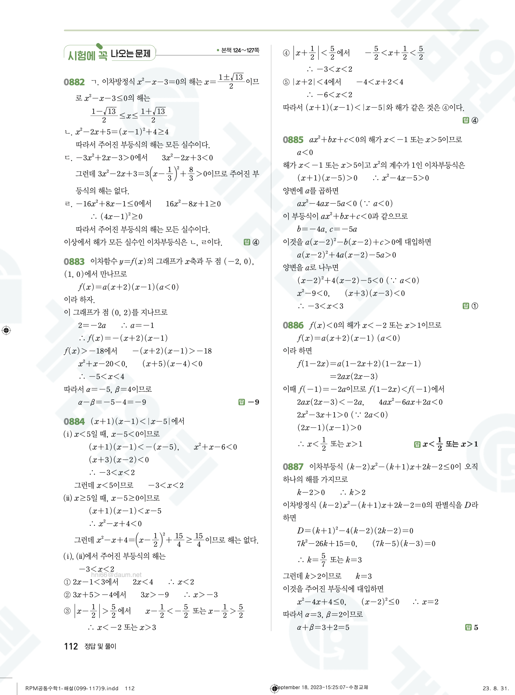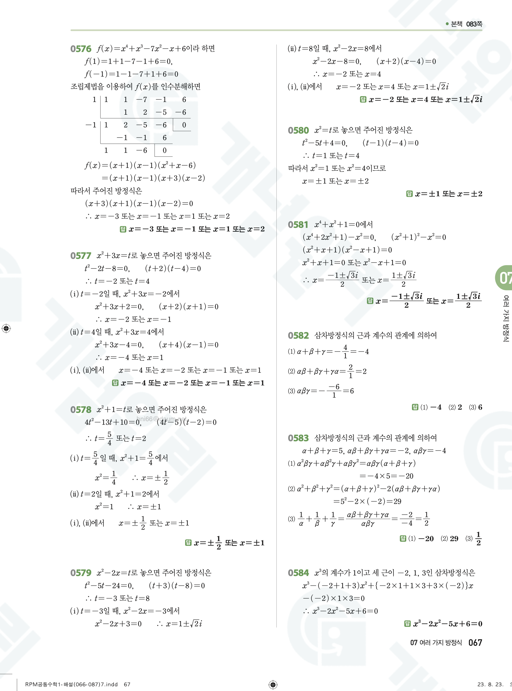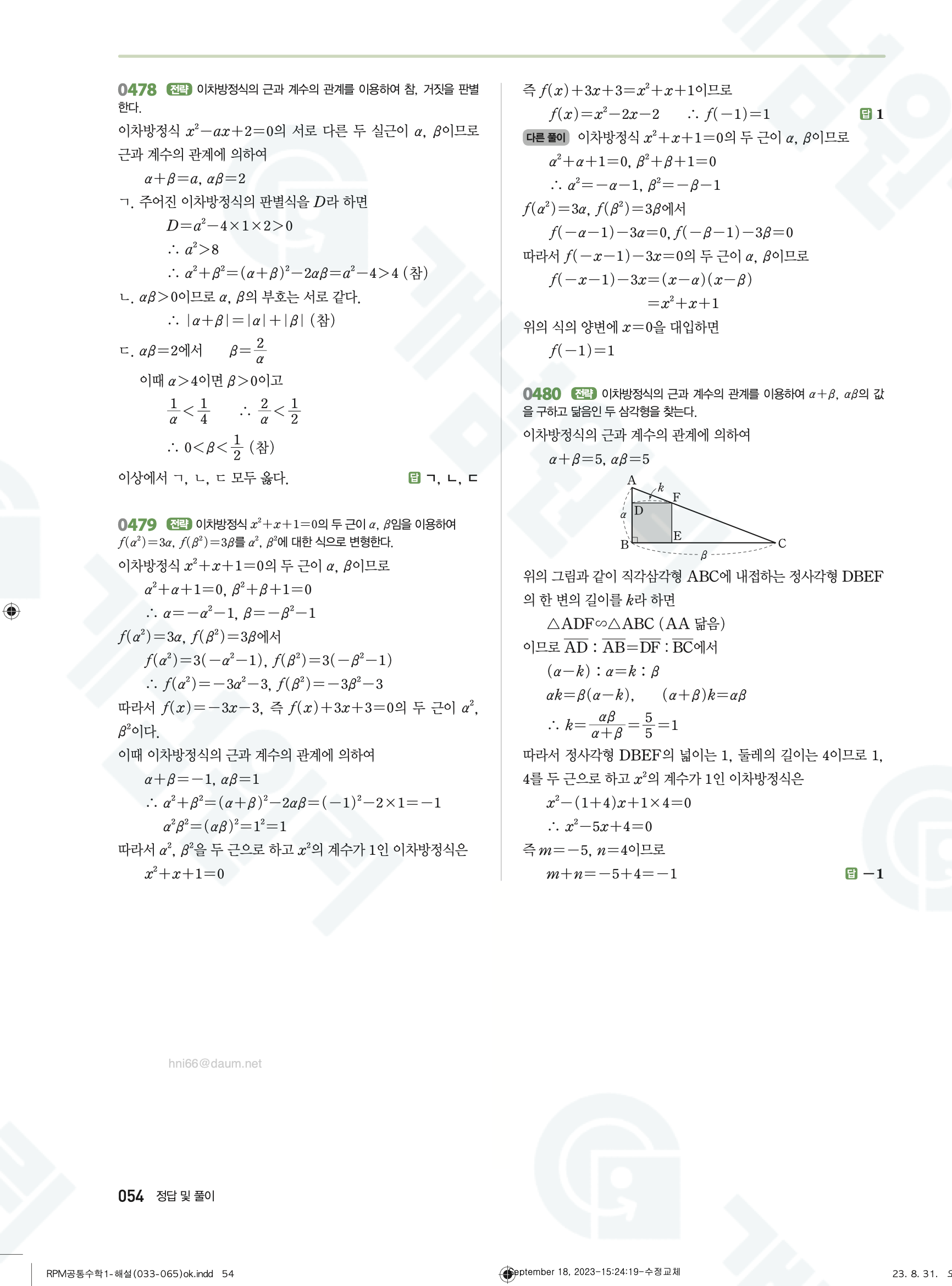 📌 알피엠 RPM 공통수학1 빠른답지 PDF 다운로드