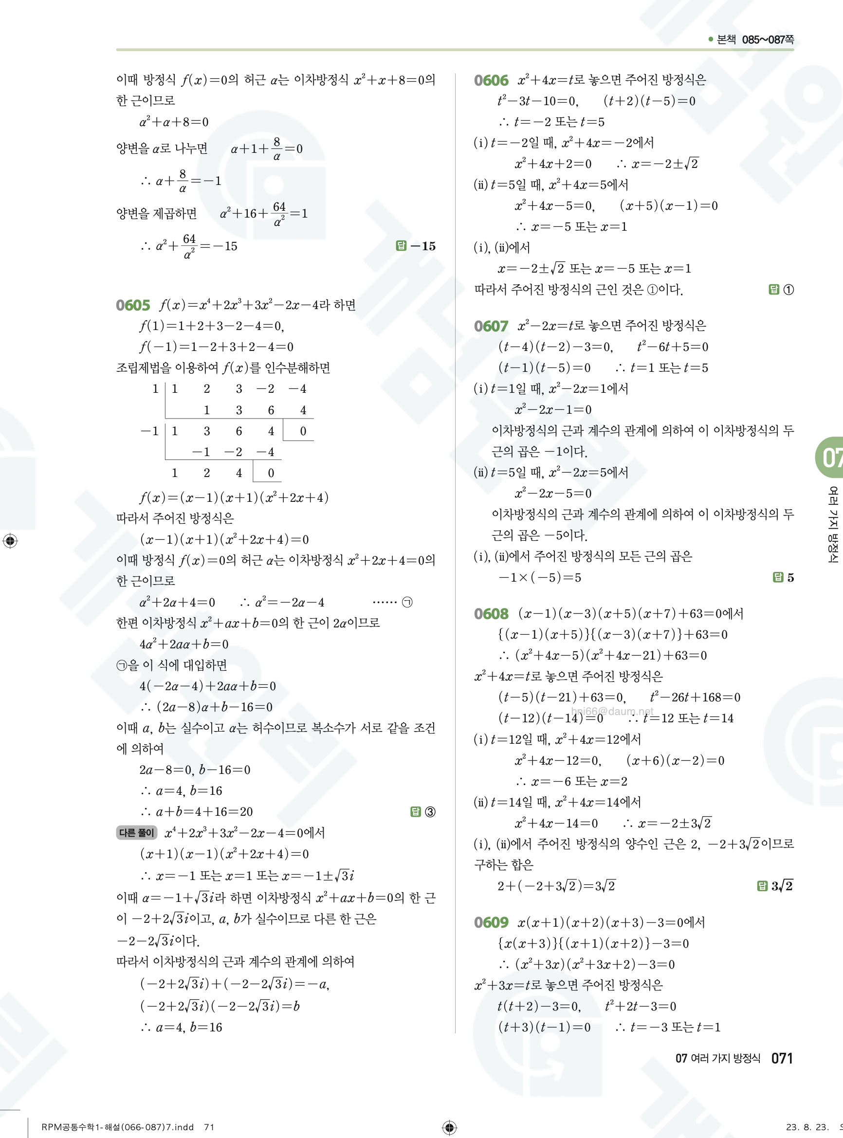 🔗 2025 최신개정 알피엠 RPM 공통수학1 풀이 PDF