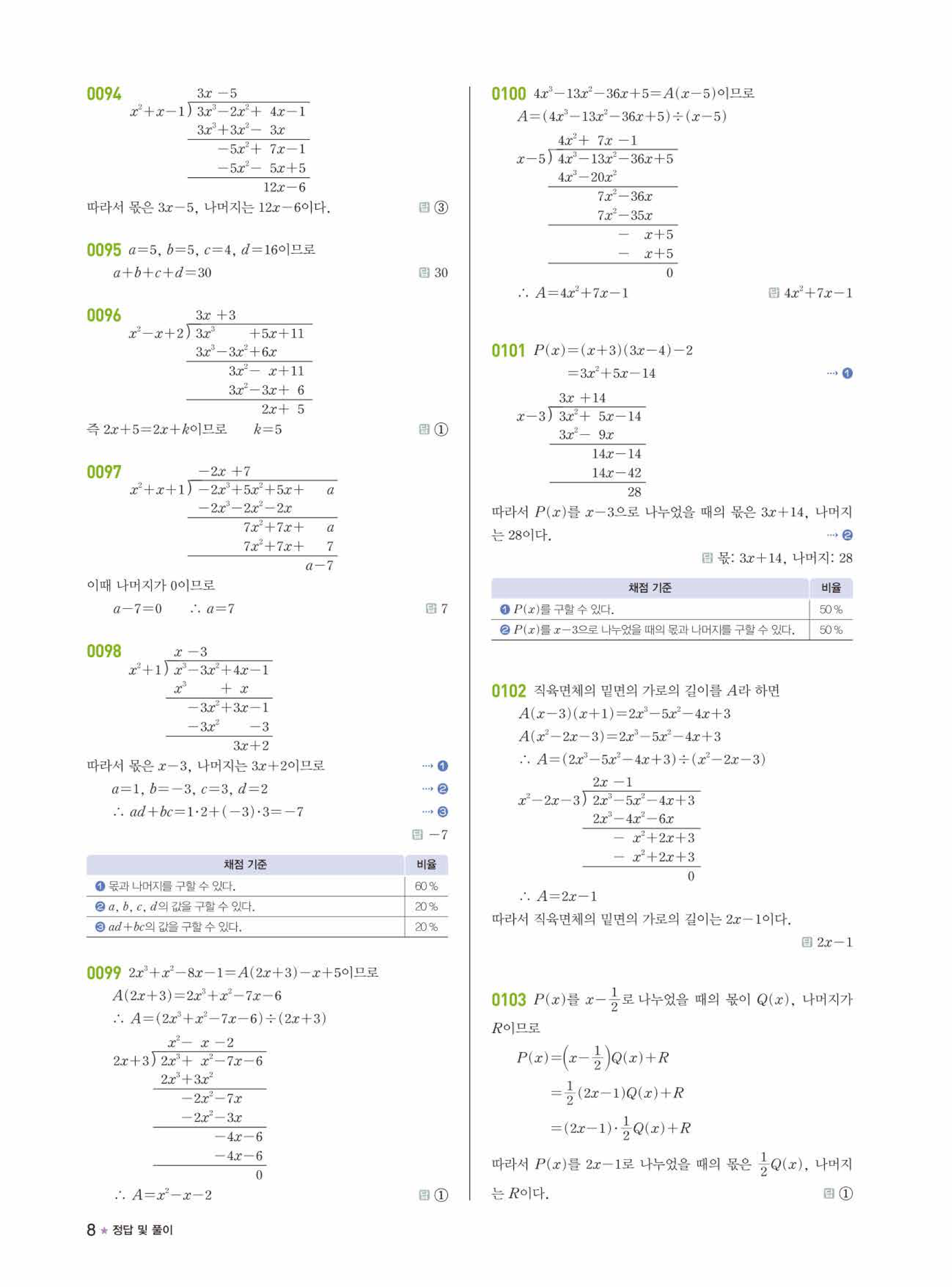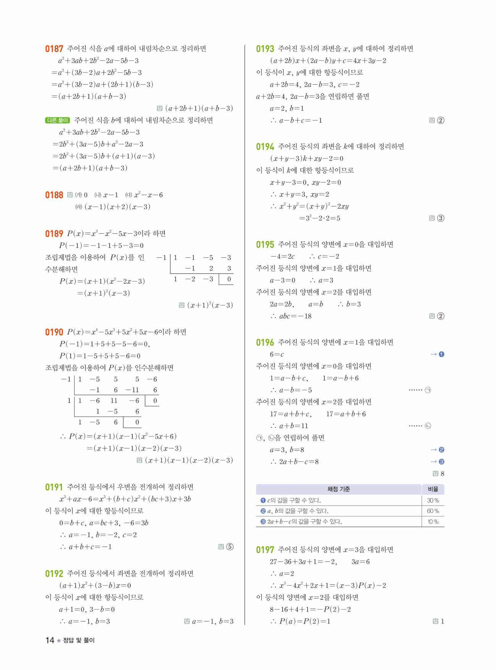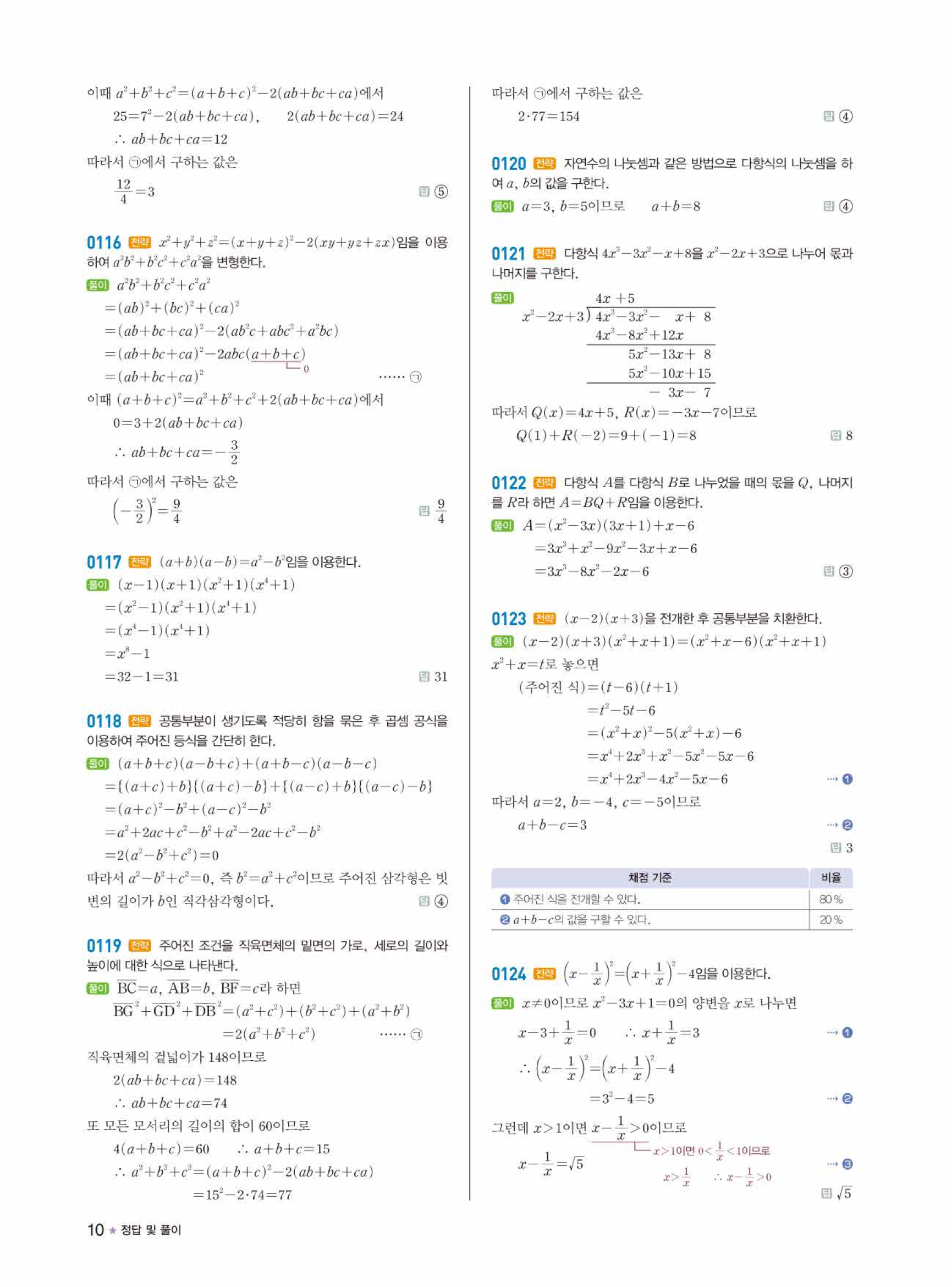 라이트쎈 공통수학1 답지의 주요 장점