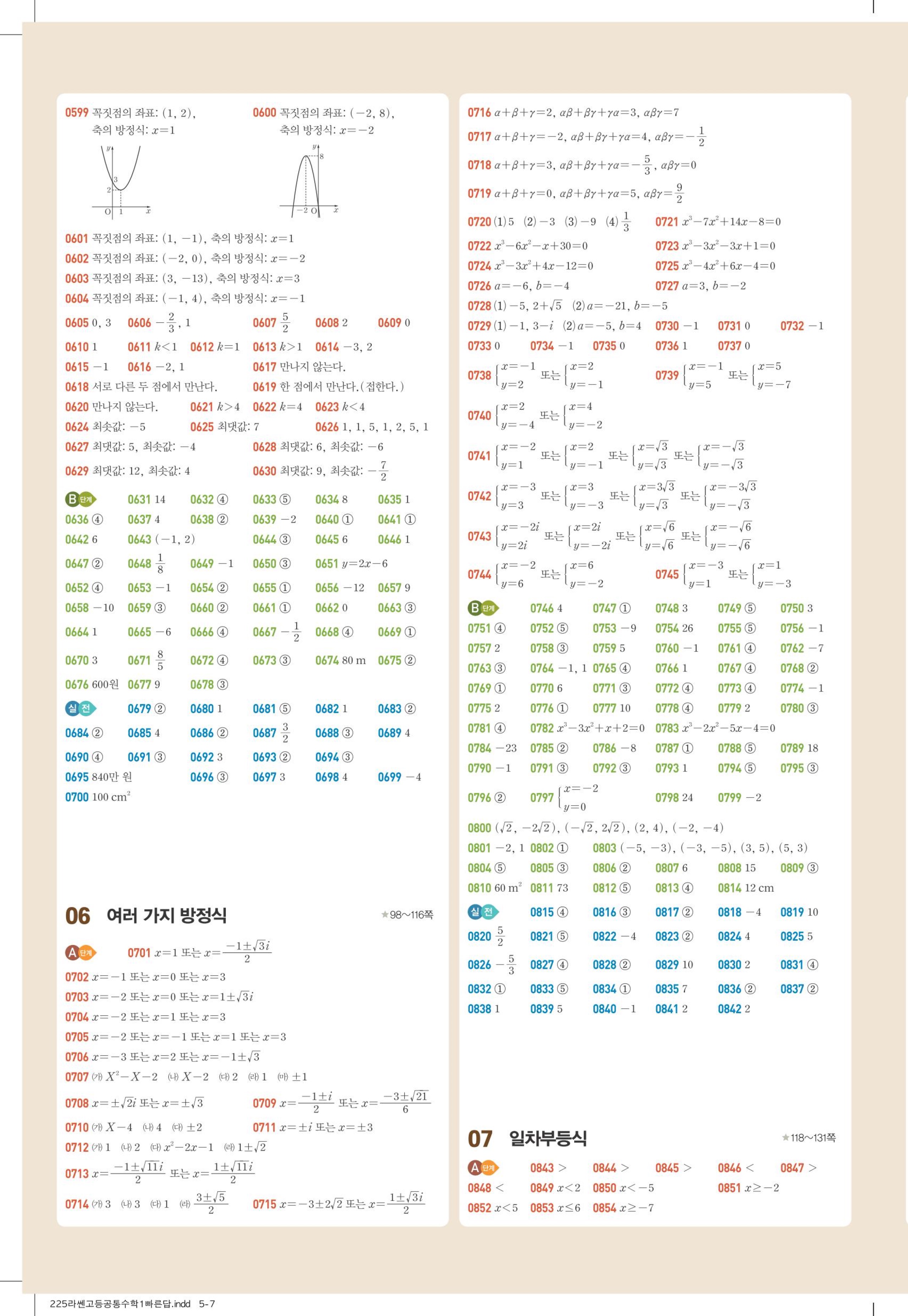 📢 2025 최신 개정 라이트쎈 공통수학1 라쎈 공수1 답지 해설 풀이 빠른답지 PDF 다운로드