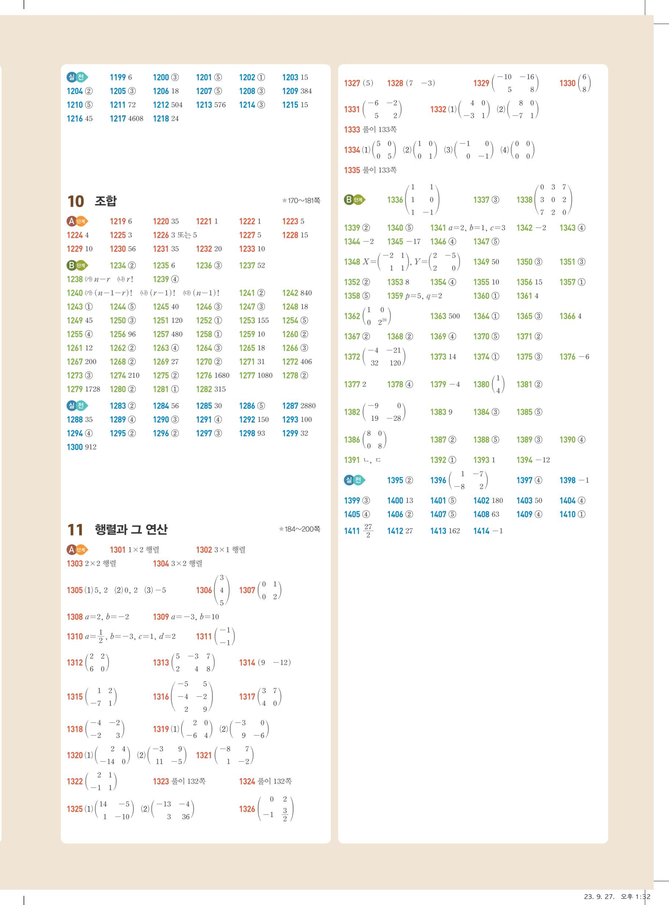 라이트쎈 공통수학1 답지 PDF 다운로드 (2025년, 빠른정답, 행렬 포함) – 답지