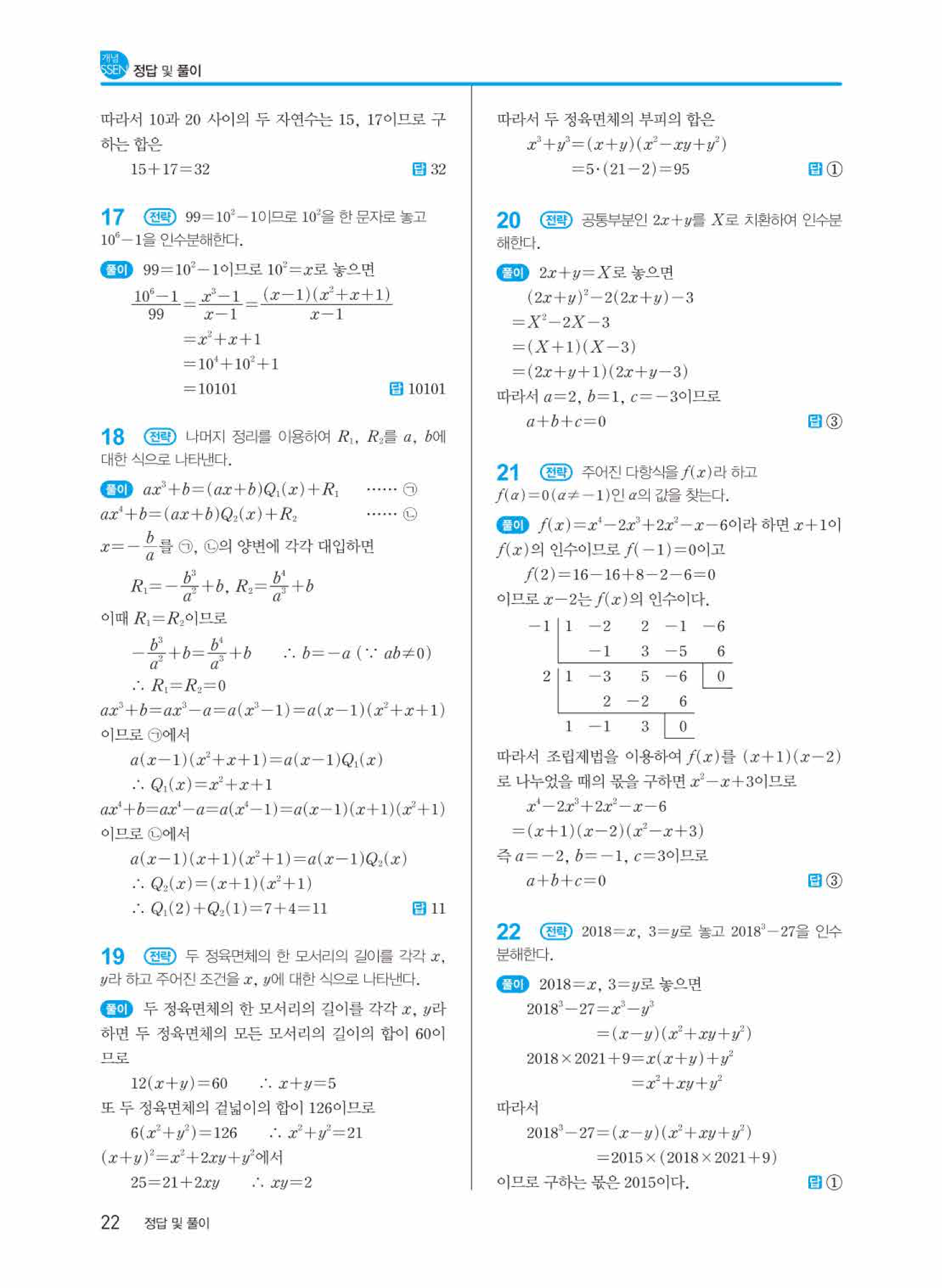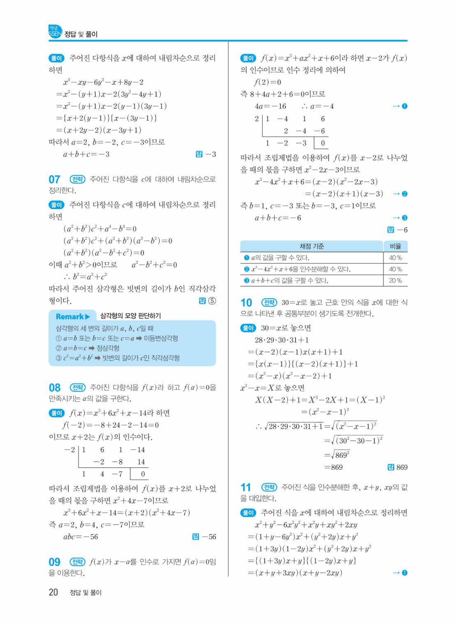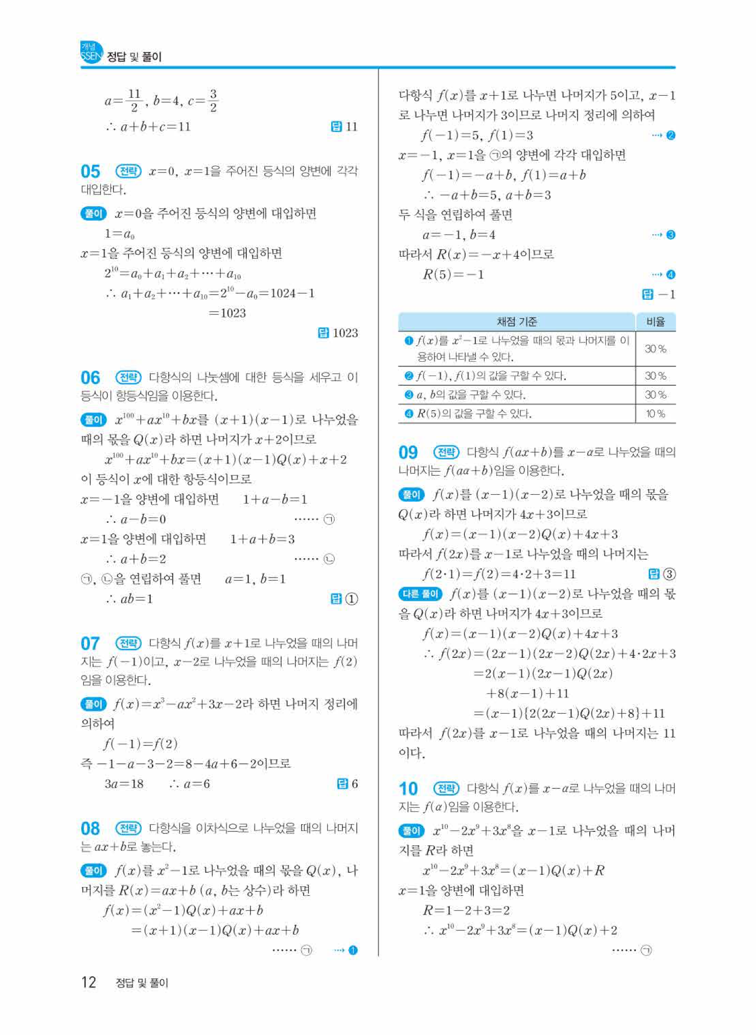 개념쎈 공통수학1 답지의 주요 장점