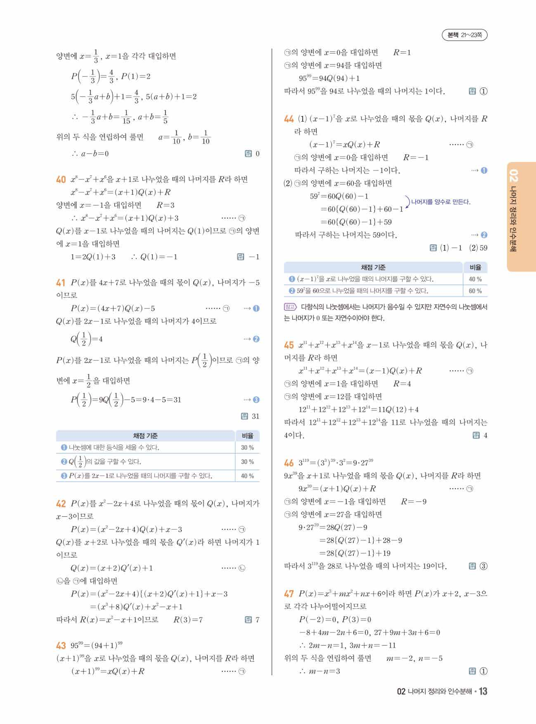 답지는 문제별로 풀이 과정을 세부적으로 제공하여, 학생들이 문제 해결 과정에서 놓친 부분을 바로잡고 더 나은 학습을 할 수 있도록 돕습니다. 복잡한 개념도 쉽게 이해할 수 있도록 설명합니다. - 오답 정리 및 반복 학습