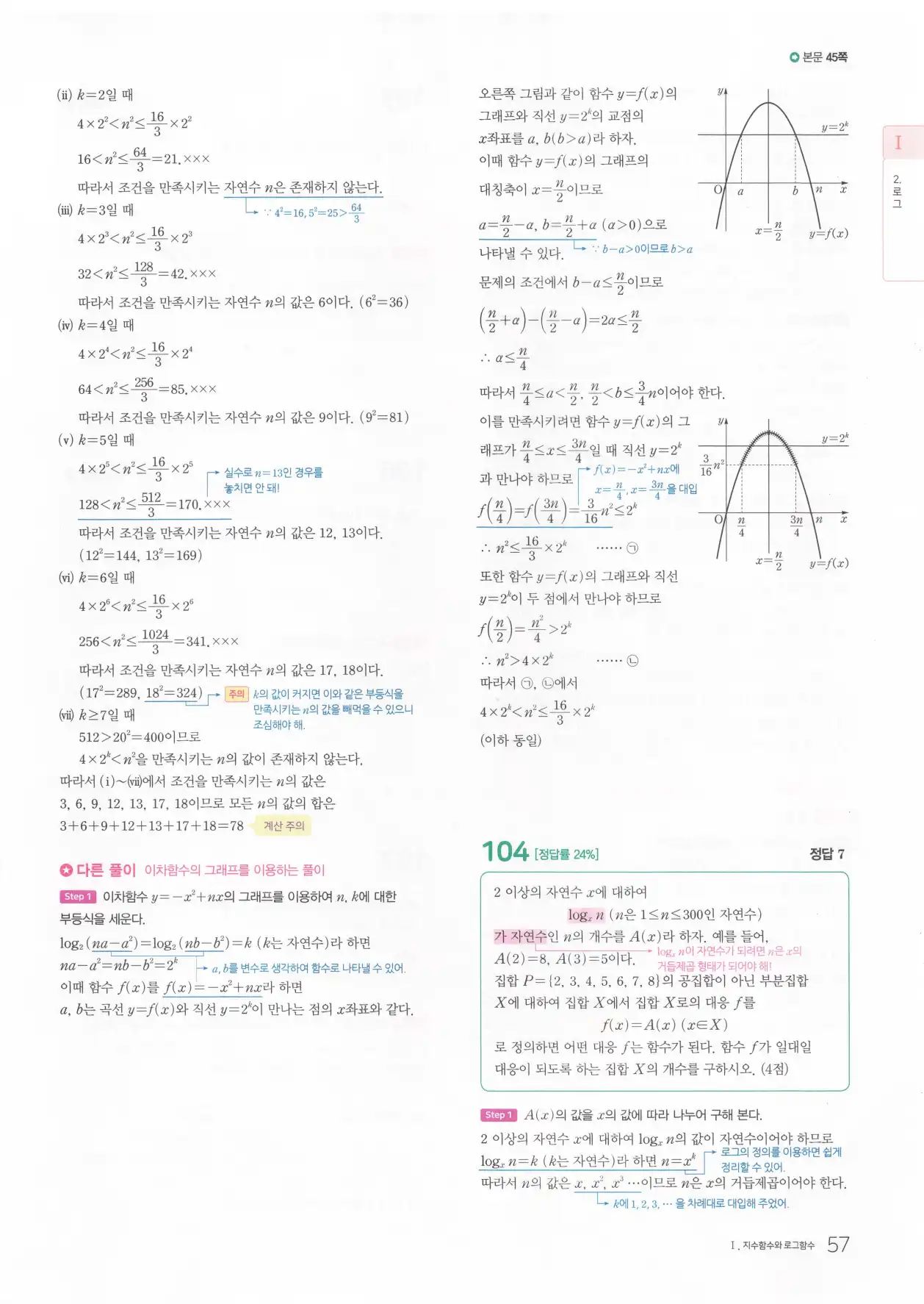 | 쎈수학2답지 0045번 고퀄리티 풀이영상제공 |