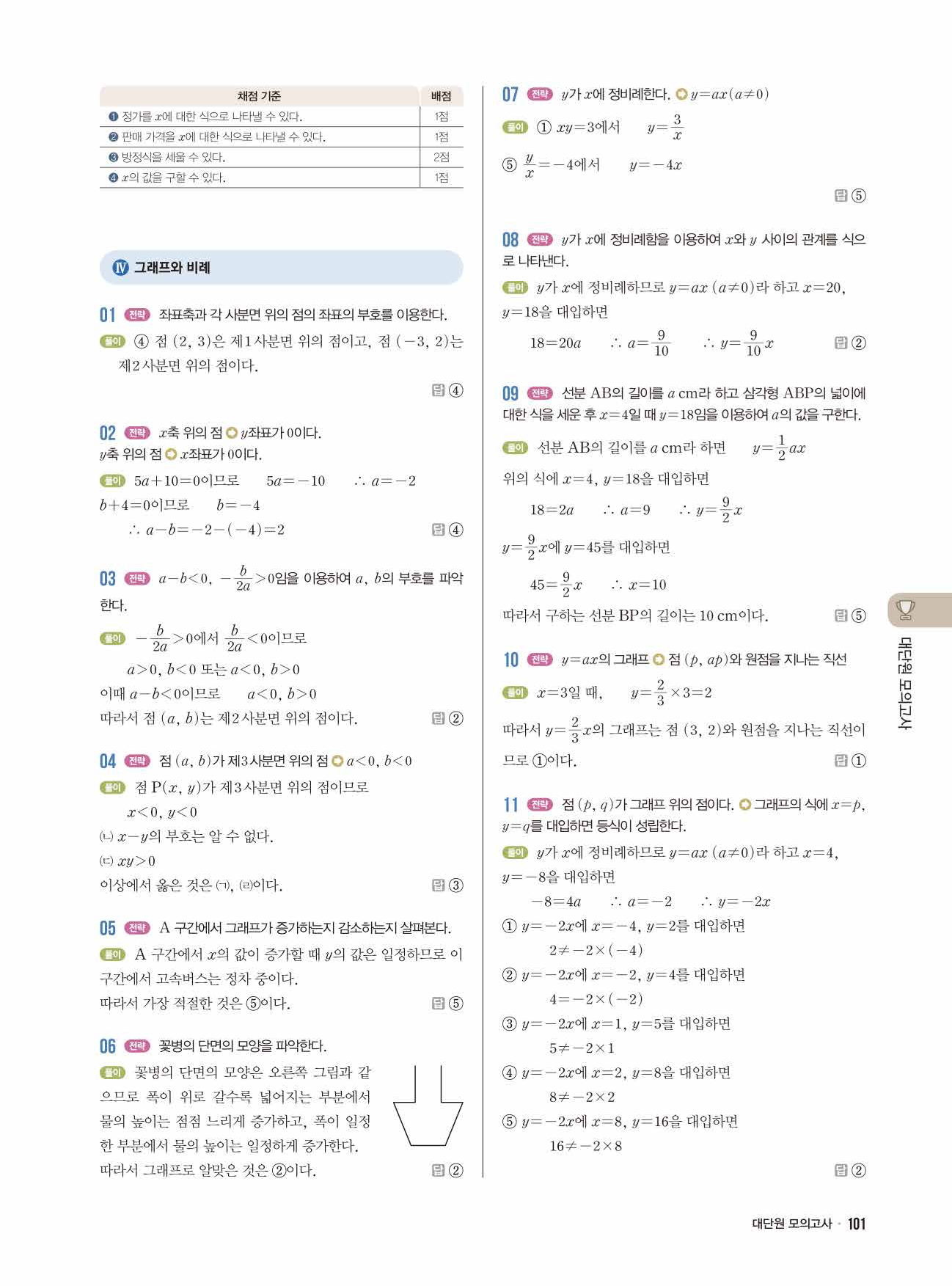 22개정 라이트쎈 중등수학 1-1 답지 해설 바로보는 사진답지 모바일최적화