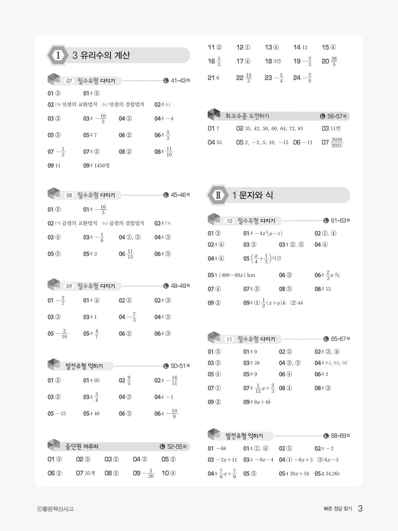 우공비큐 중1상 1-1 답지 해설지 사진답지 빠른답지 모바일최적화