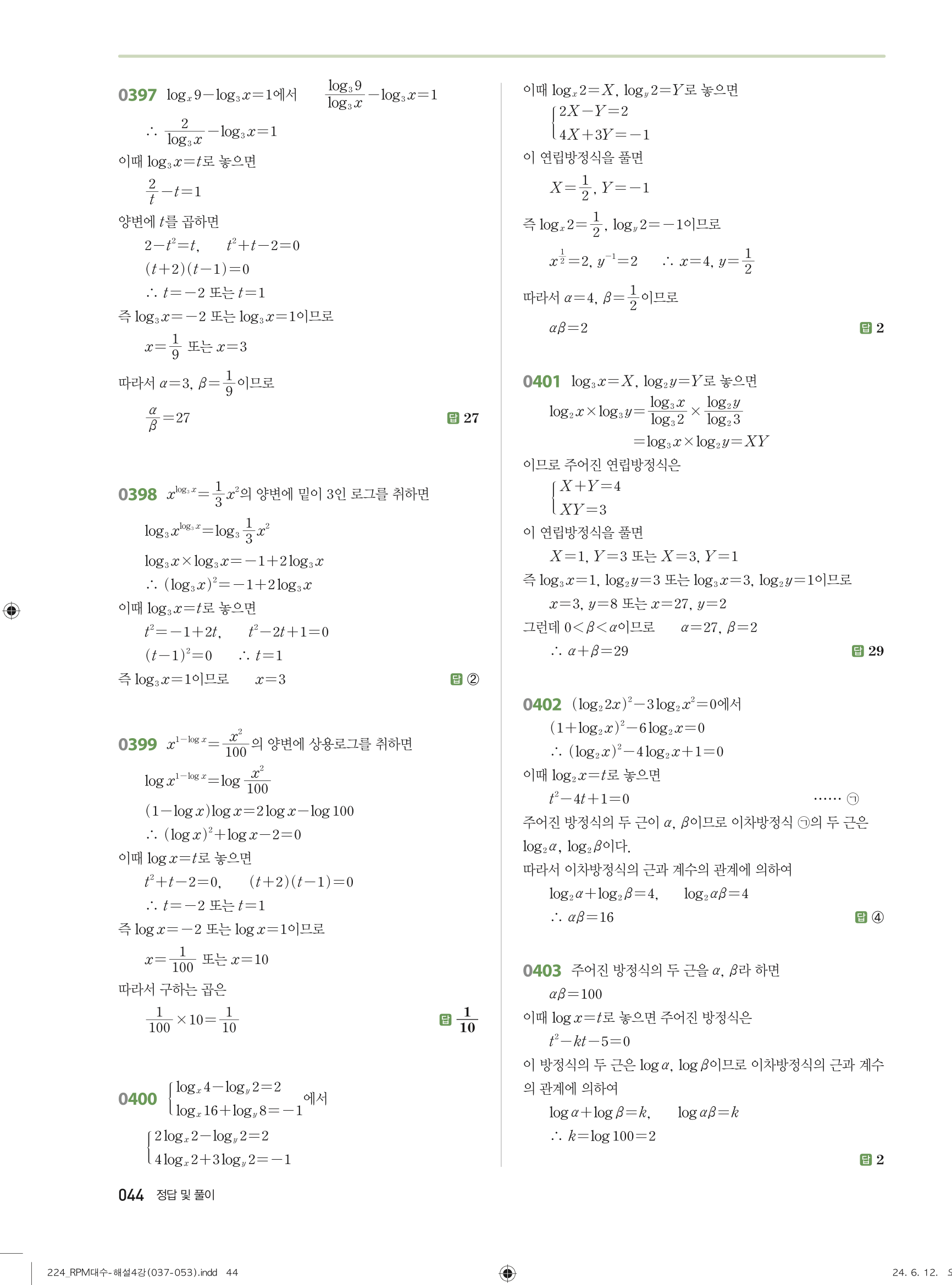 #개념원리 #알피엠 #대수 #답지 #해설 #풀이 #빠른답지 #PDF #다운로드 #수학문제집 #효율적학습 #내신대비 #수능준비