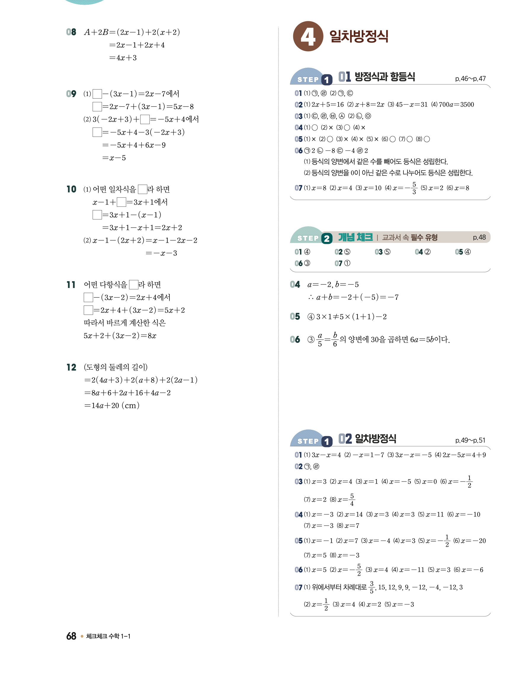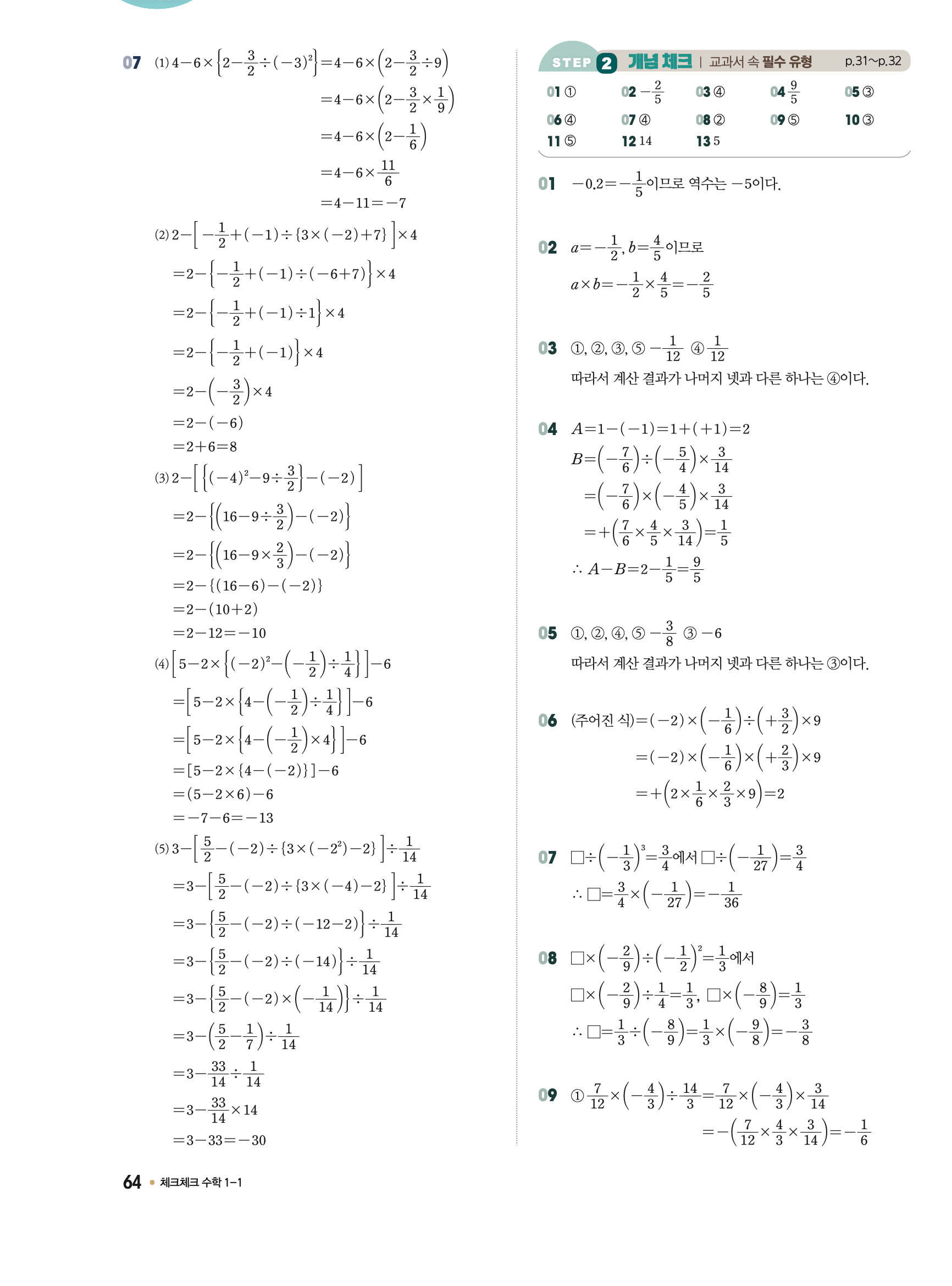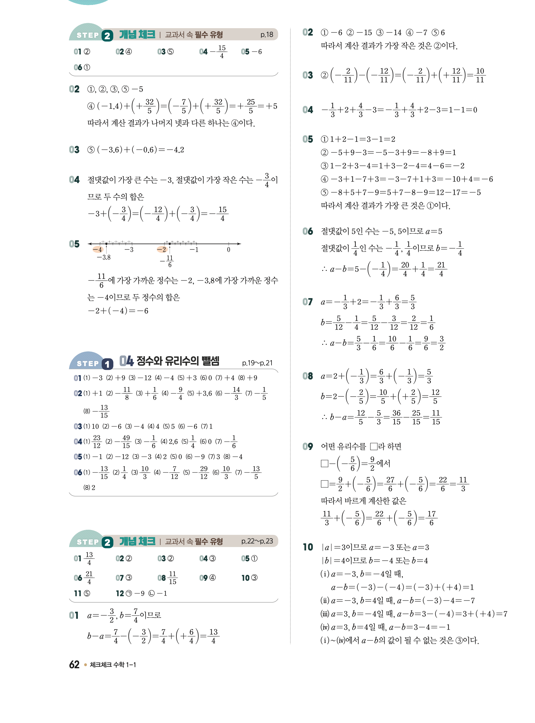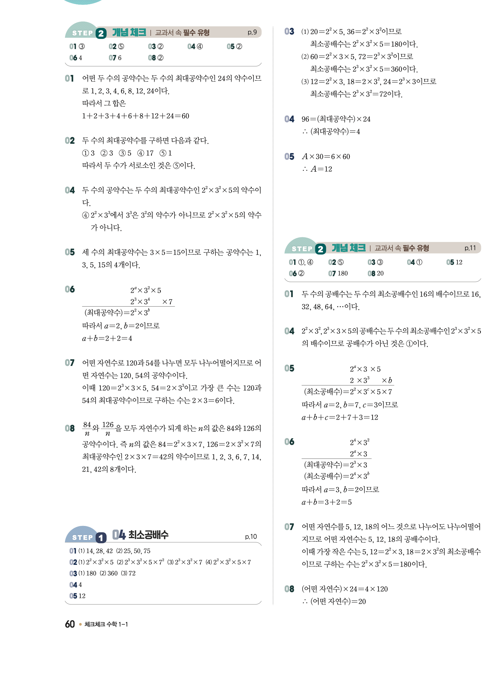 22개정 체크체크 수학 중1-1 답지 해설 바로보는 사진답지 모바일최적화 수정필요