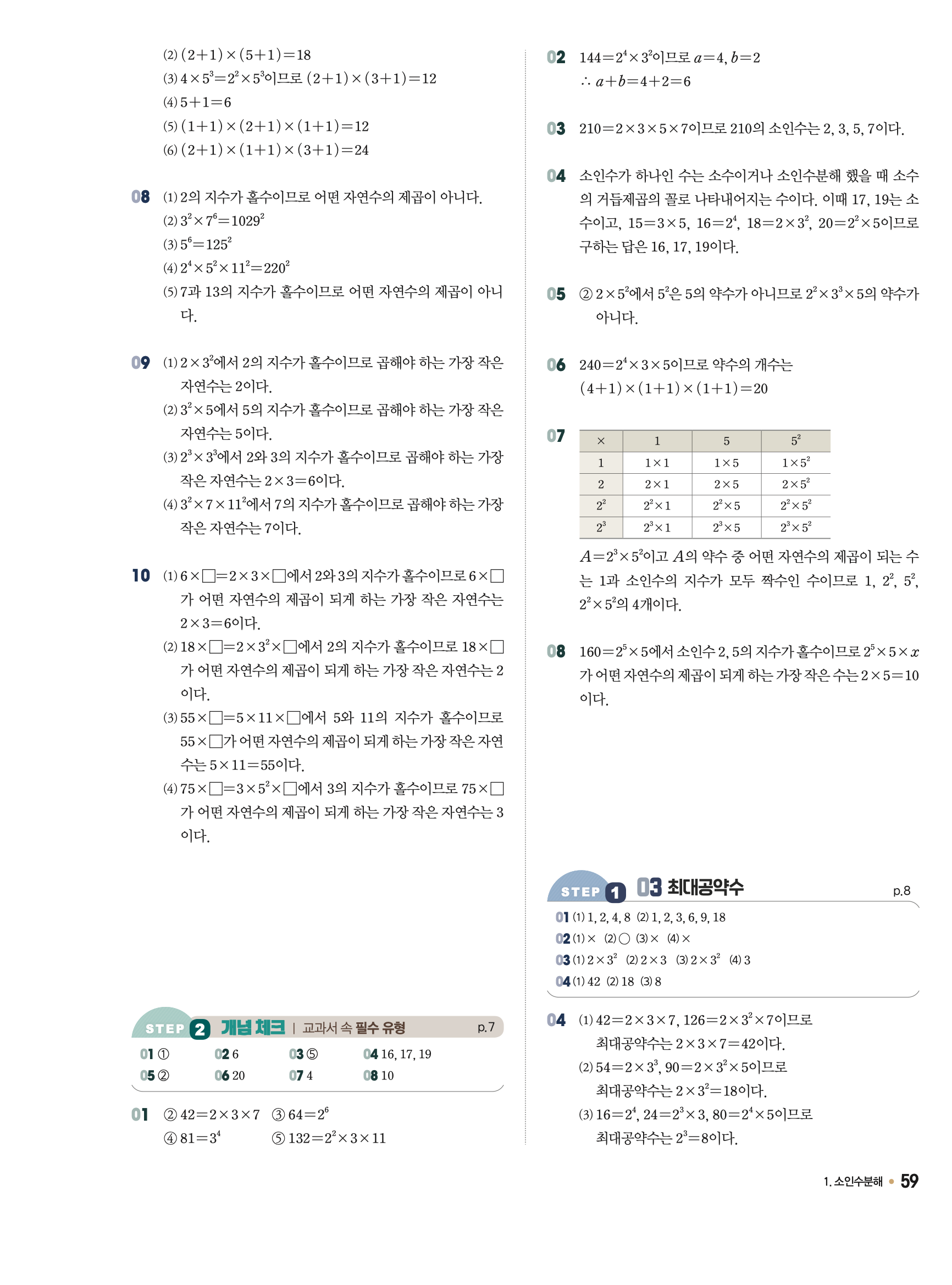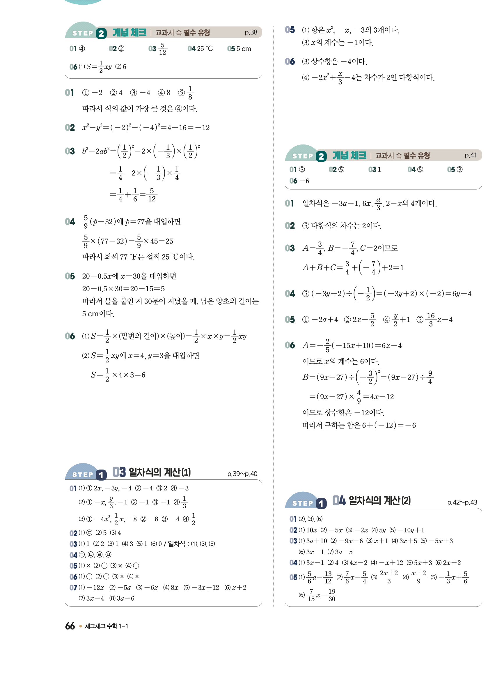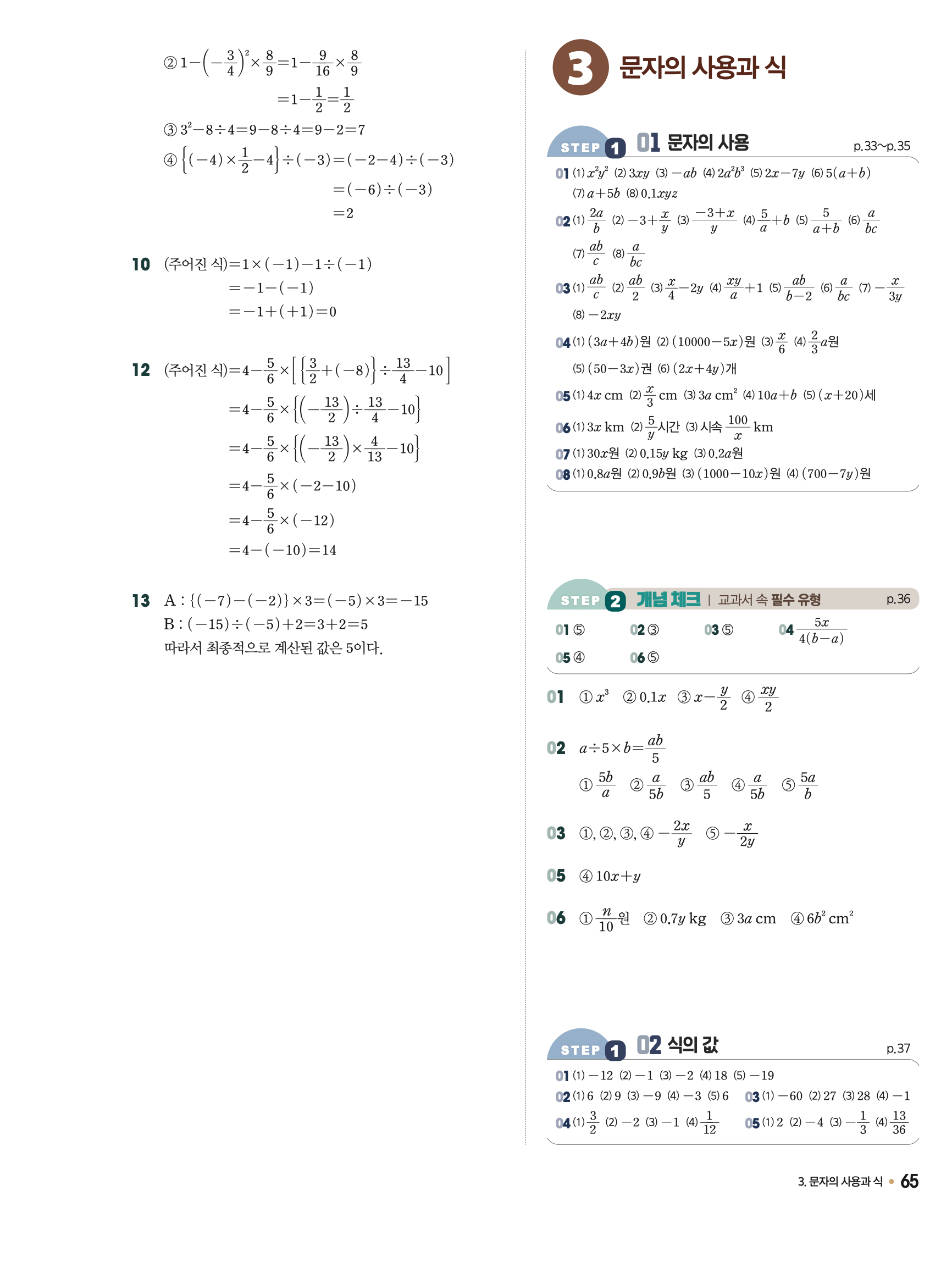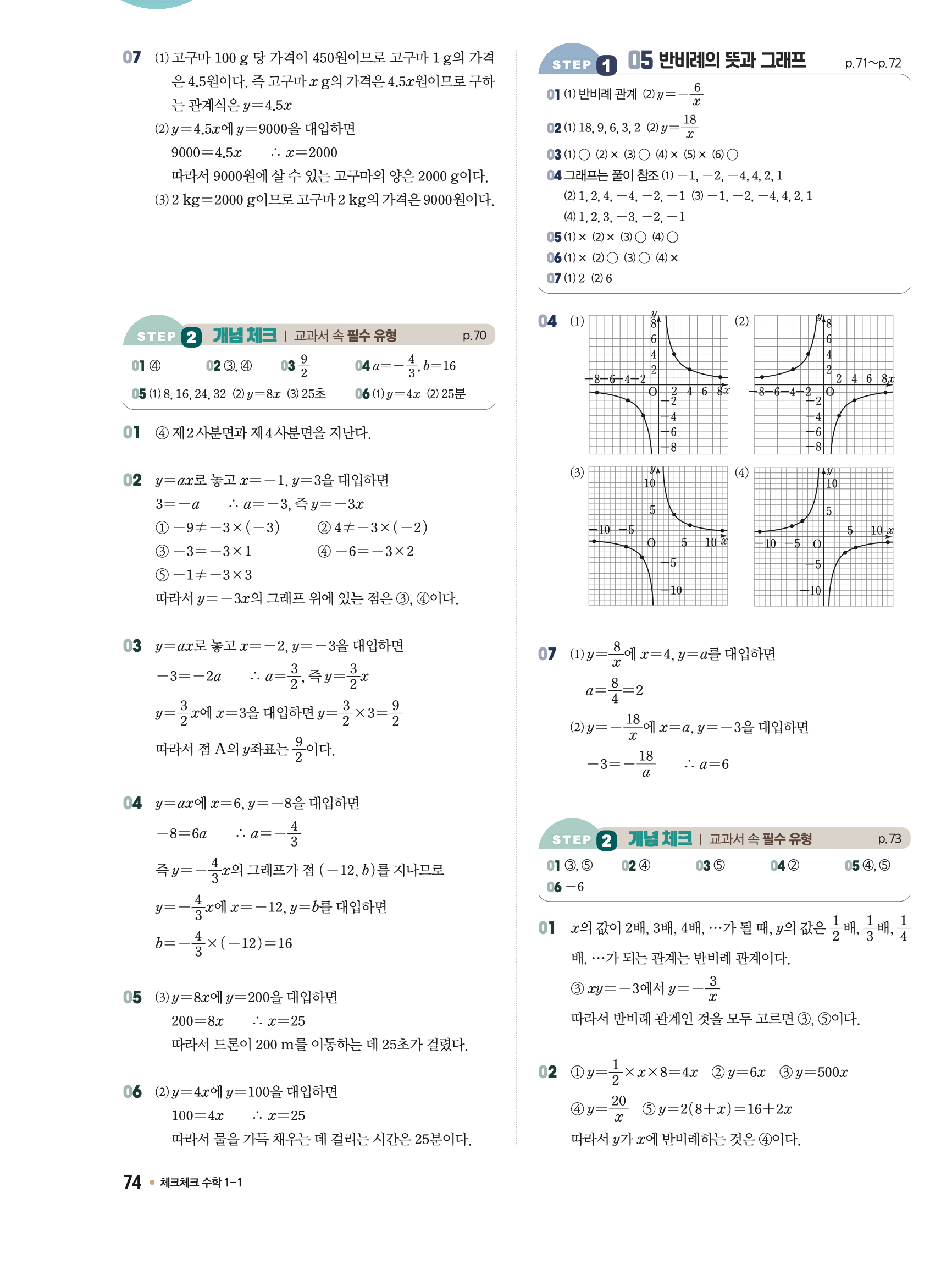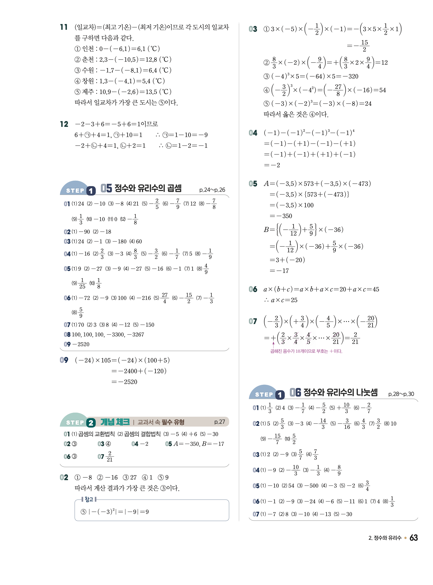 22개정 체크체크 수학 중1-1 답지 해설 바로보는 사진답지 모바일최적화 수정필요
