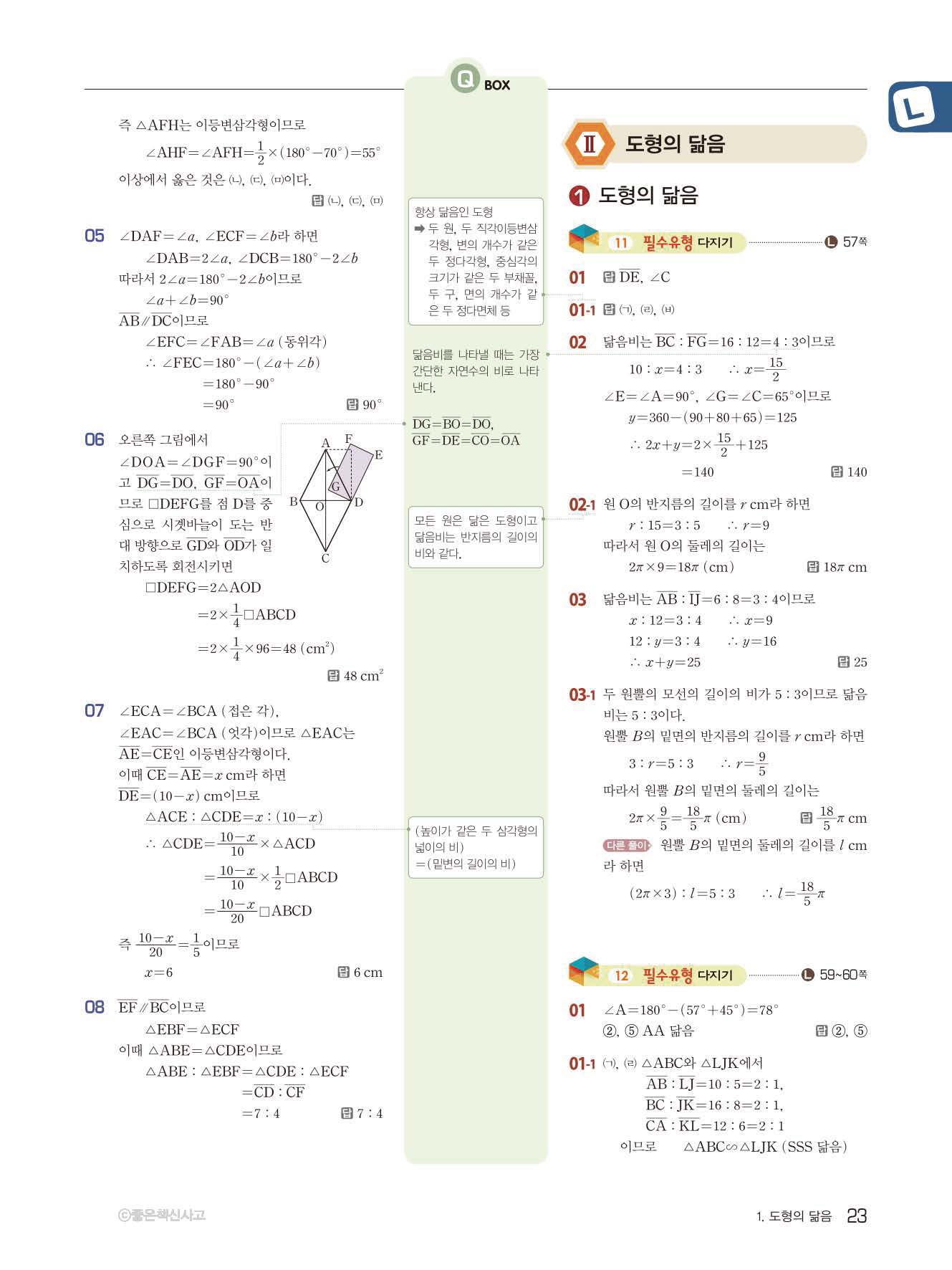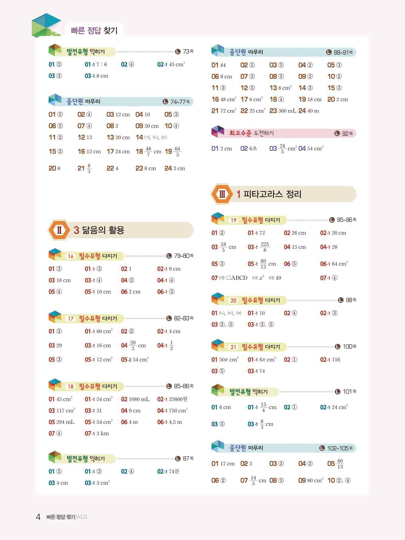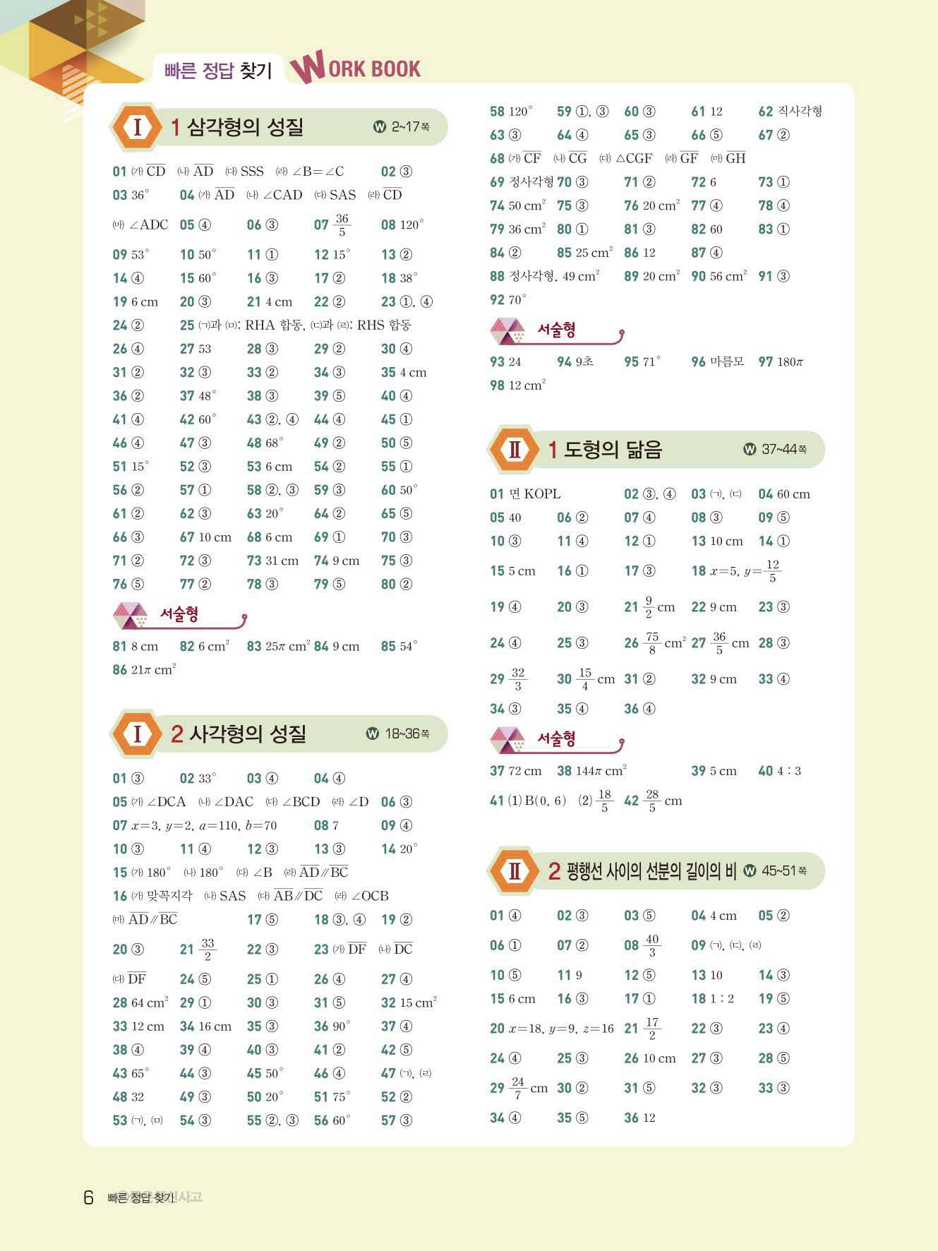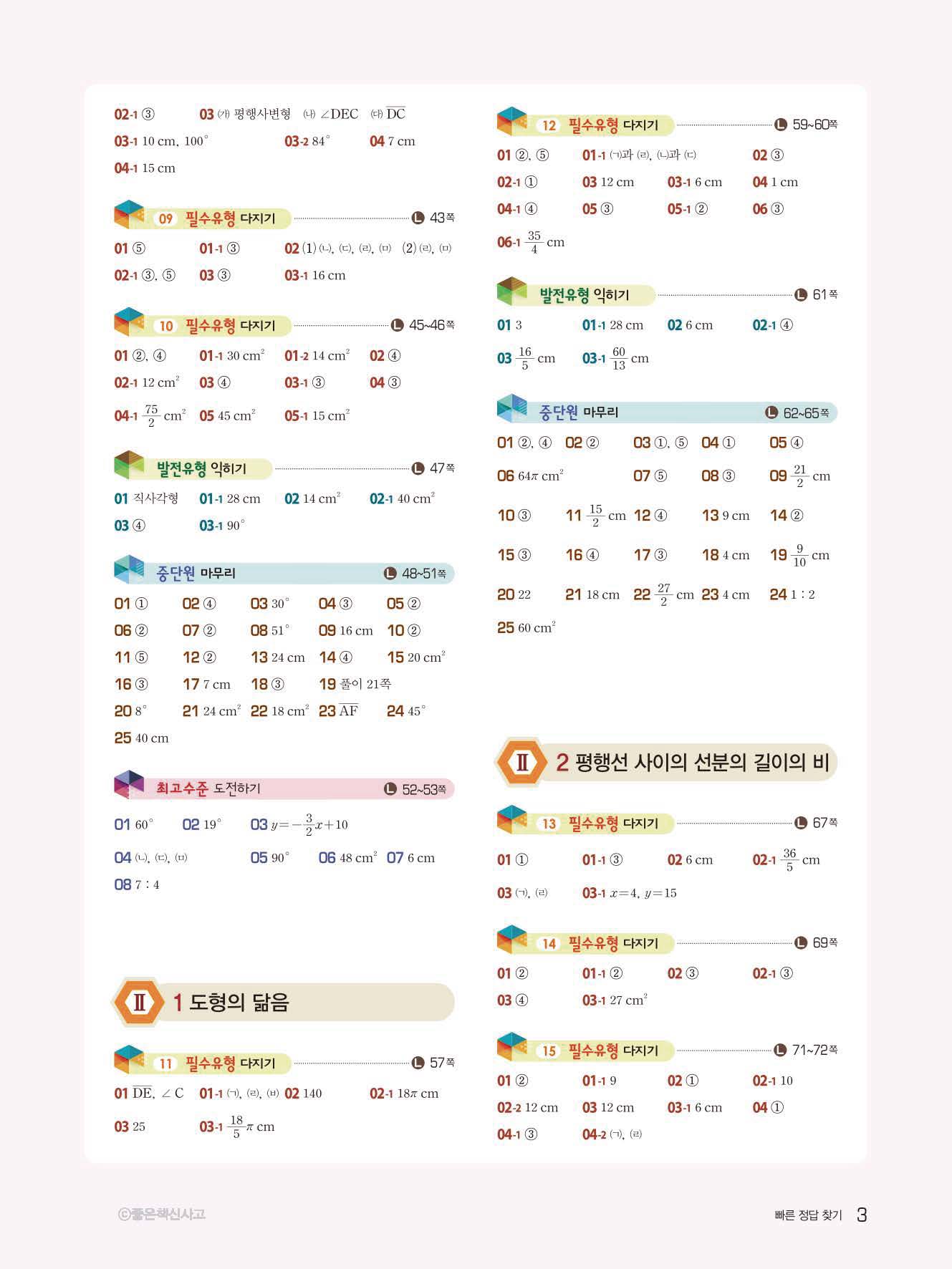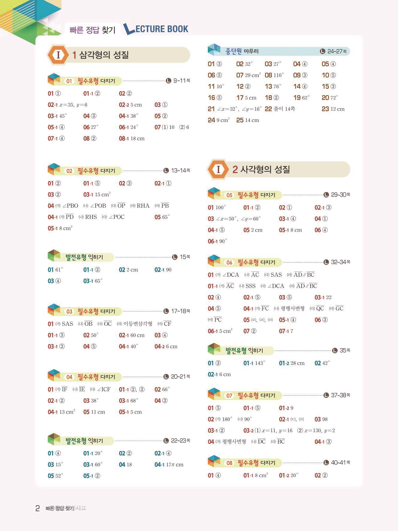 | 천재교육 류희찬 중2 수학교과서 답지 | |