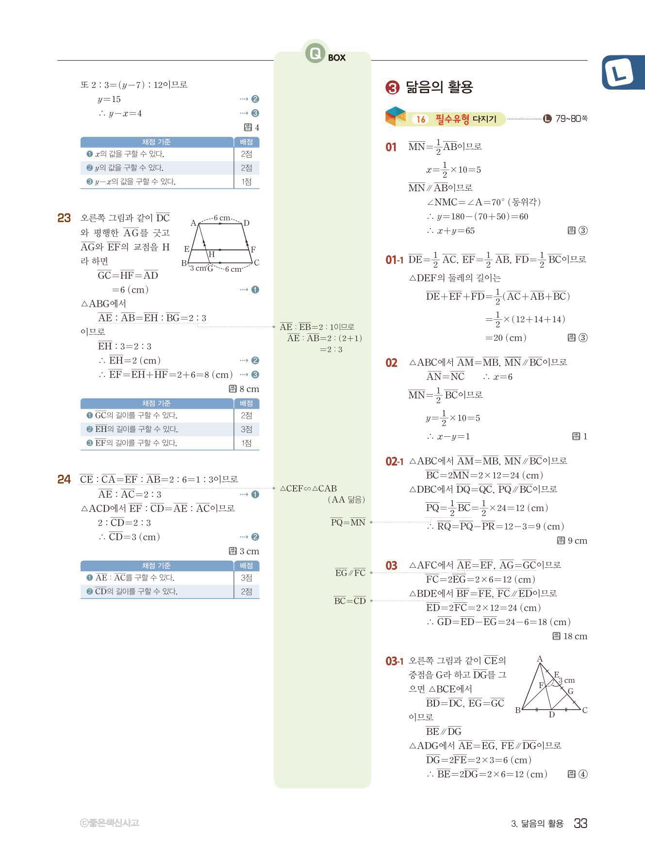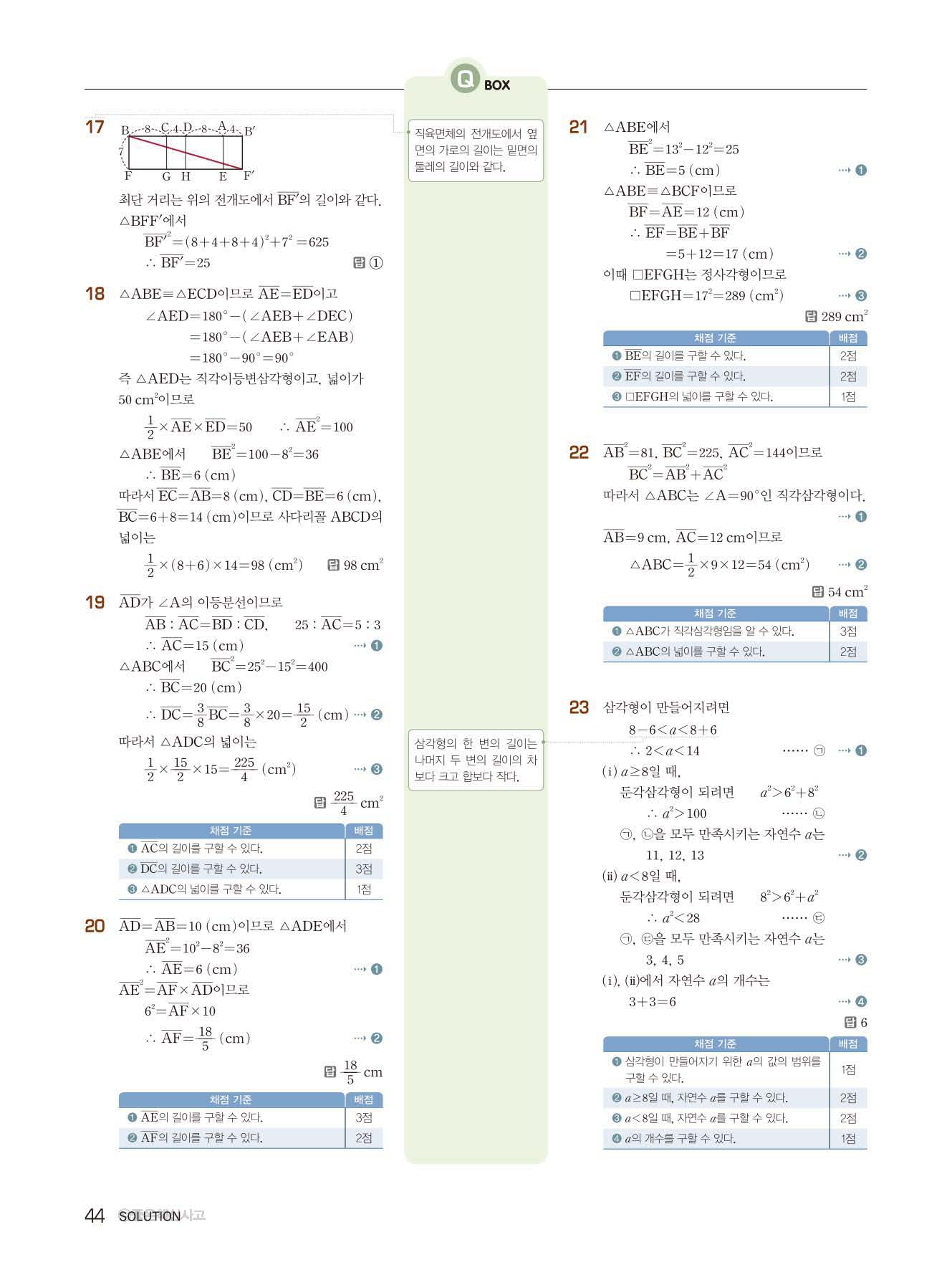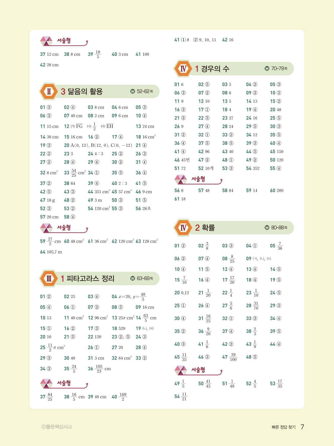 | 교학사 고호경 중2 수학교과서 답지 | |