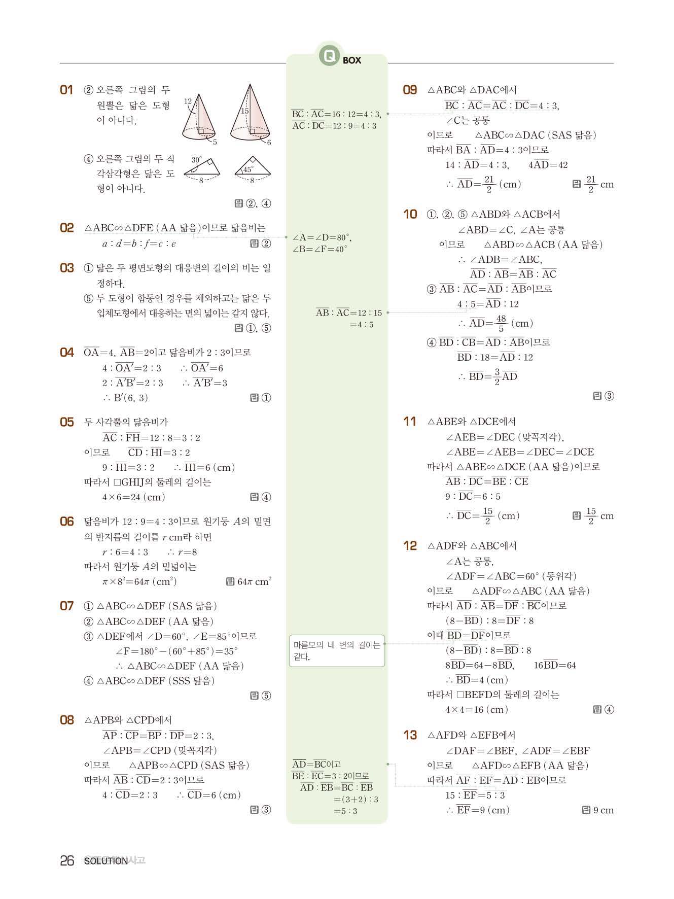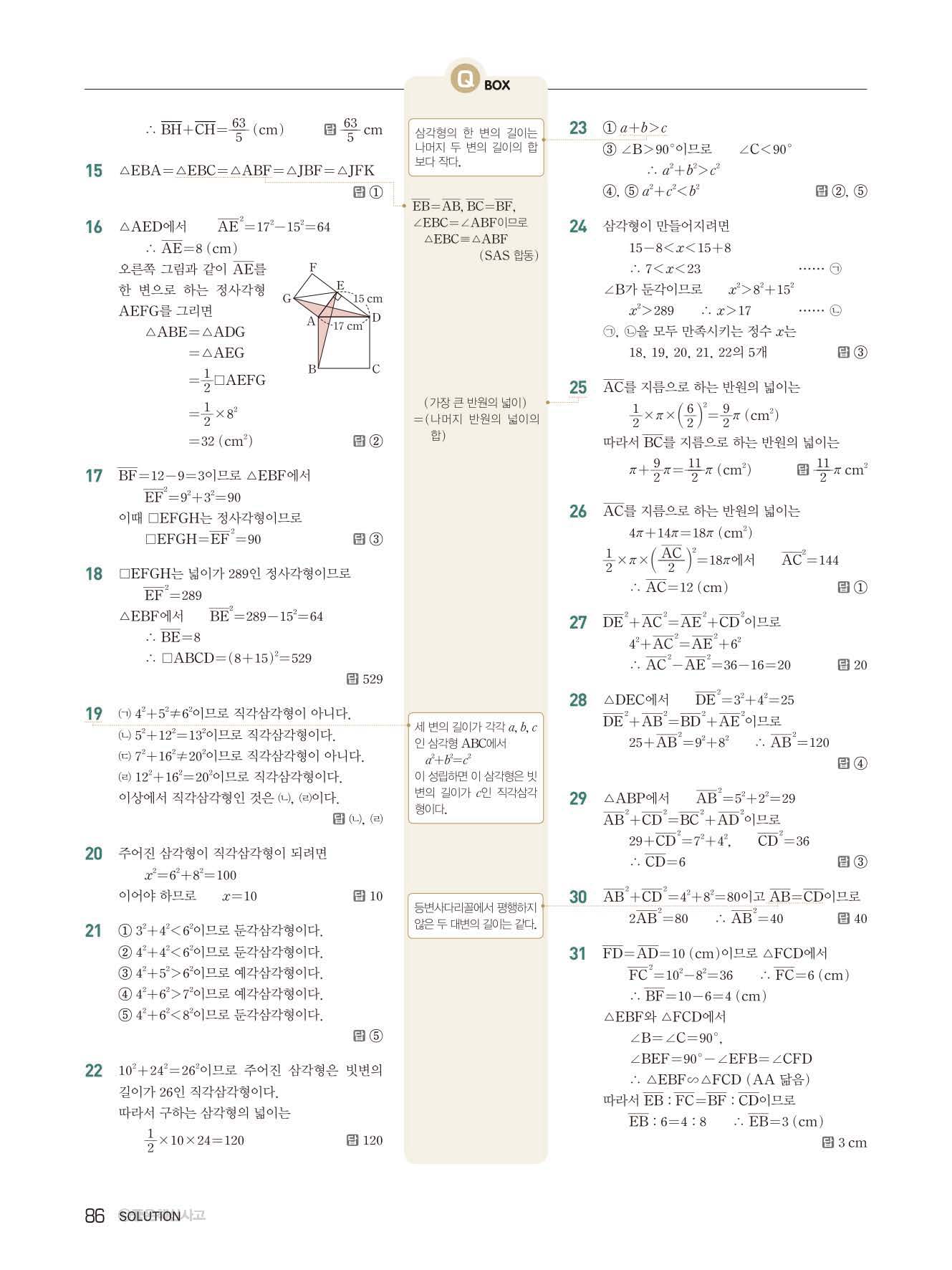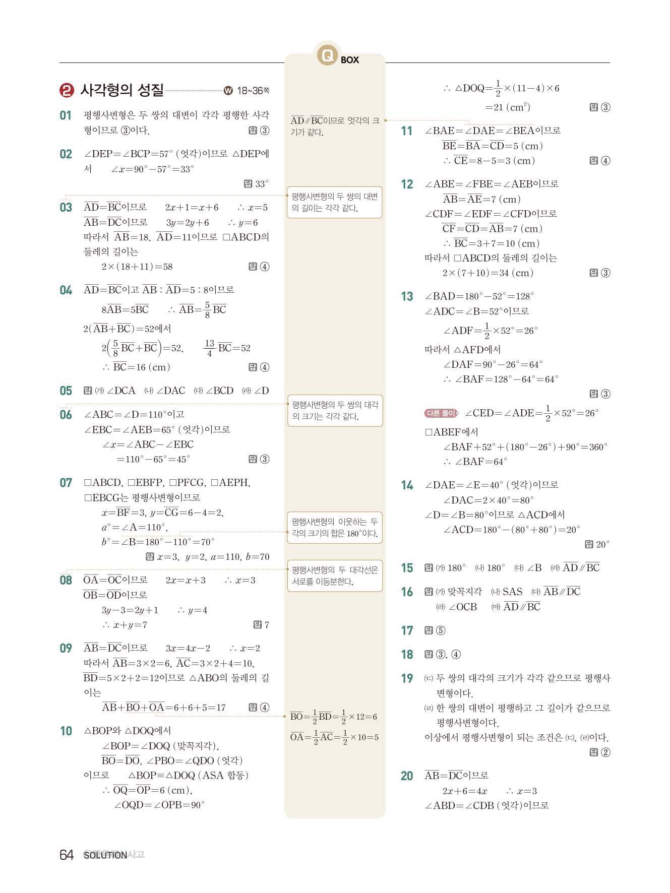 | 교학사 고호경 중2 수학교과서 답지 | |
