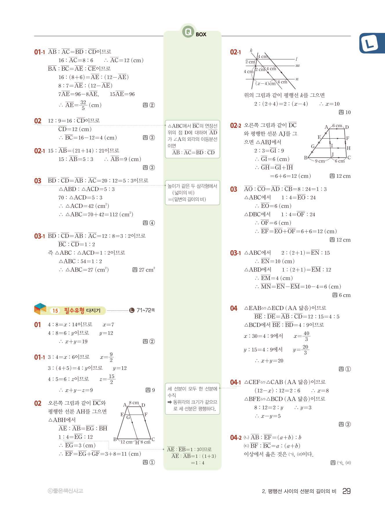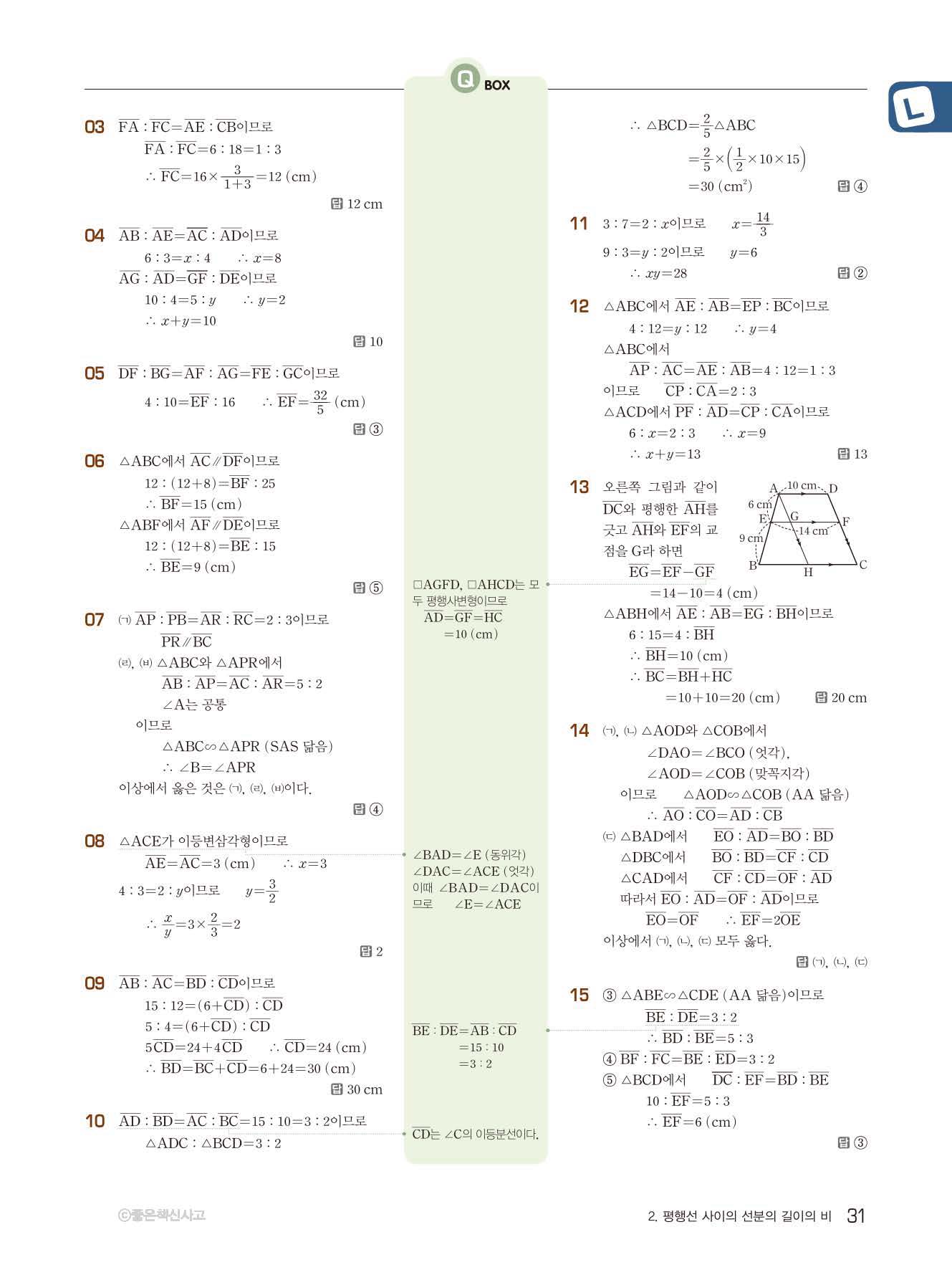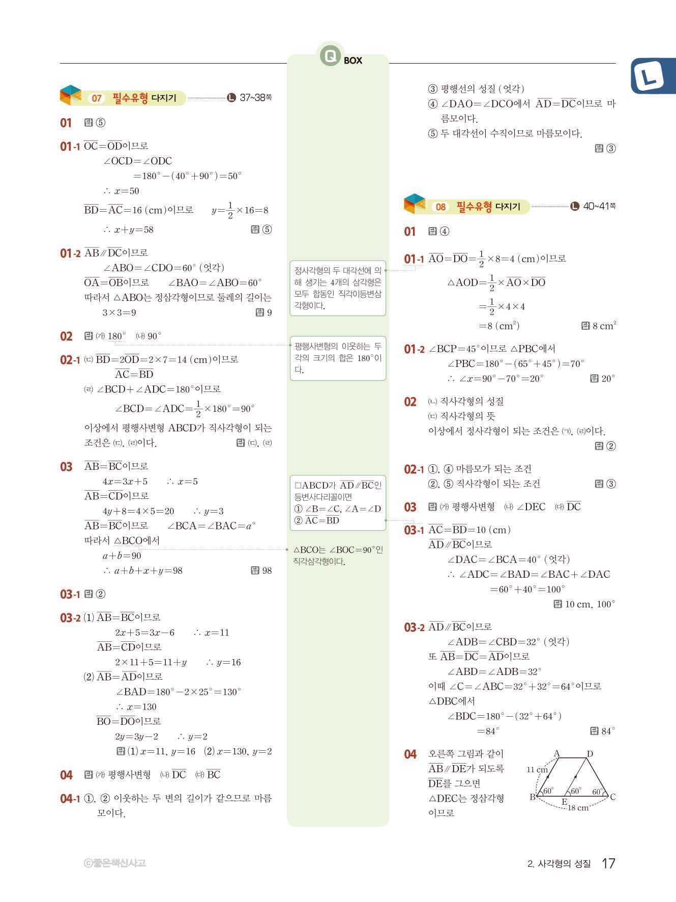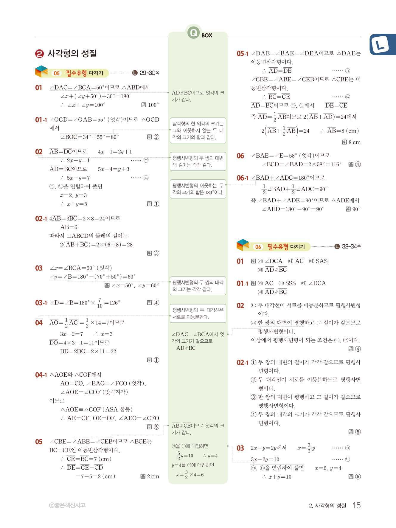 | 천재교육 이준열 중2 수학교과서 답지 | |
