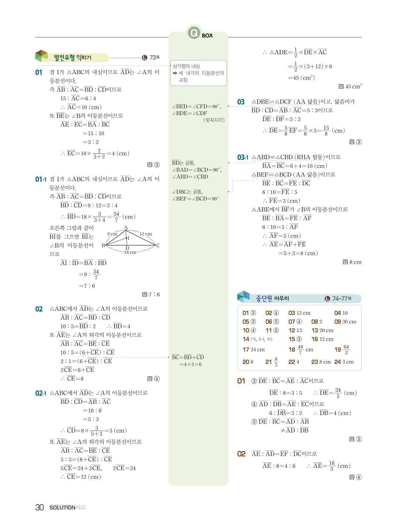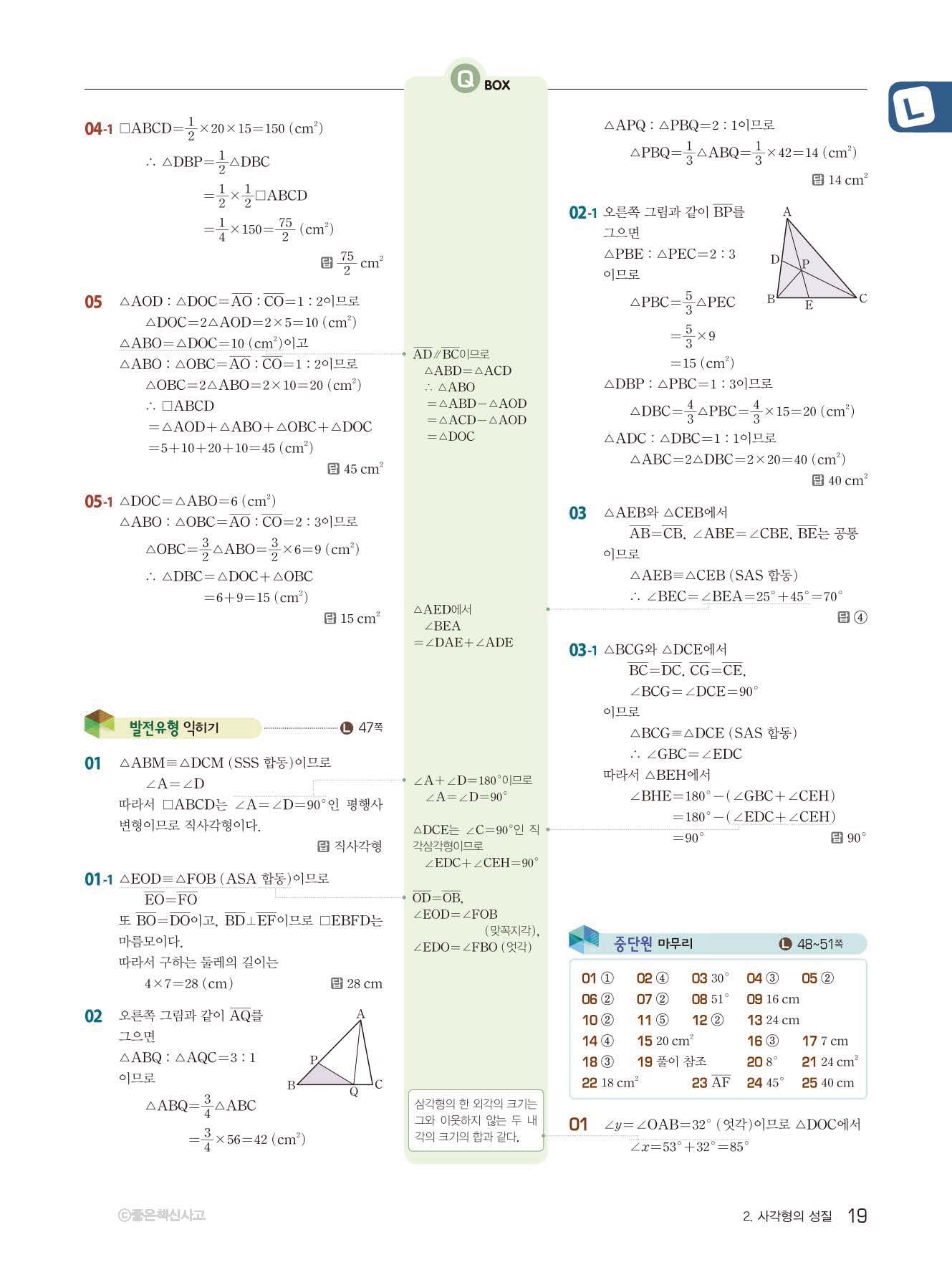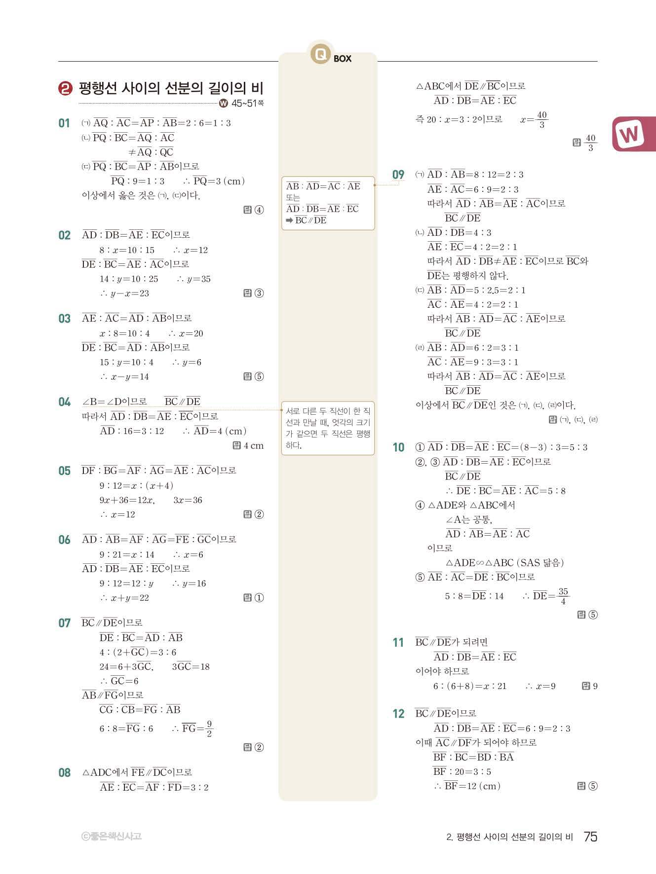 | 천재교육 이준열 중2 수학교과서 답지 | |