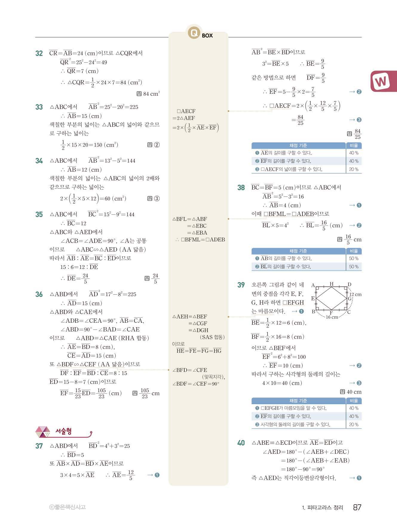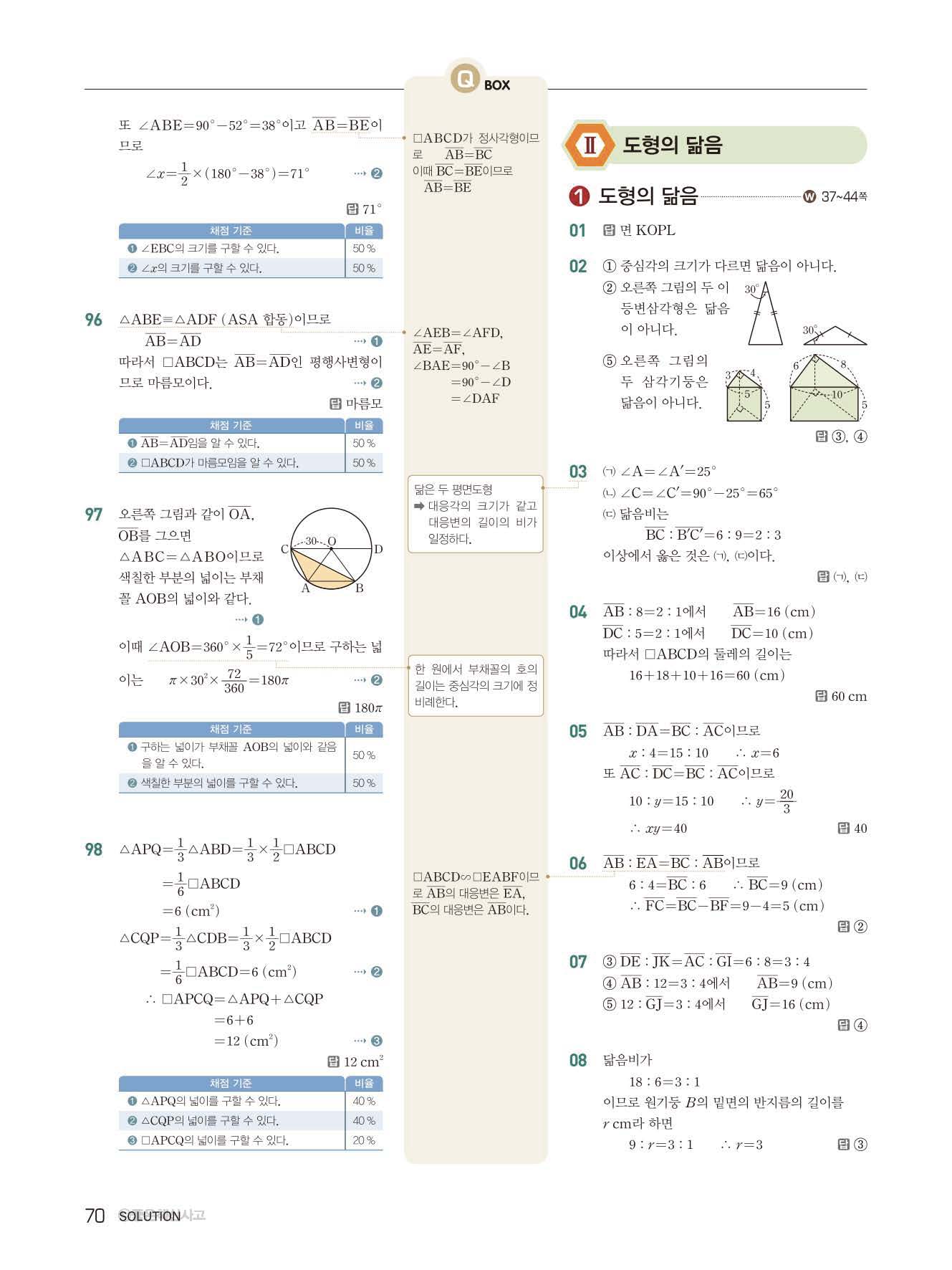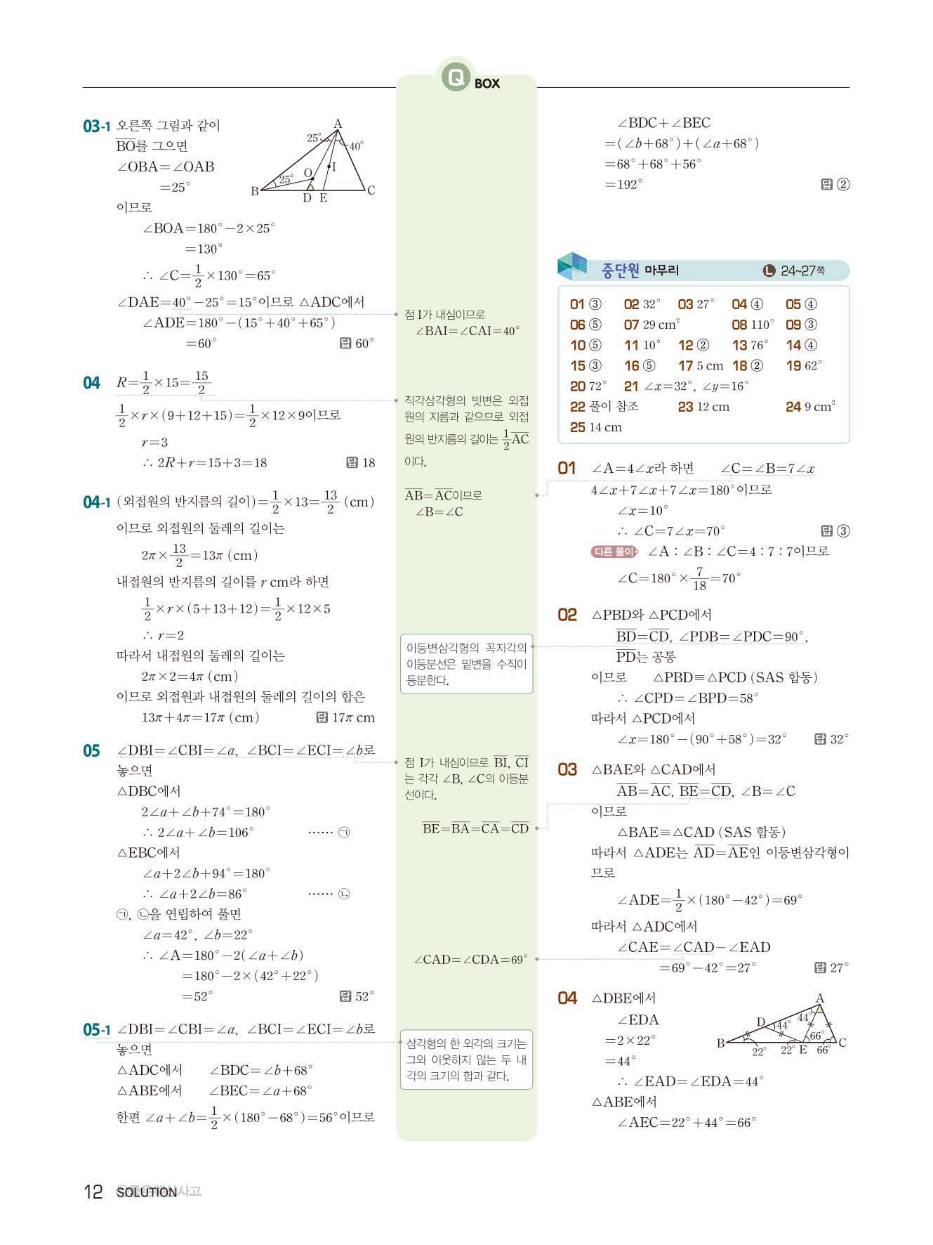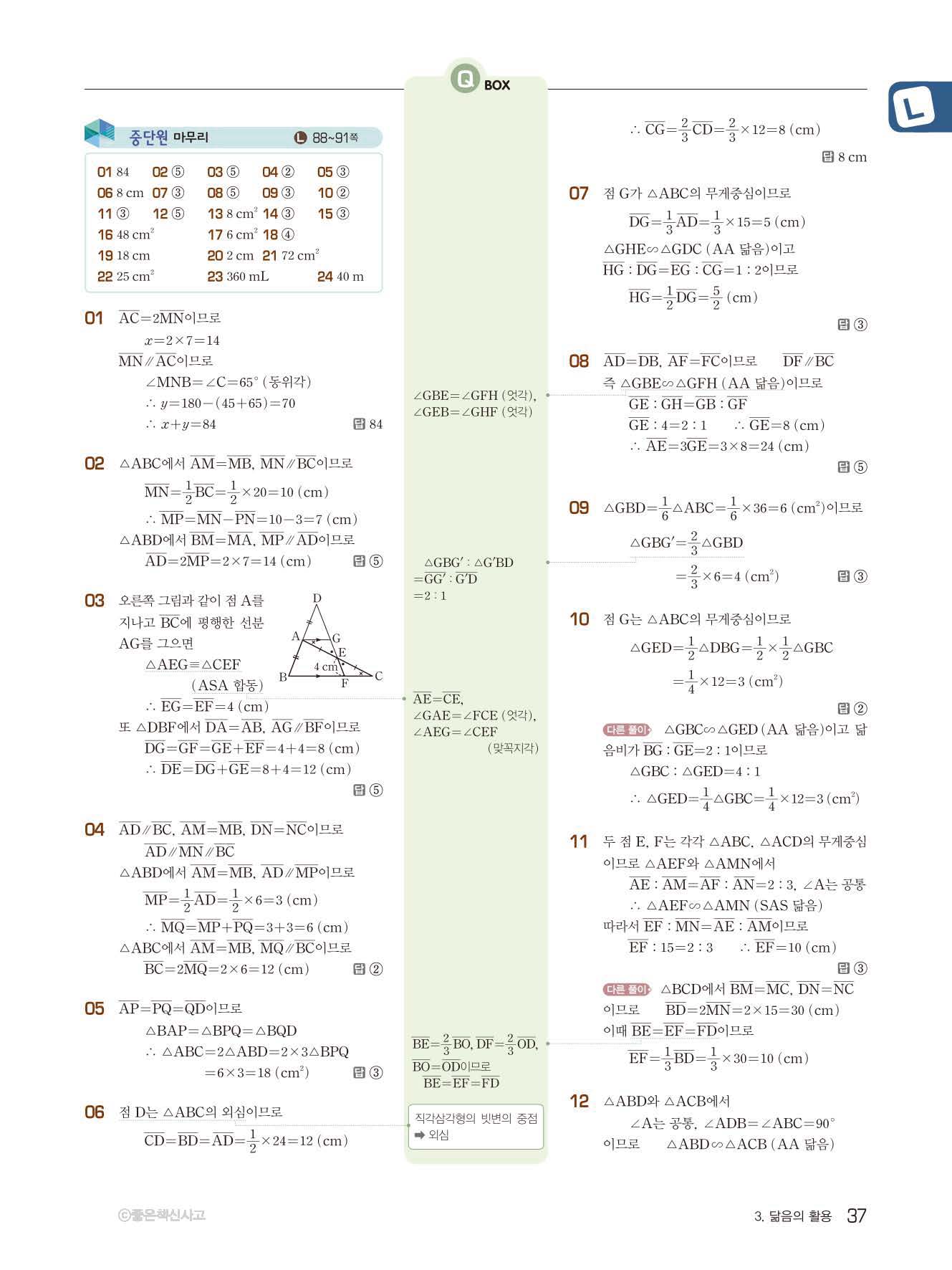 | 천재교육 이준열 중2 수학교과서 답지 | |