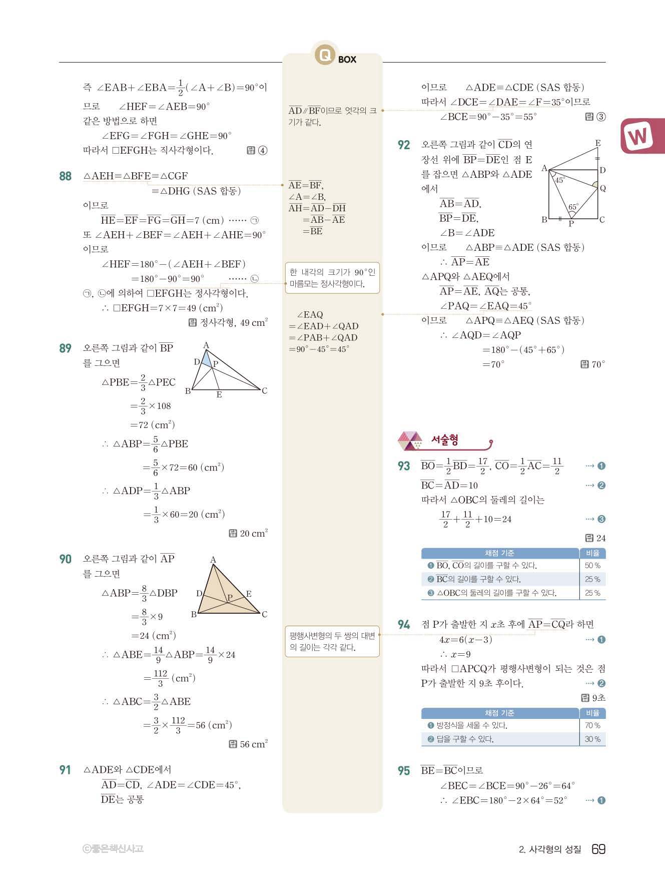 우공비큐 중2하 2-2 답지 해설지 사진답지 빠른답지 모바일최적화