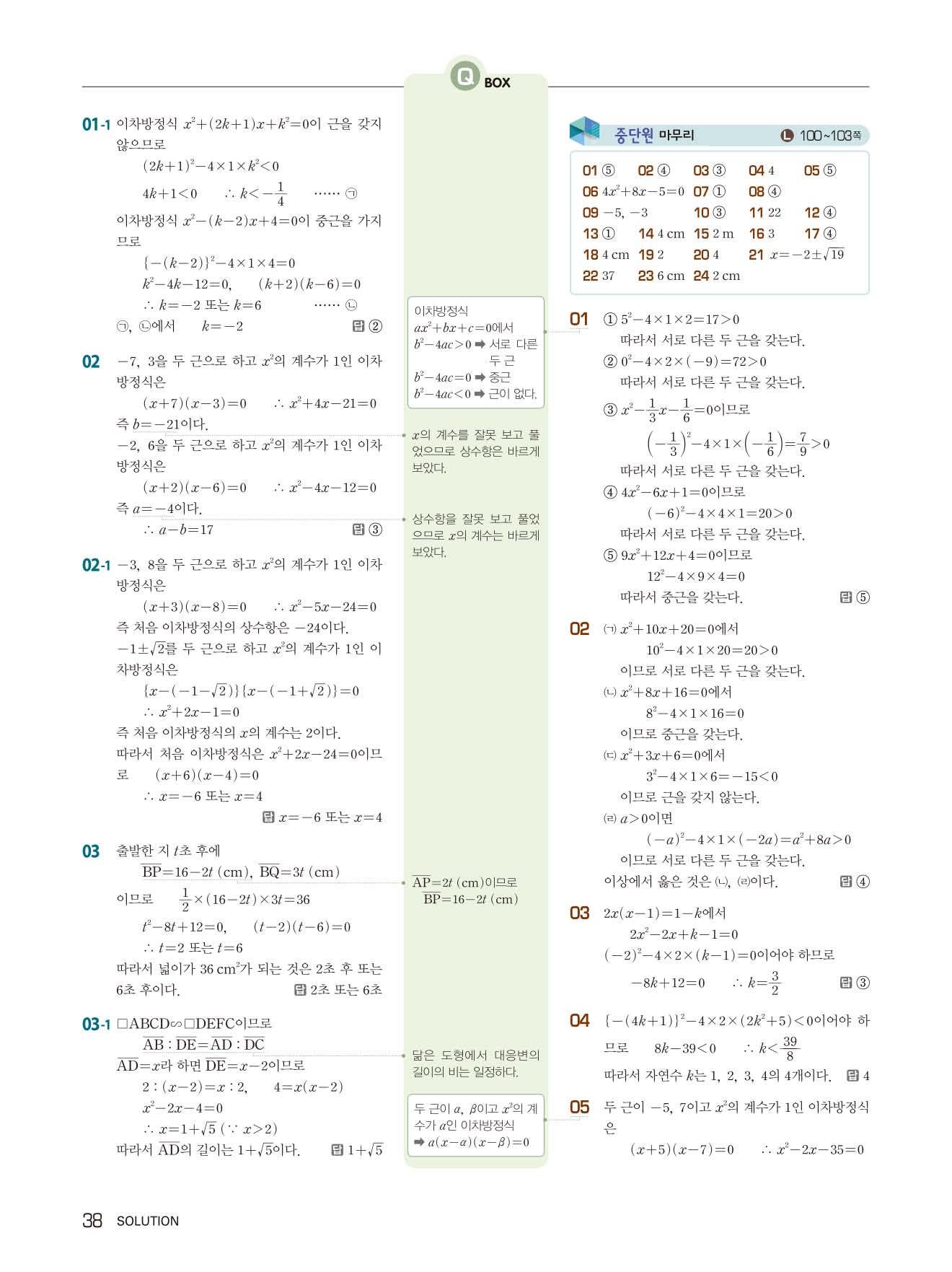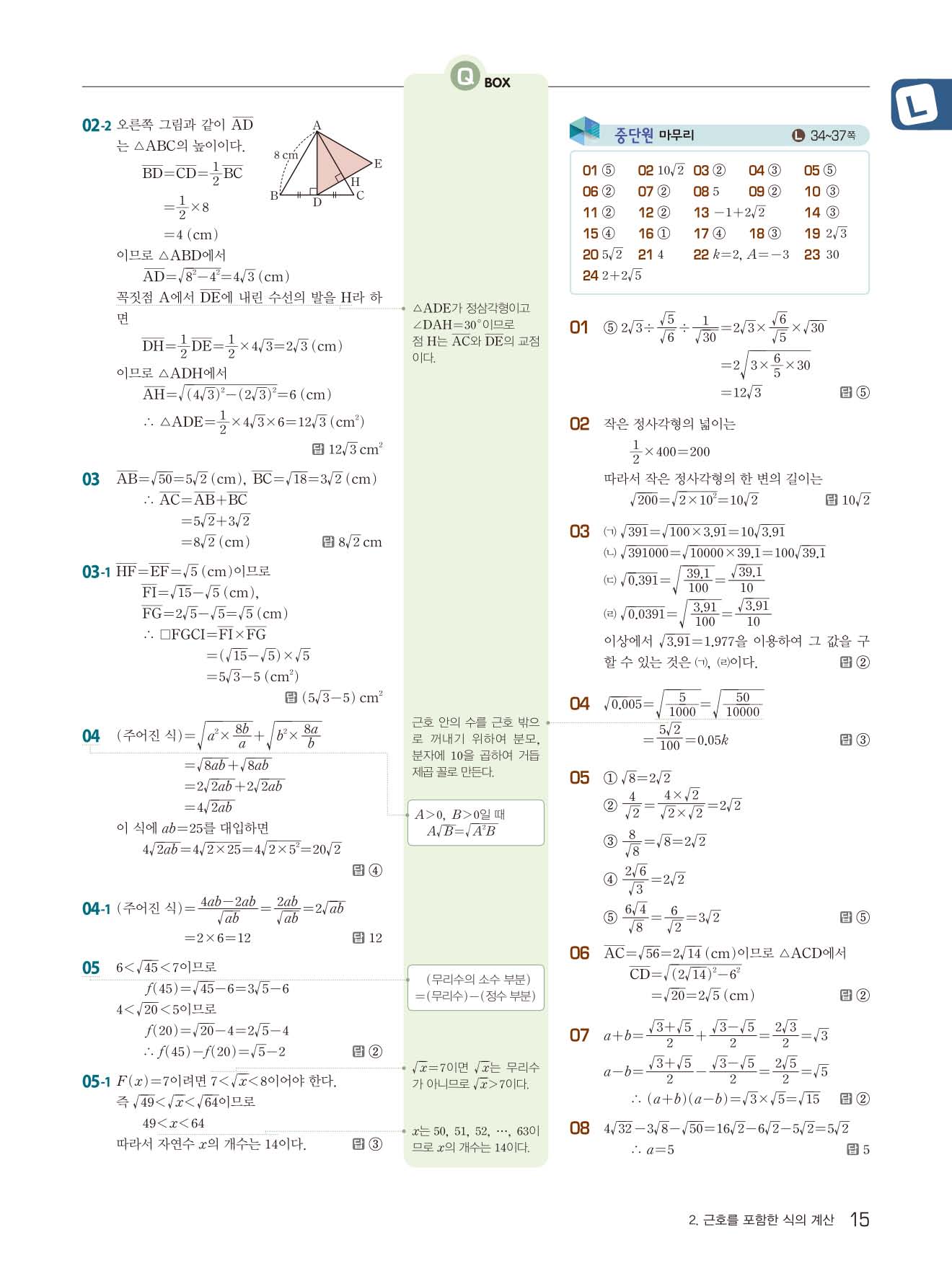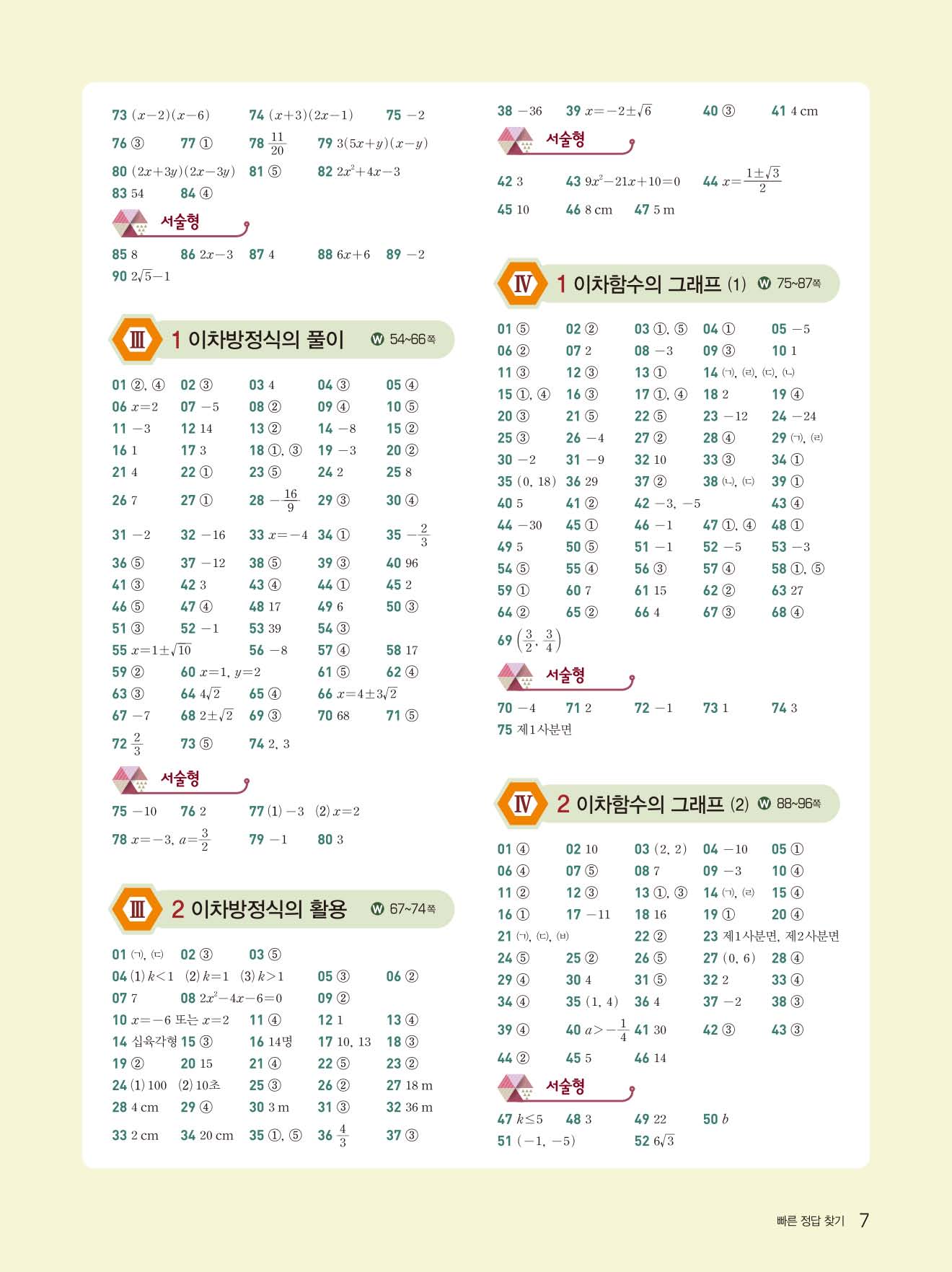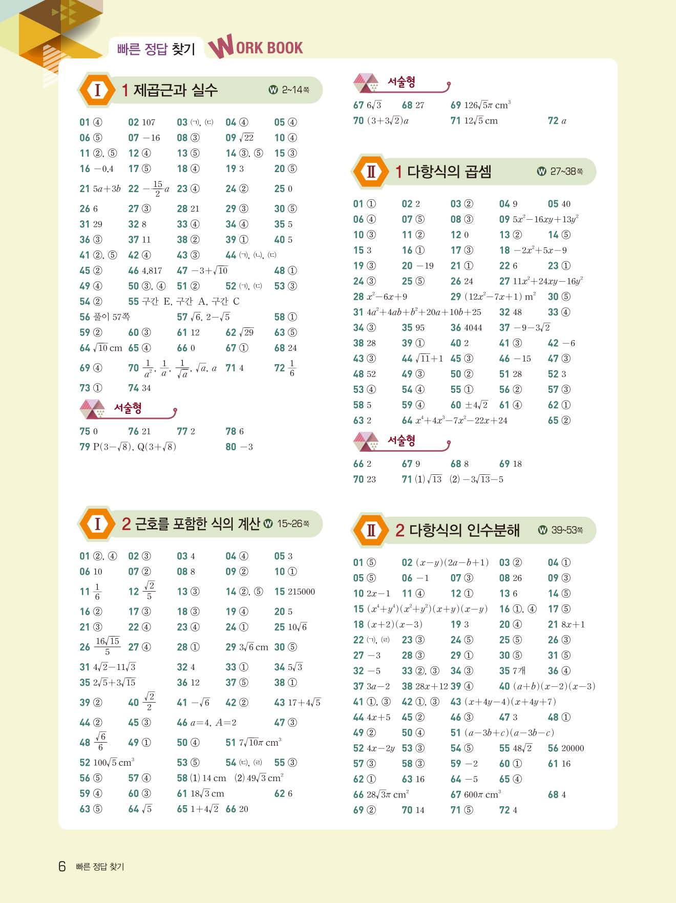 | 천재교육 이준열 중3 수학교과서 답지 | |