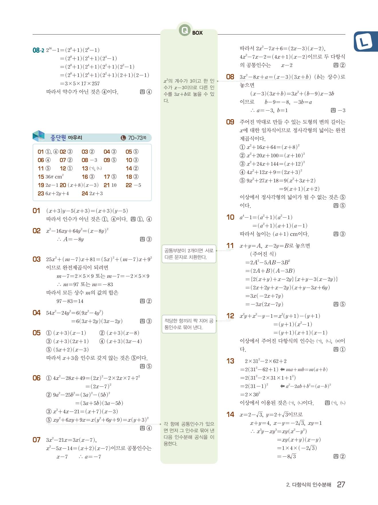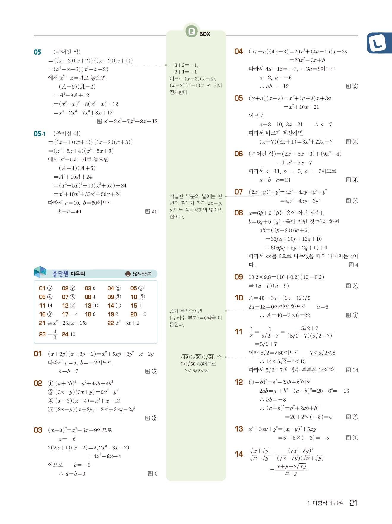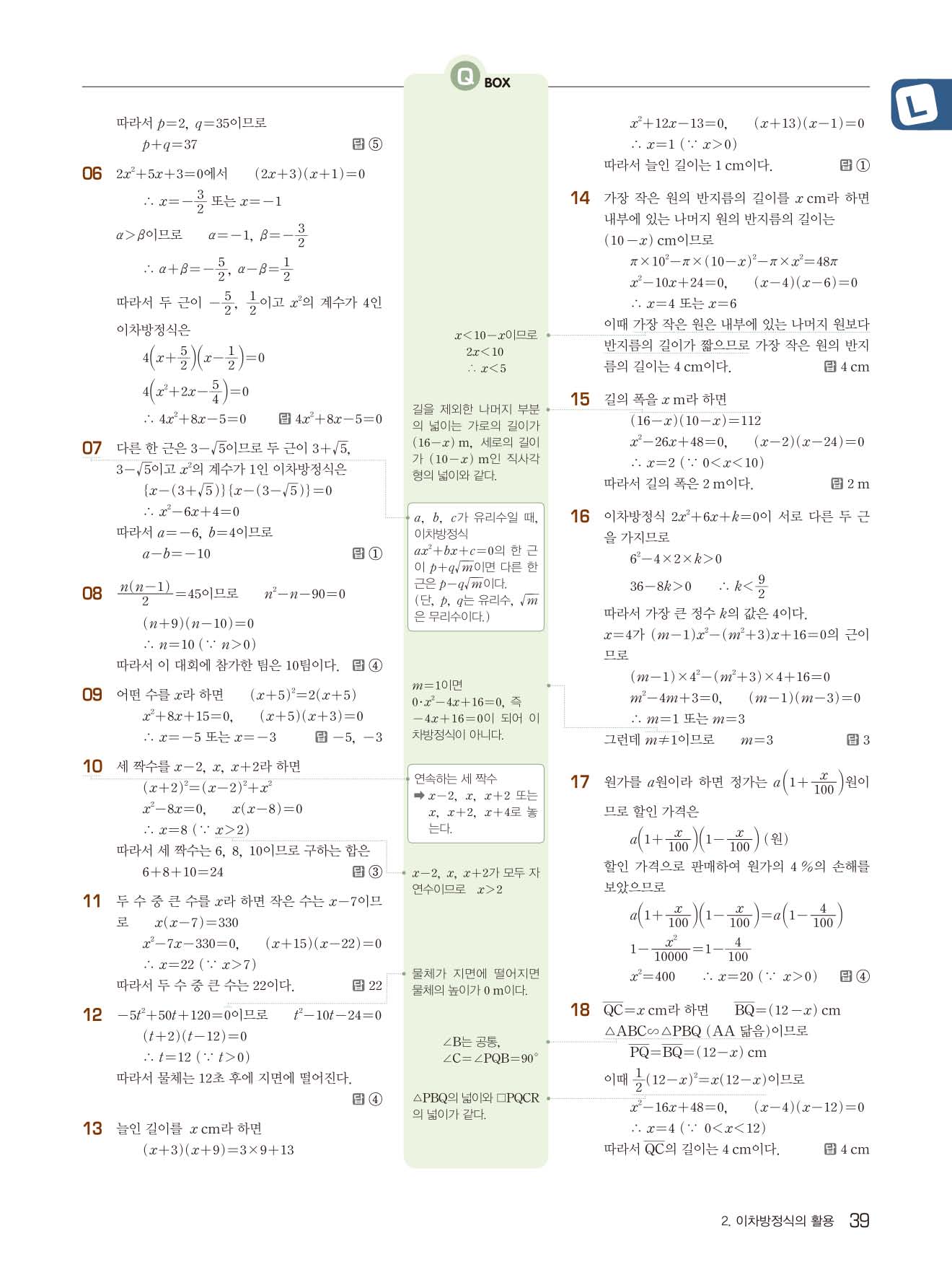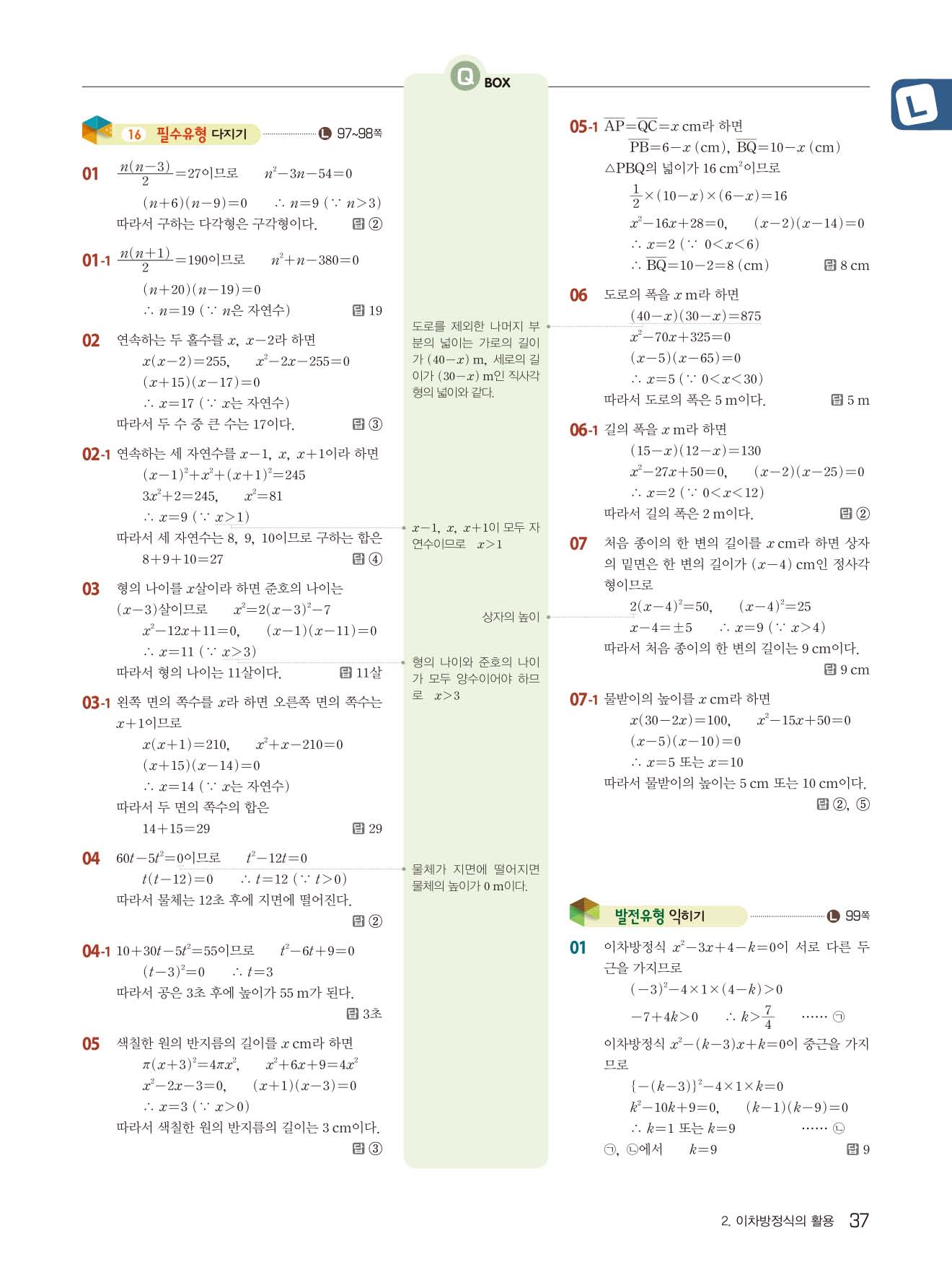 | 천재교육 이준열 중3 수학교과서 답지 | |