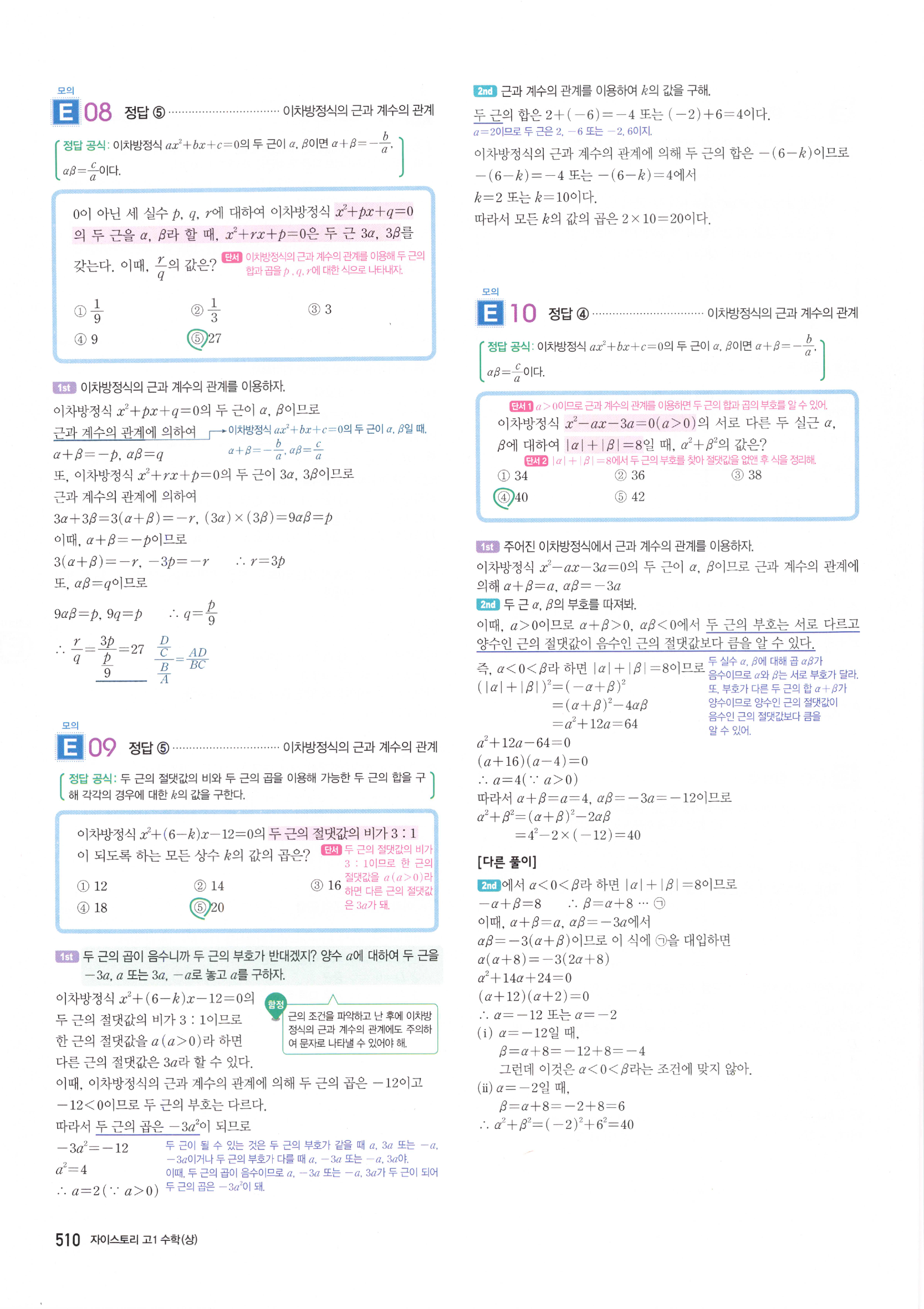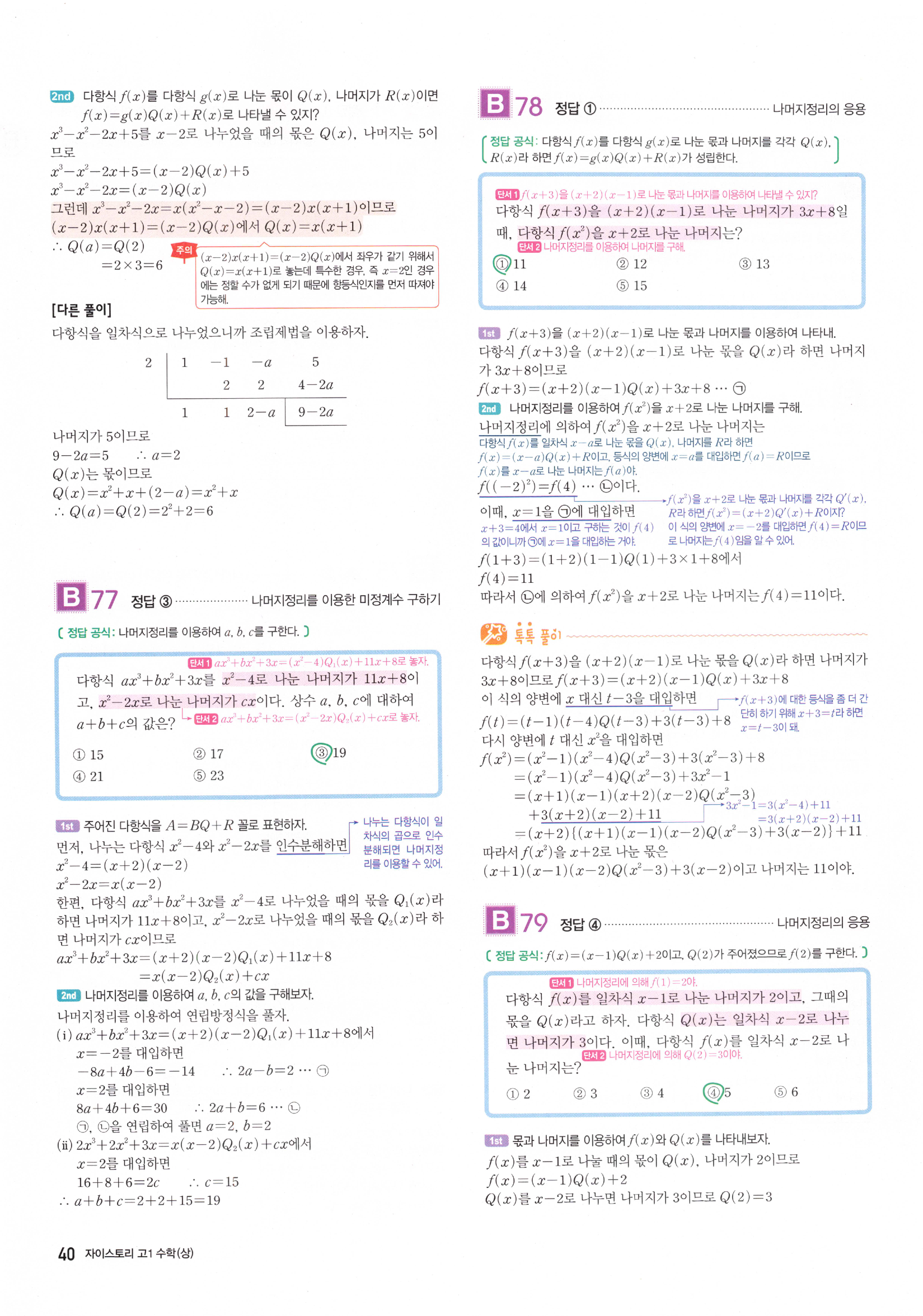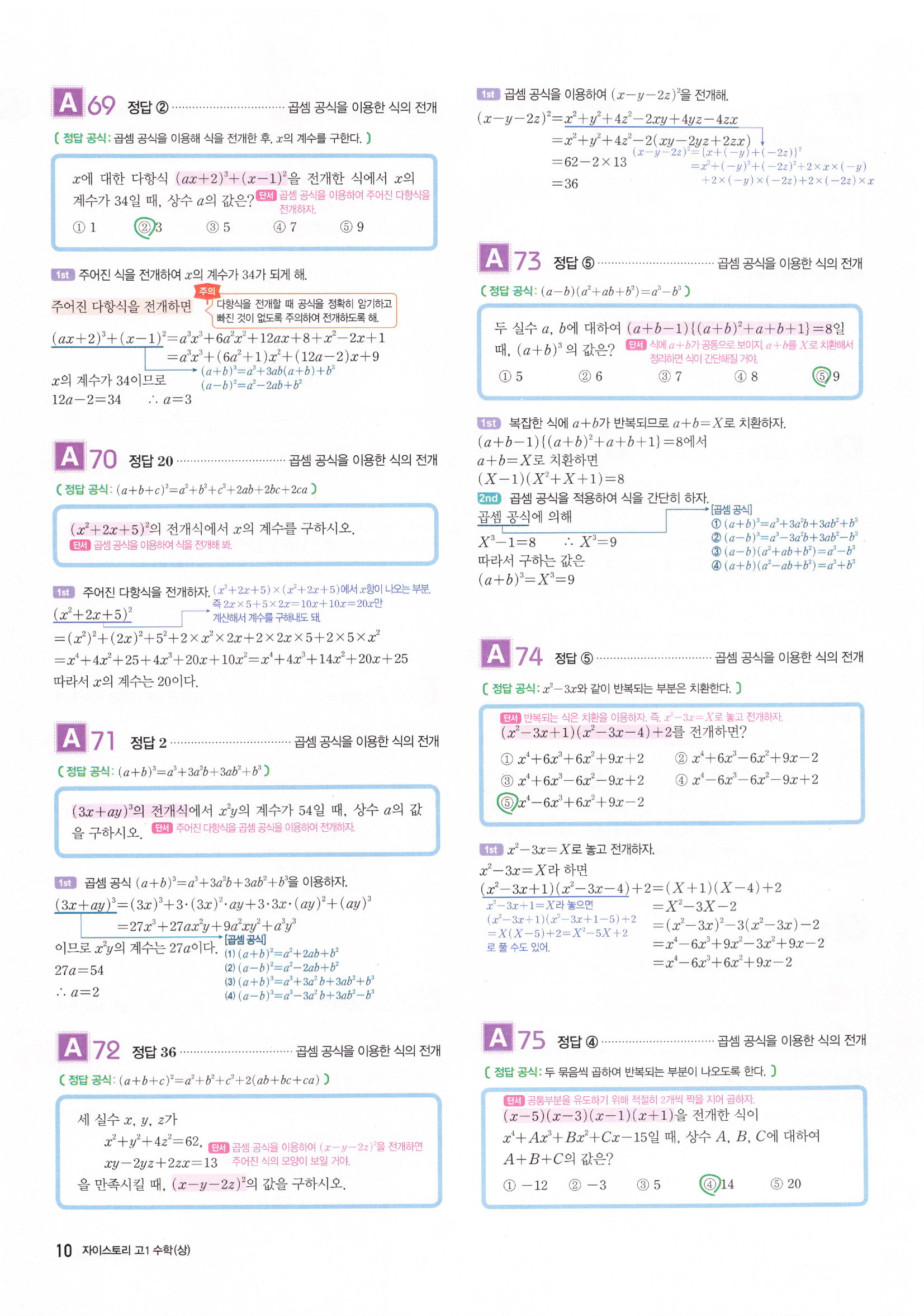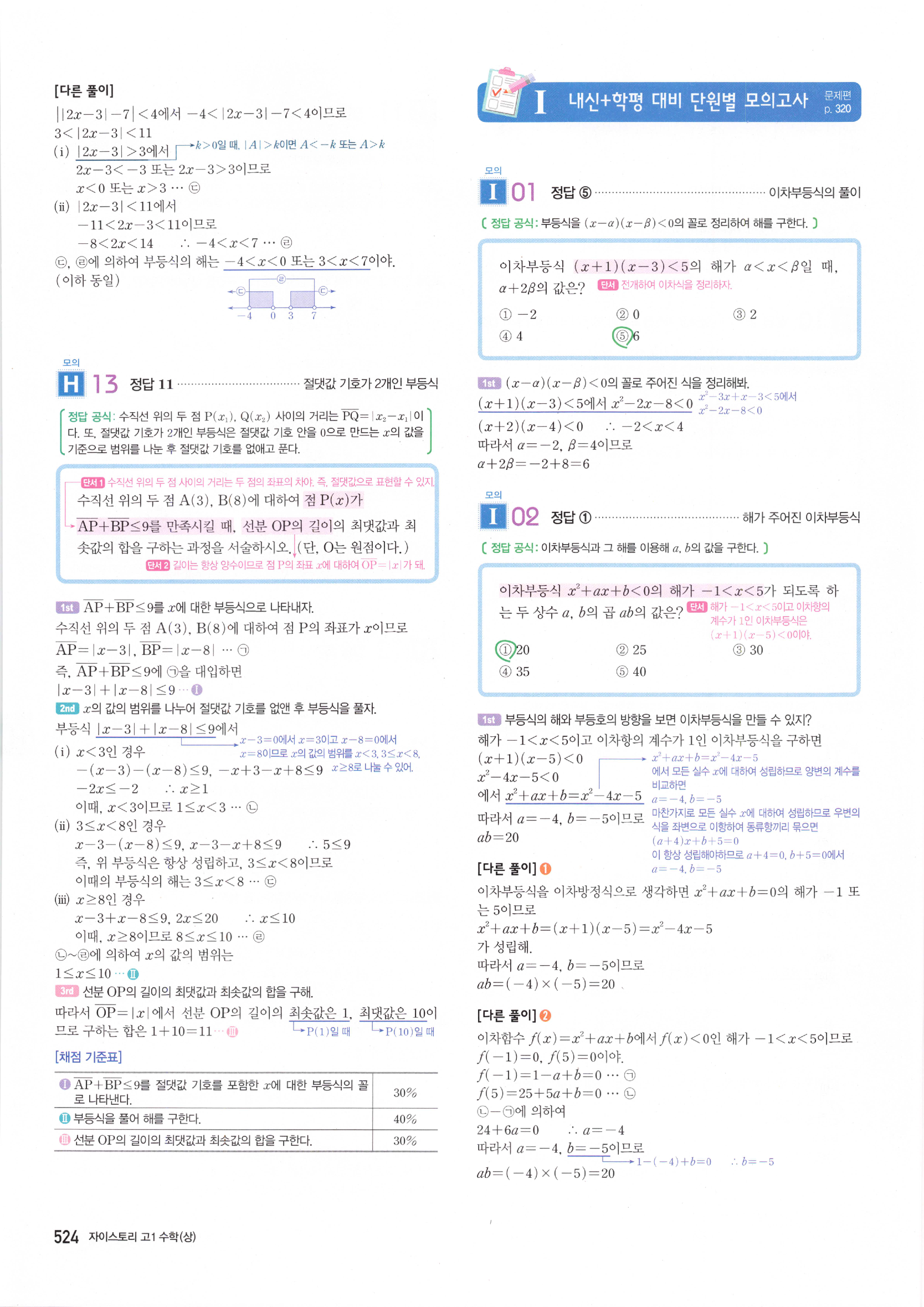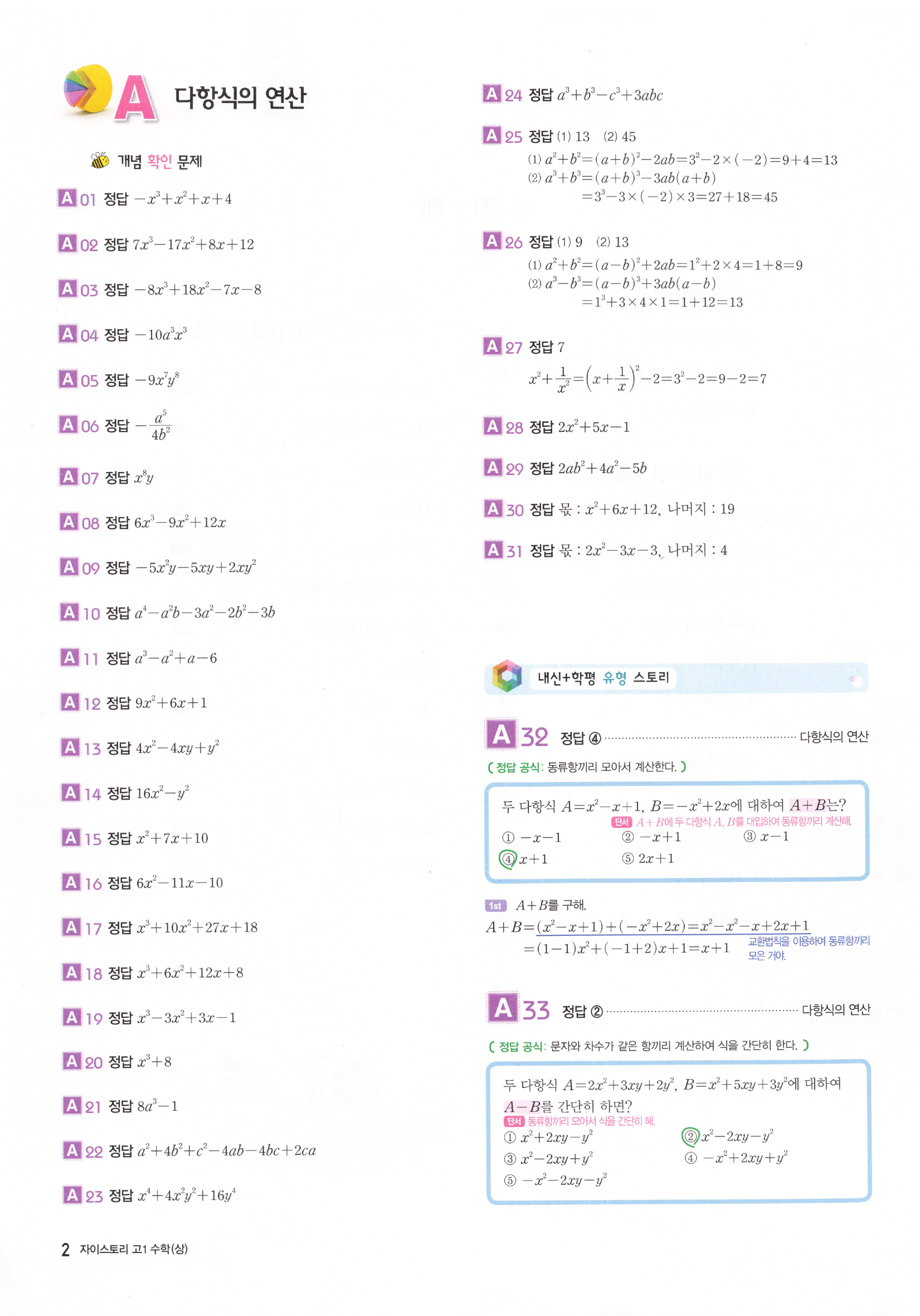 자이스토리 고1 수학상 답지 풀이해설 바로보는 사진답지 풀이집(O)빠른답지 아님
