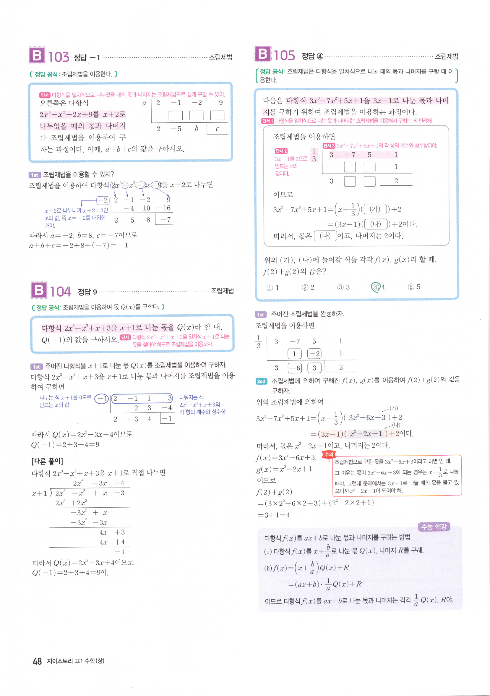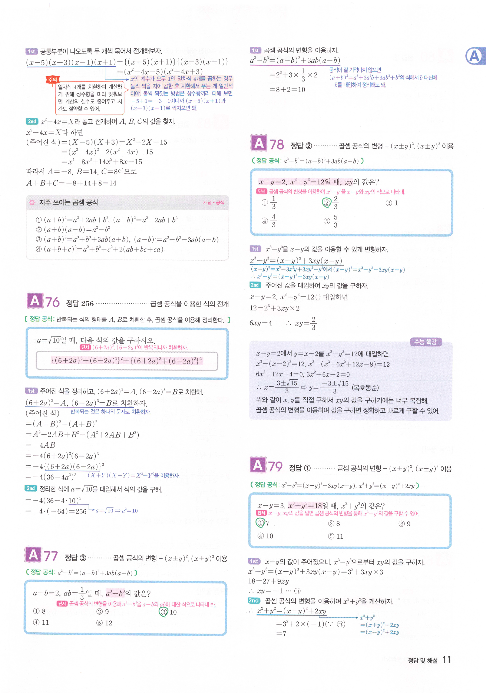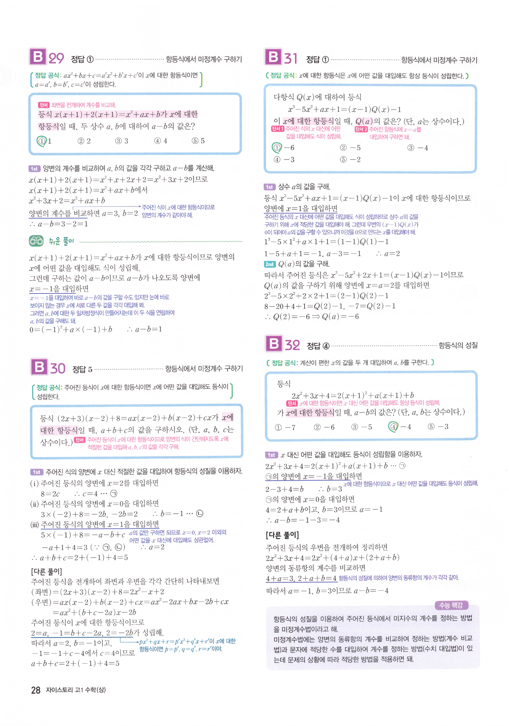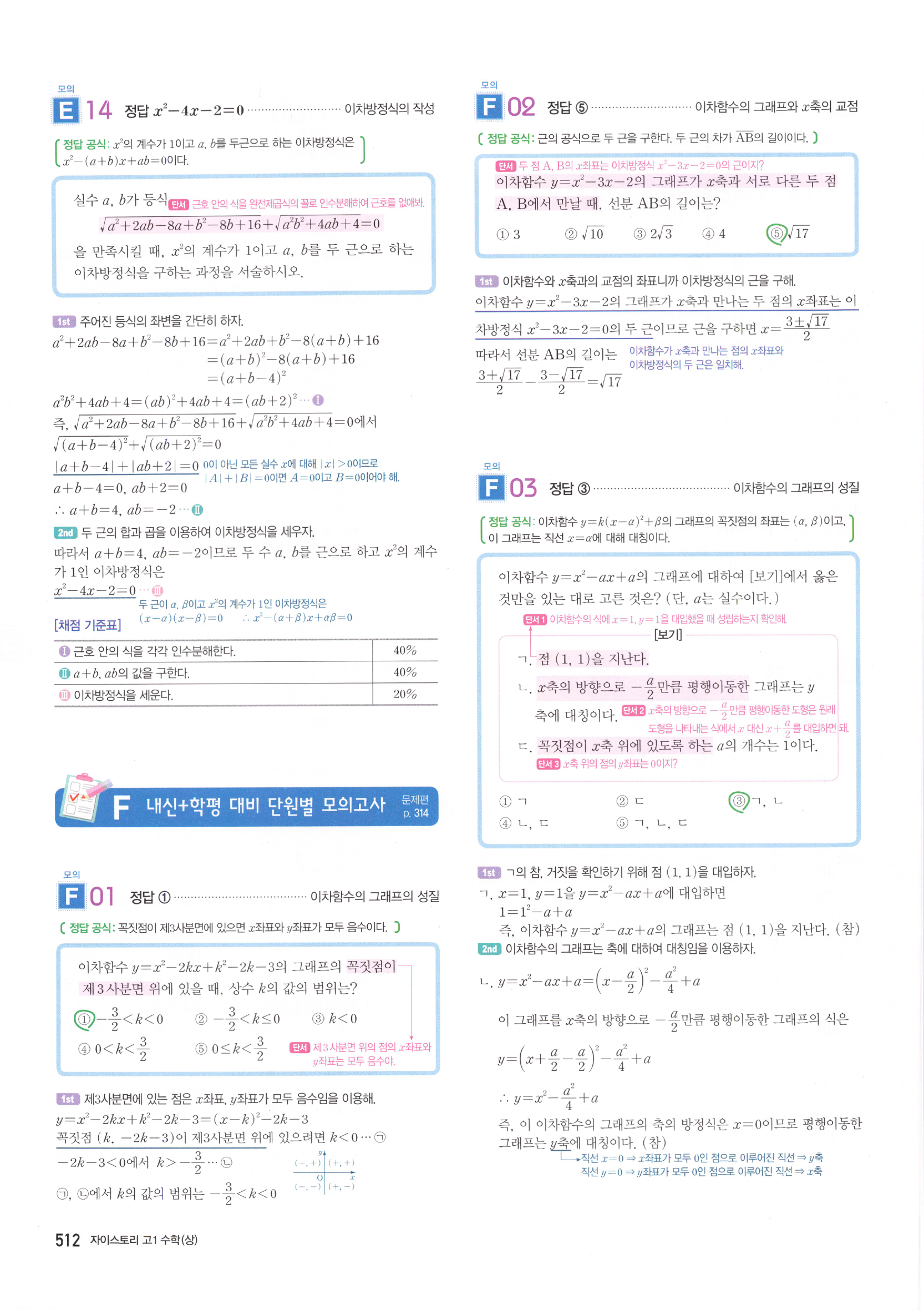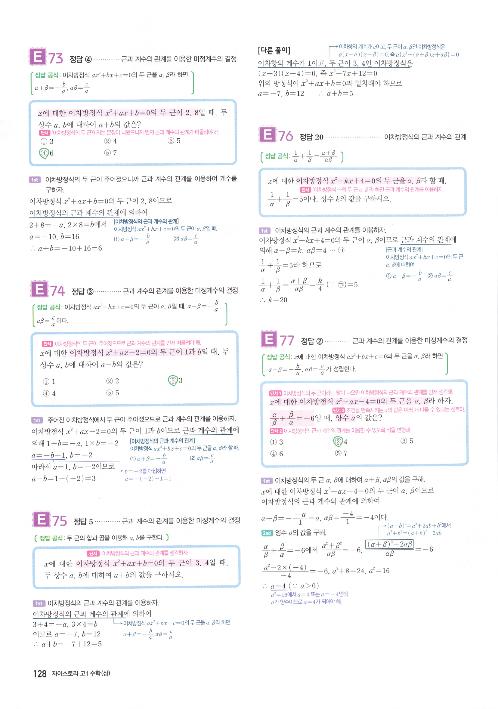 자이스토리 고1 수학상 답지 풀이해설 바로보는 사진답지 풀이집(O)빠른답지 아님