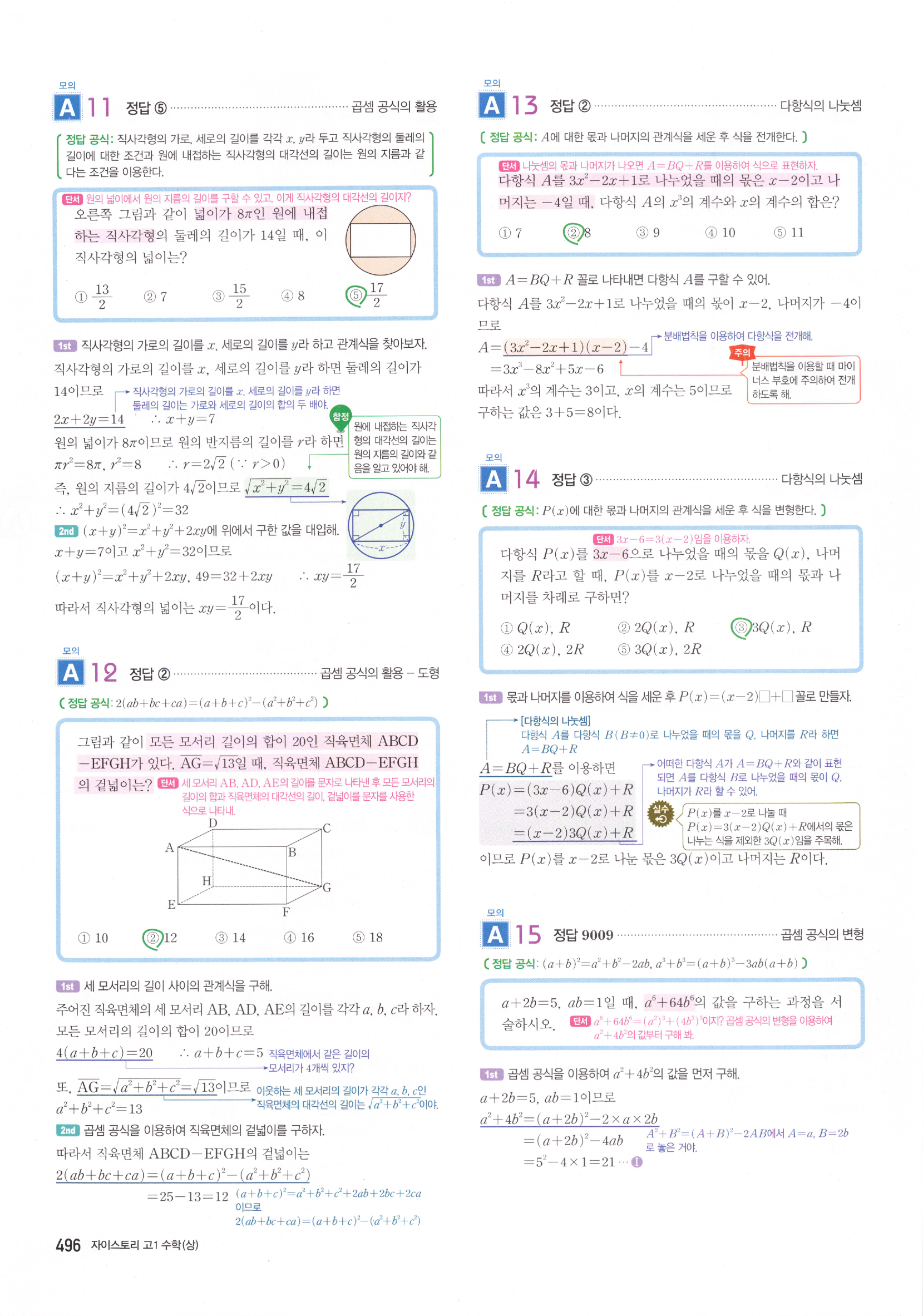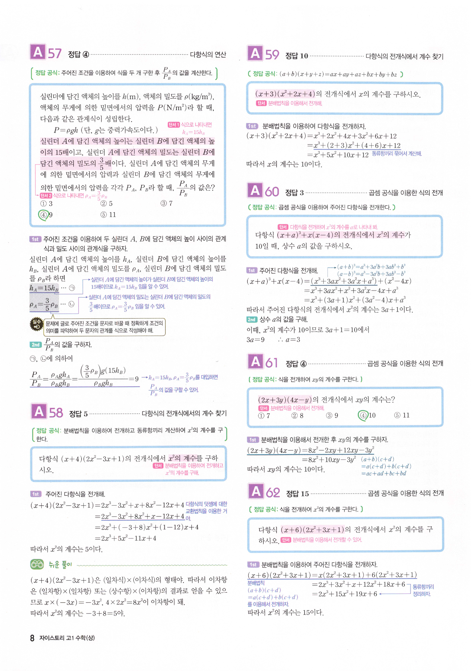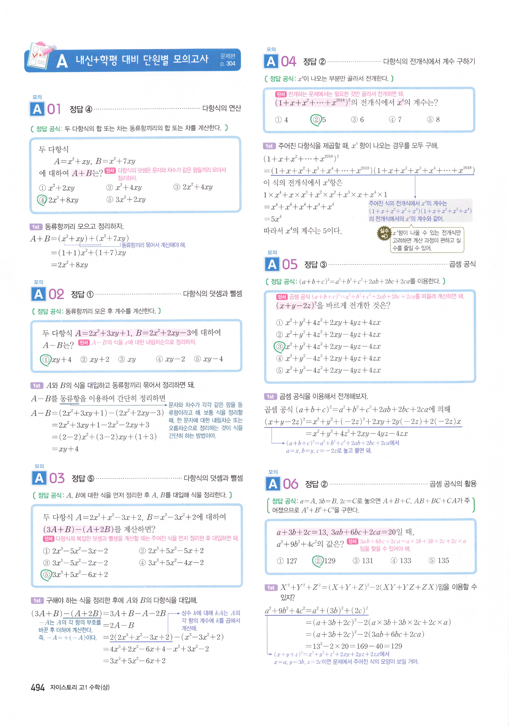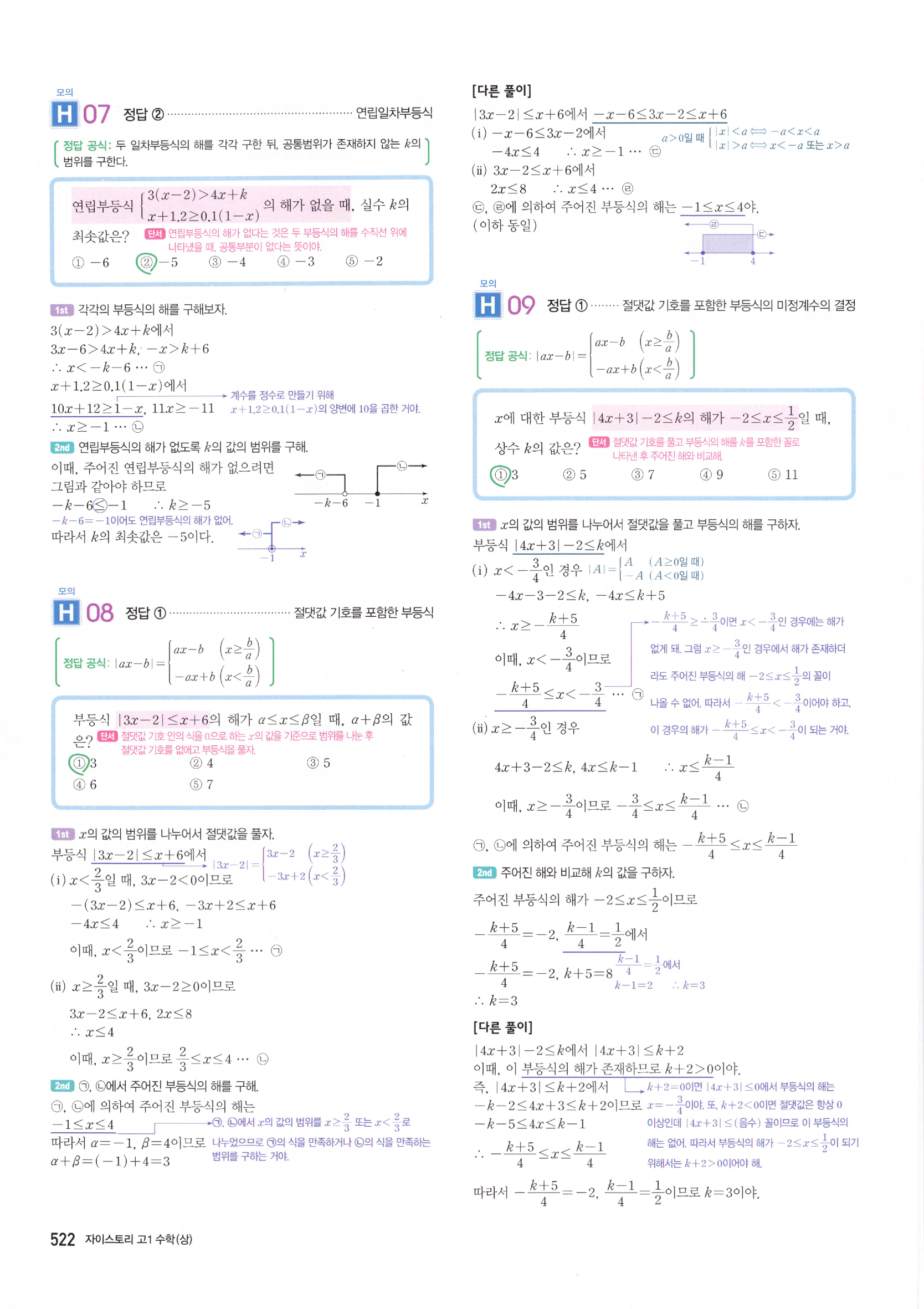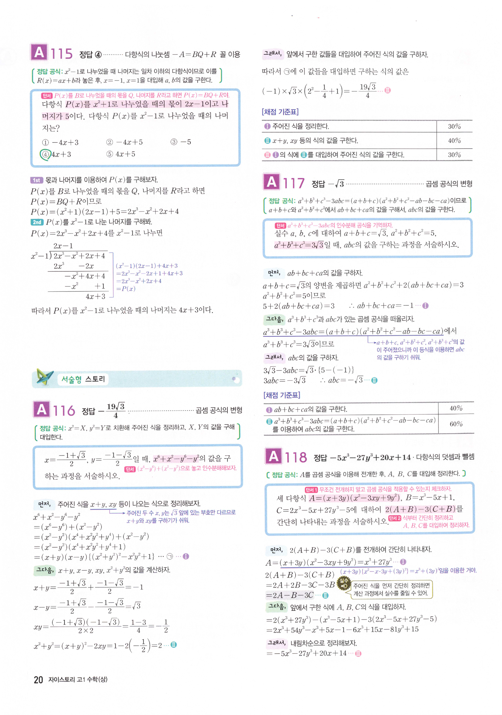 자이스토리 고1 수학상 답지 풀이해설 바로보는 사진답지 풀이집(O)빠른답지 아님