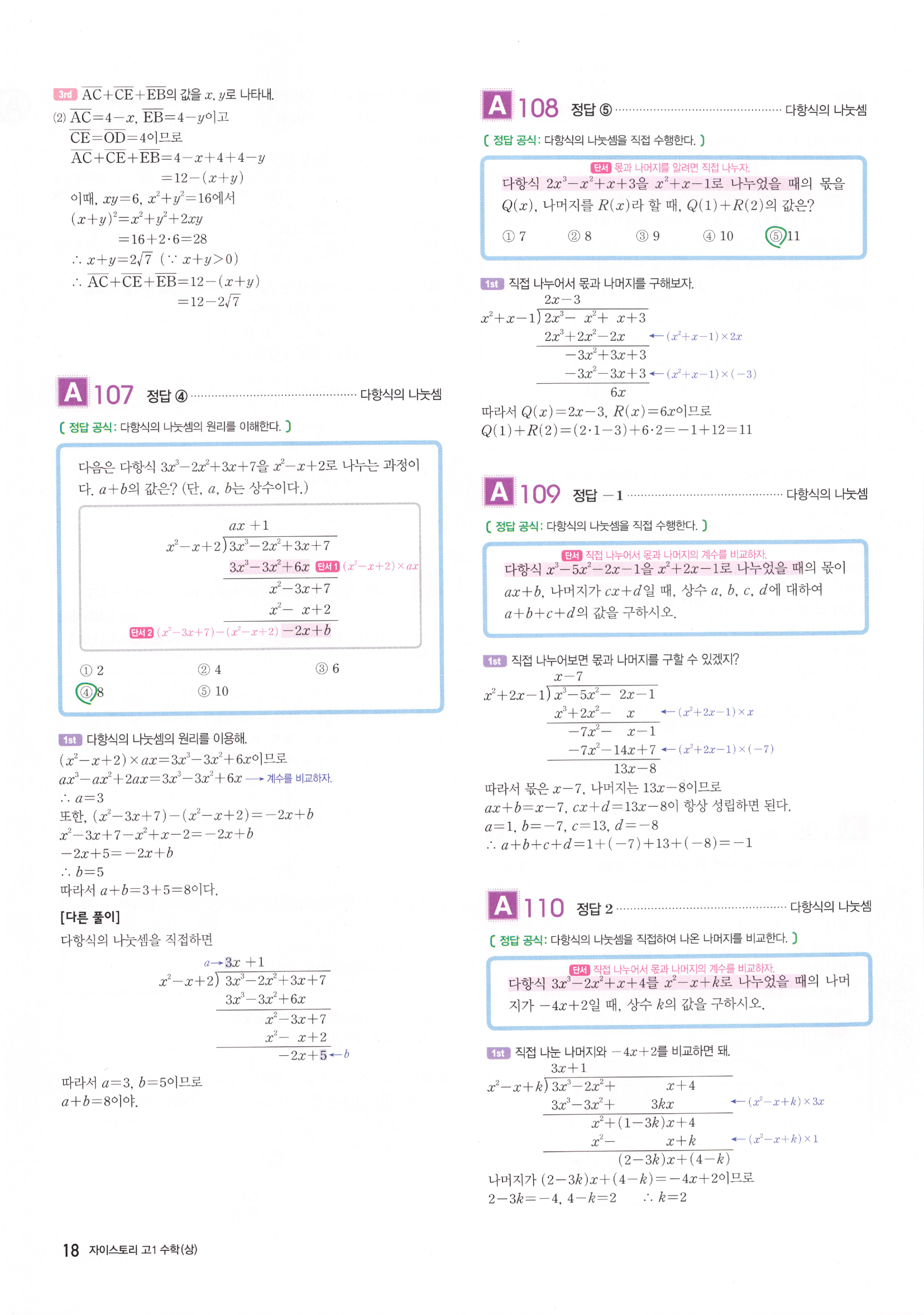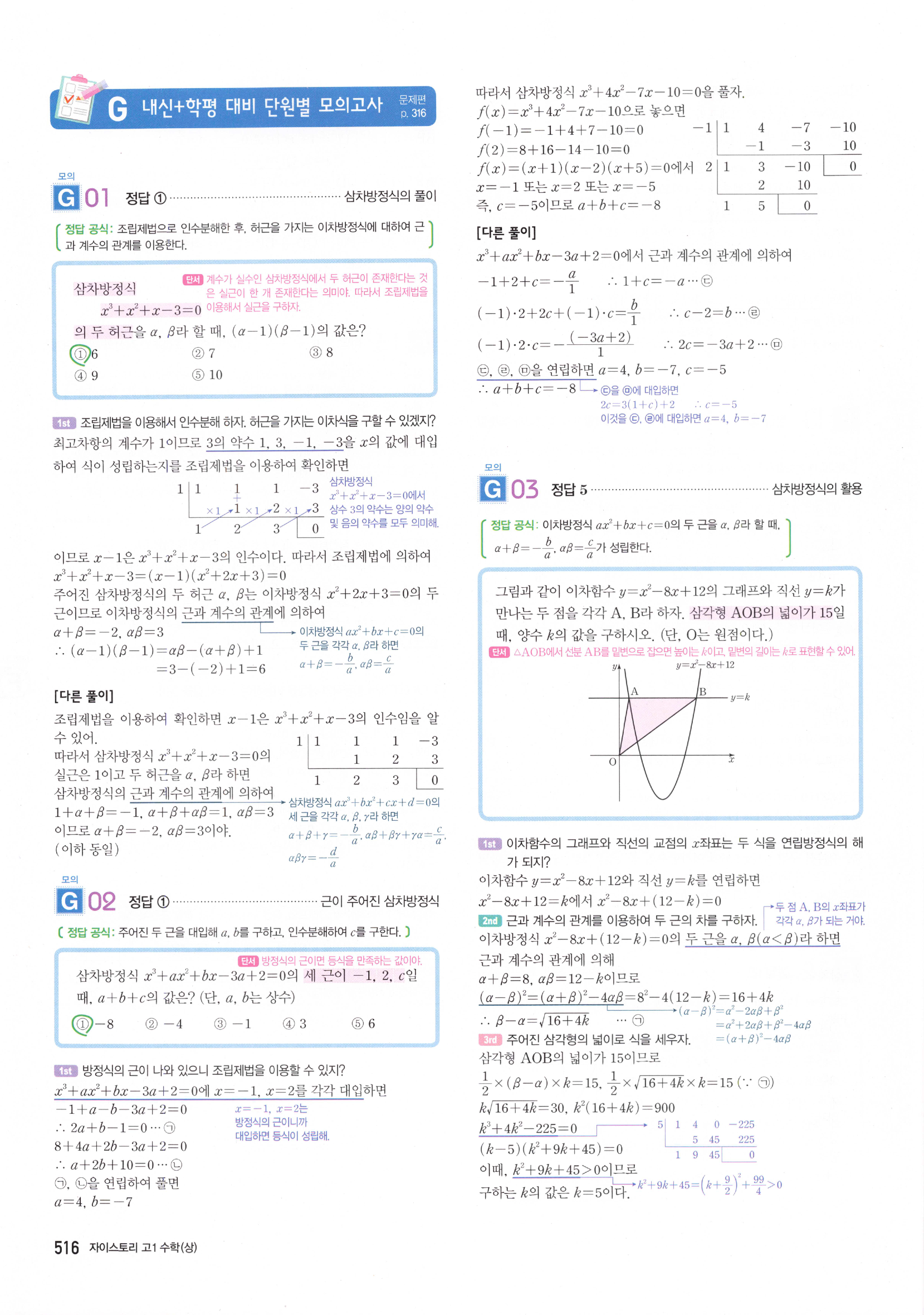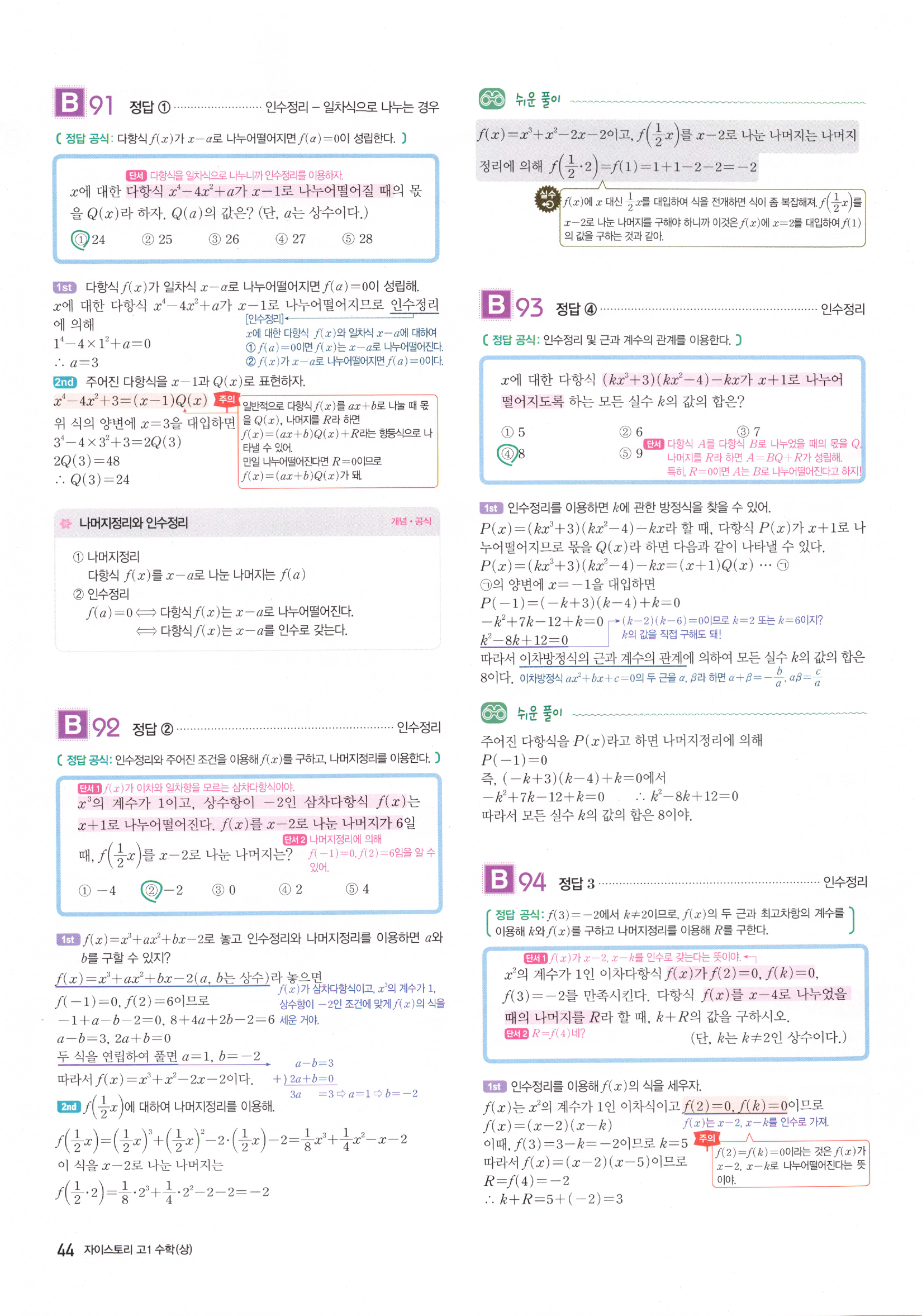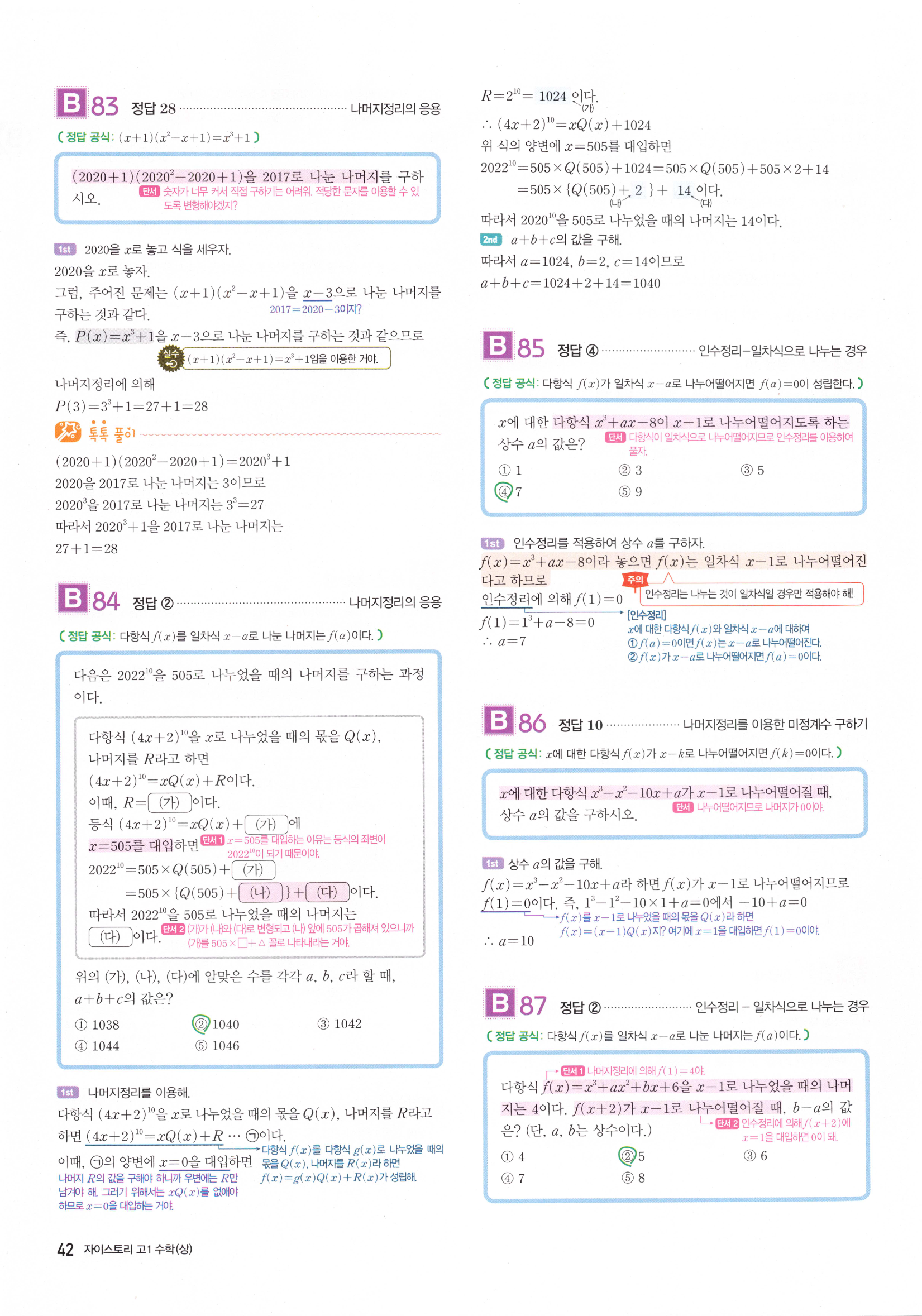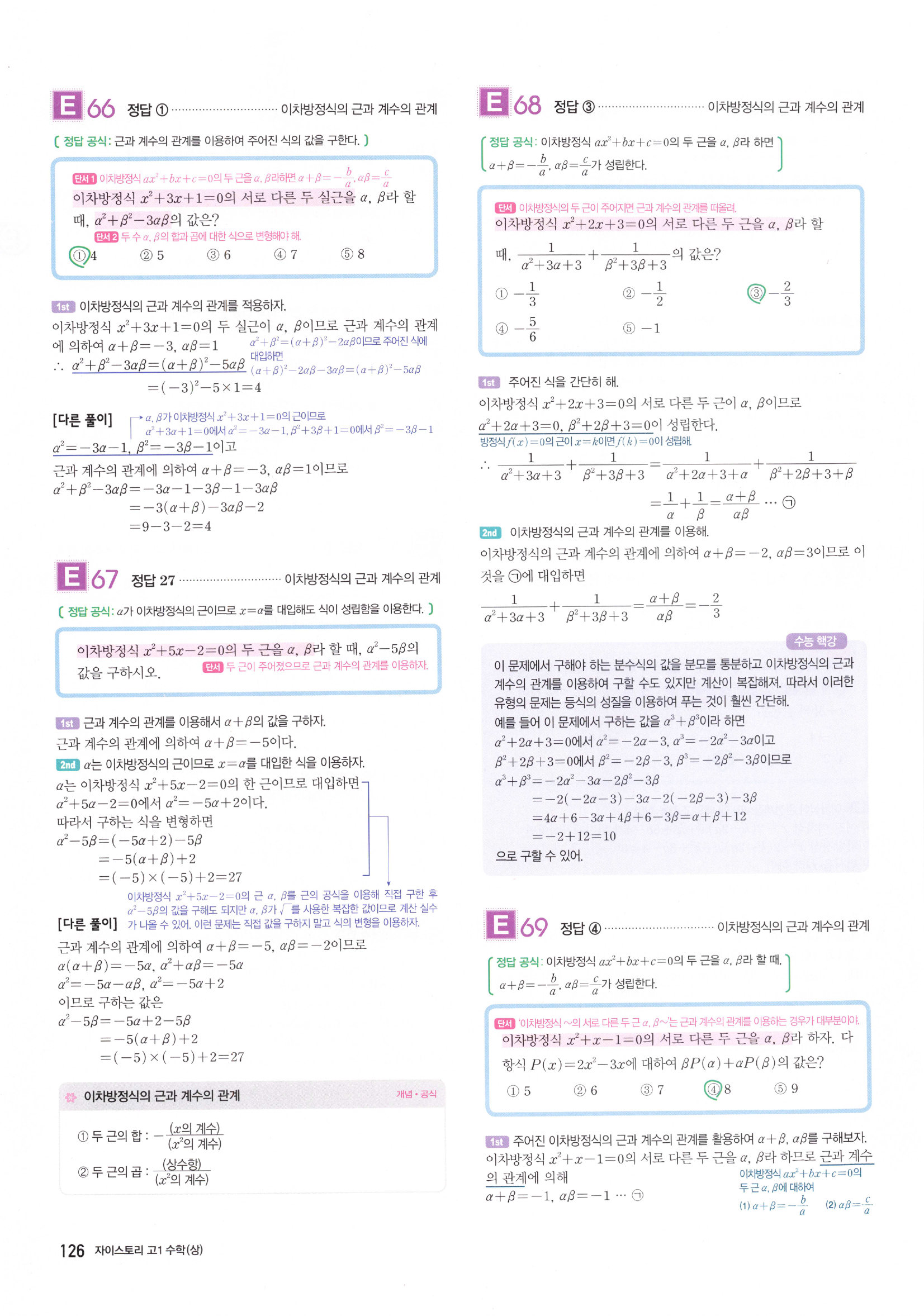 자이스토리 고1 수학상 답지 풀이해설 바로보는 사진답지 풀이집(O)빠른답지 아님