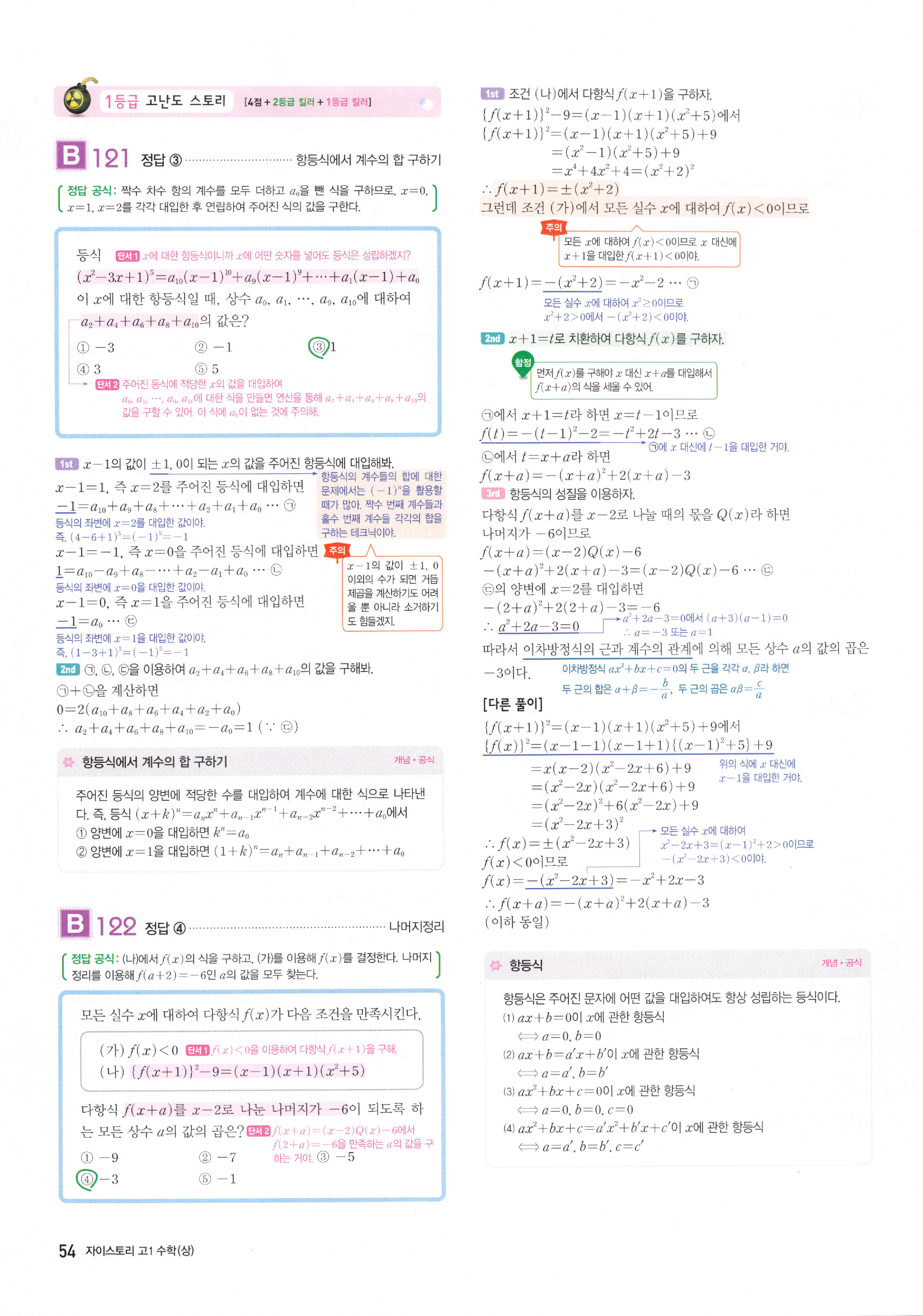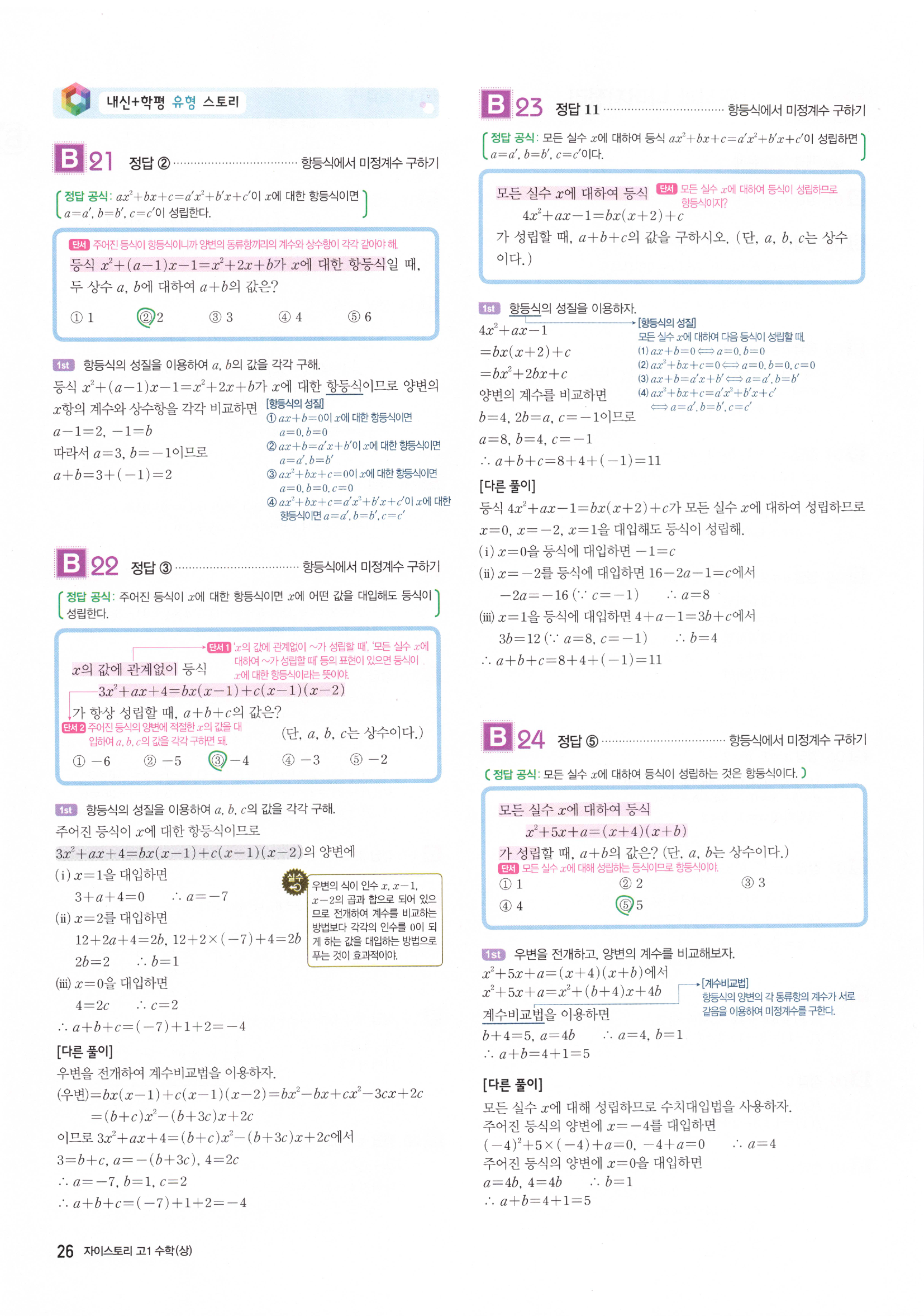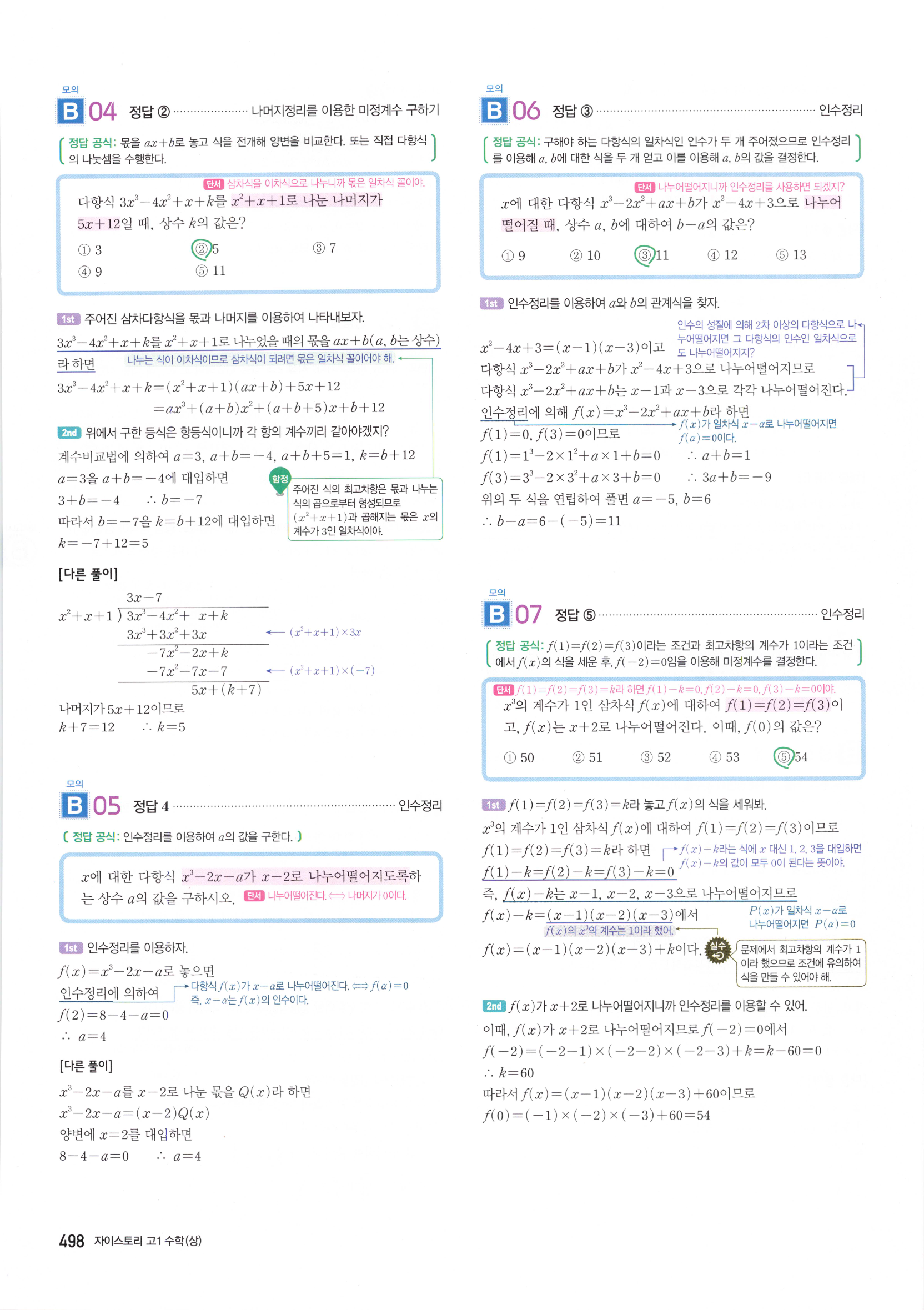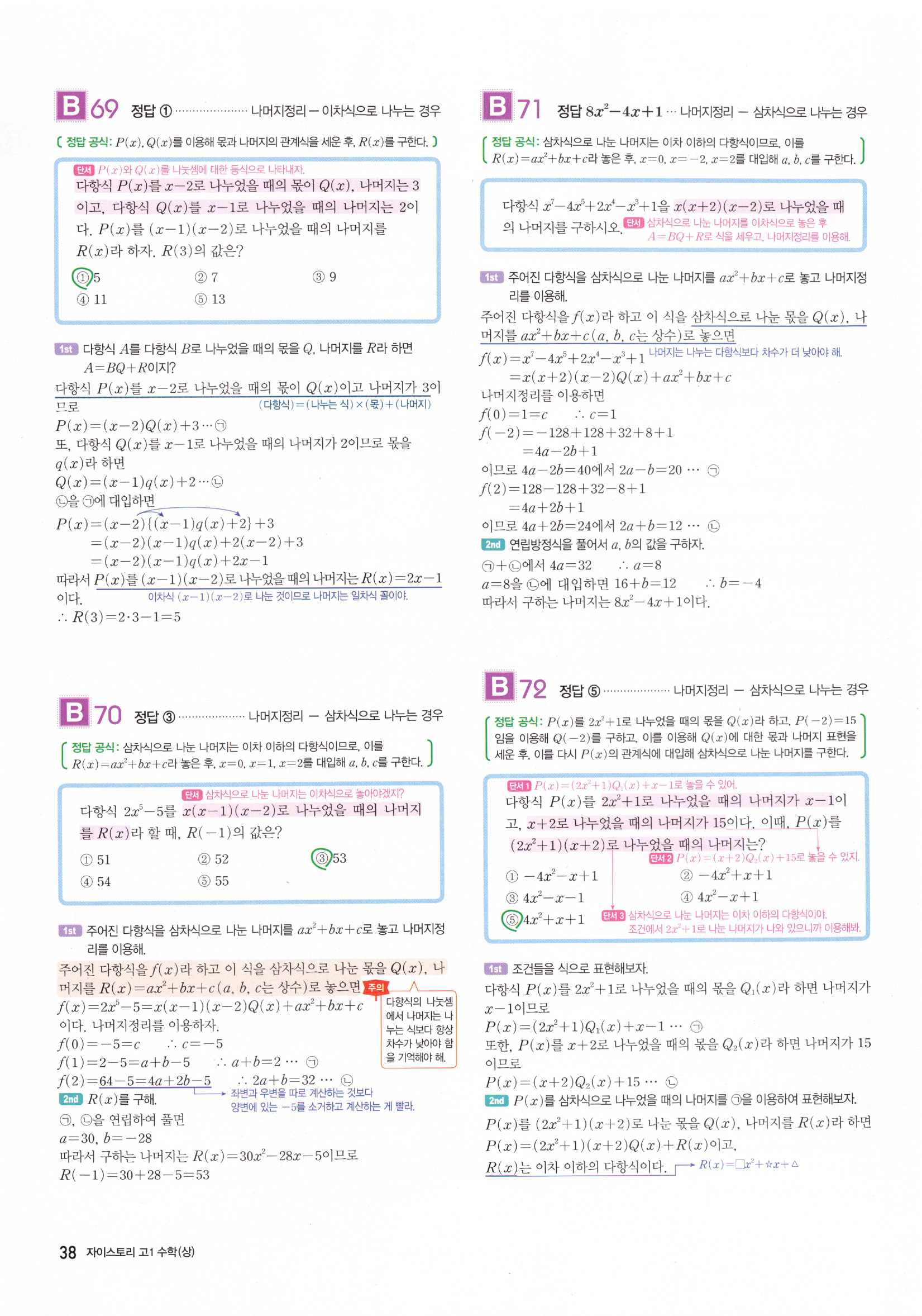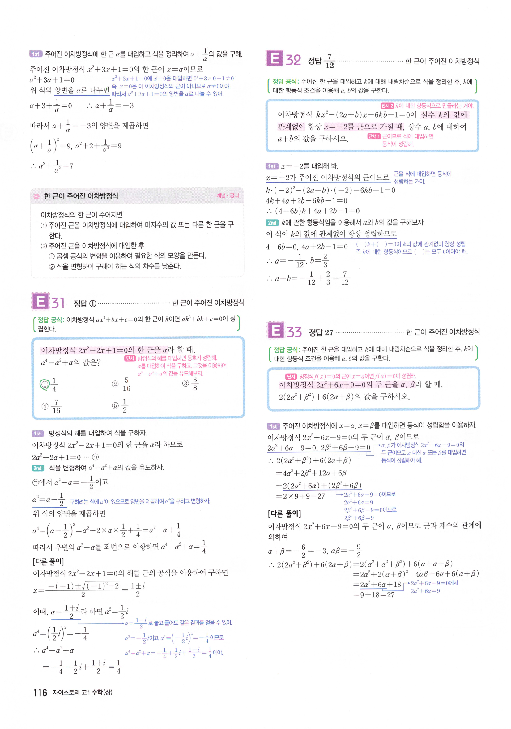 자이스토리 고1 수학상 답지 풀이해설 바로보는 사진답지 풀이집(O)빠른답지 아님