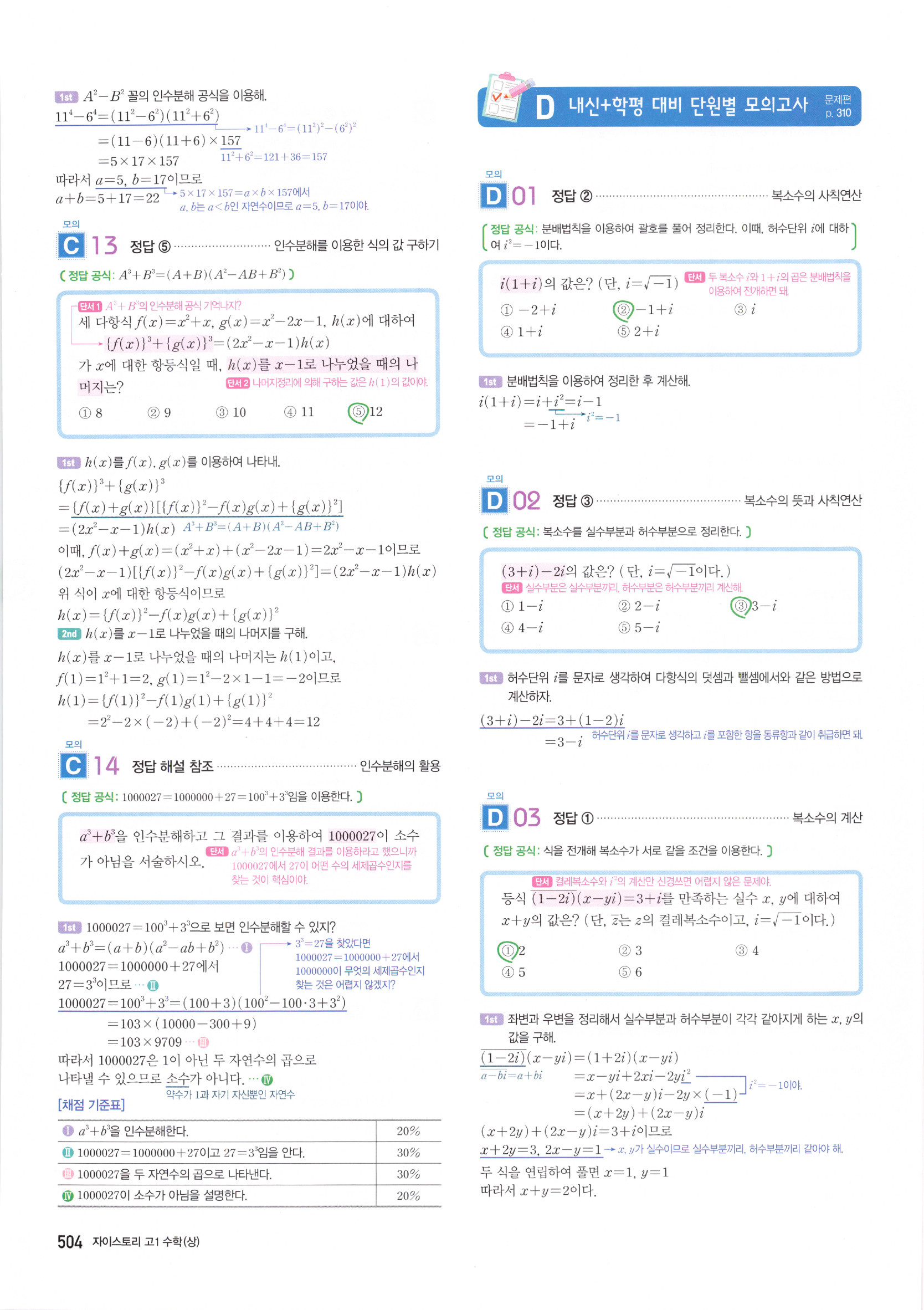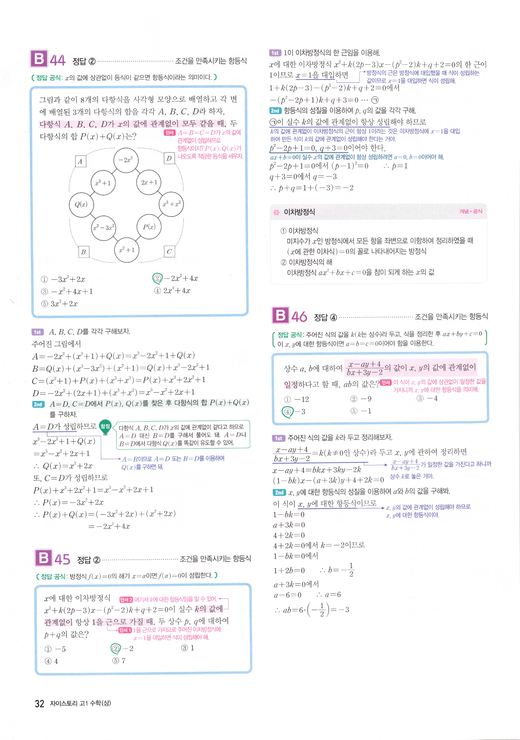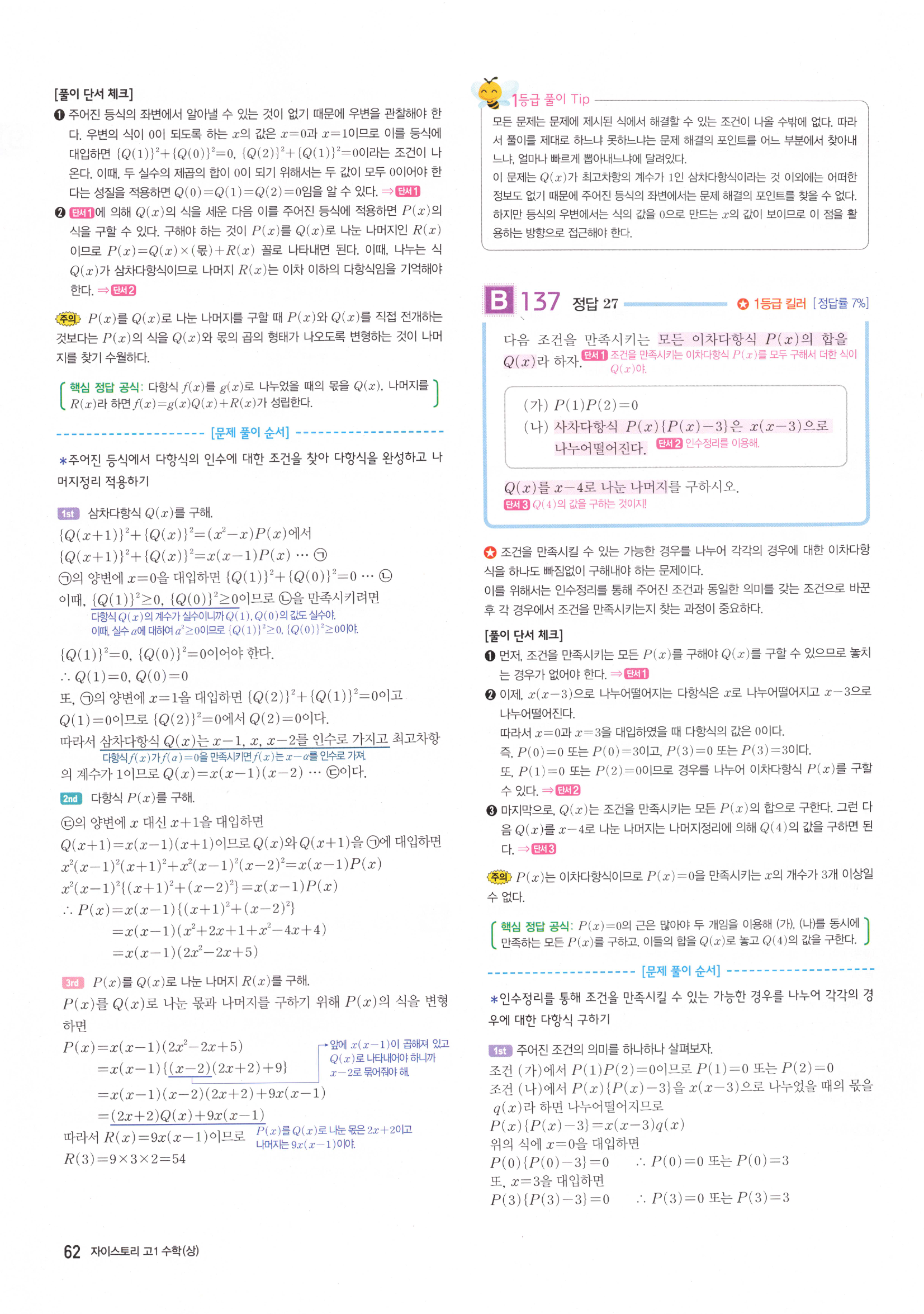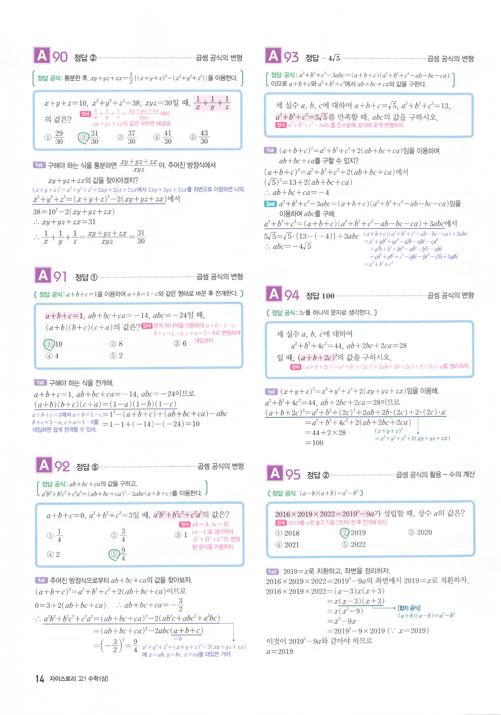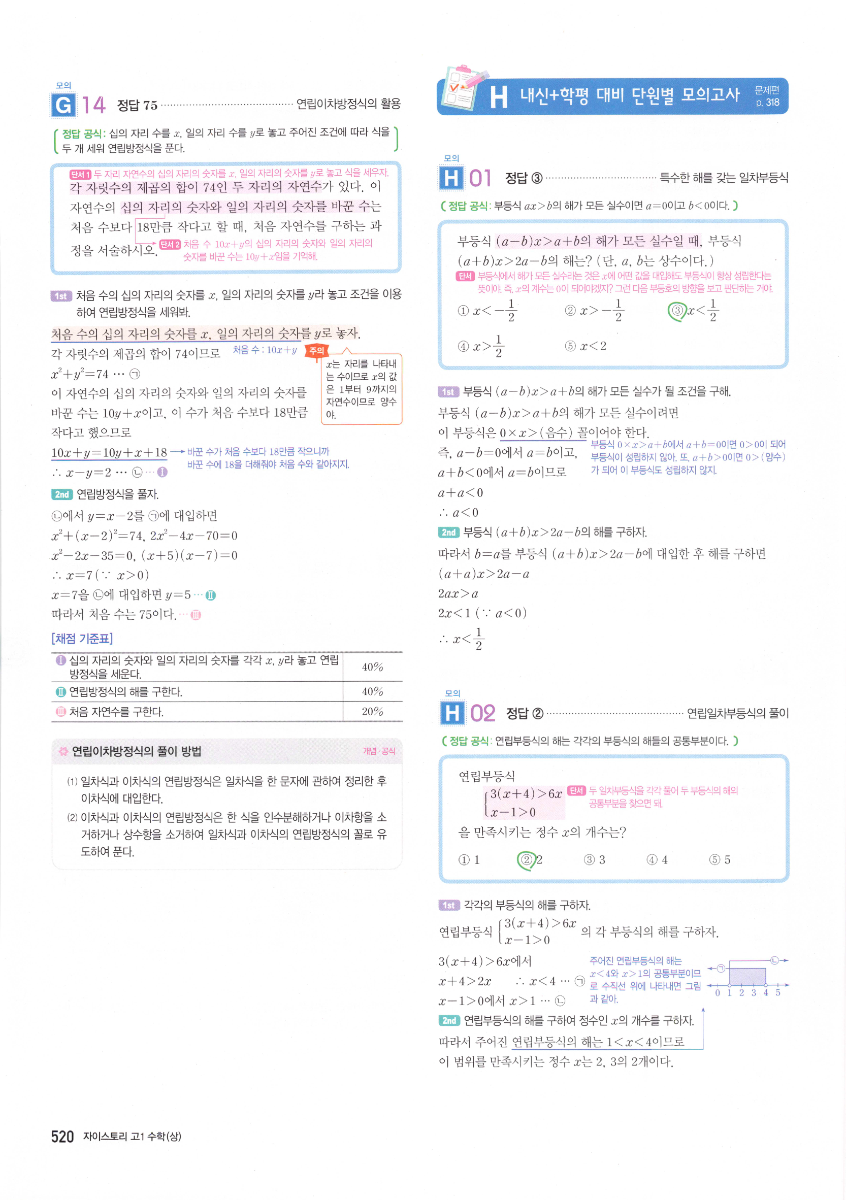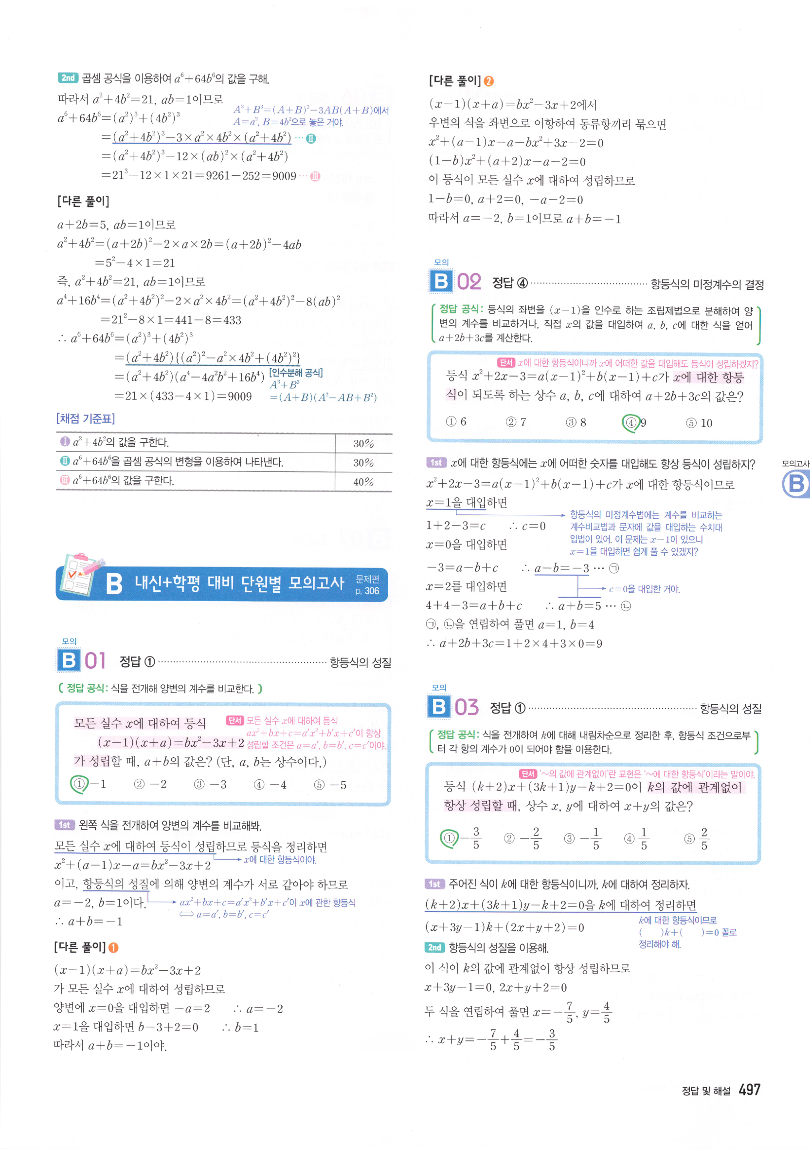 자이스토리 고1 수학상 답지 풀이해설 바로보는 사진답지 풀이집(O)빠른답지 아님