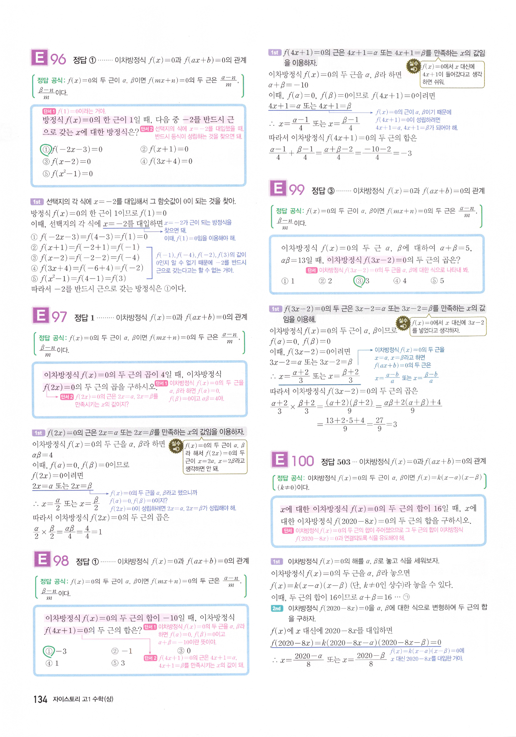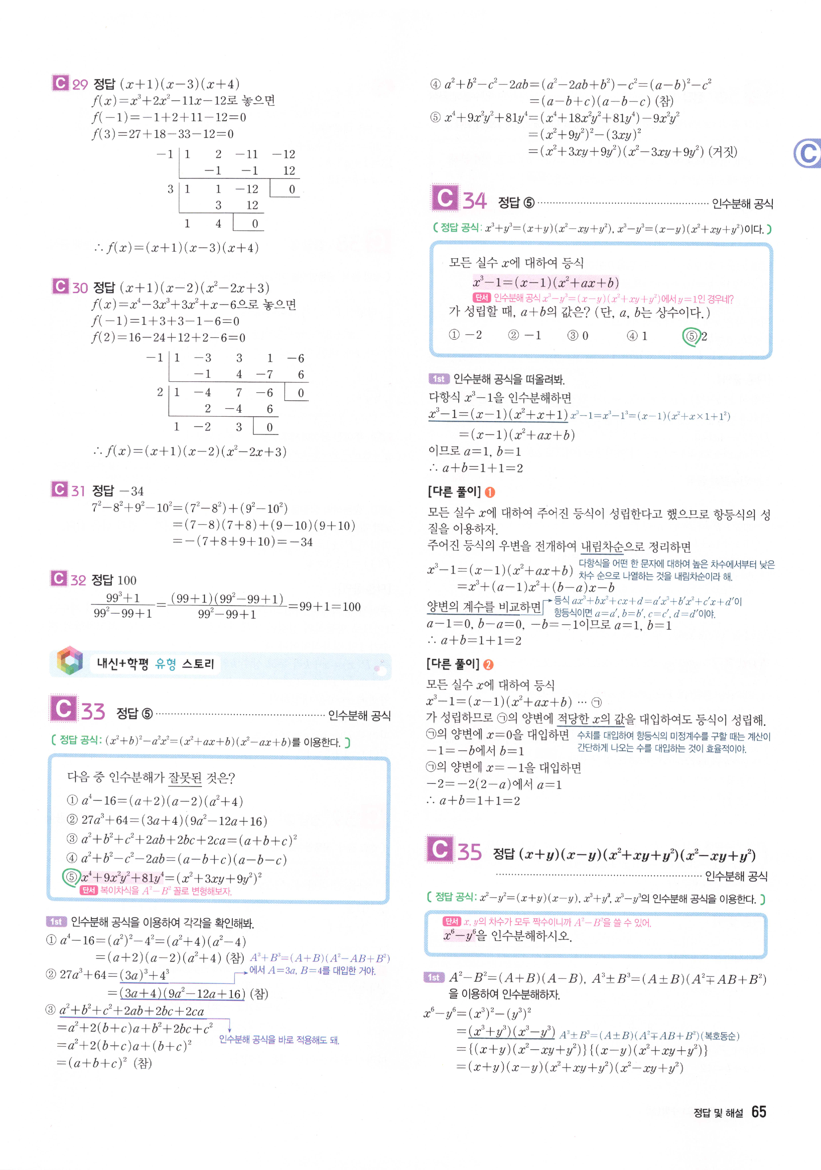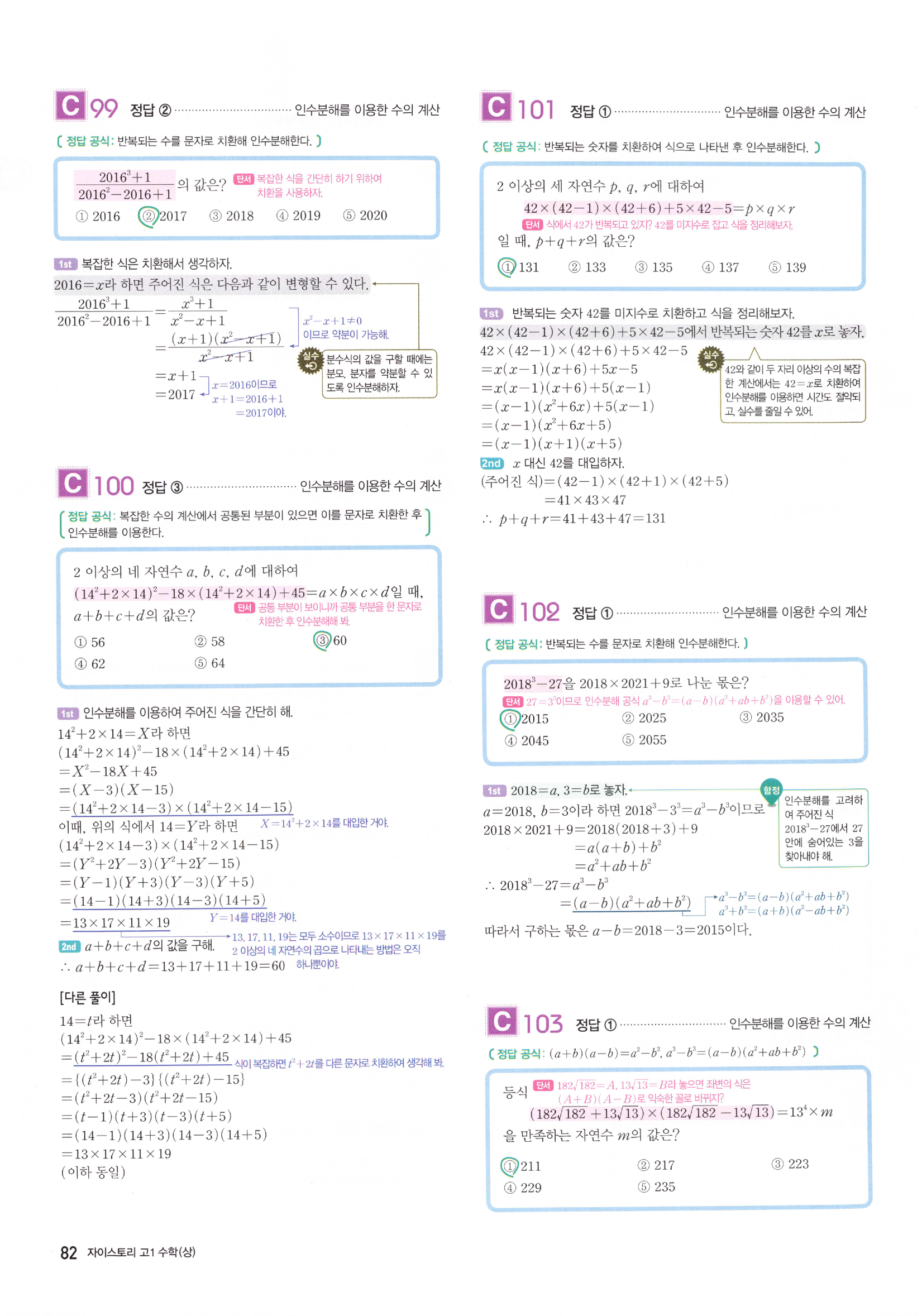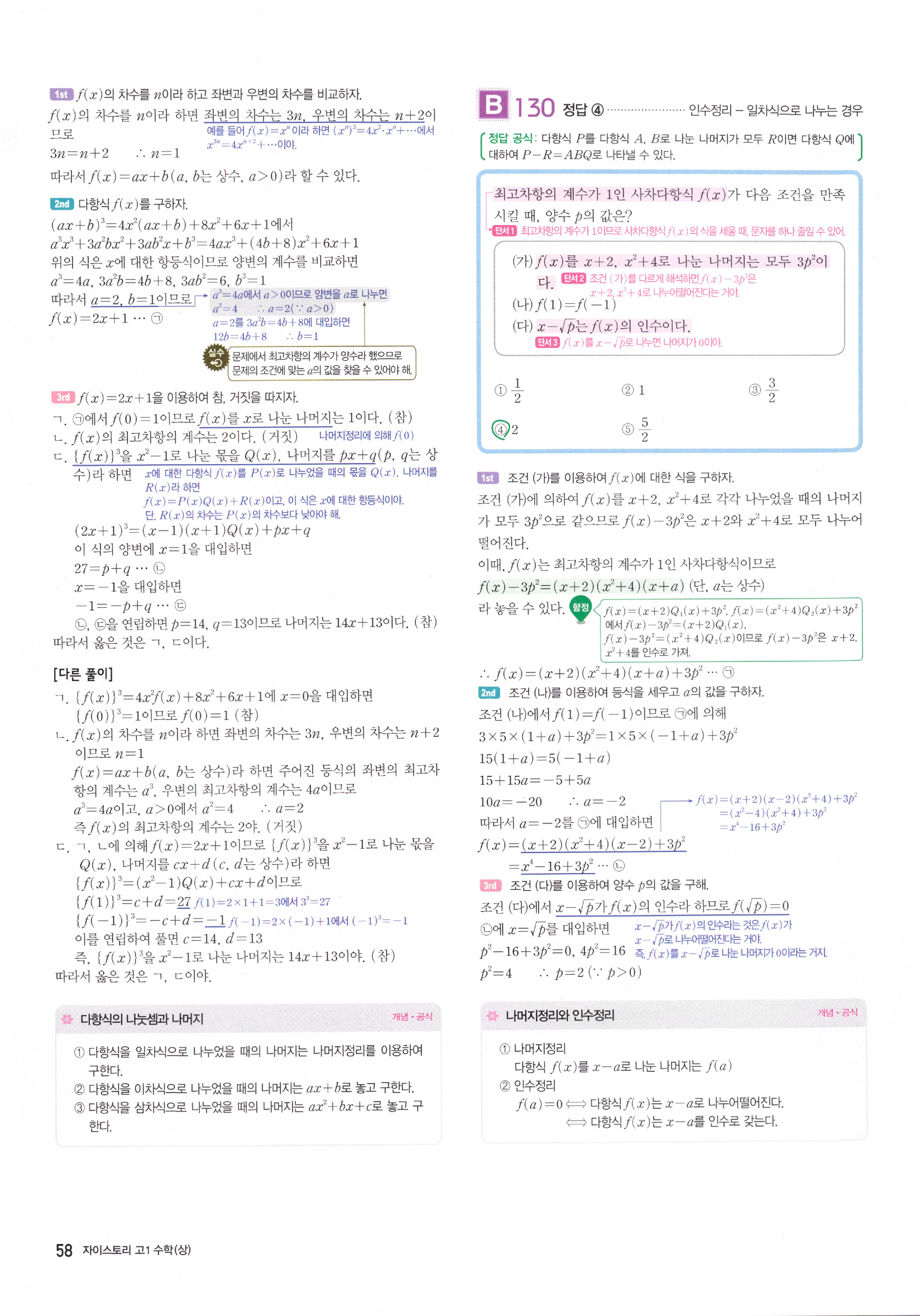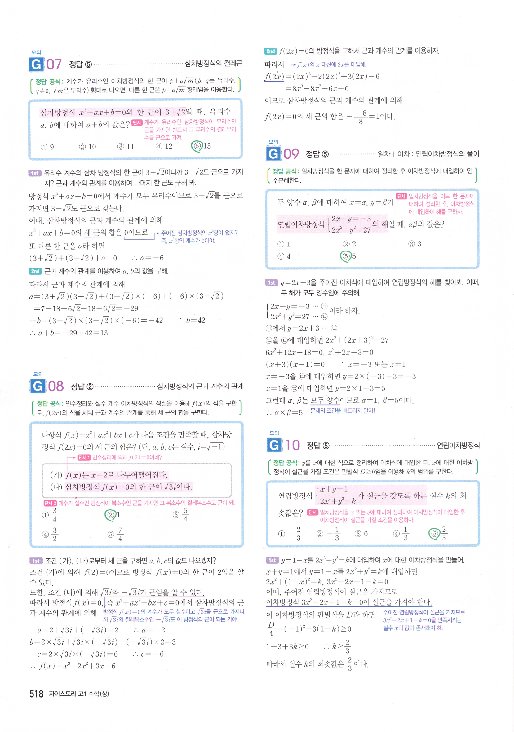 자이스토리 고1 수학상 답지 풀이해설 바로보는 사진답지 풀이집(O)빠른답지 아님