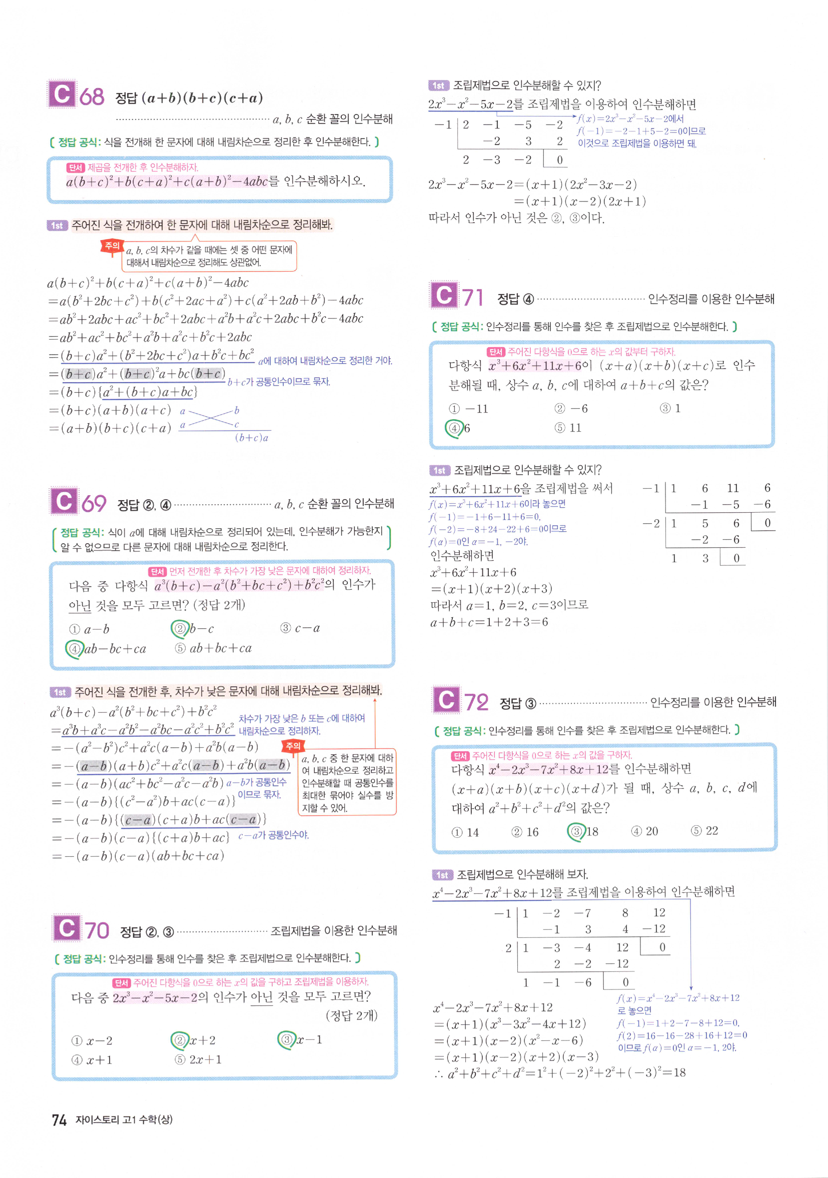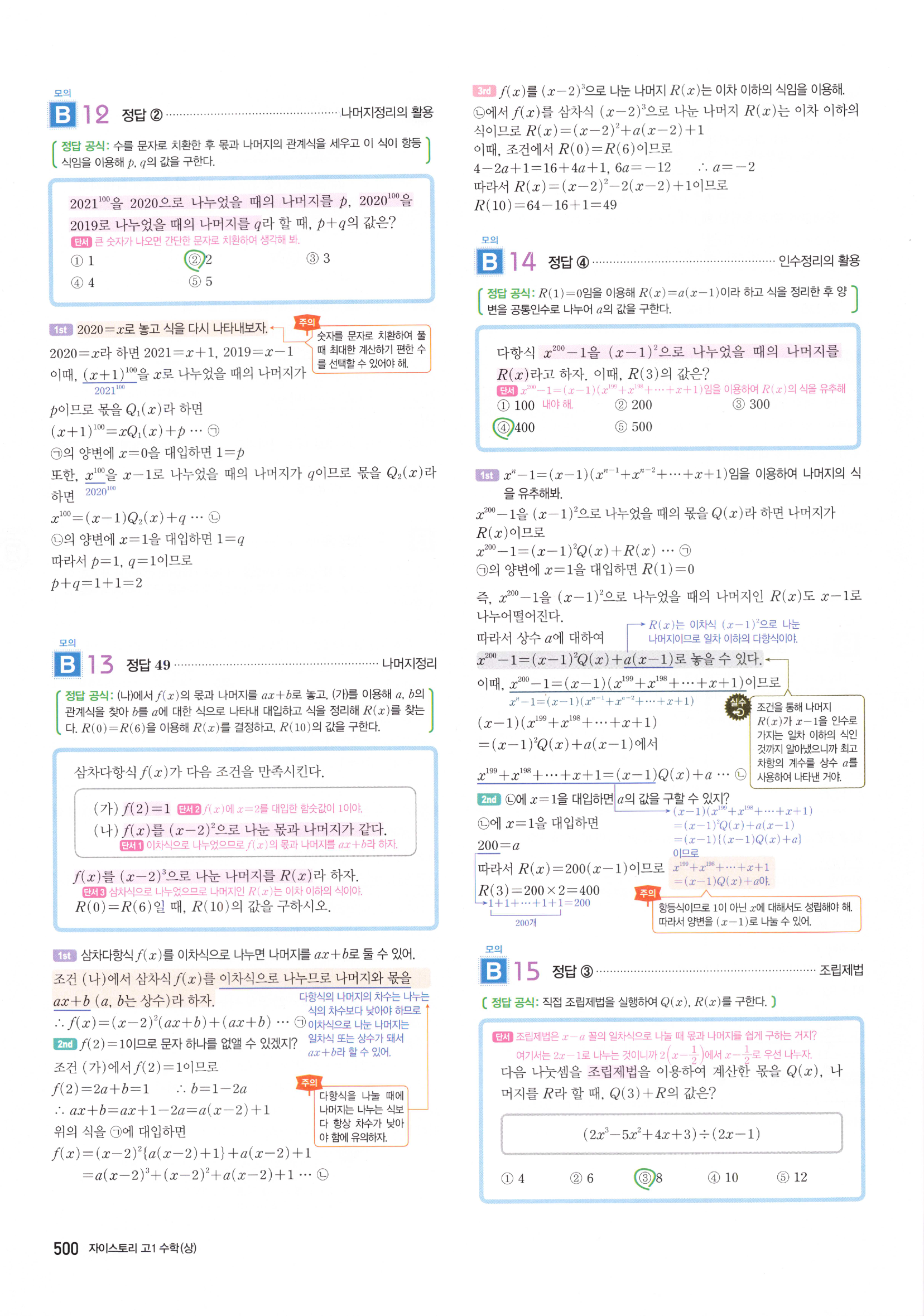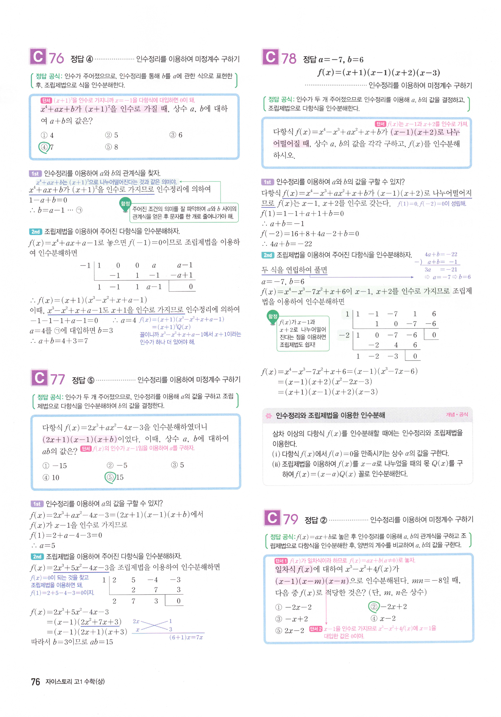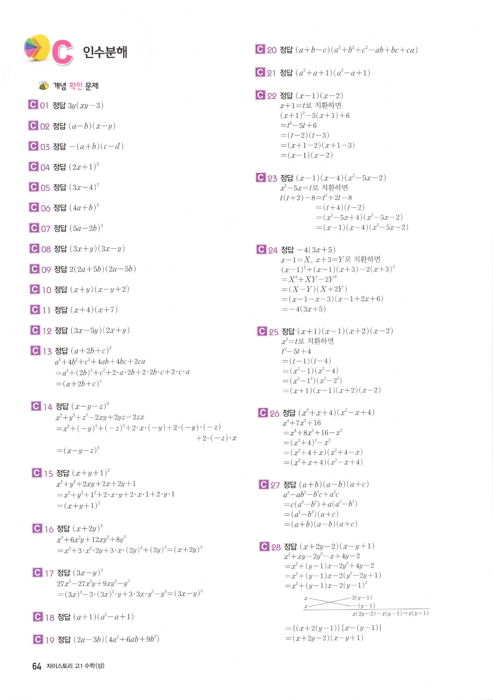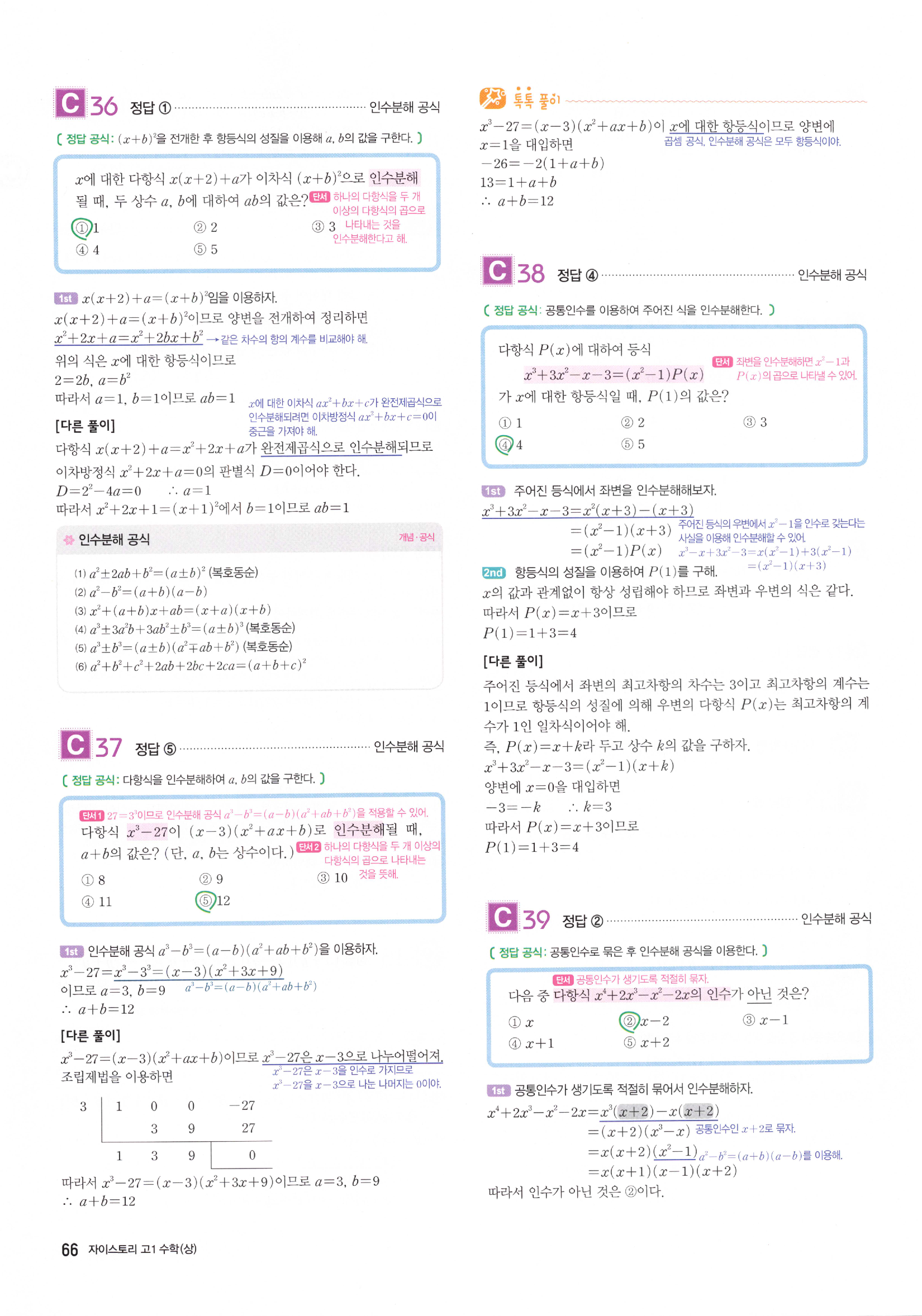 자이스토리 고1 수학상 답지 풀이해설 바로보는 사진답지 풀이집(O)빠른답지 아님