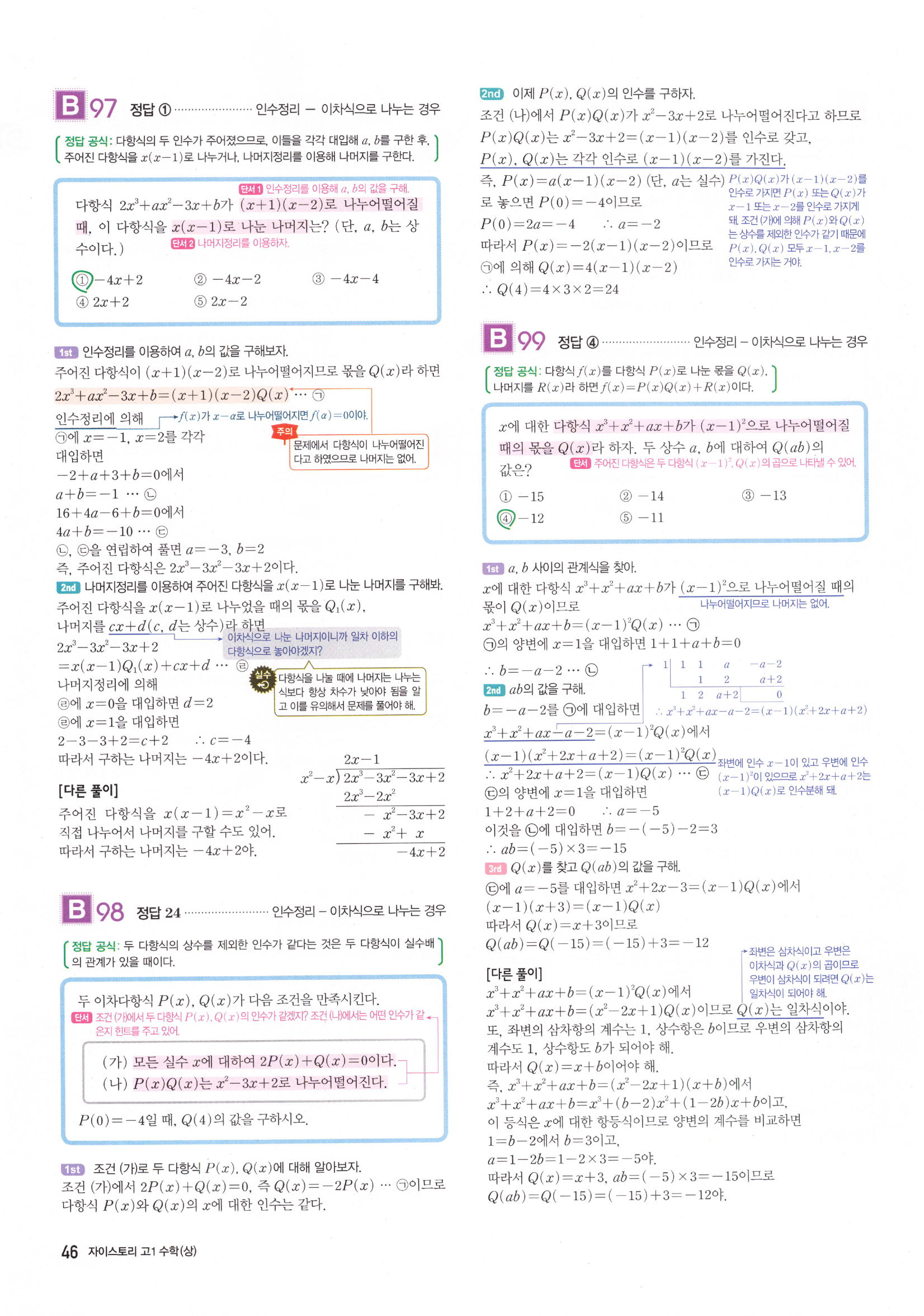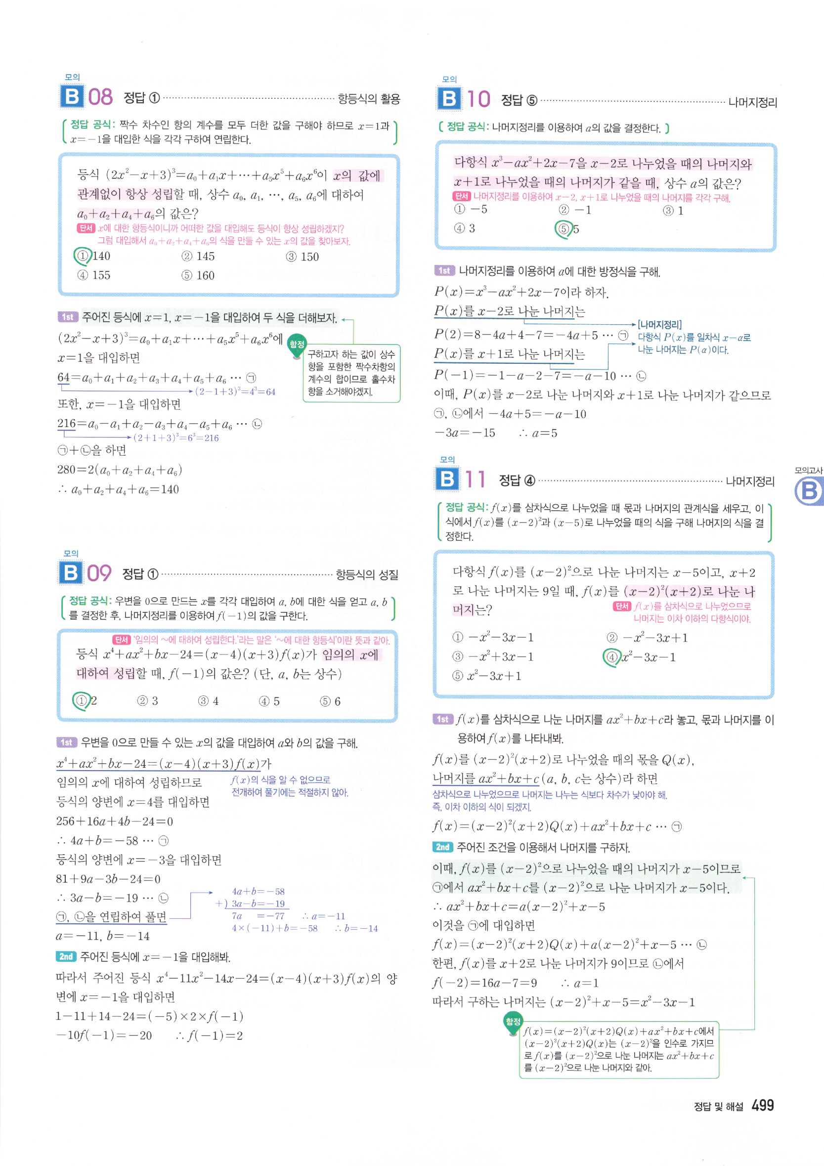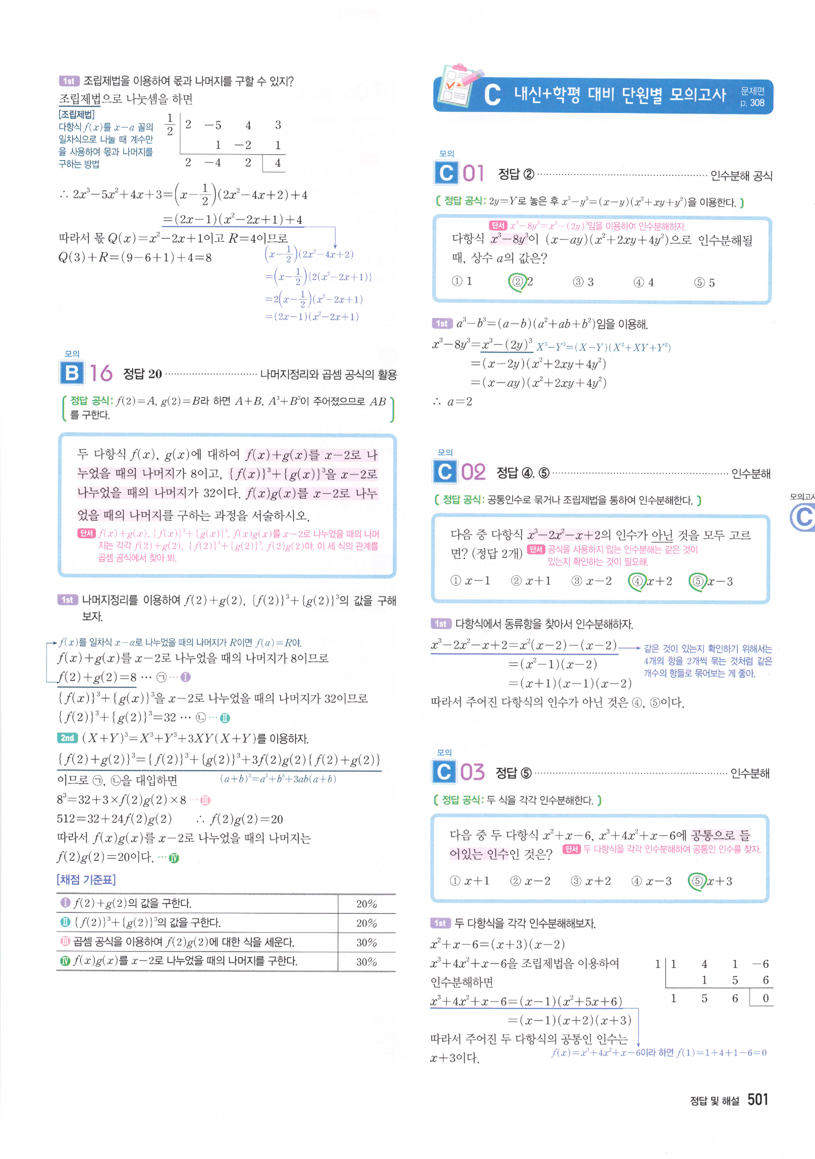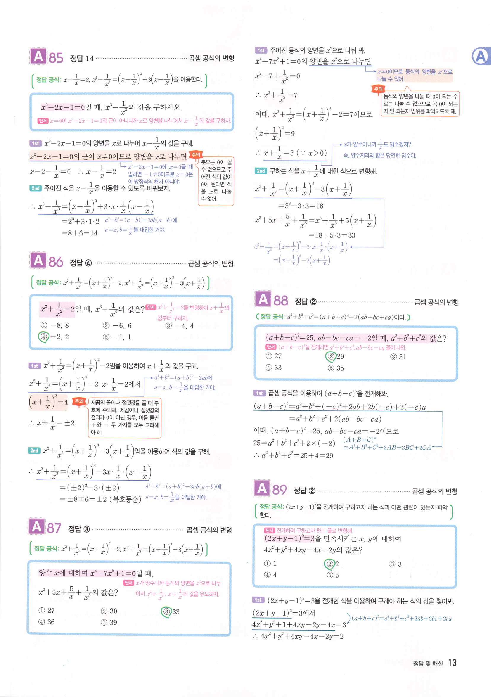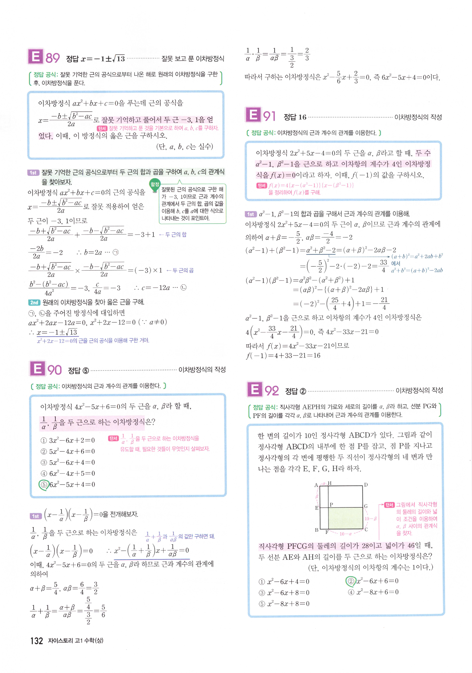 자이스토리 고1 수학상 답지 풀이해설 바로보는 사진답지 풀이집(O)빠른답지 아님