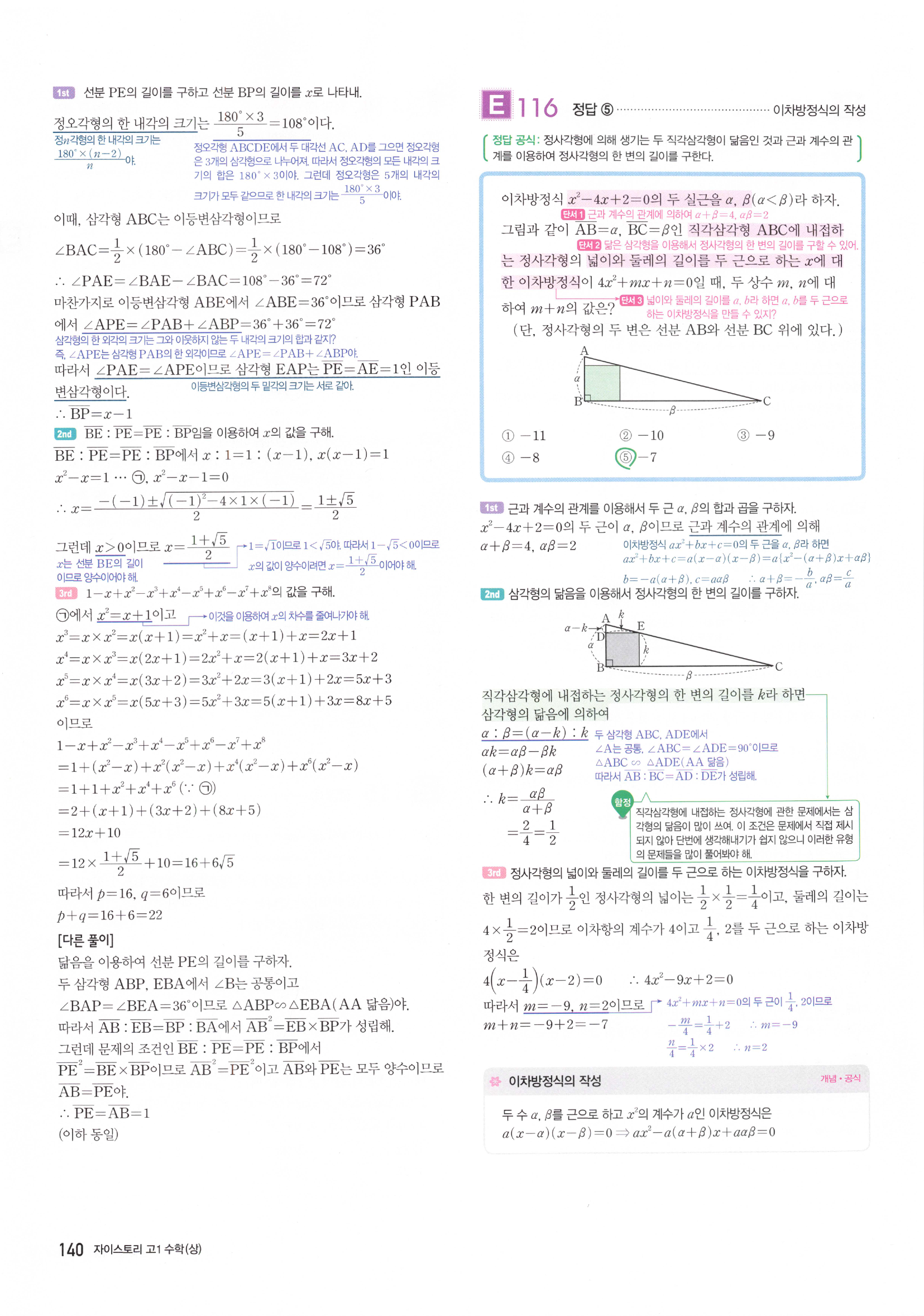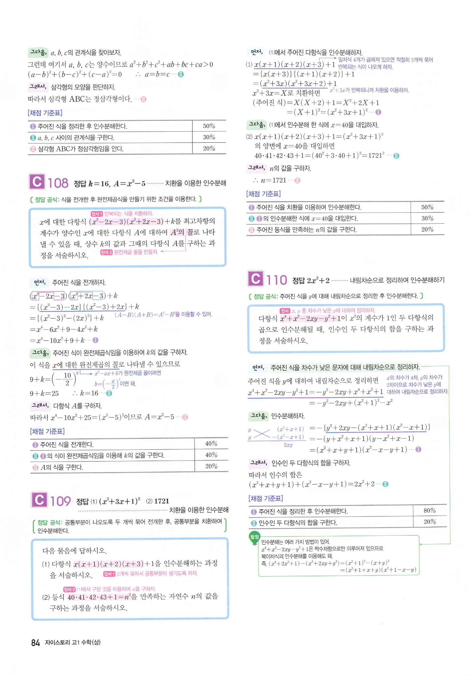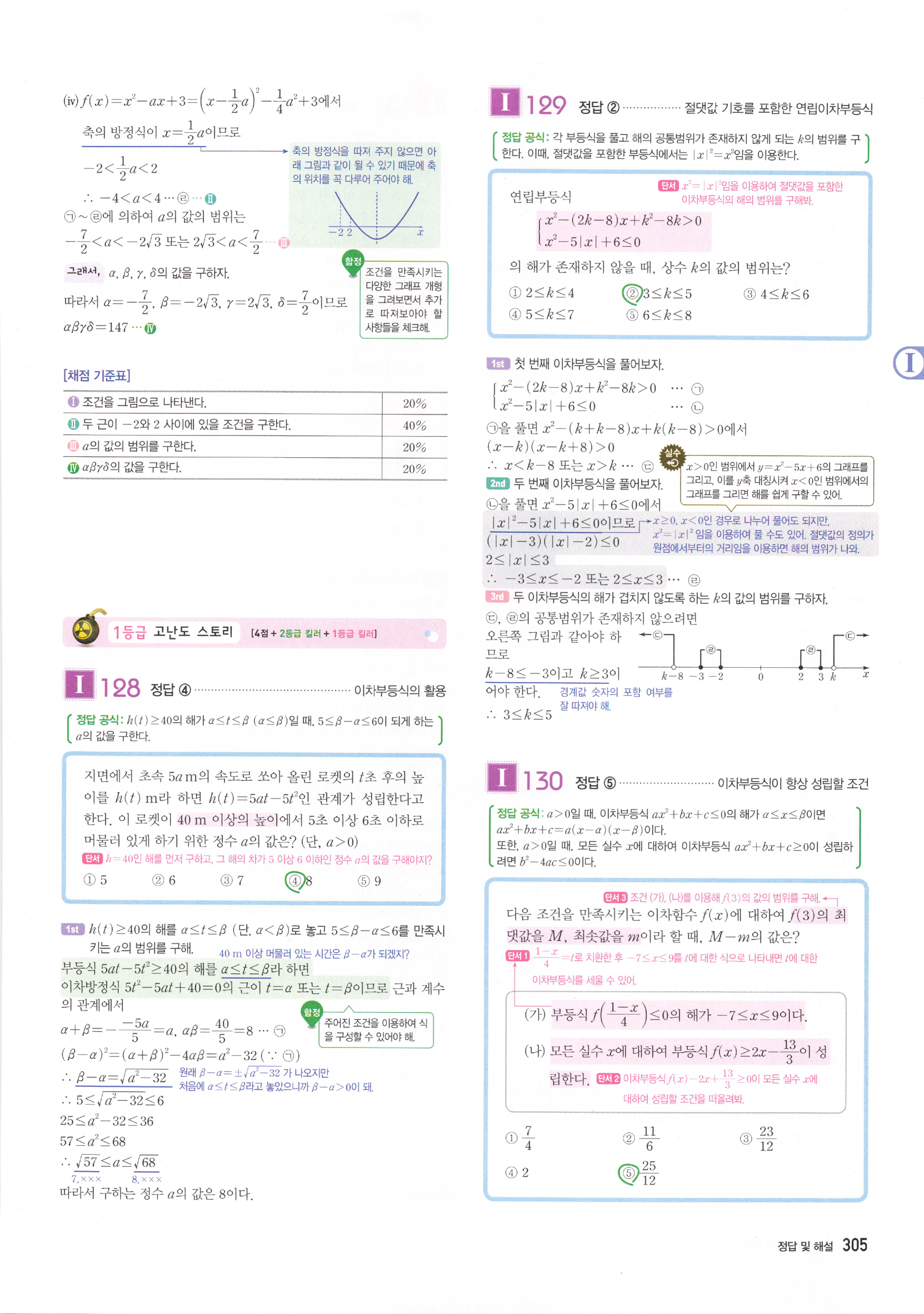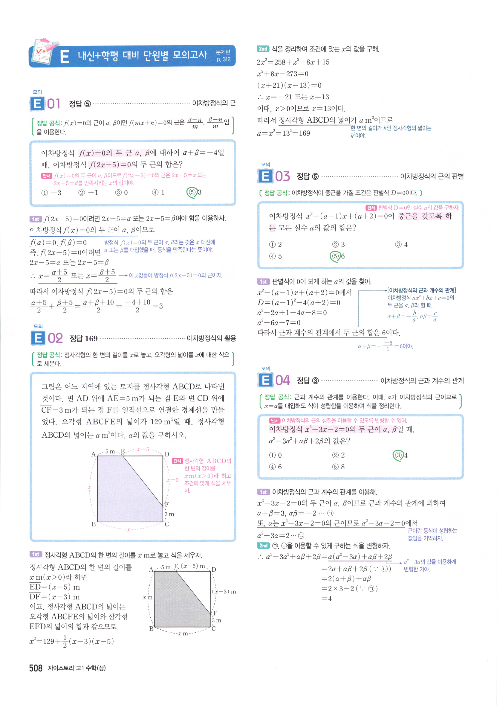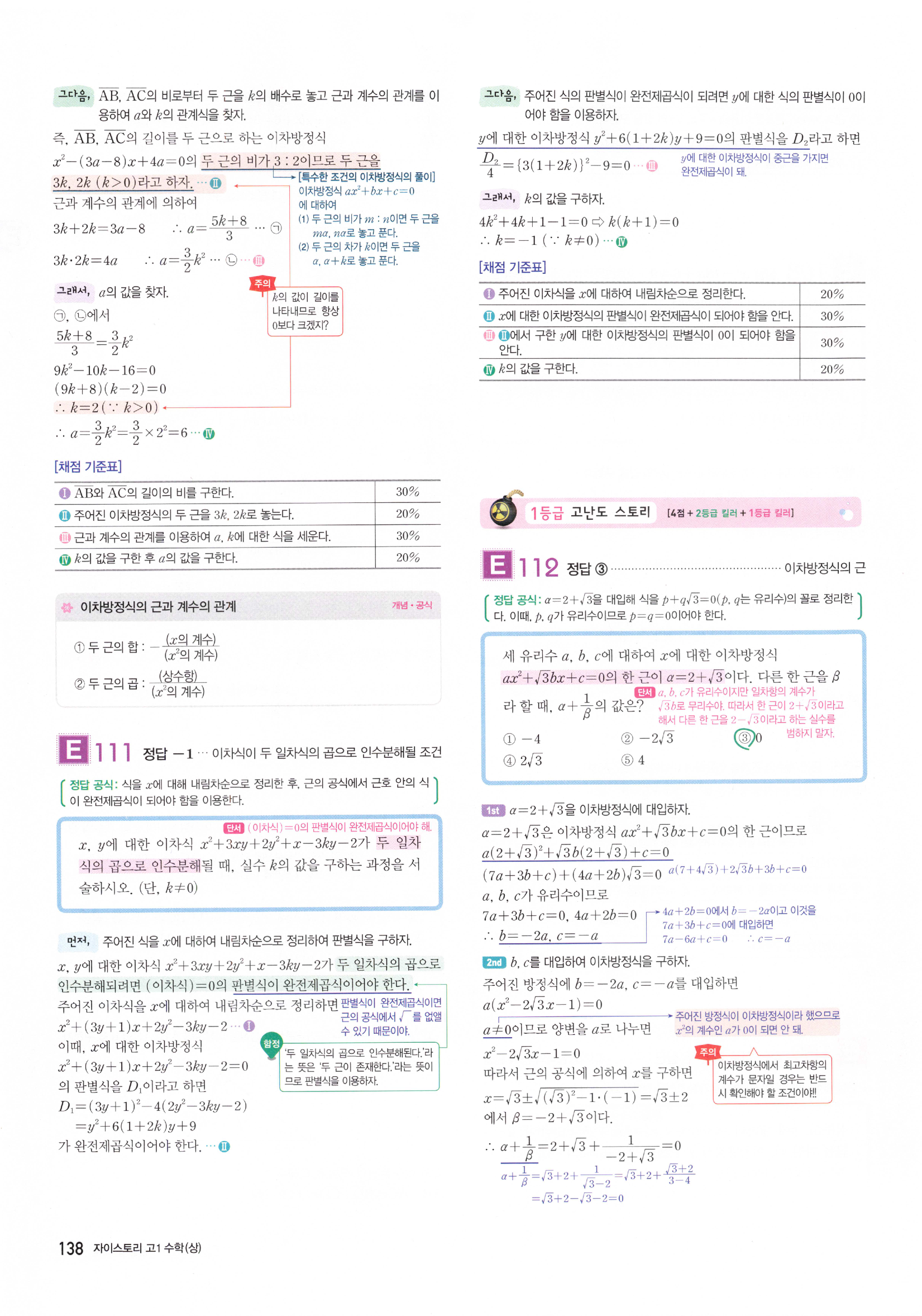 자이스토리 고1 수학상 답지 풀이해설 바로보는 사진답지 풀이집(O)빠른답지 아님