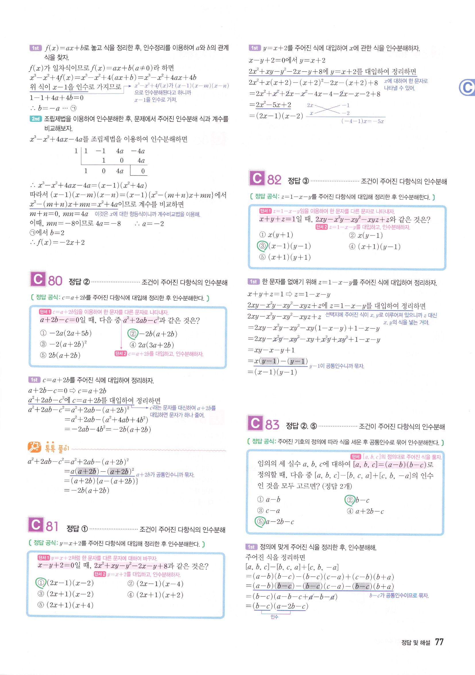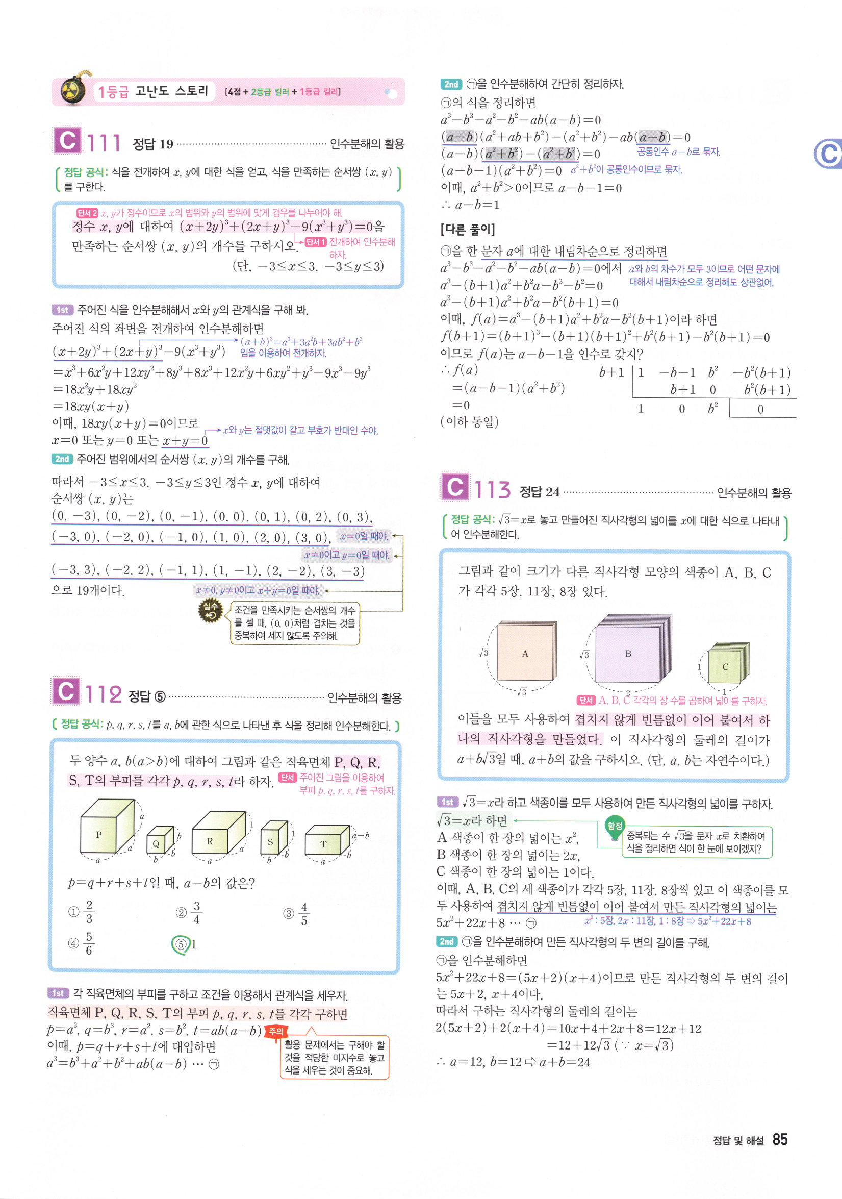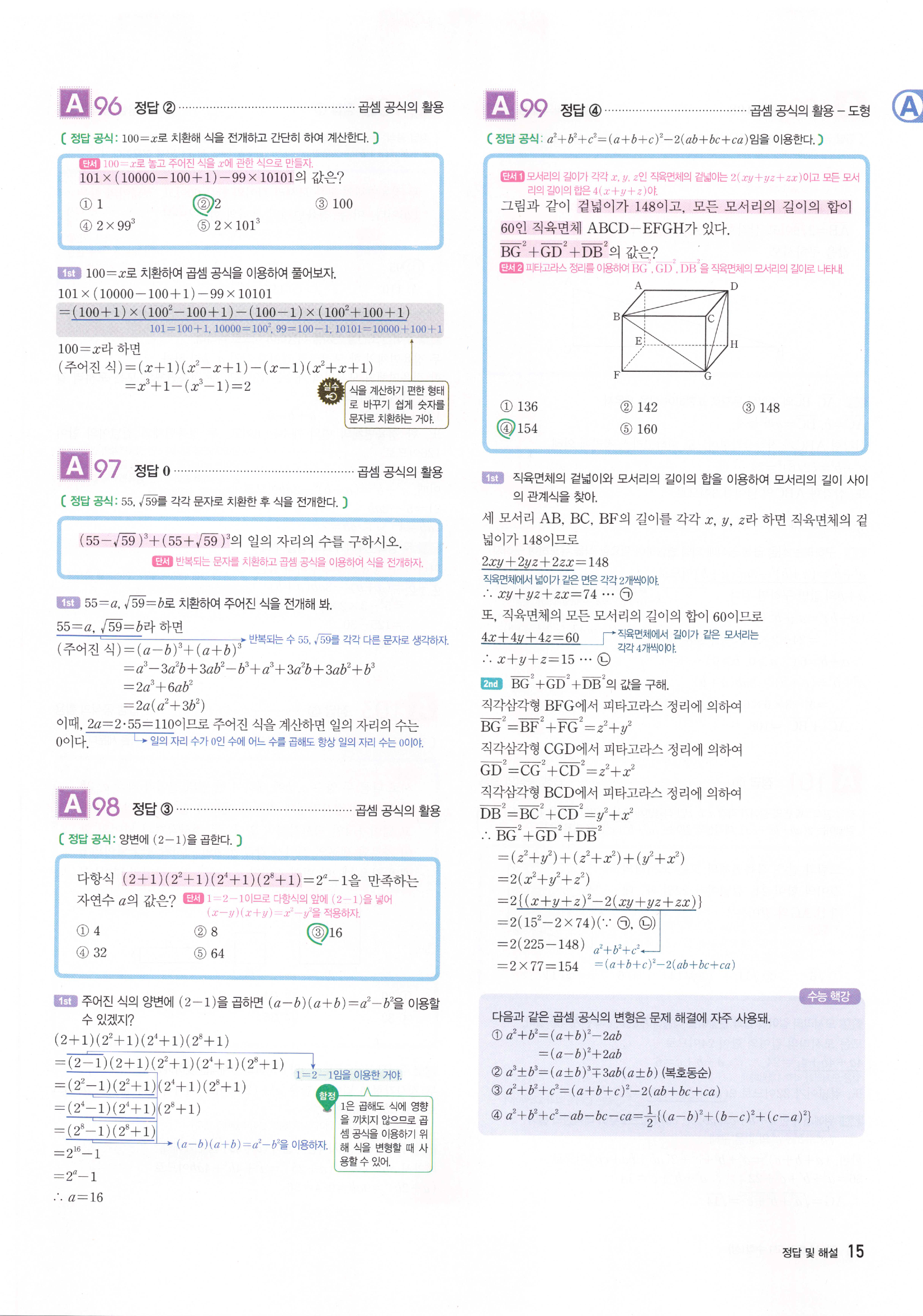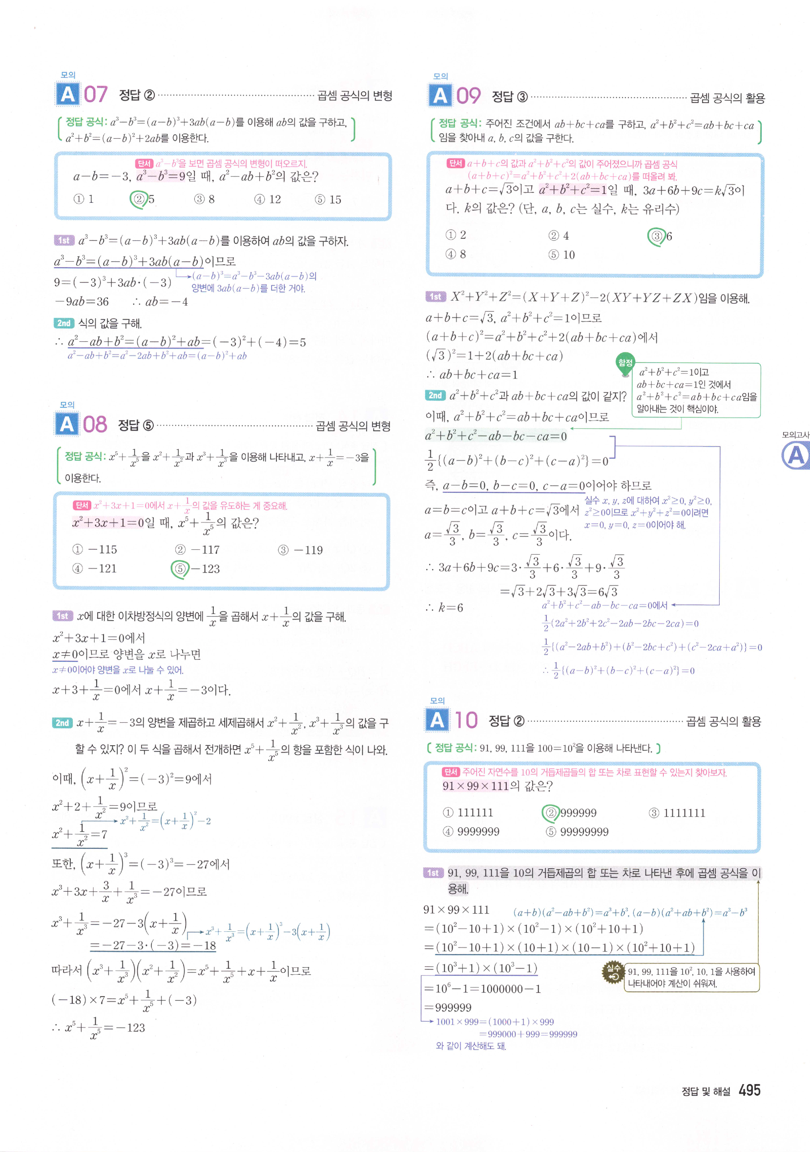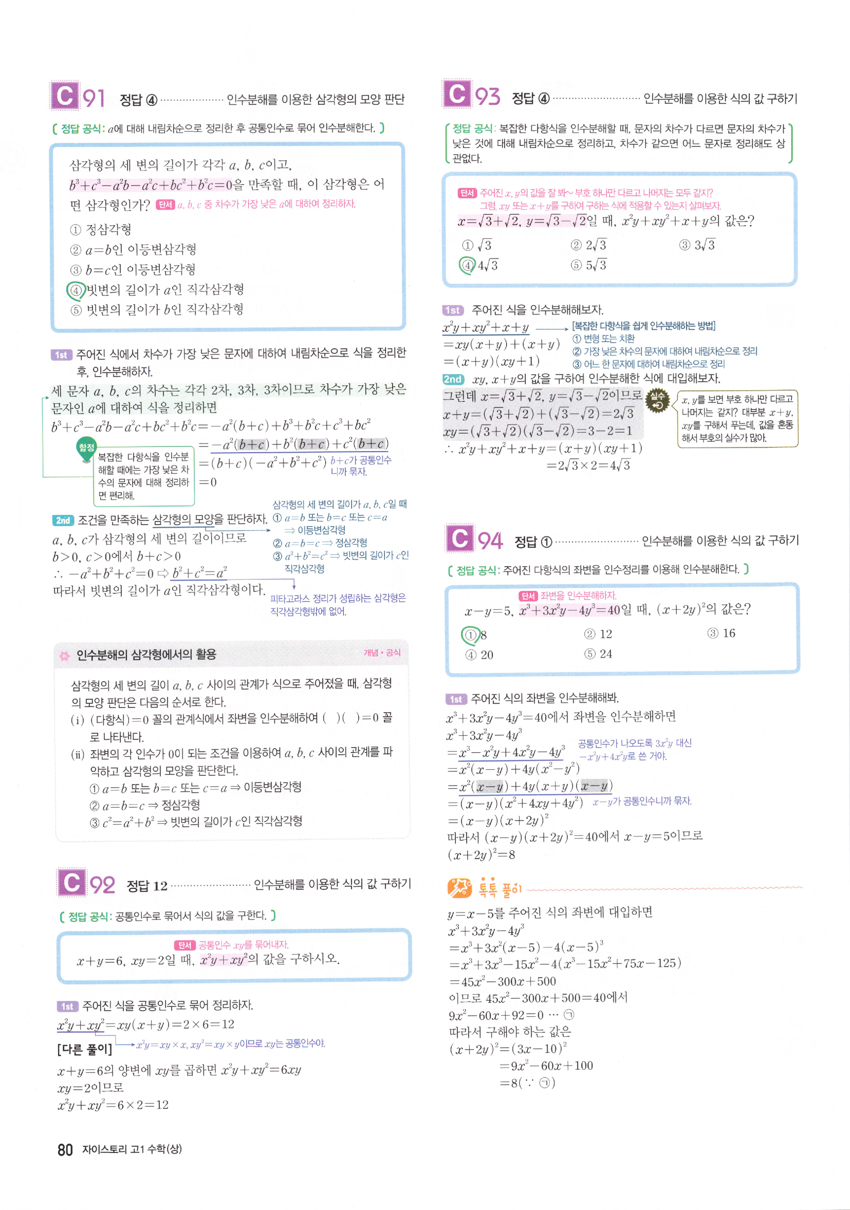 자이스토리 고1 수학상 답지 풀이해설 바로보는 사진답지 풀이집(O)빠른답지 아님
