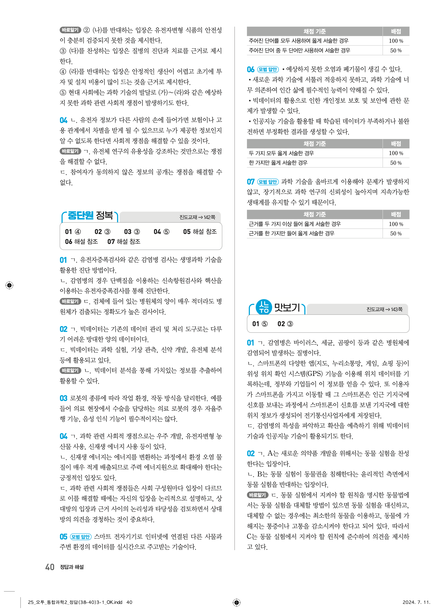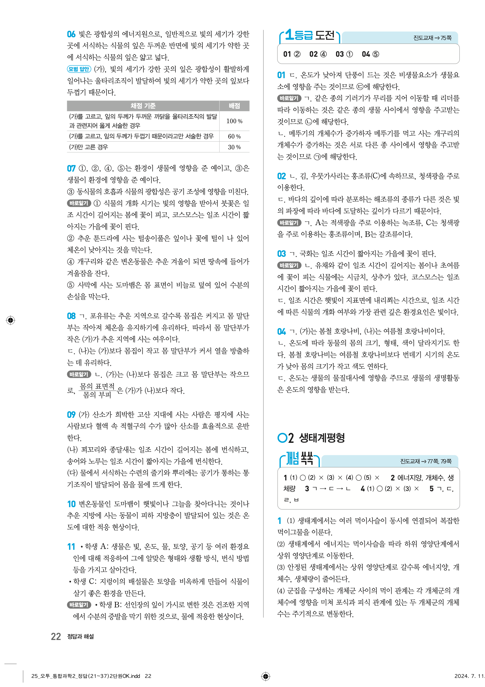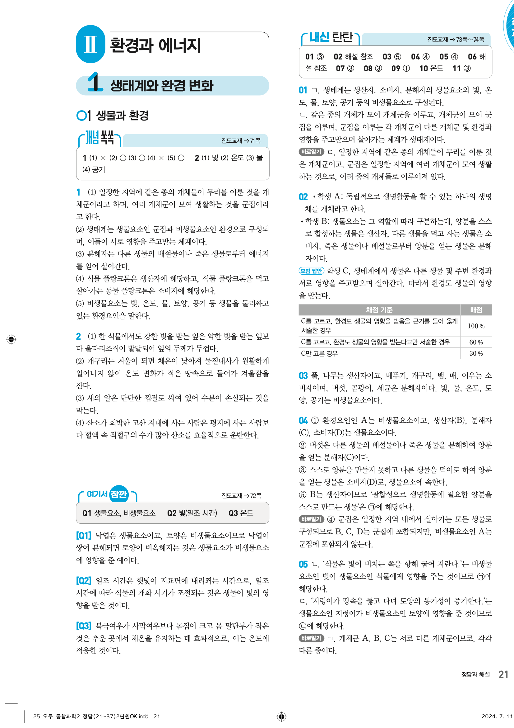 답지에는 문제별로 풀이 과정이 자세히 설명되어 있어, 학생들이 어려운 문제도 단계적으로 해결할 수 있습니다. 이를 통해 복잡한 과학 개념도 쉽게 이해할 수 있습니다. - 오답 정리 및 복습