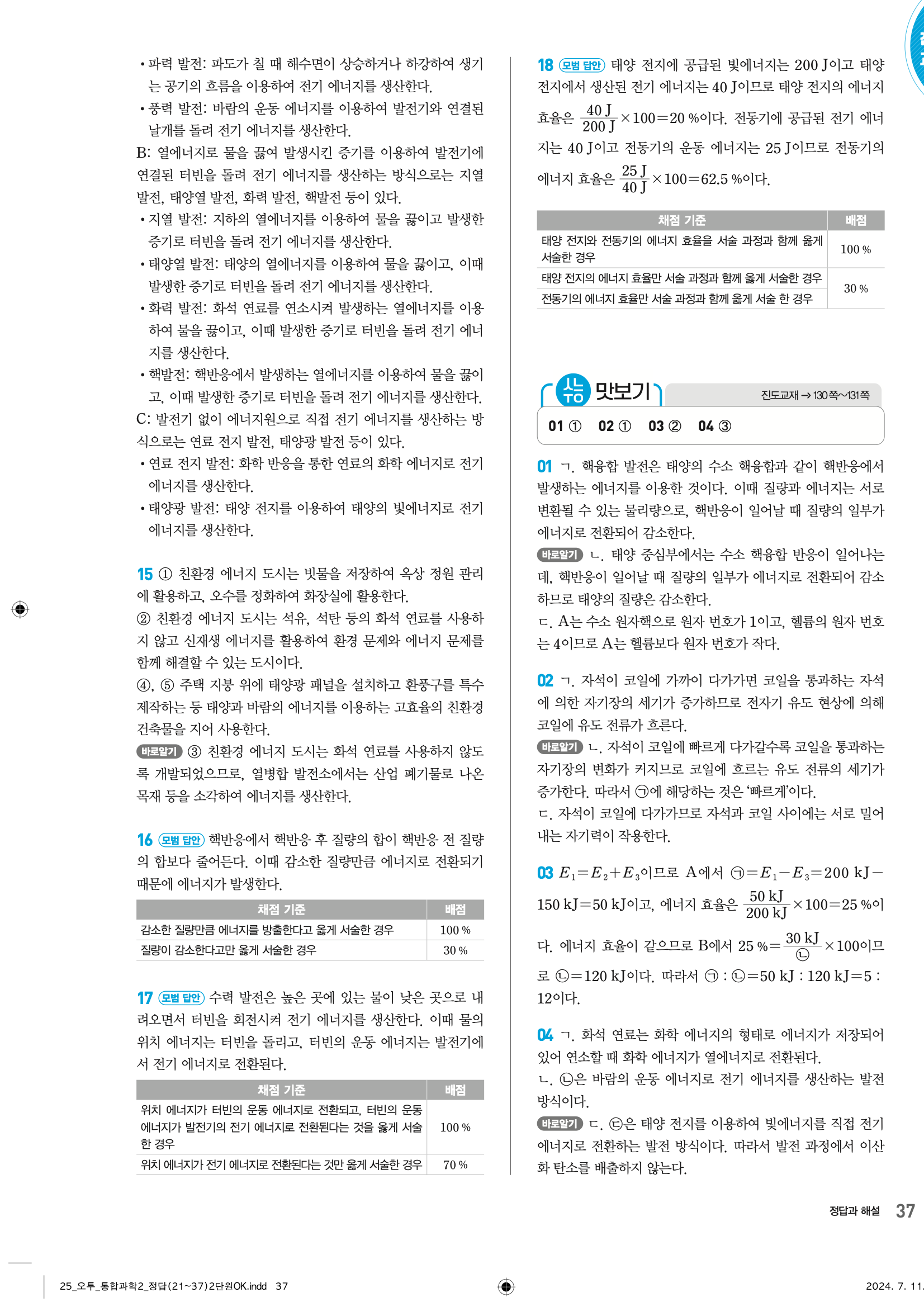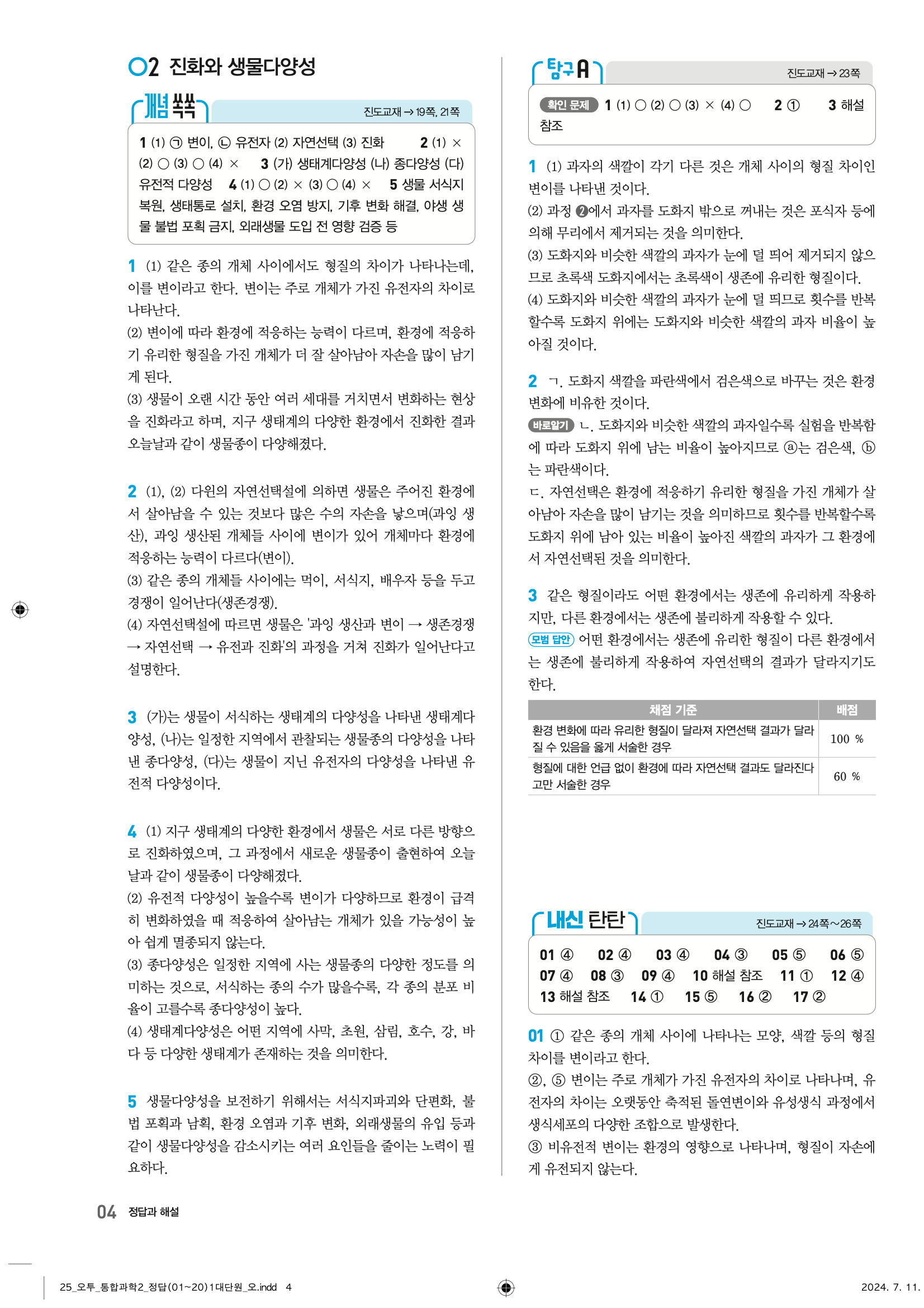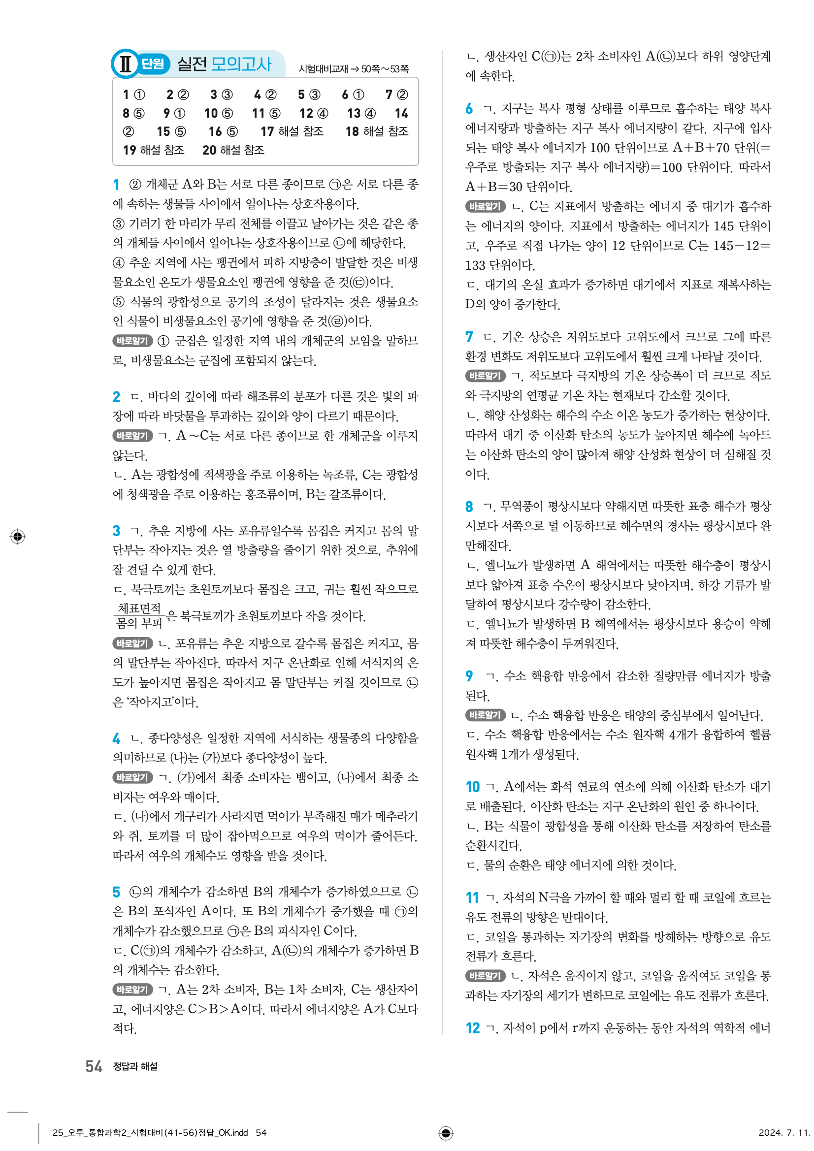 오투 고등 통합과학2 답지 – 고등학교 과학 학습을 위한 필수 자료