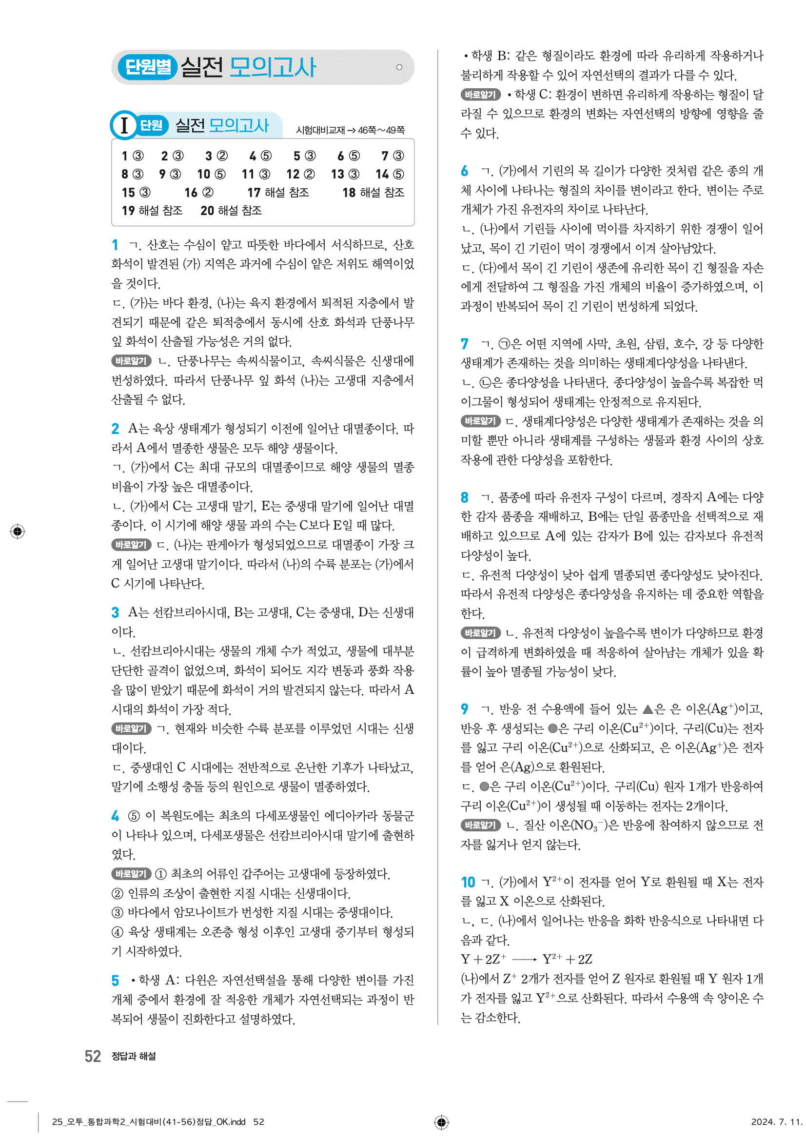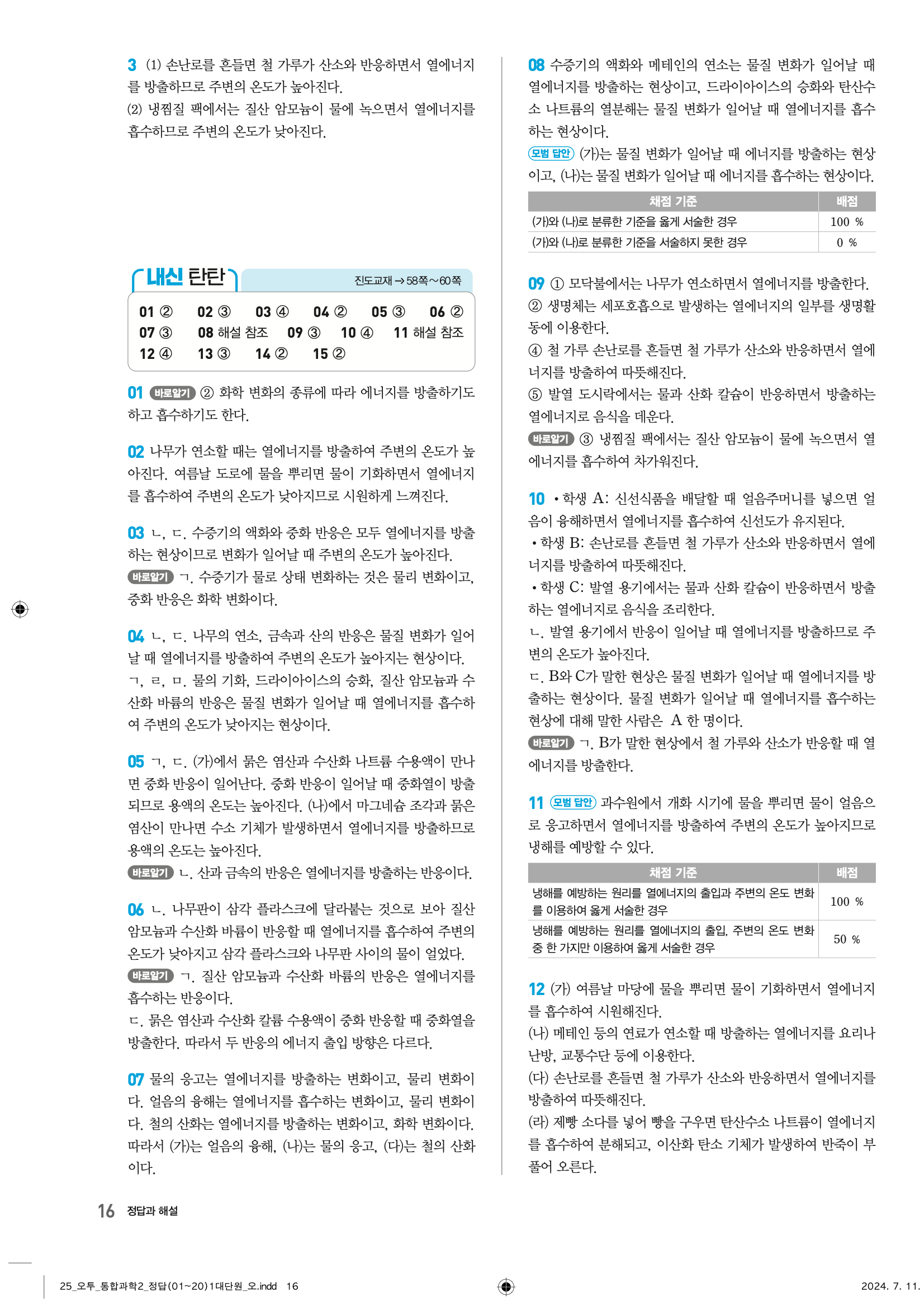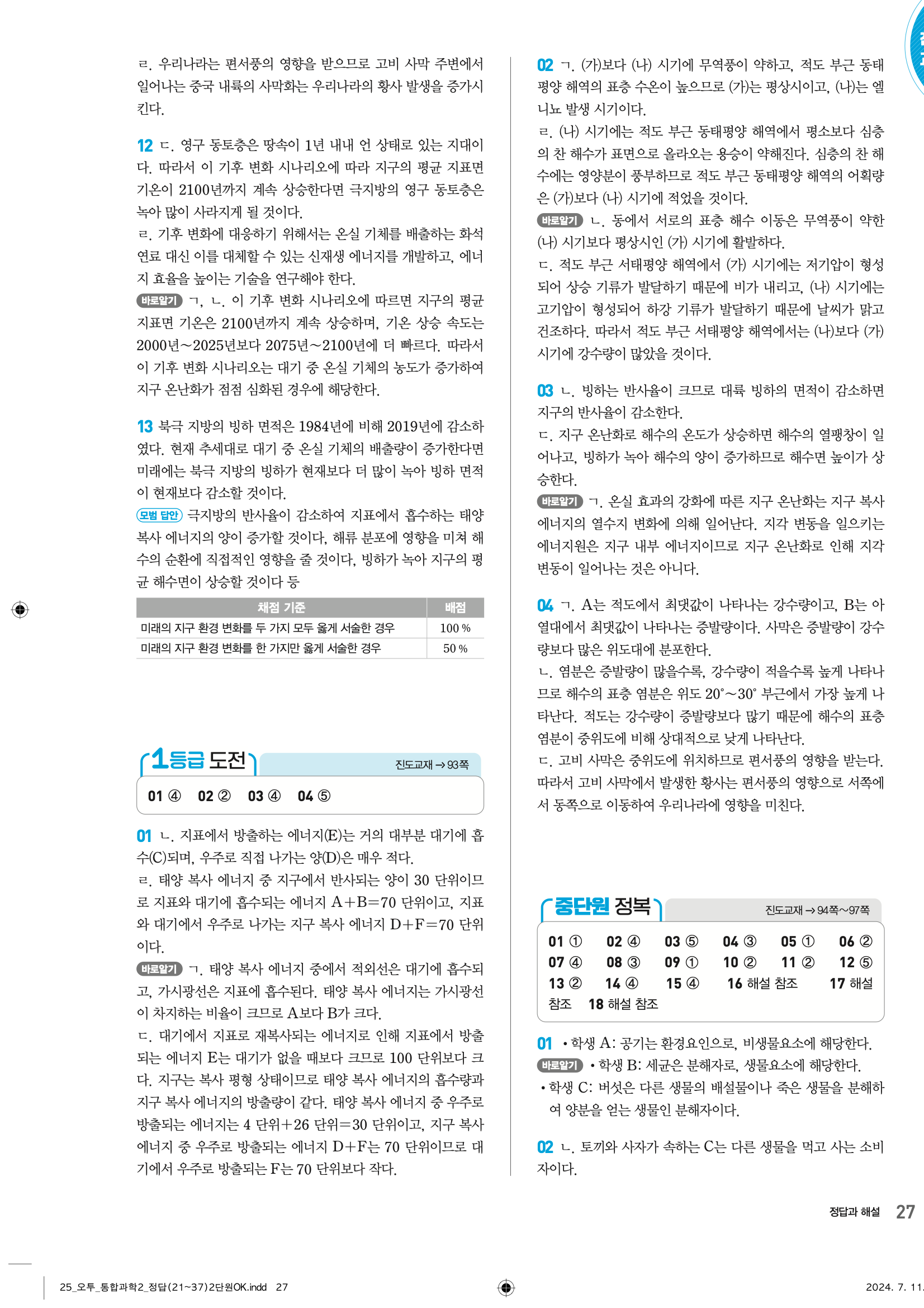 오투 고등 통합과학2 답지 – 고등학교 과학 학습을 위한 필수 자료
