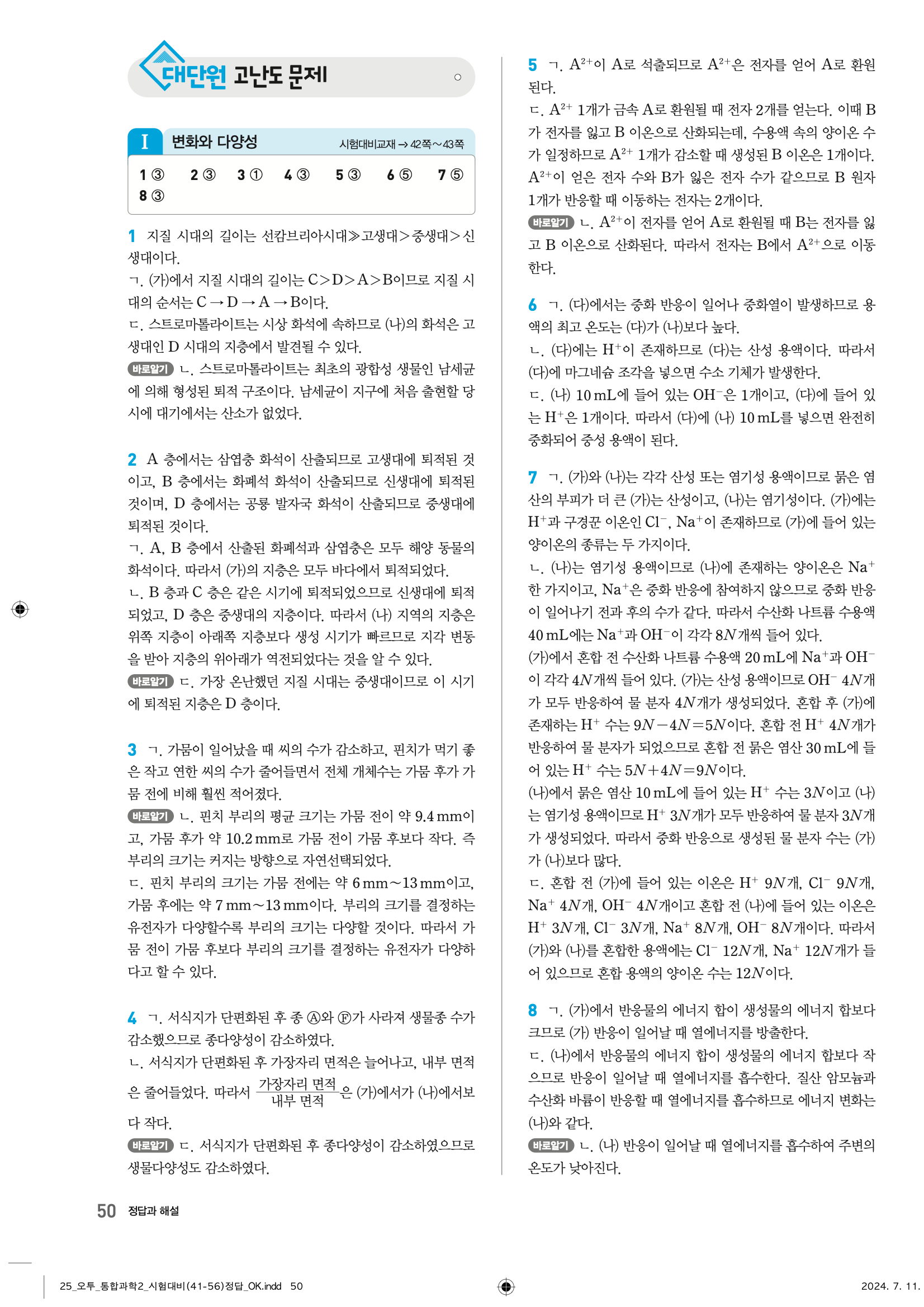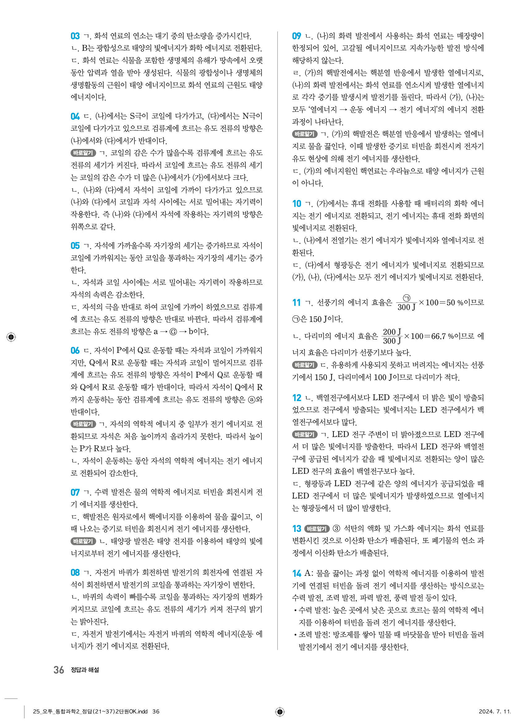 답지를 통해 각 문제에서 사용된 핵심 개념을 복습하세요. 이를 통해 과학적 사고력을 기르고, 새로운 유형의 문제도 쉽게 해결할 수 있습니다.