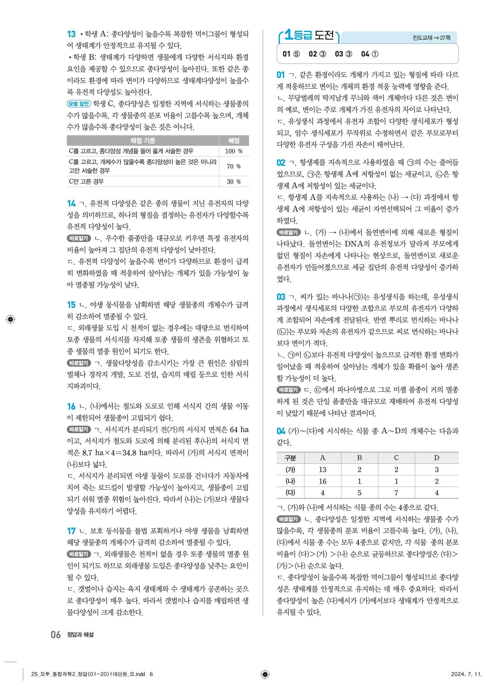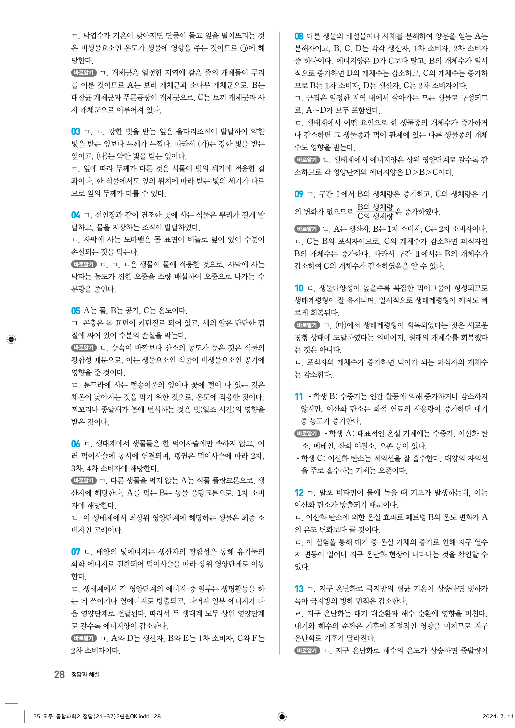 오투 고등 통합과학2는 고등학교 과학의 다양한 개념을 이해하고 실력을 쌓을 수 있는 교재입니다. 하지만 때로는 어려운 문제에 부딪히기도 합니다. 이때 오투 고등 통합과학2 답지는 중요한 학습 도구로 활용될 수 있습니다. 답지를 통해 문제의 정답뿐만 아니라, 각 문제의 풀이 과정과 핵심 개념을 쉽게 이해할 수 있습니다. 이를 통해 학생들은 자기주도 학습을 강화하고, 과학적 사고력과 문제 해결 능력을 키울 수 있습니다.